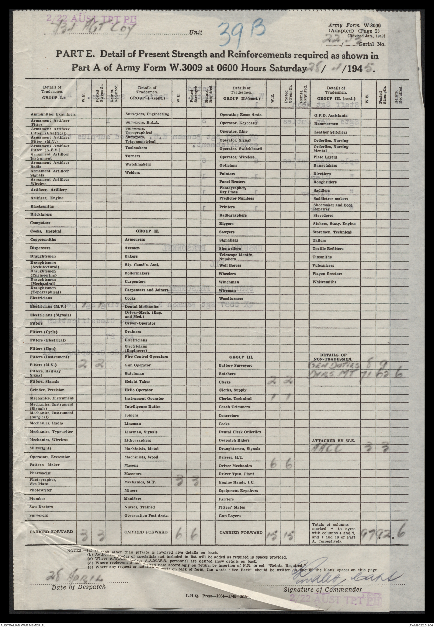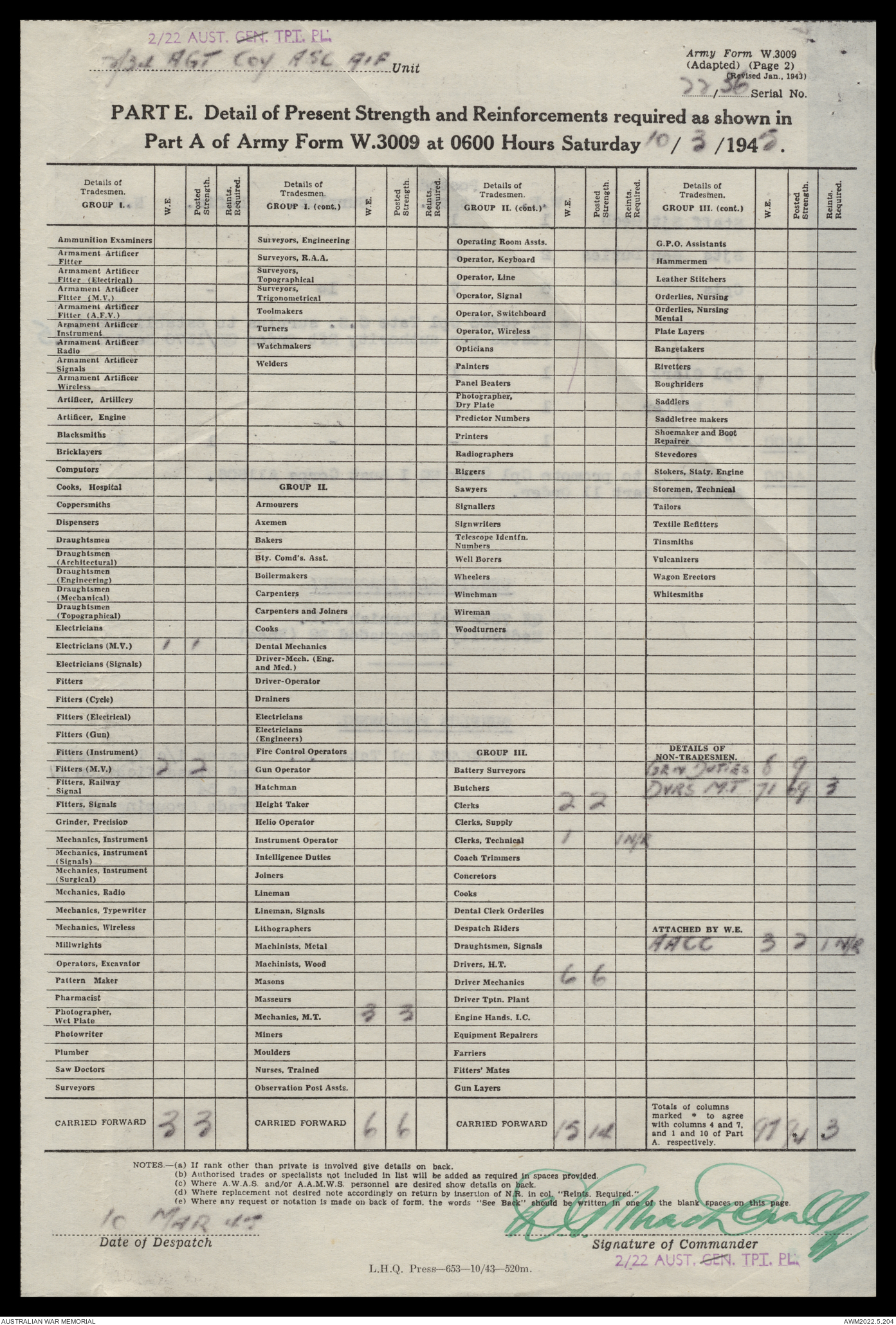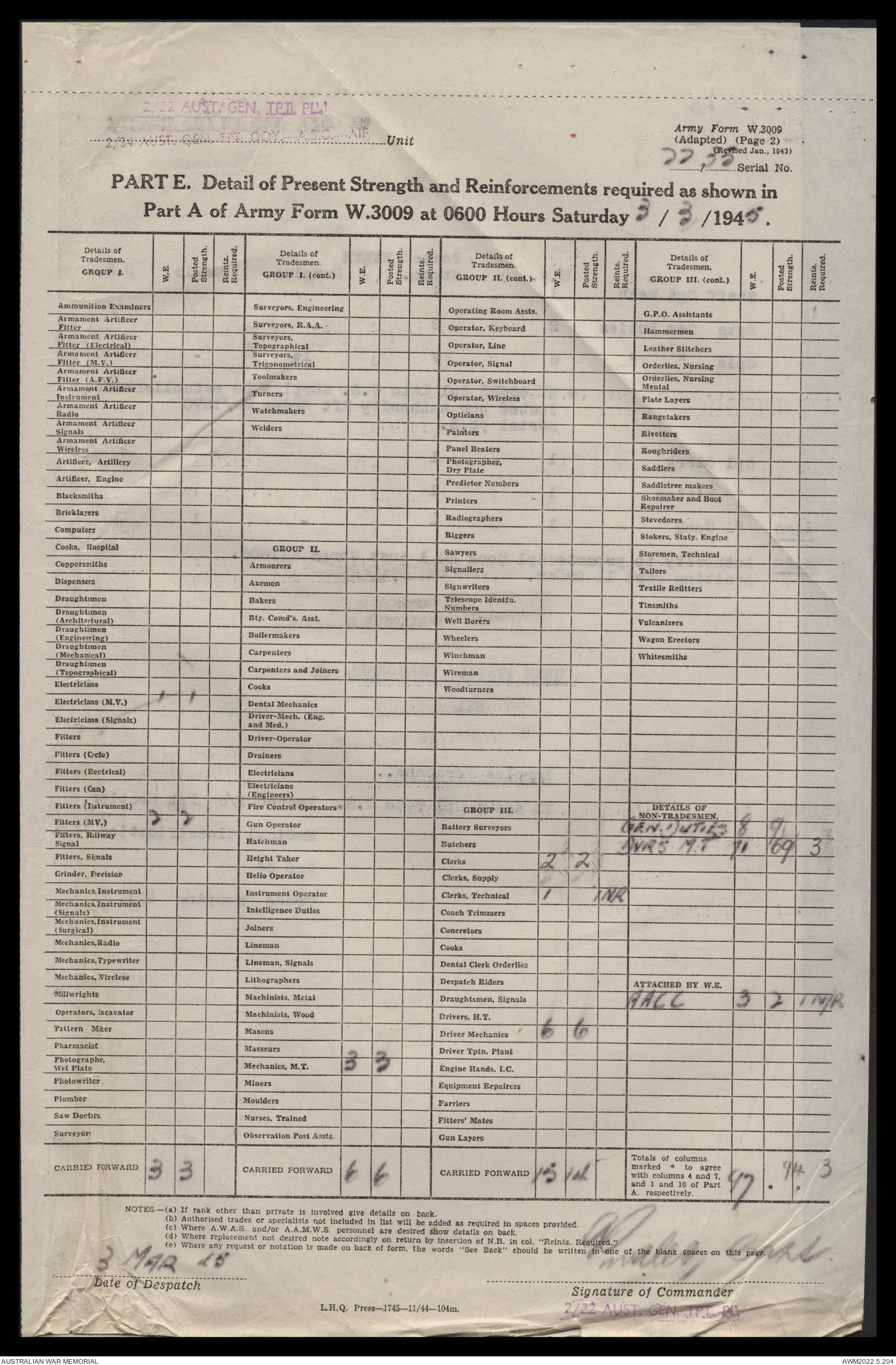 | Collection number | AWM52 10/4/22/2 |
