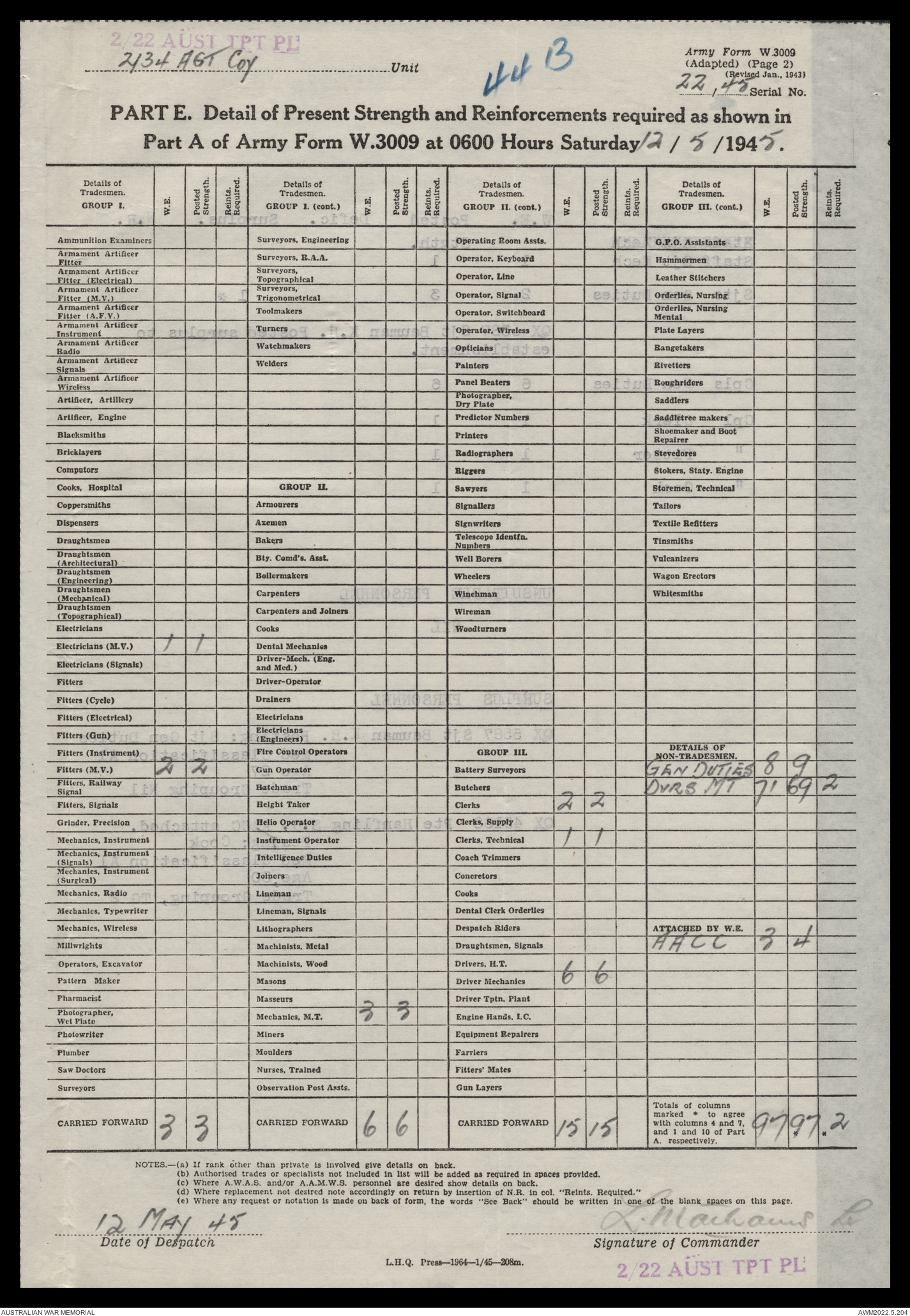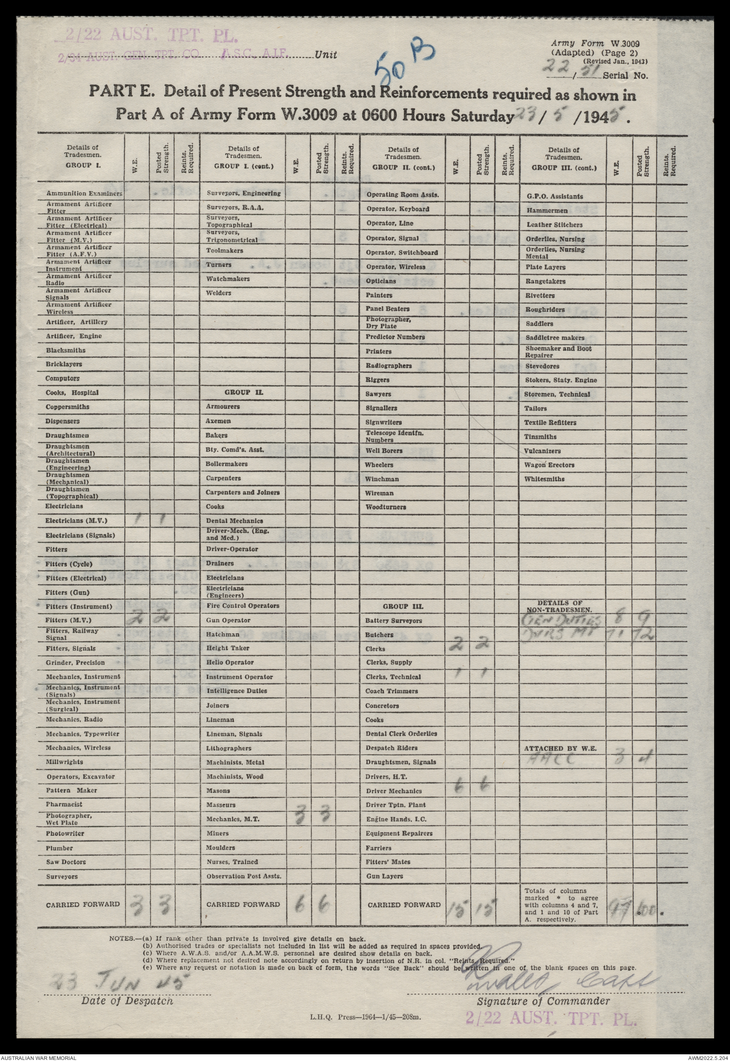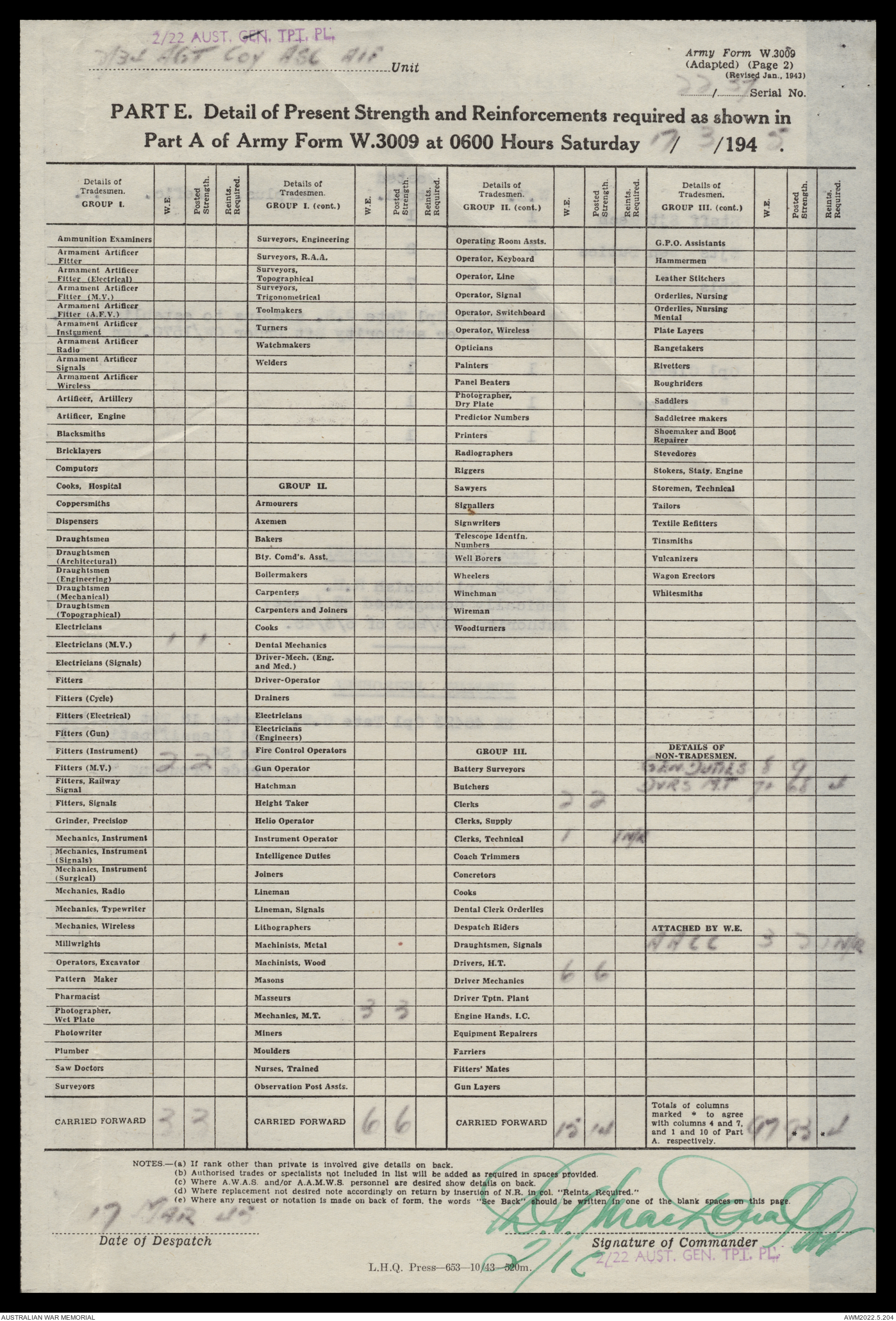 | Collection number | AWM52 10/4/22/2 |