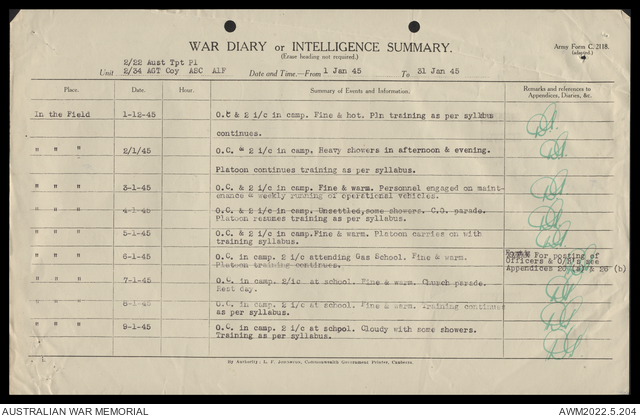 2nd AIF (Australian Imperial Force) and CMF (Citizen Military Forces) unit war diaries, 1939-45 War