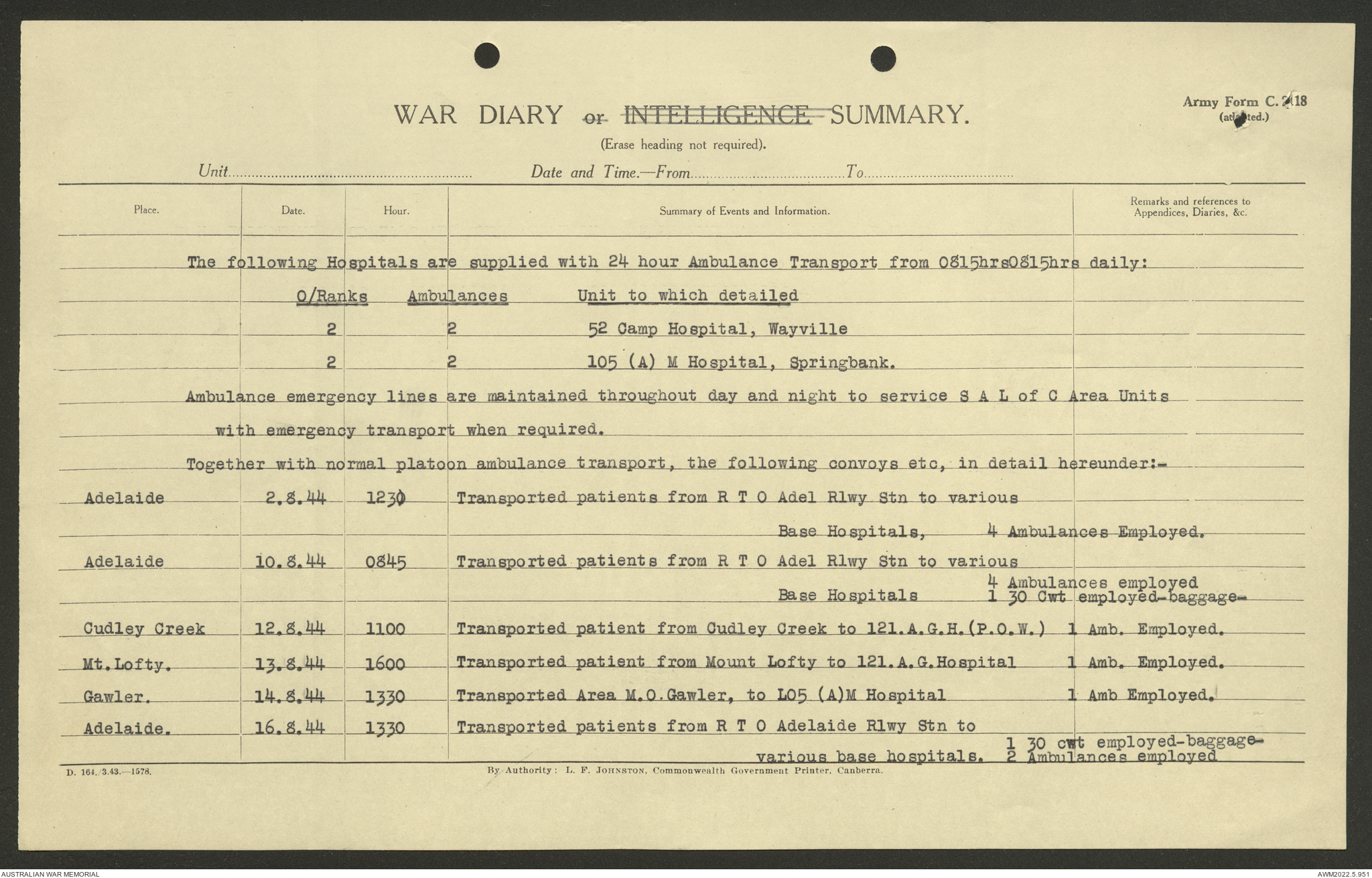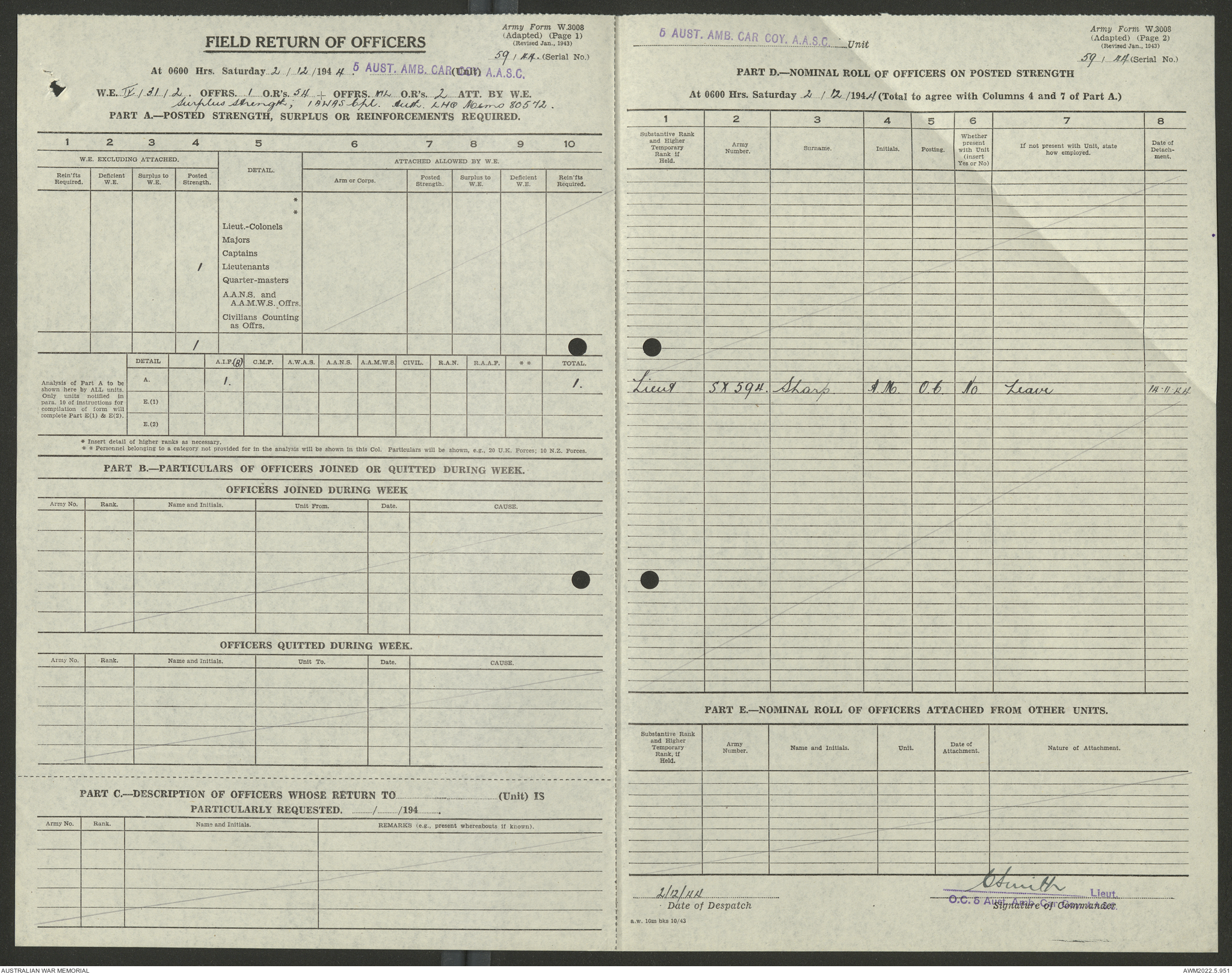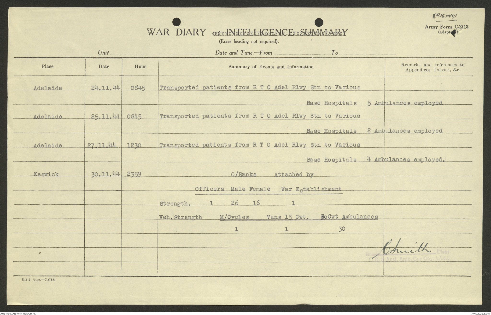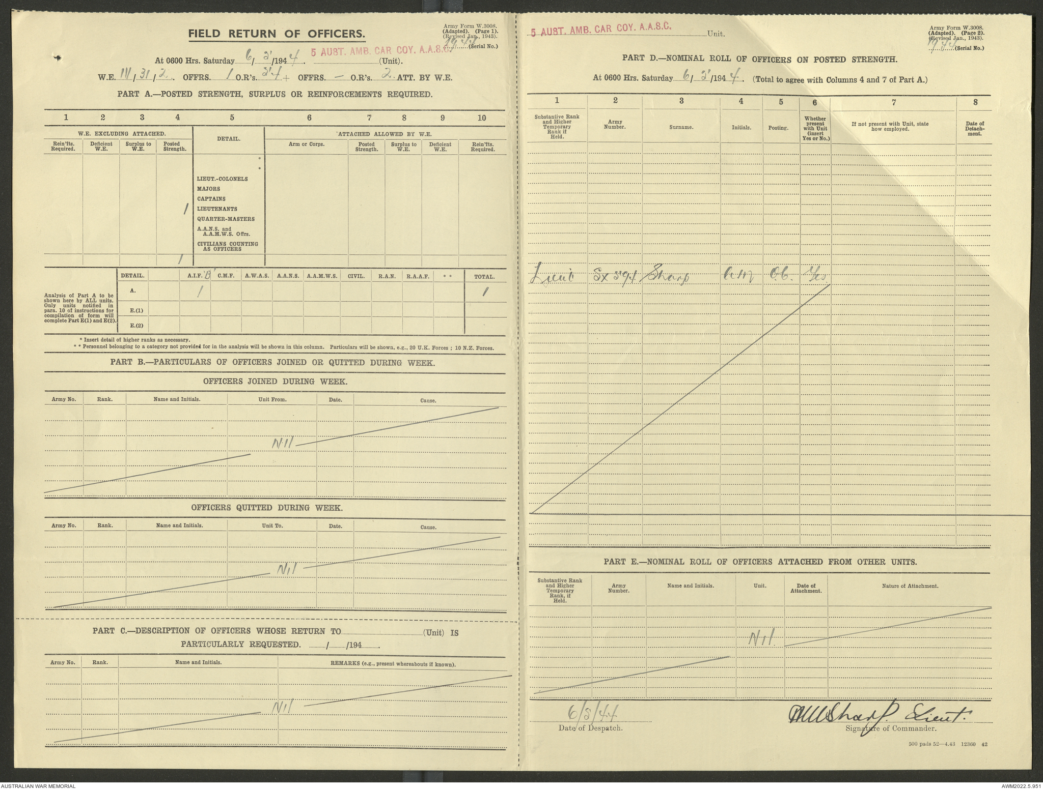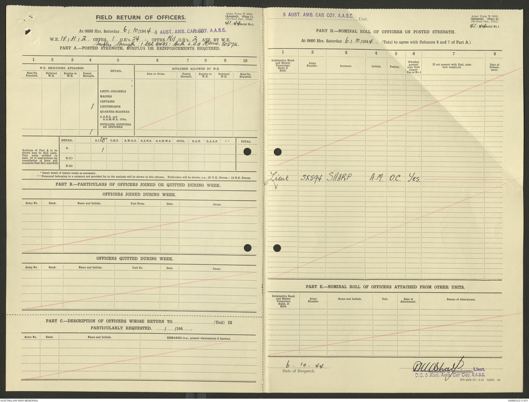 AWM52 10/9/5/4 - [Unit War Diaries, 1939-45 War] 5 Australian Ambulance Car Company AASC [Australian Army Service Corps] January - December 1944