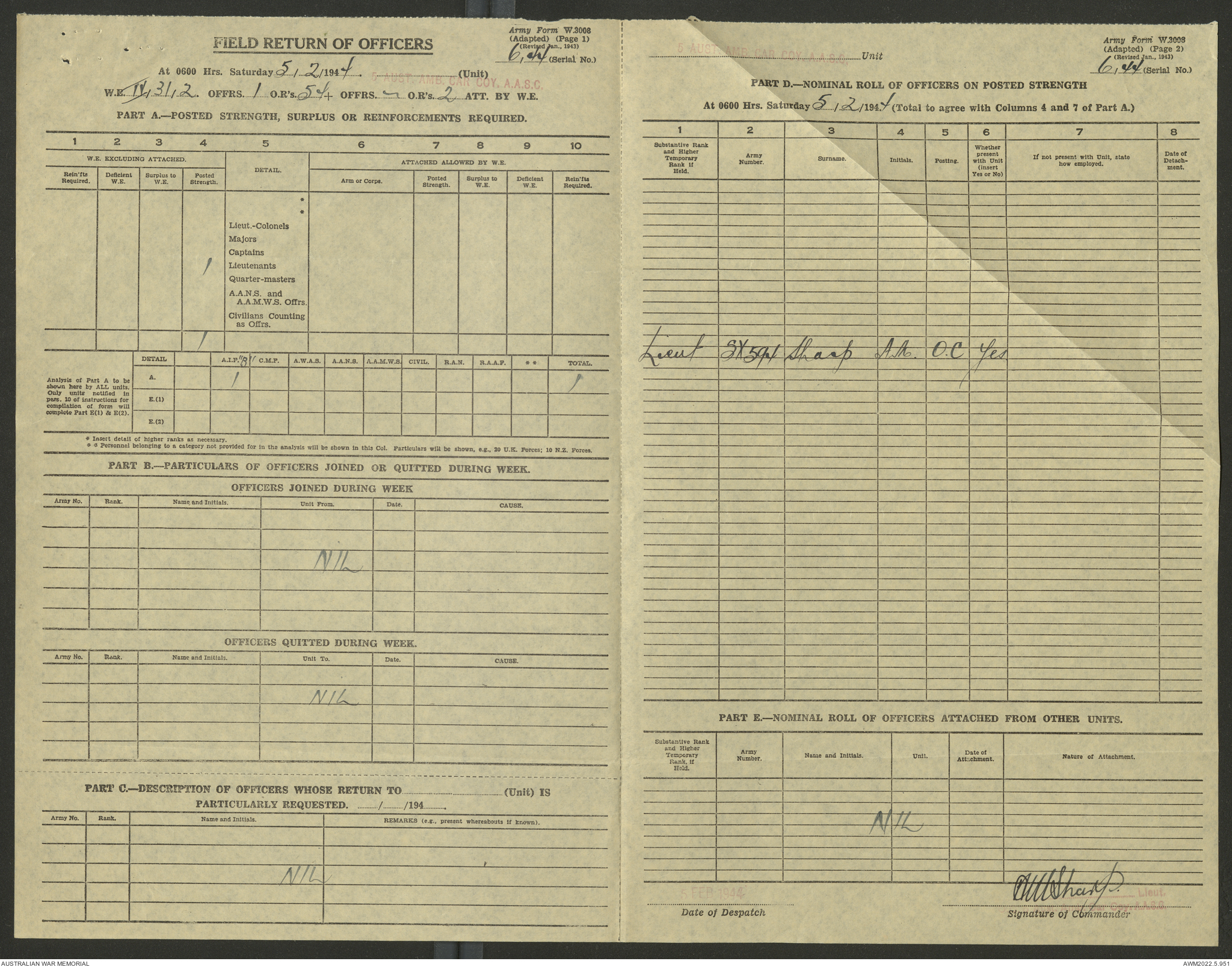 | Collection number | AWM52 10/9/5/4 |