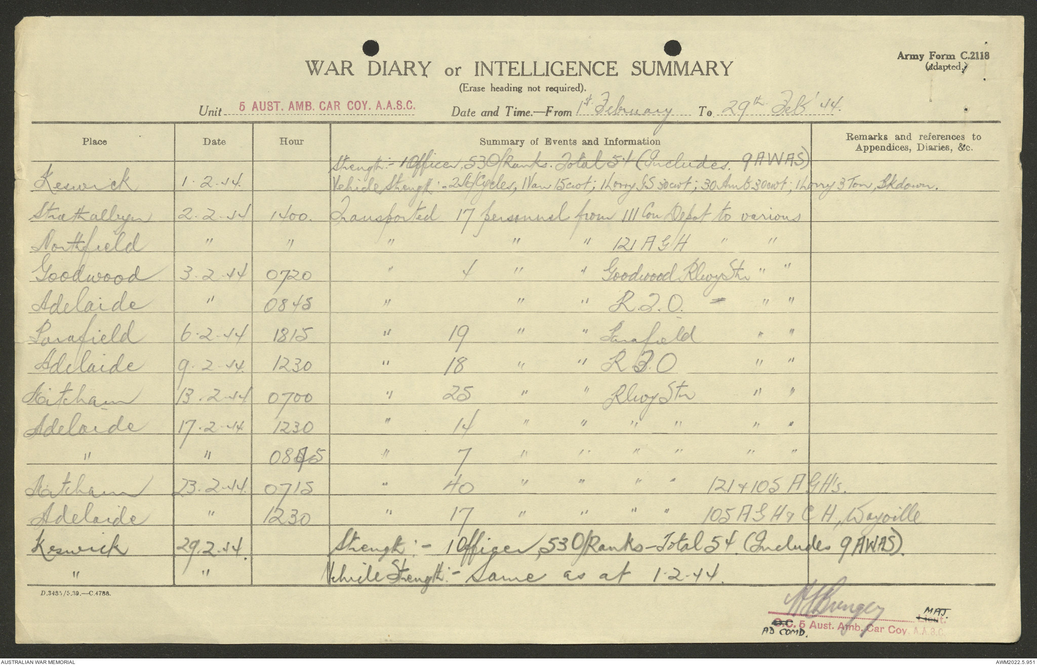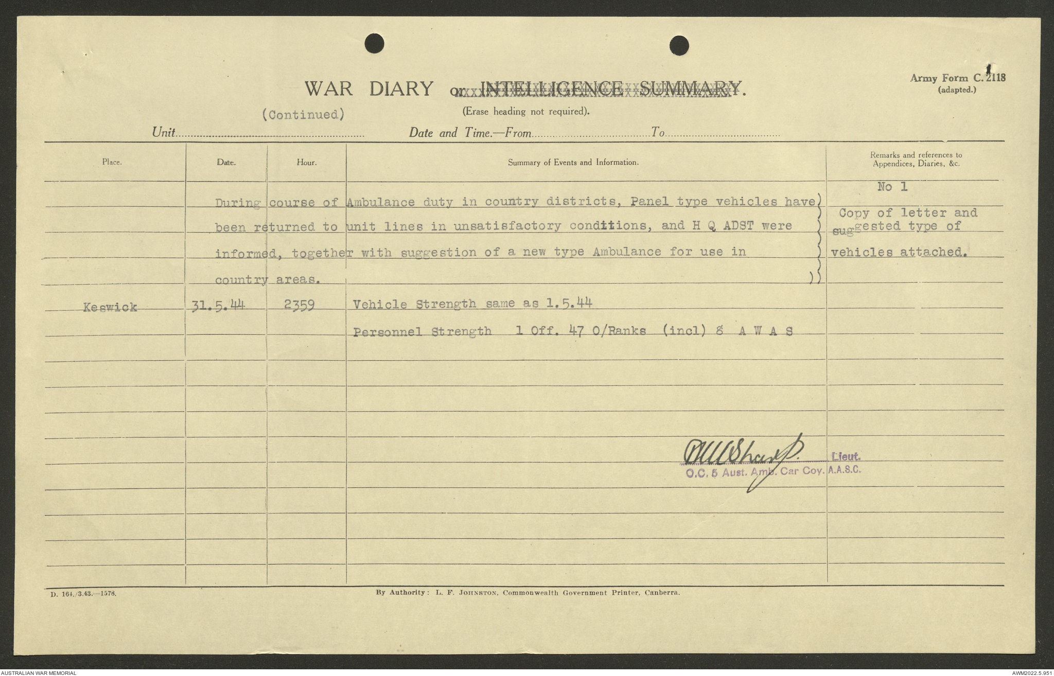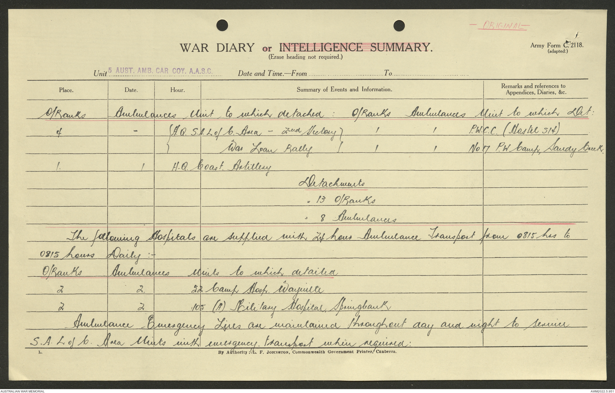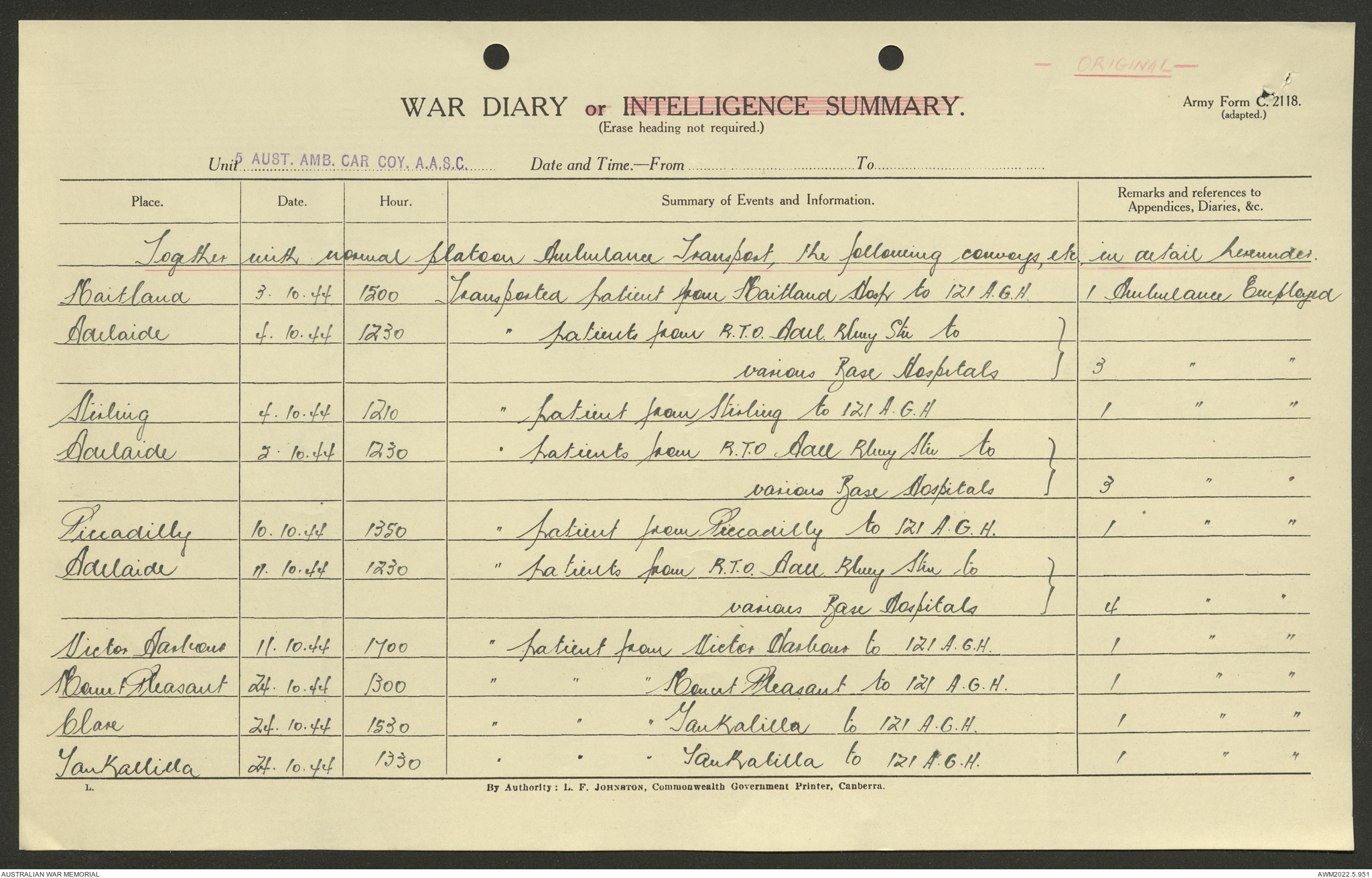 - AWM52 10/9/5 - 5 Australian Ambulance Car Company, Australian Army Service Corps