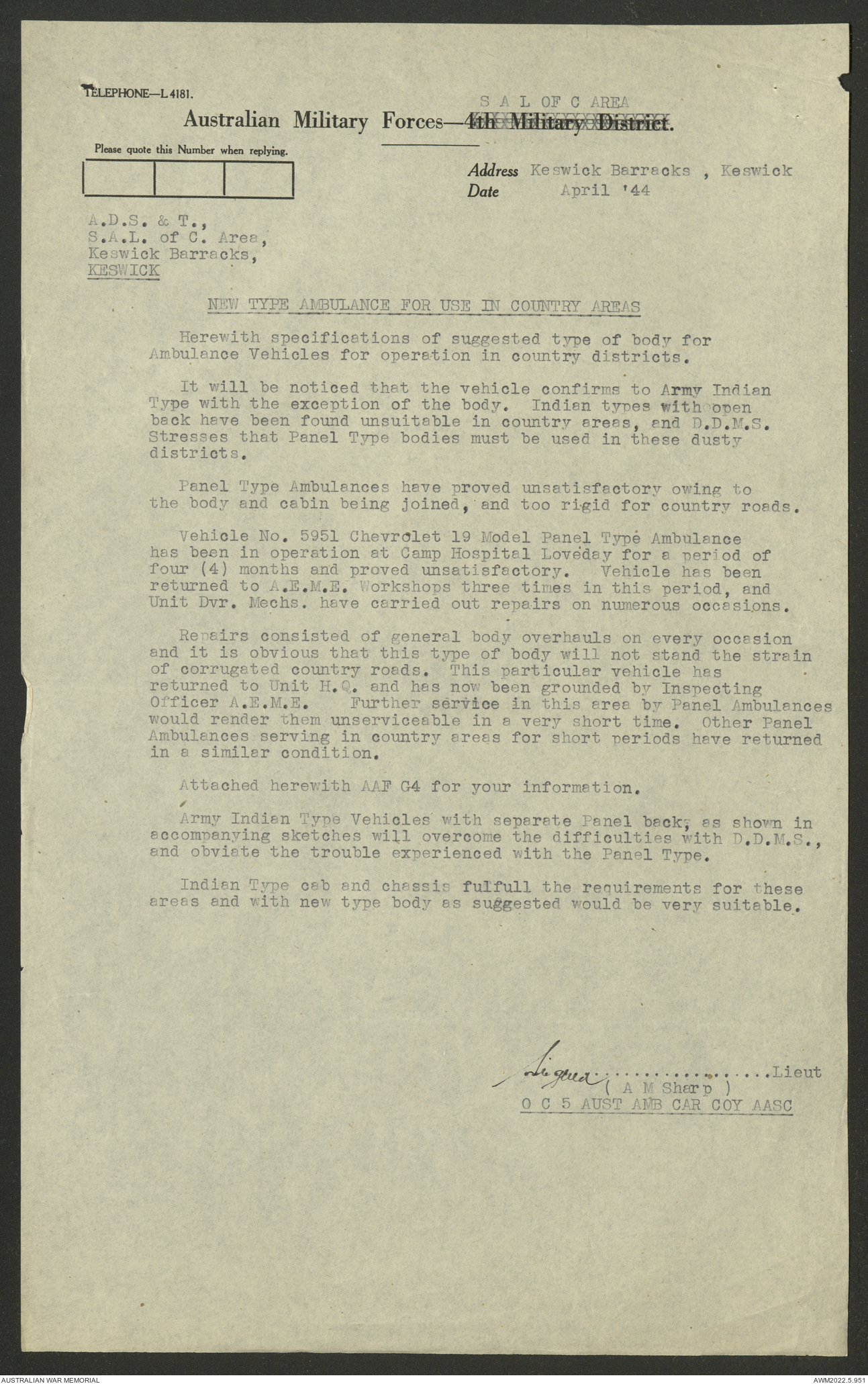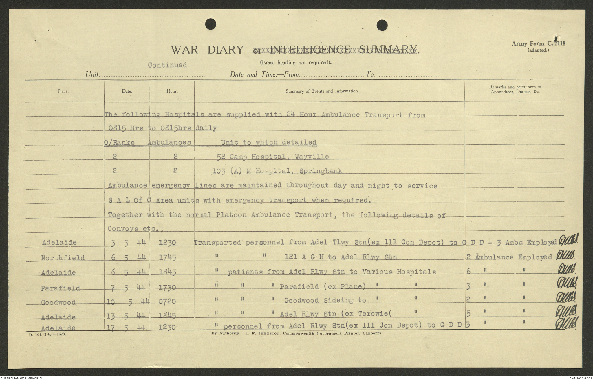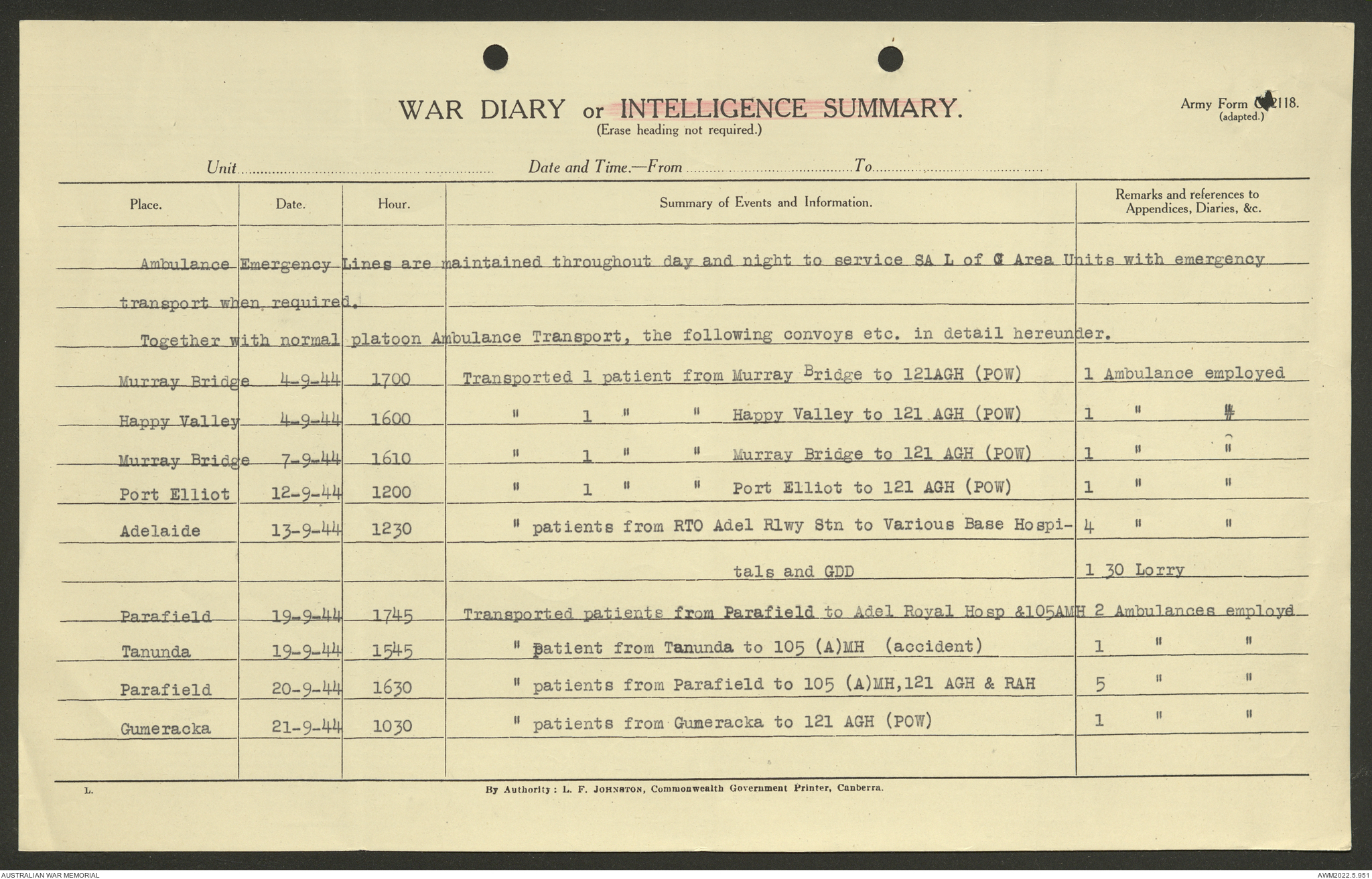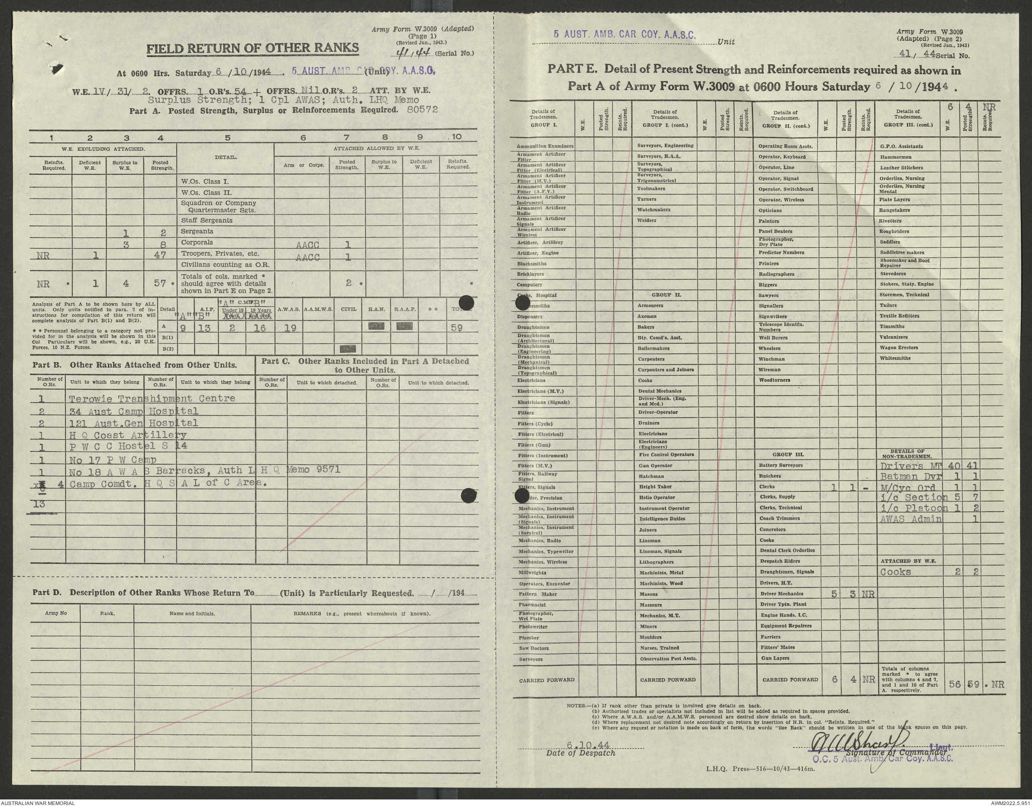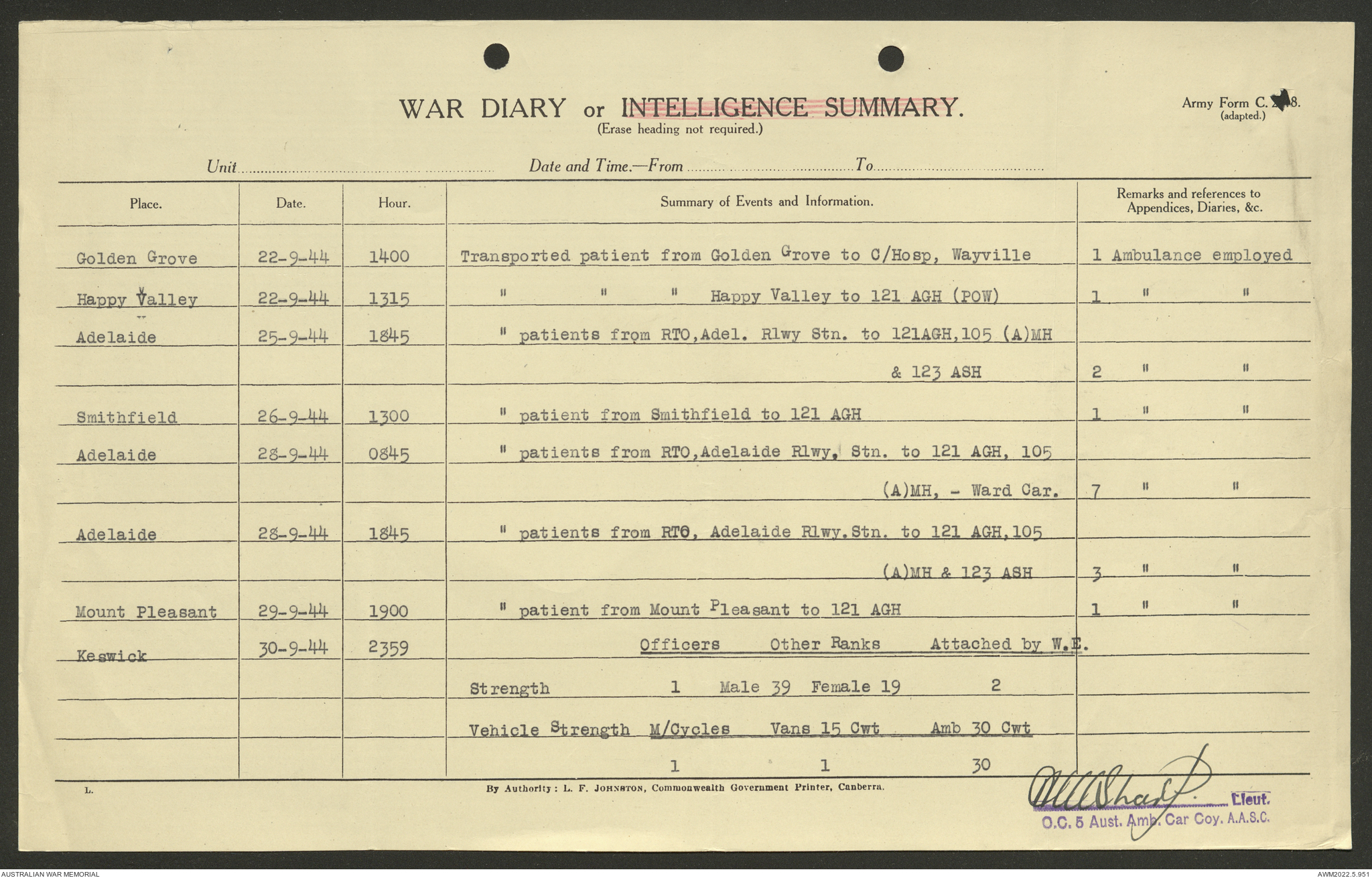 - AWM52 10/9/5 - 5 Australian Ambulance Car Company, Australian Army Service Corps