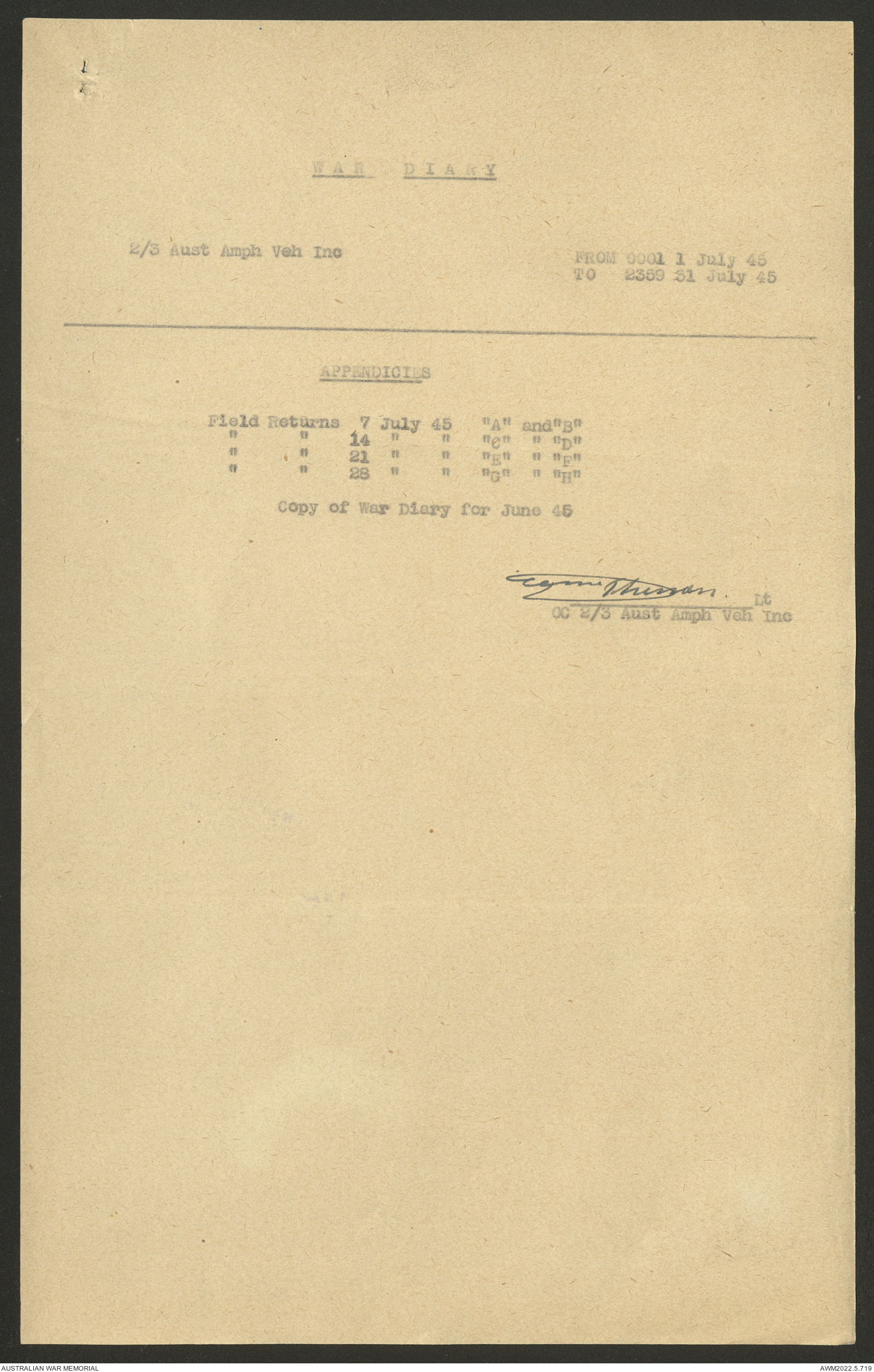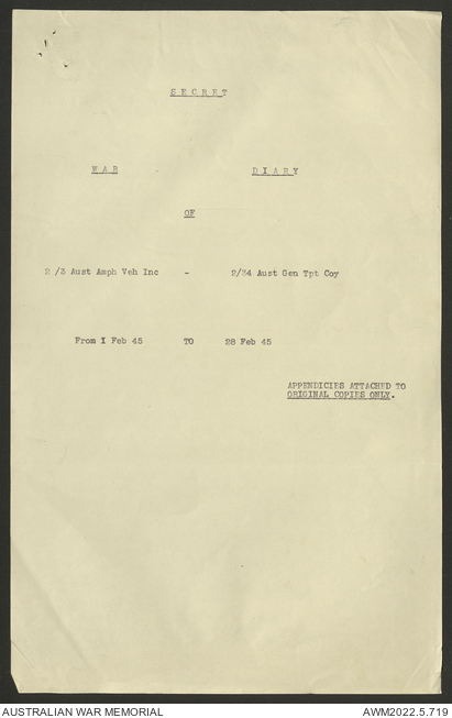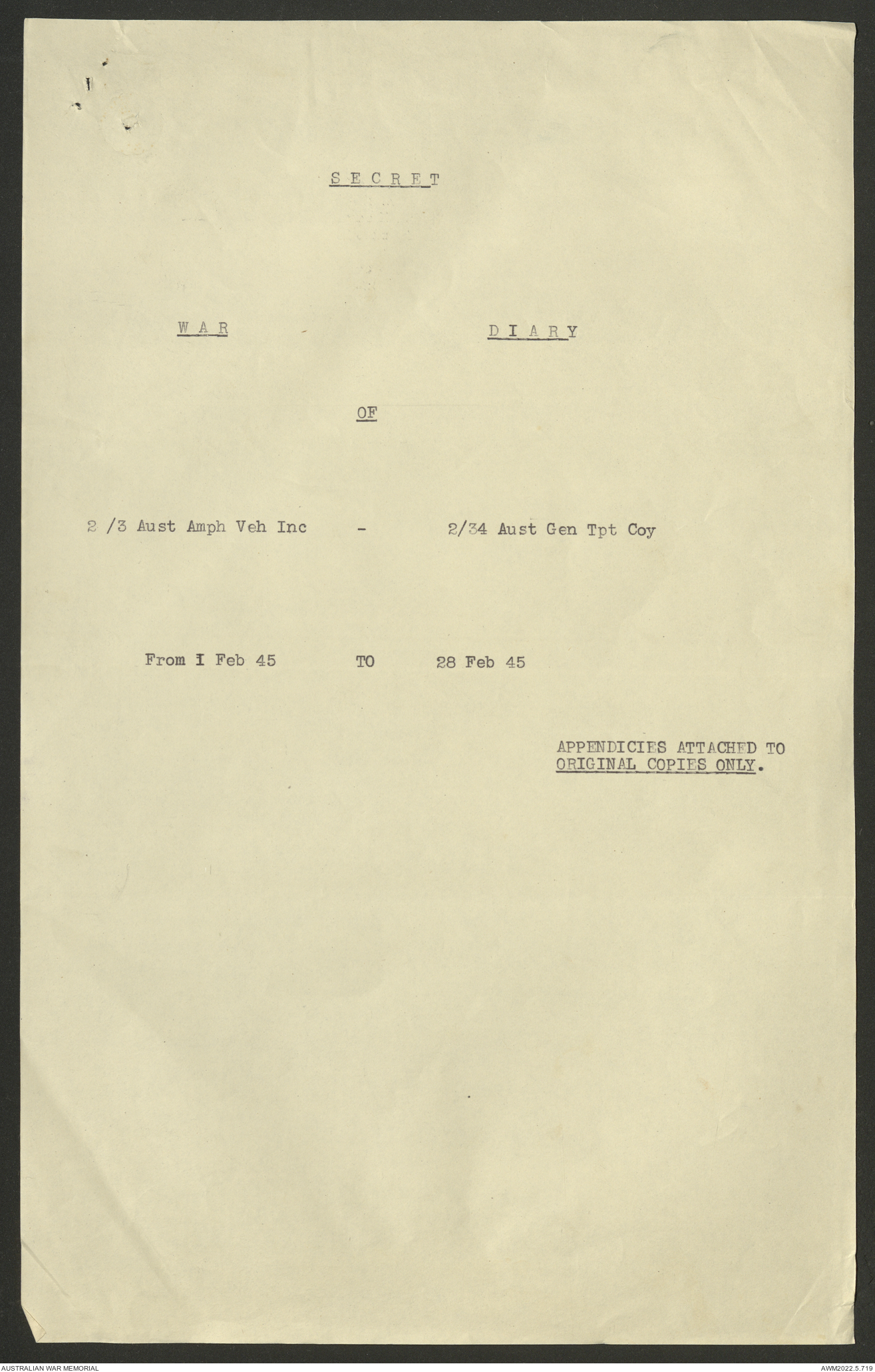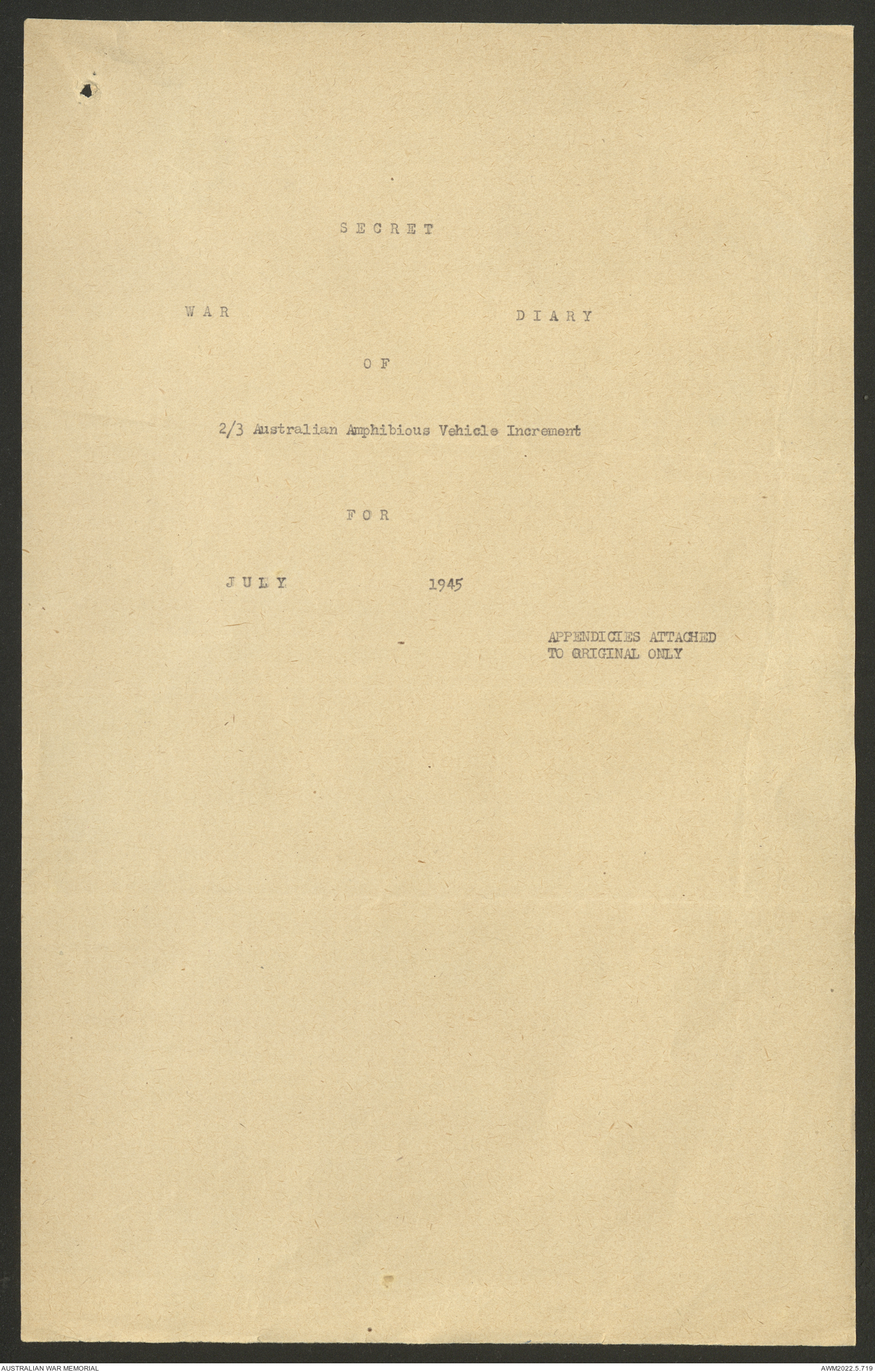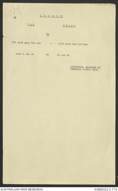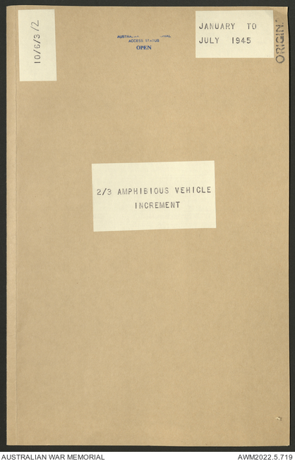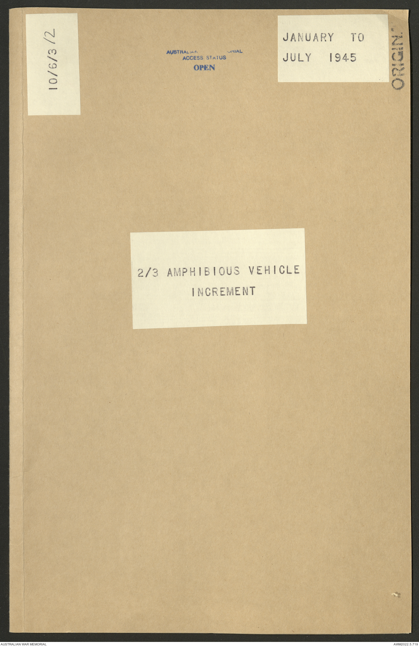 AWM52 10/6/3/2 - [Unit War Diaries, 1939-45 War] 2/3 Australian Amphibious Vehicle Increment, January - July 1945