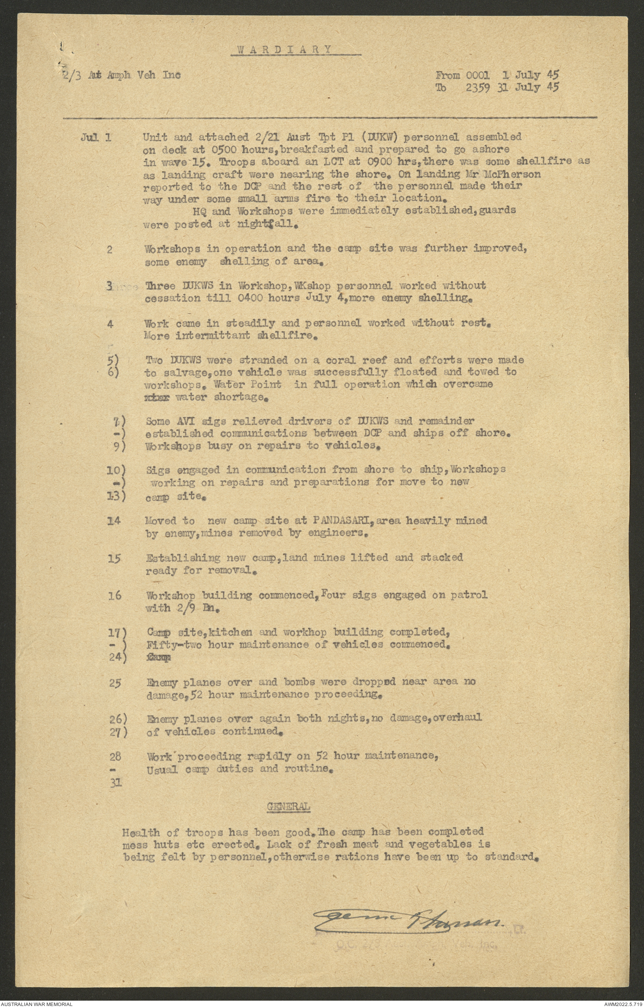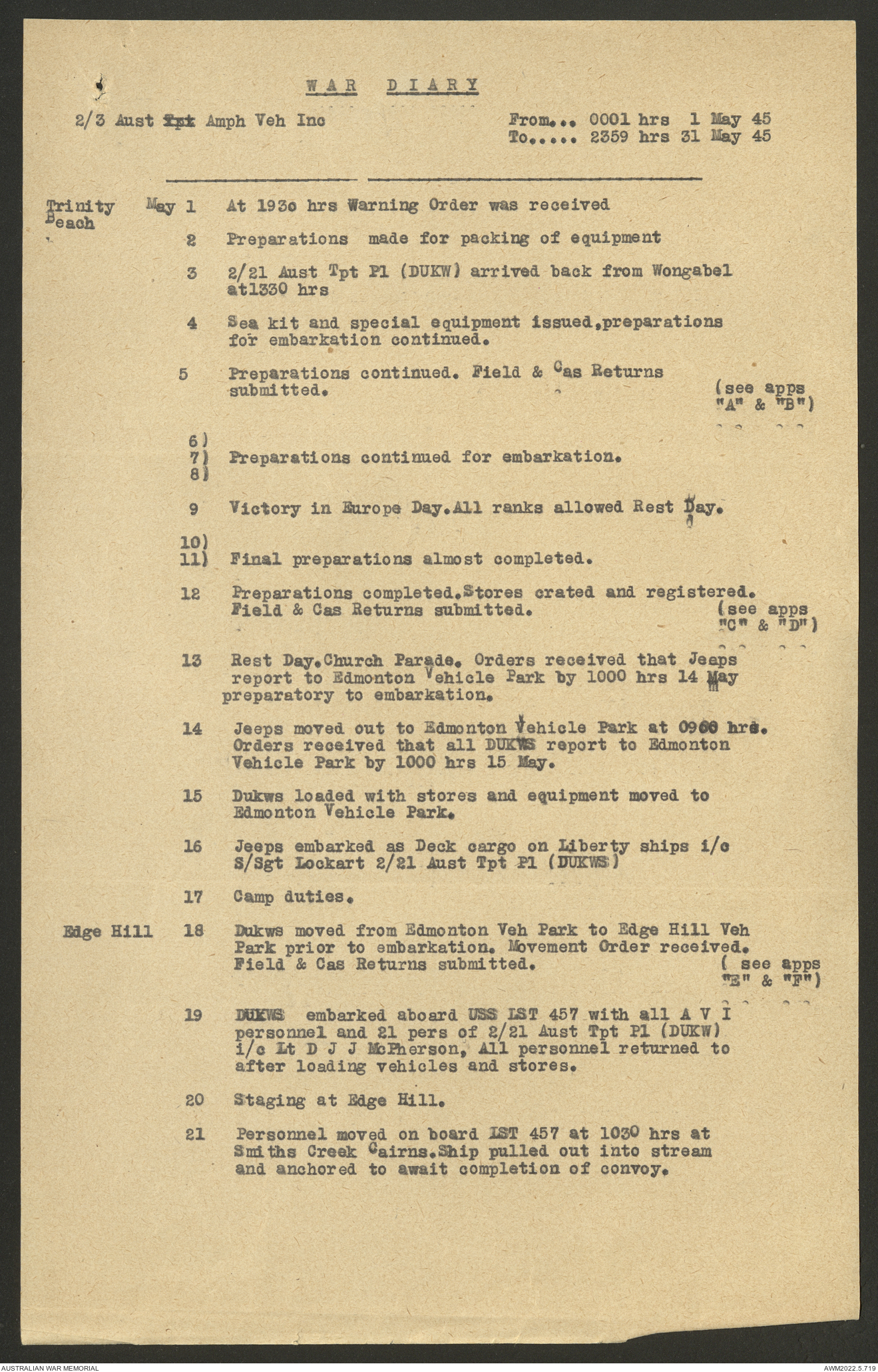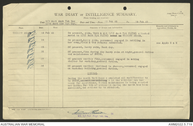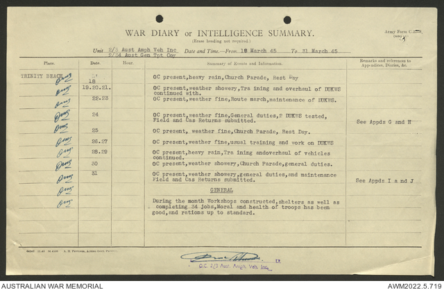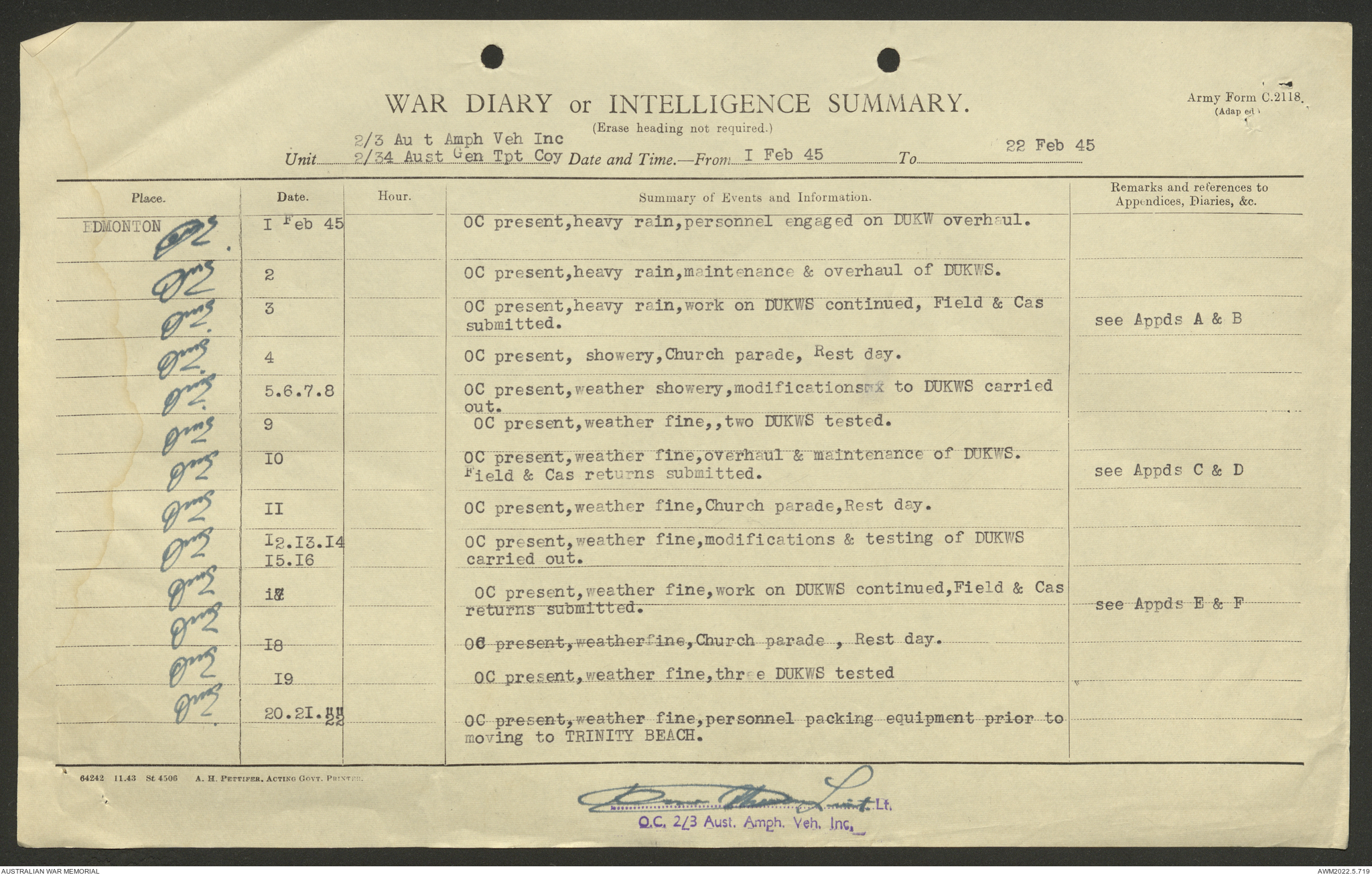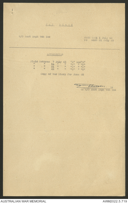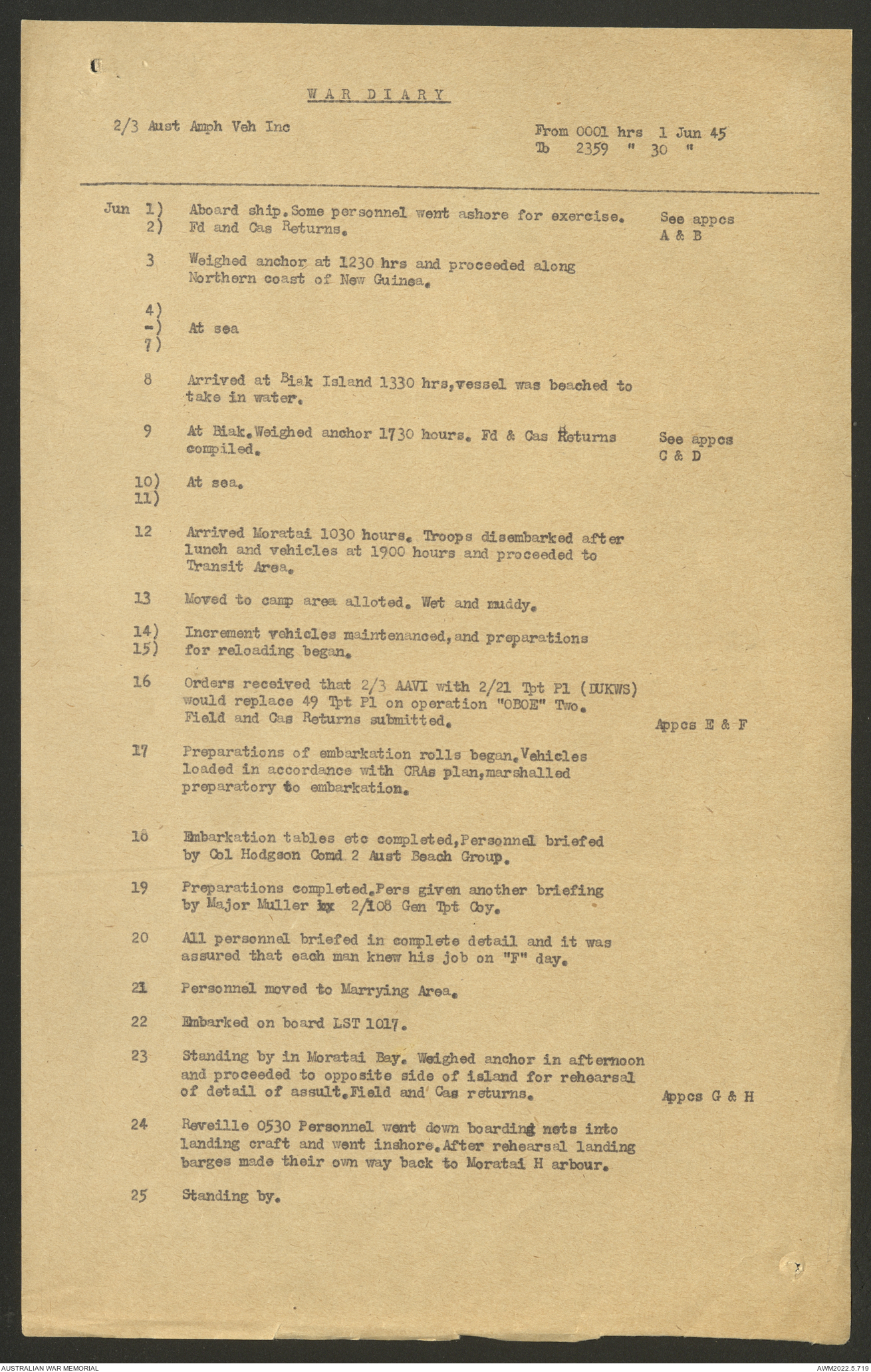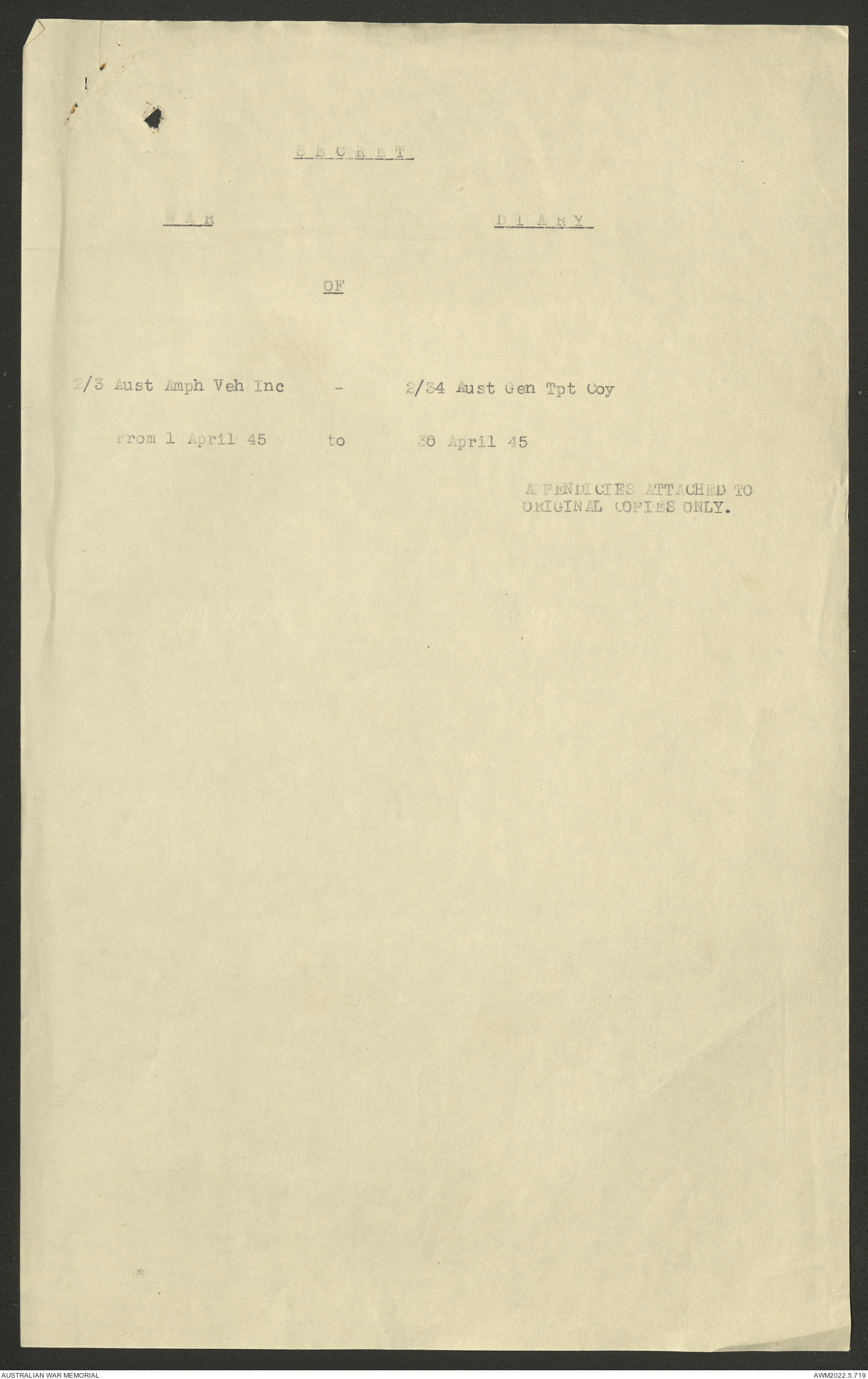 AWM52 10/6/3/2 - [Unit War Diaries, 1939-45 War] 2/3 Australian Amphibious Vehicle Increment, January - July 1945