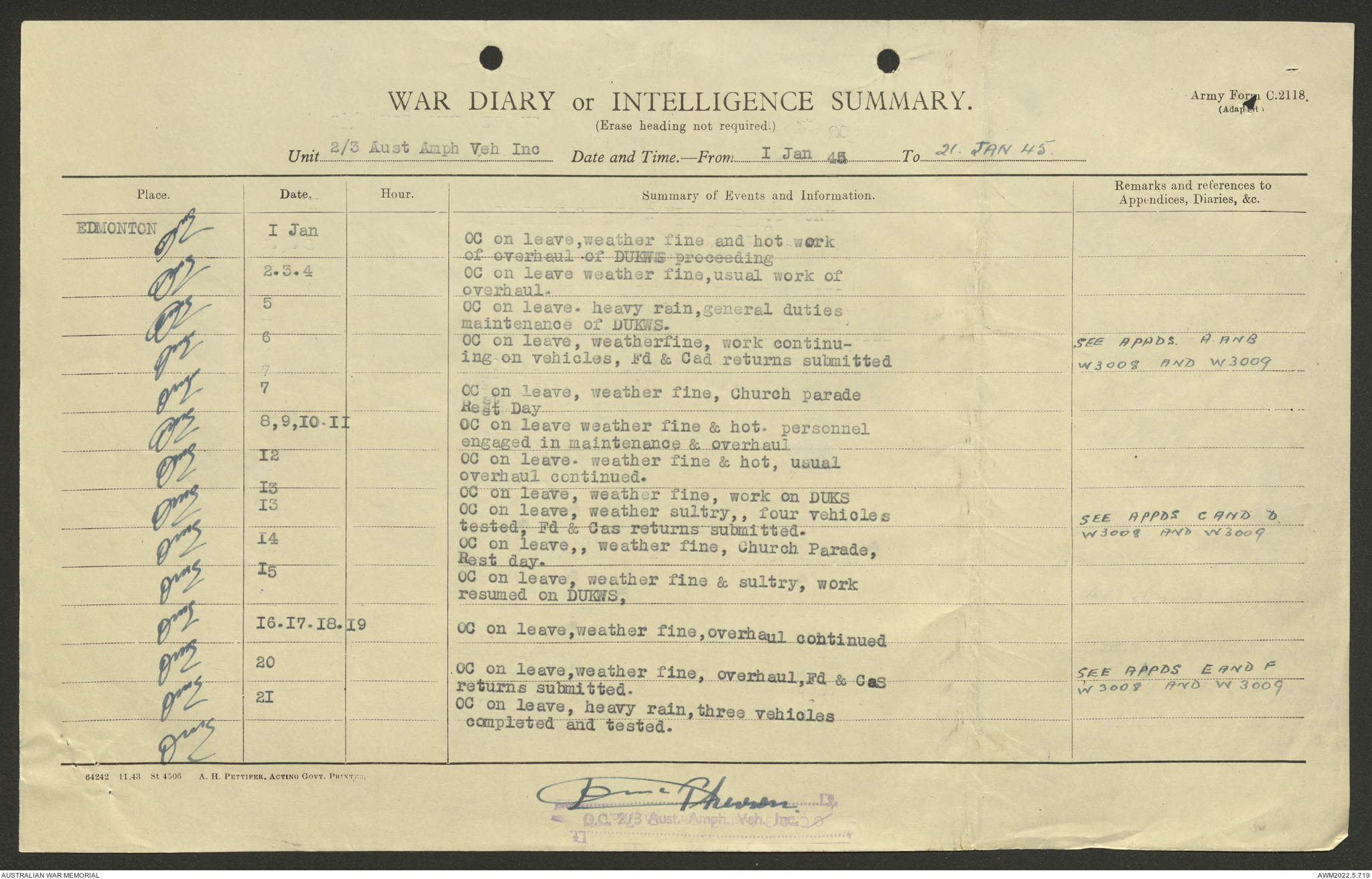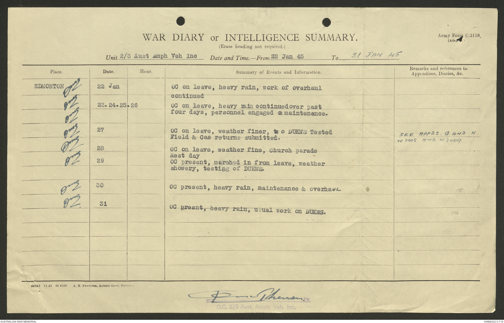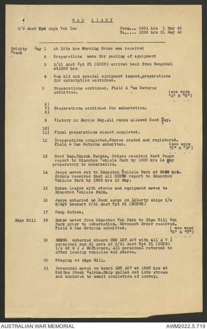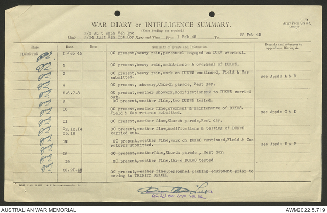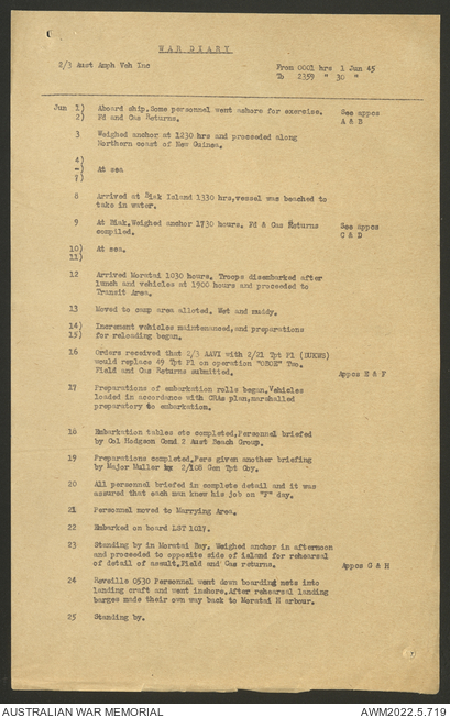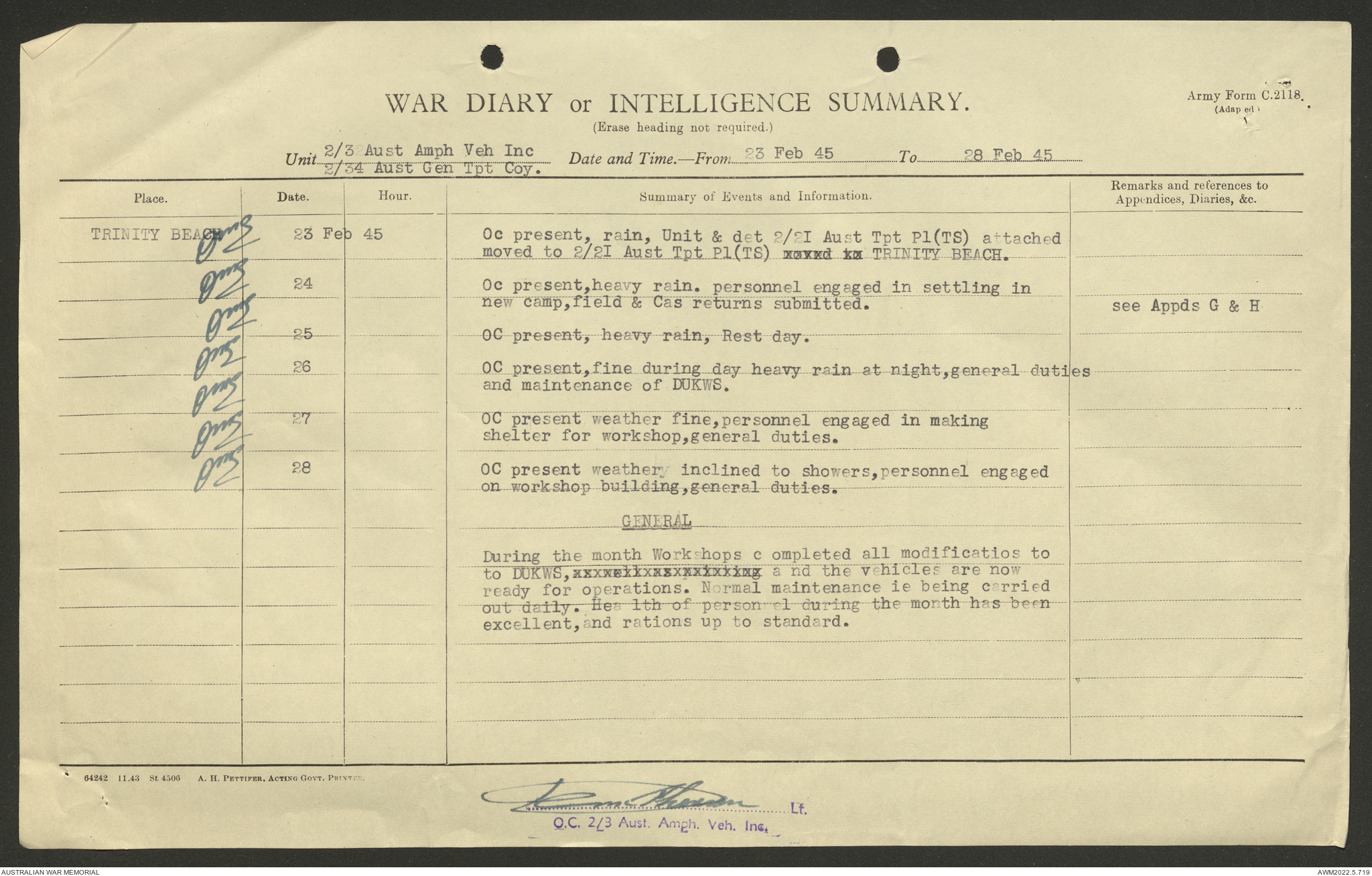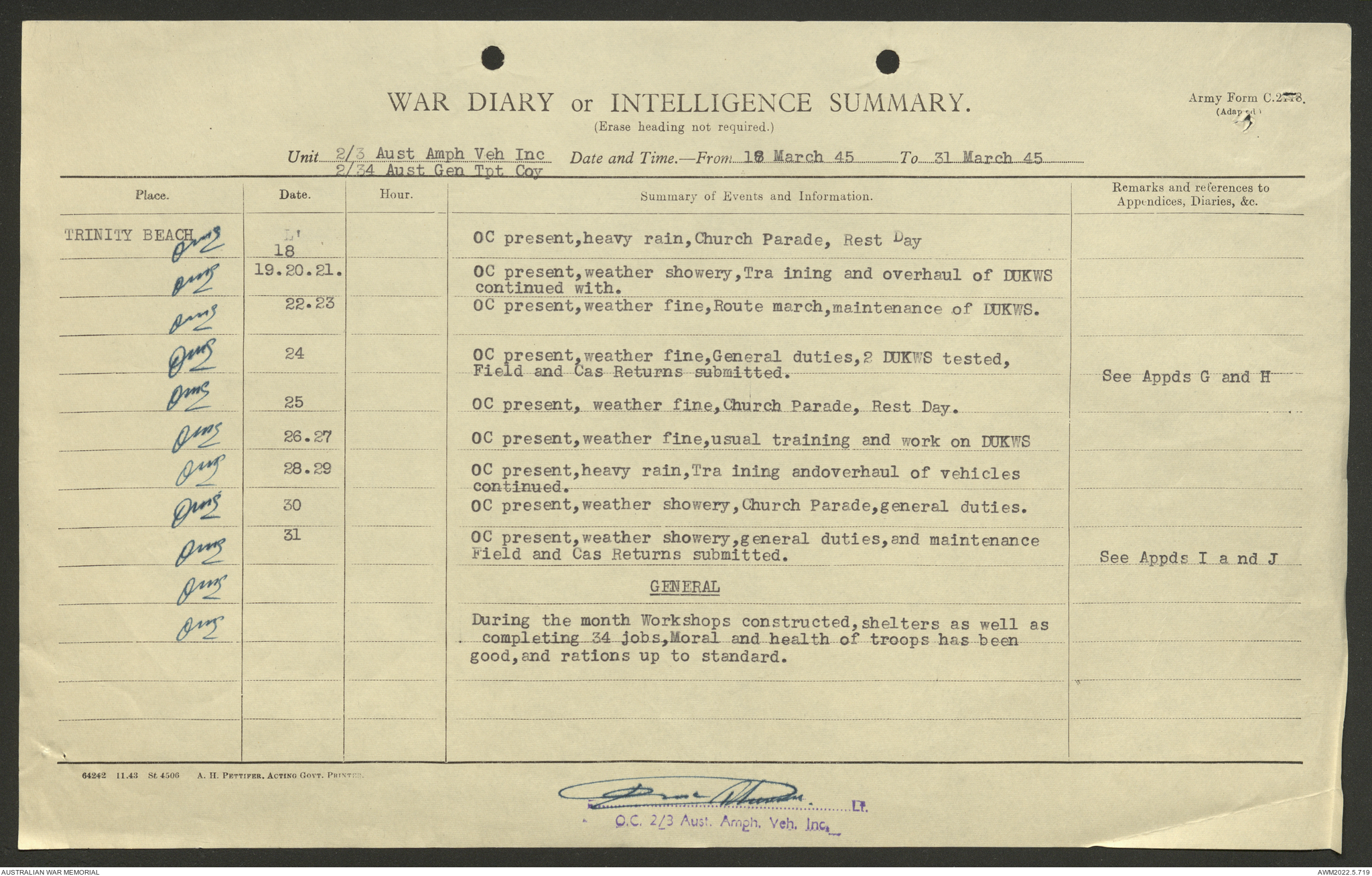 AWM52 10/6/3/2 - [Unit War Diaries, 1939-45 War] 2/3 Australian Amphibious Vehicle Increment, January - July 1945