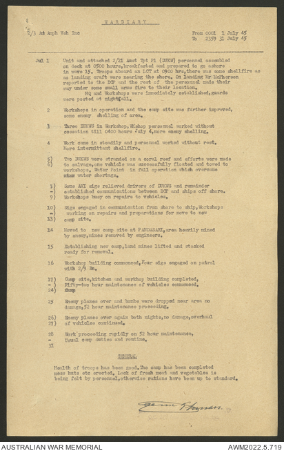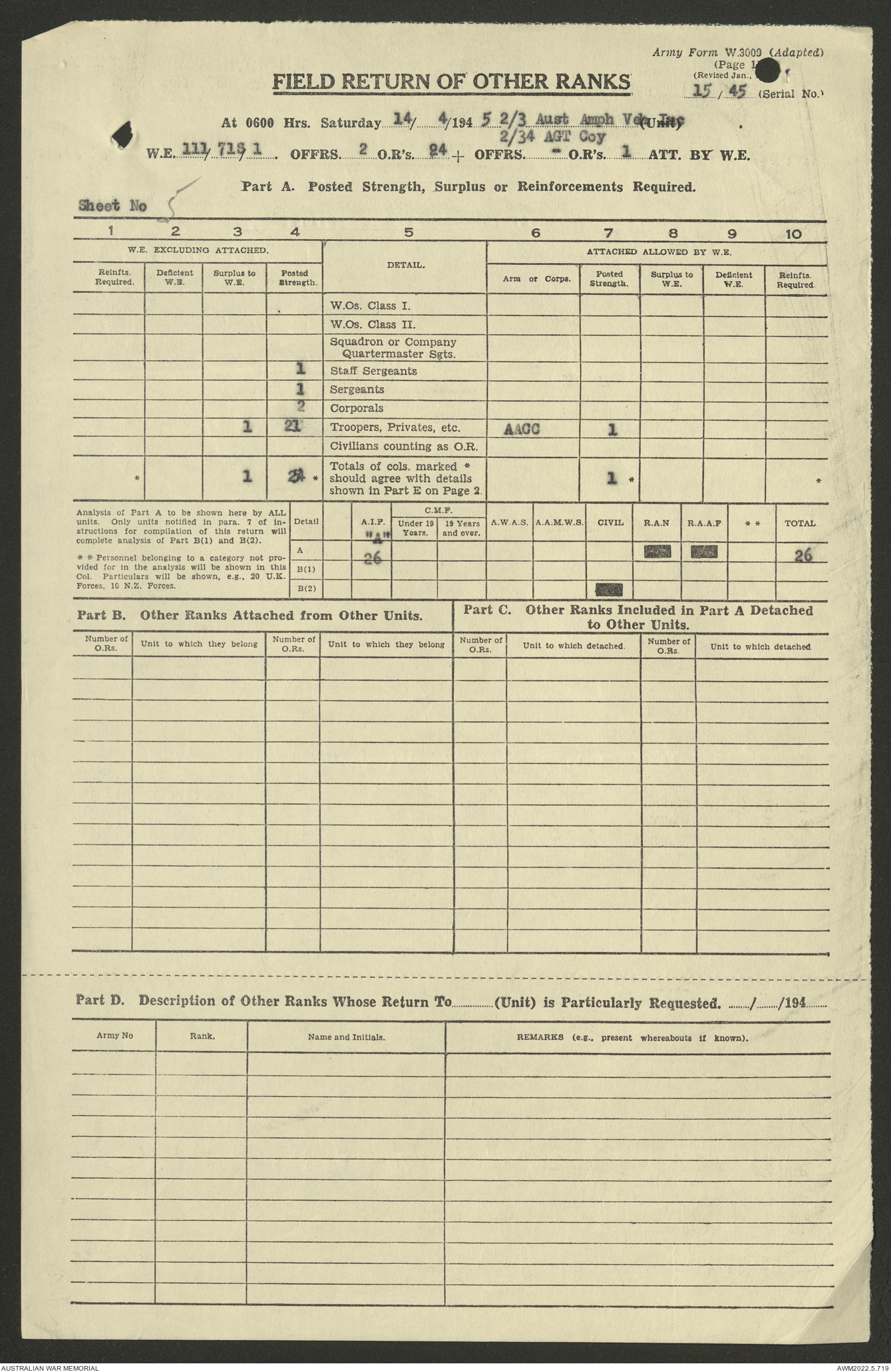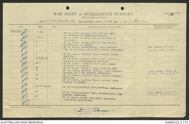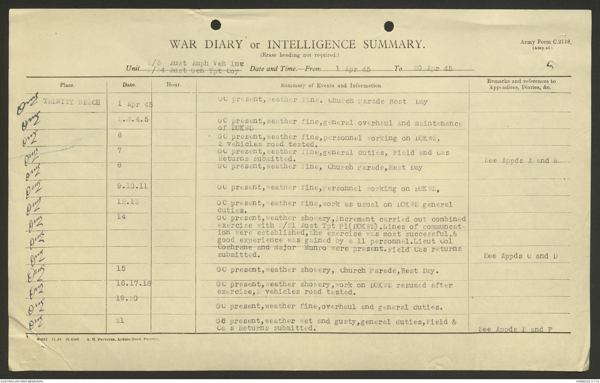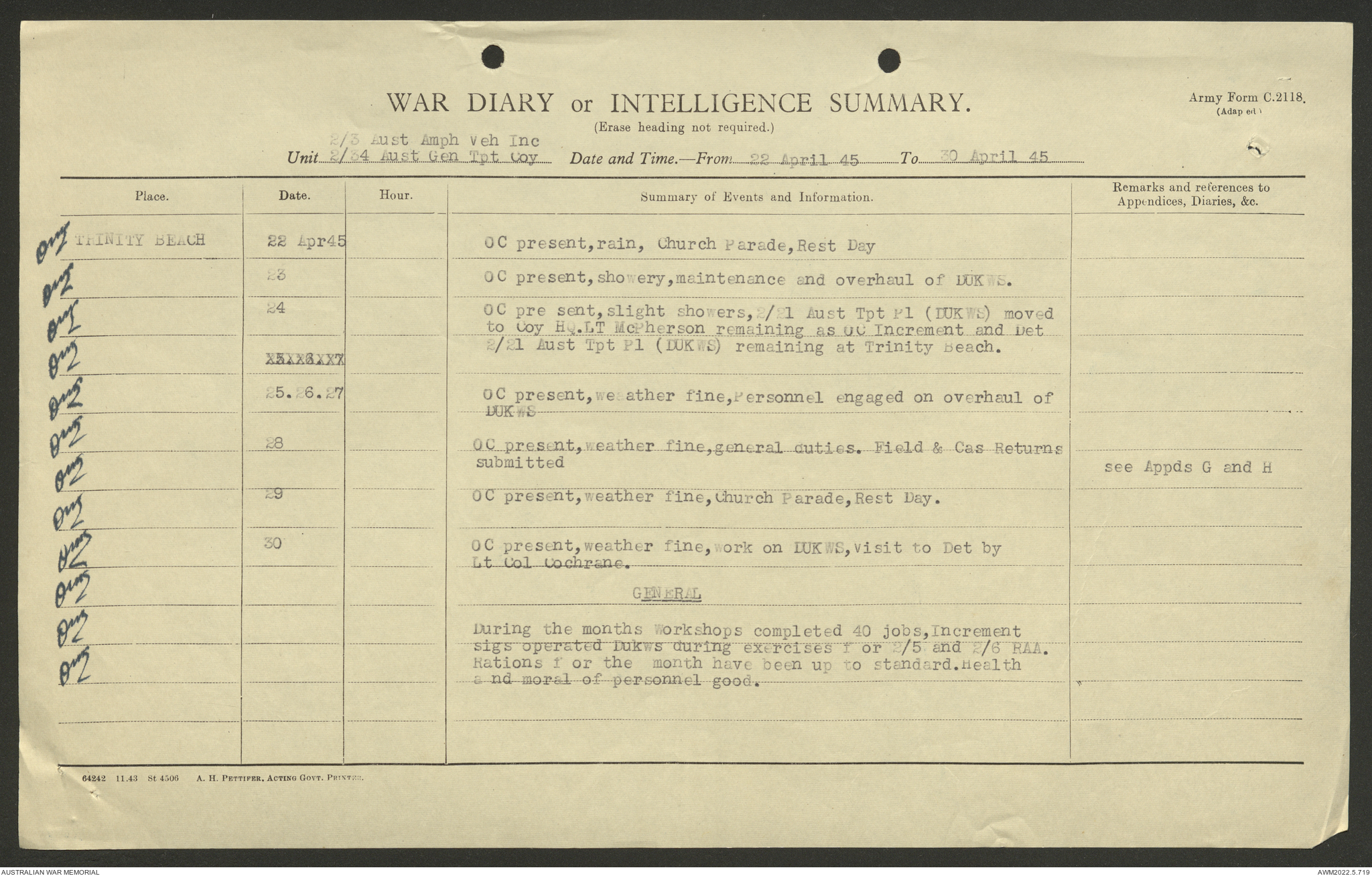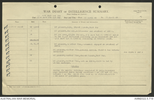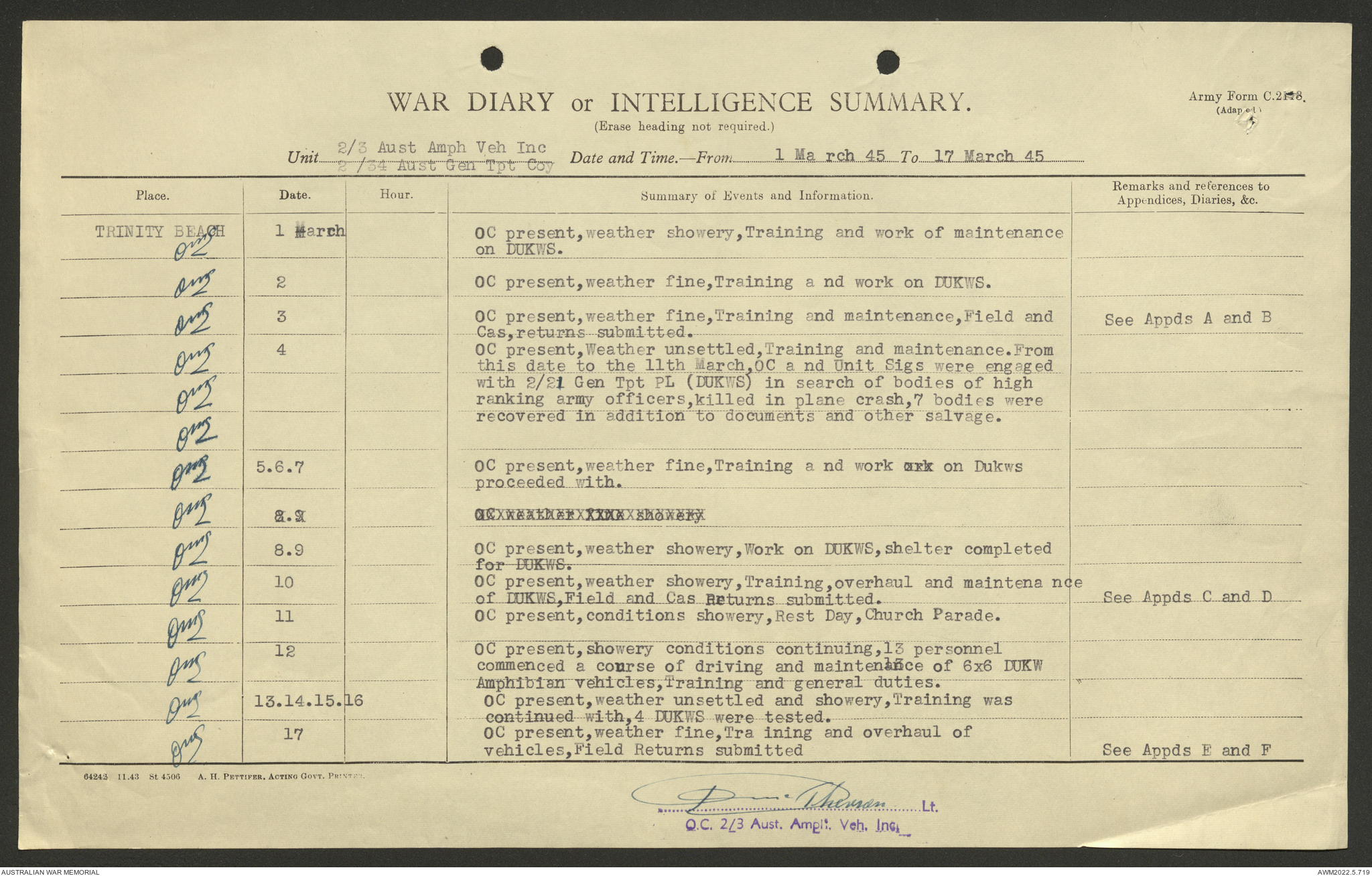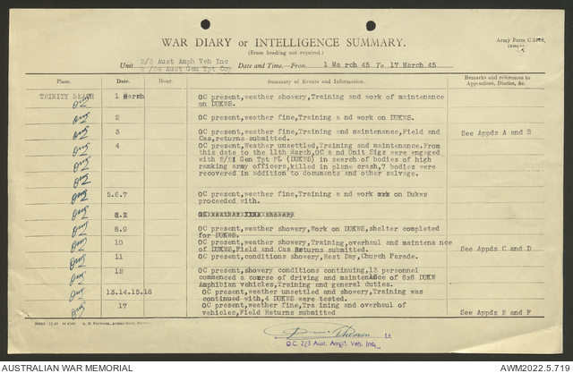 AWM52 10/6/3/2 - [Unit War Diaries, 1939-45 War] 2/3 Australian Amphibious Vehicle Increment, January - July 1945