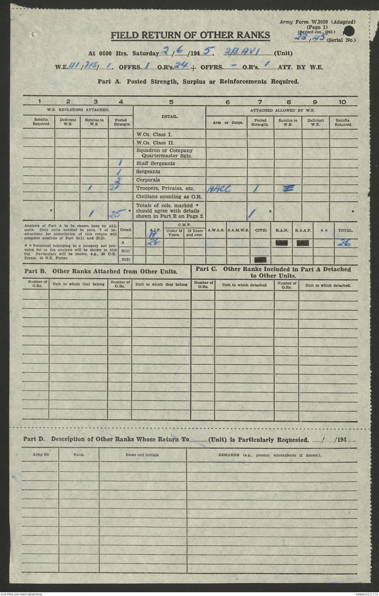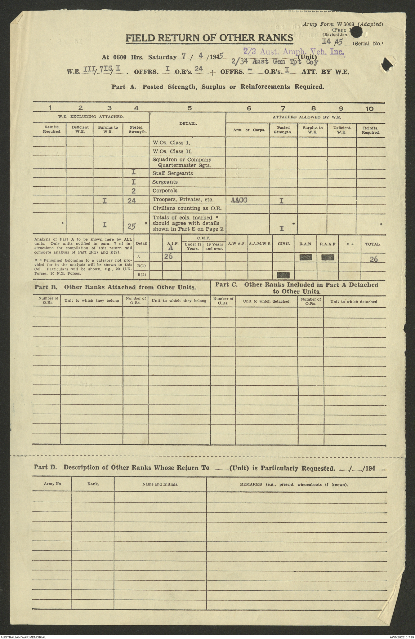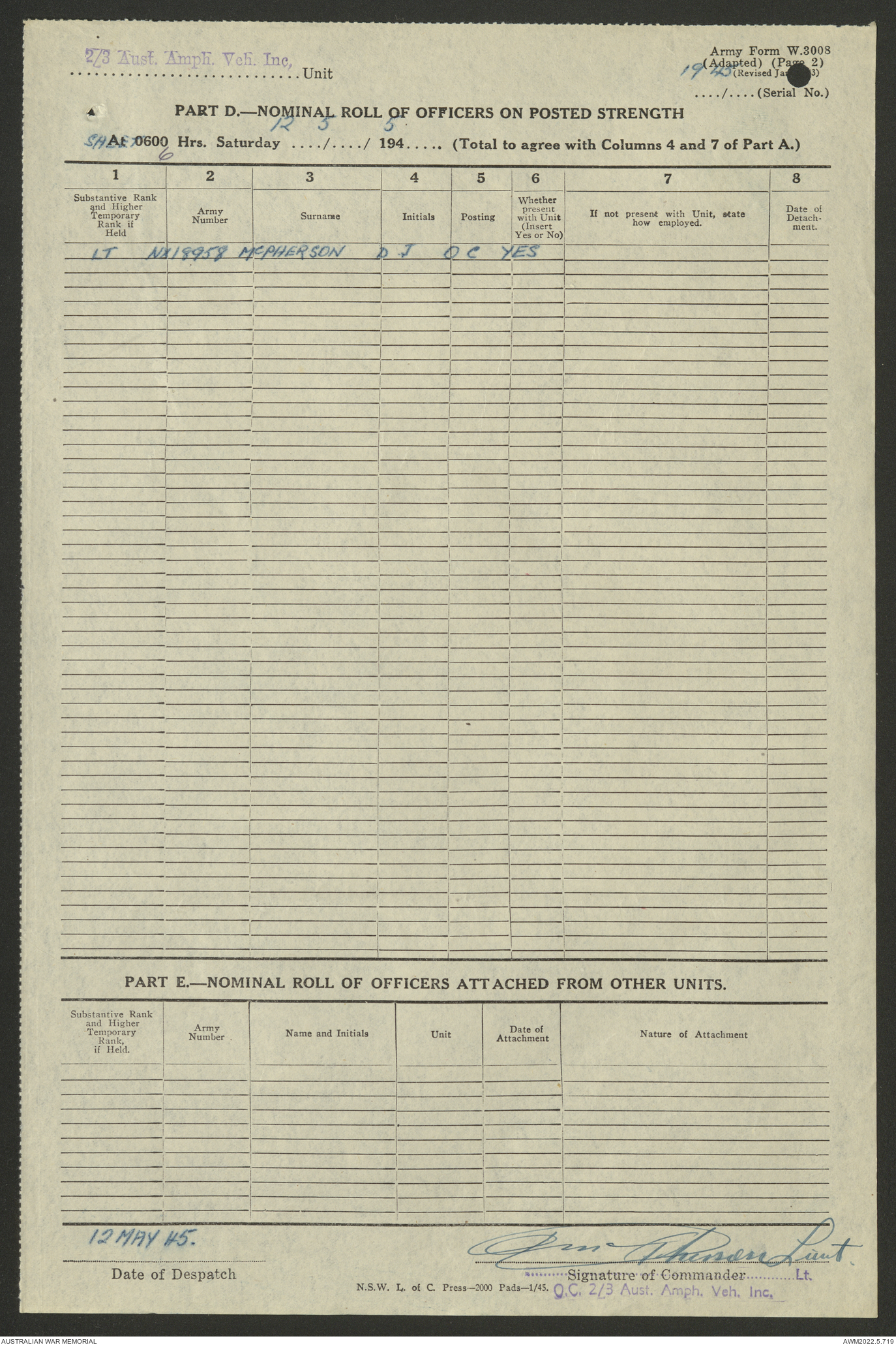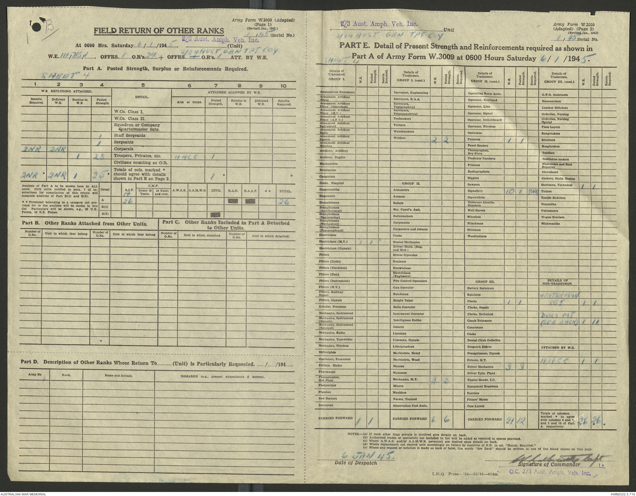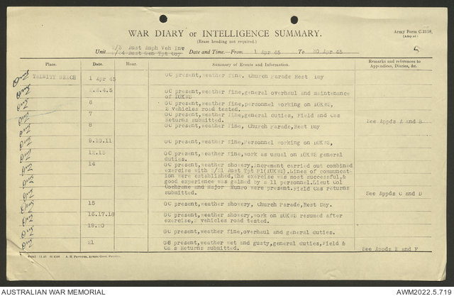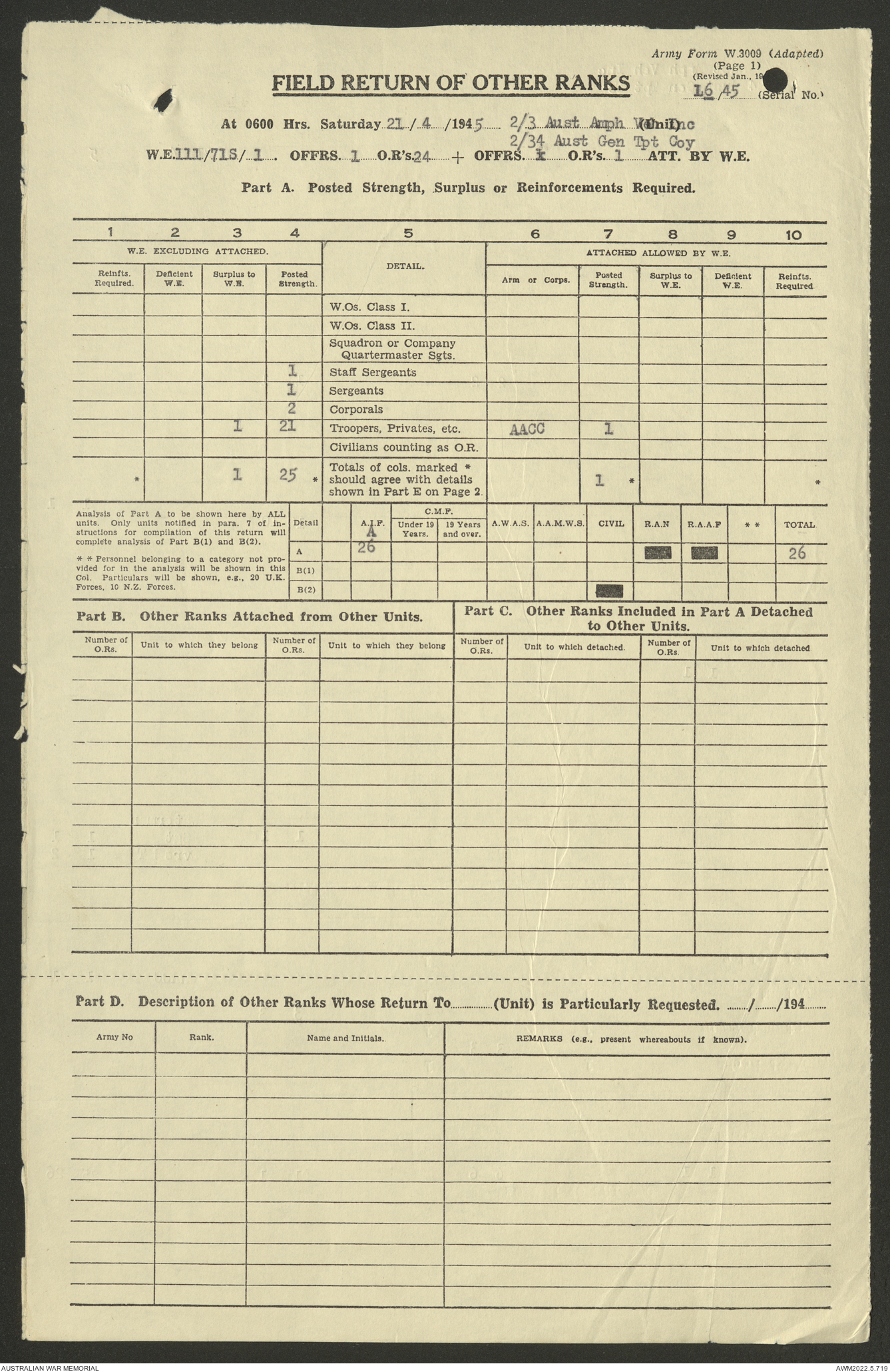 AWM52 10/6/3/2 - [Unit War Diaries, 1939-45 War] 2/3 Australian Amphibious Vehicle Increment, January - July 1945