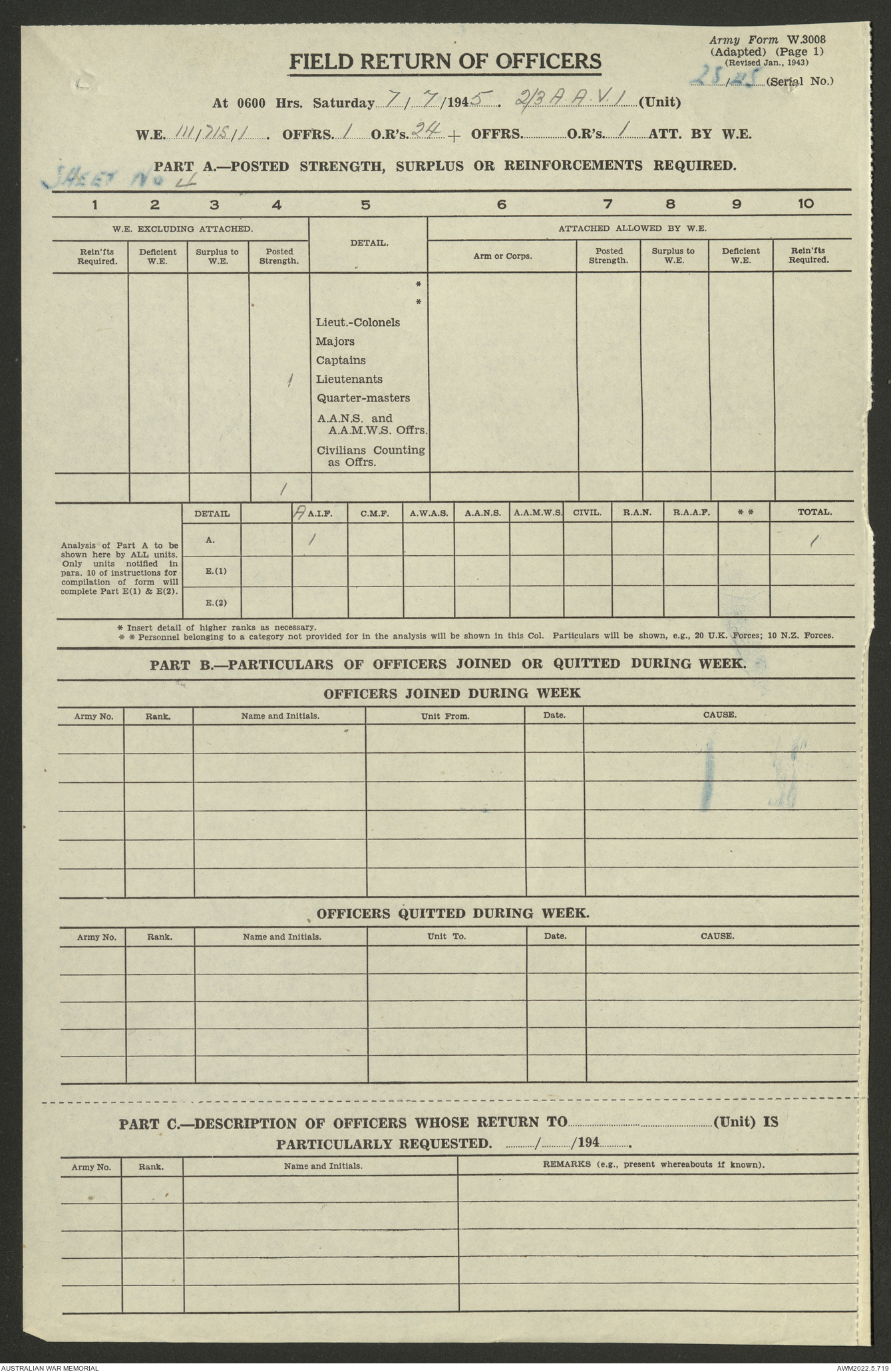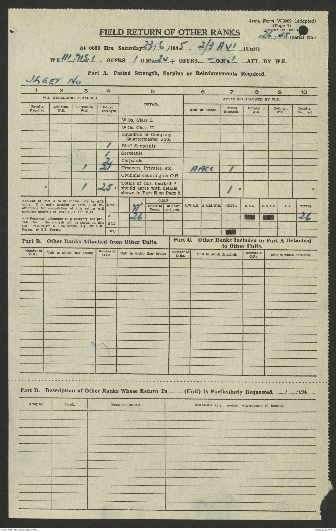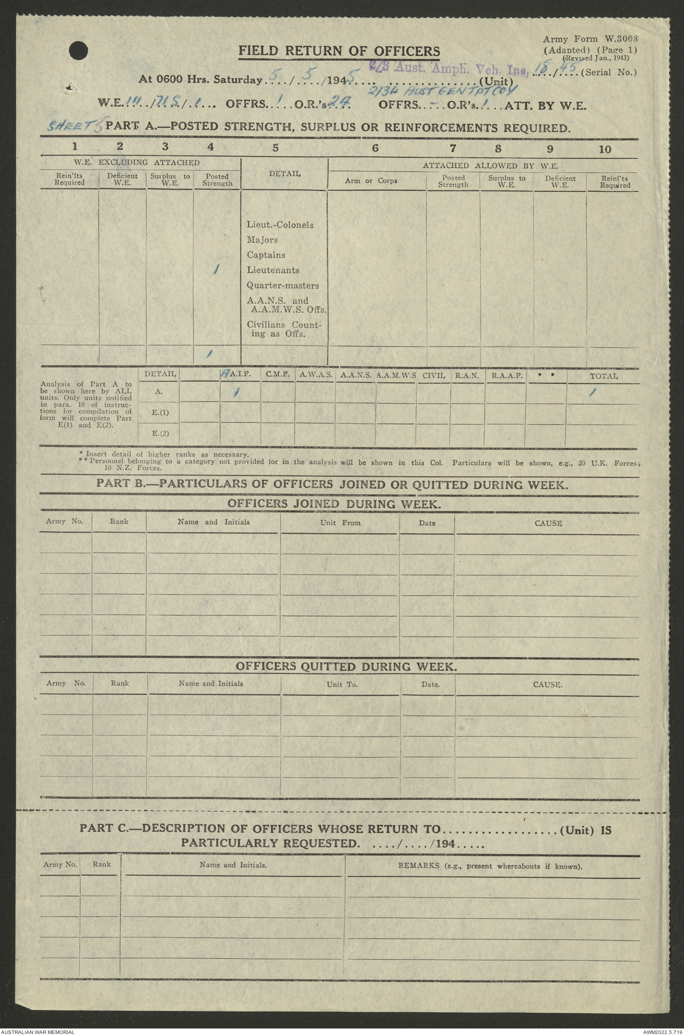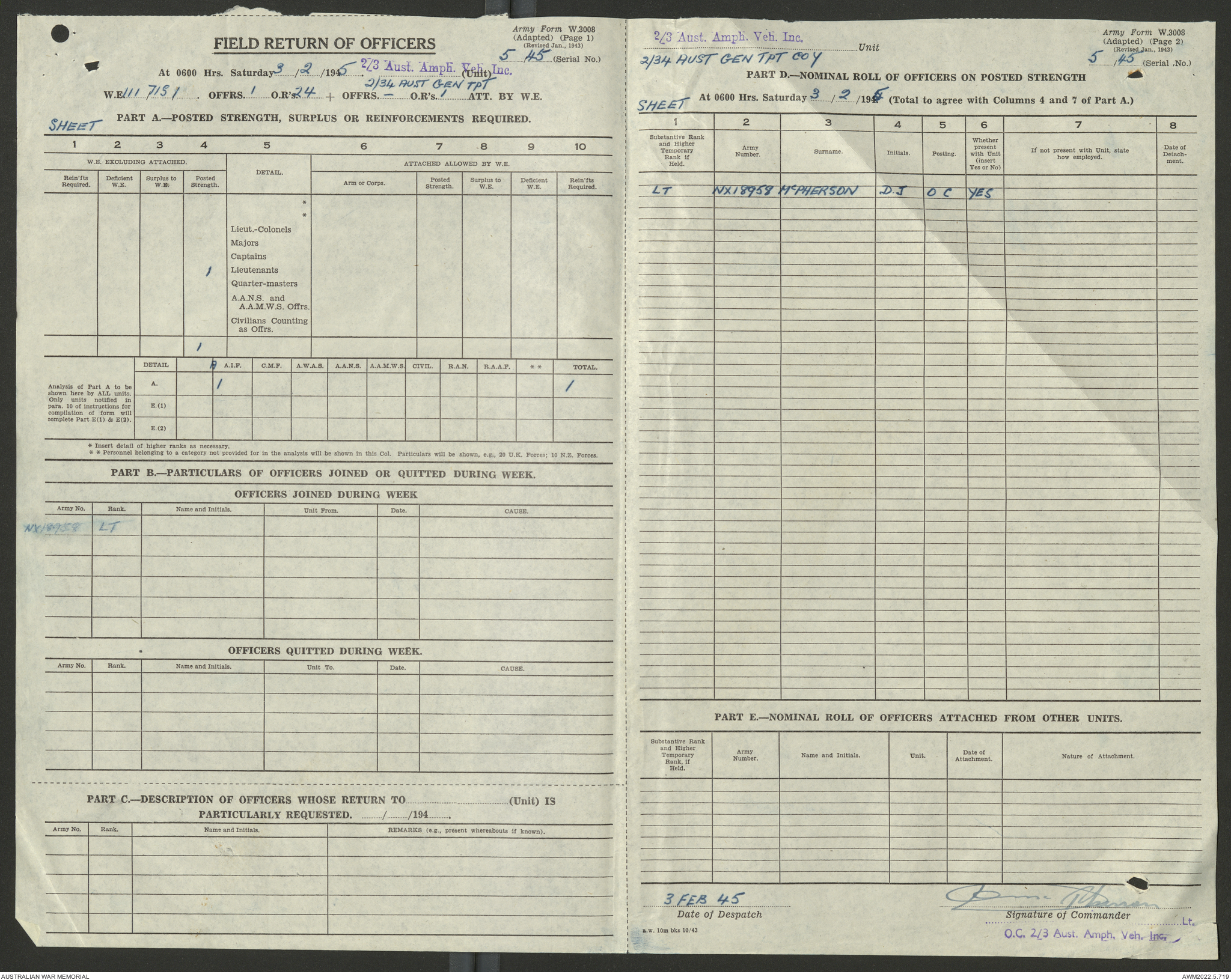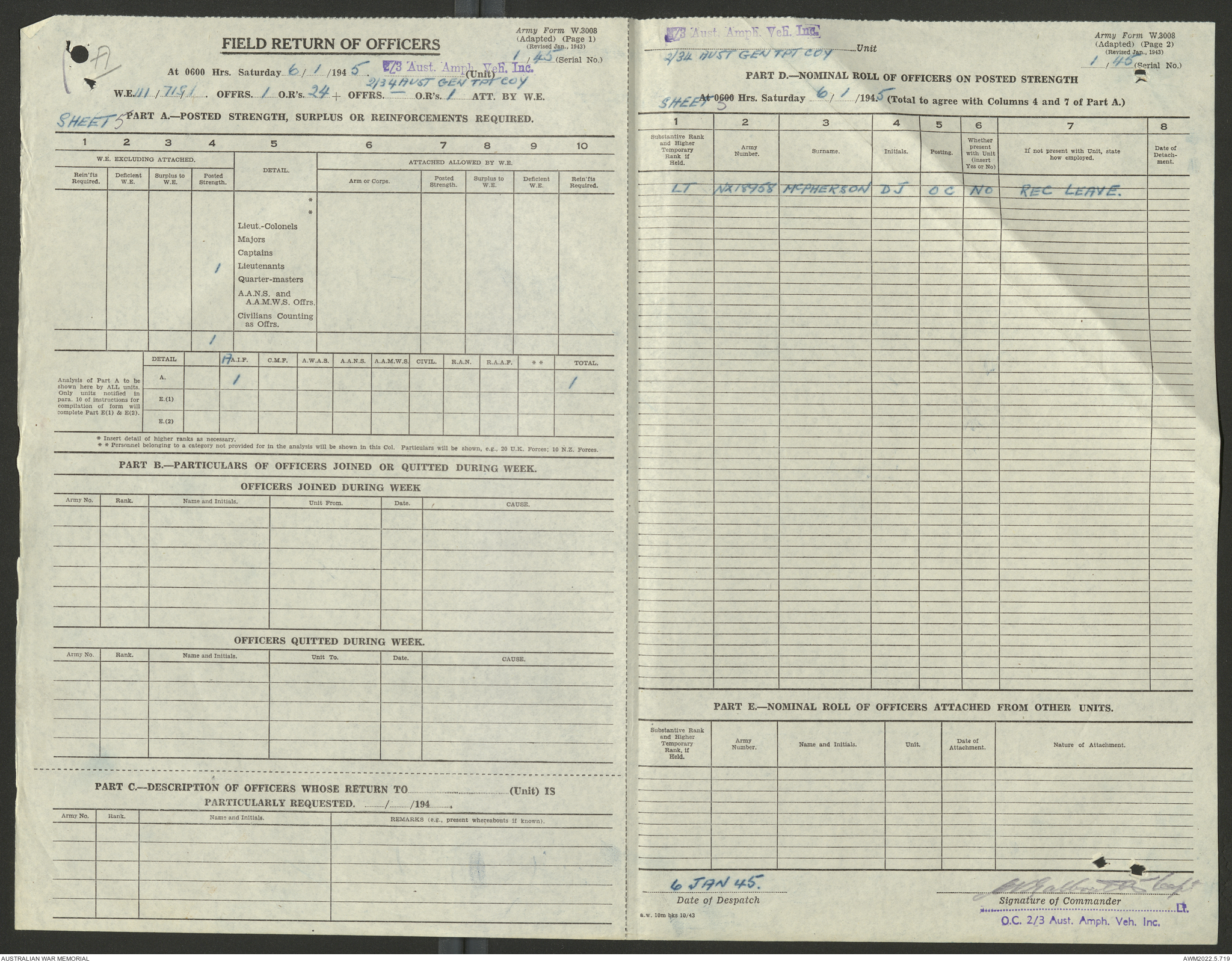 AWM52 10/6/3/2 - [Unit War Diaries, 1939-45 War] 2/3 Australian Amphibious Vehicle Increment, January - July 1945