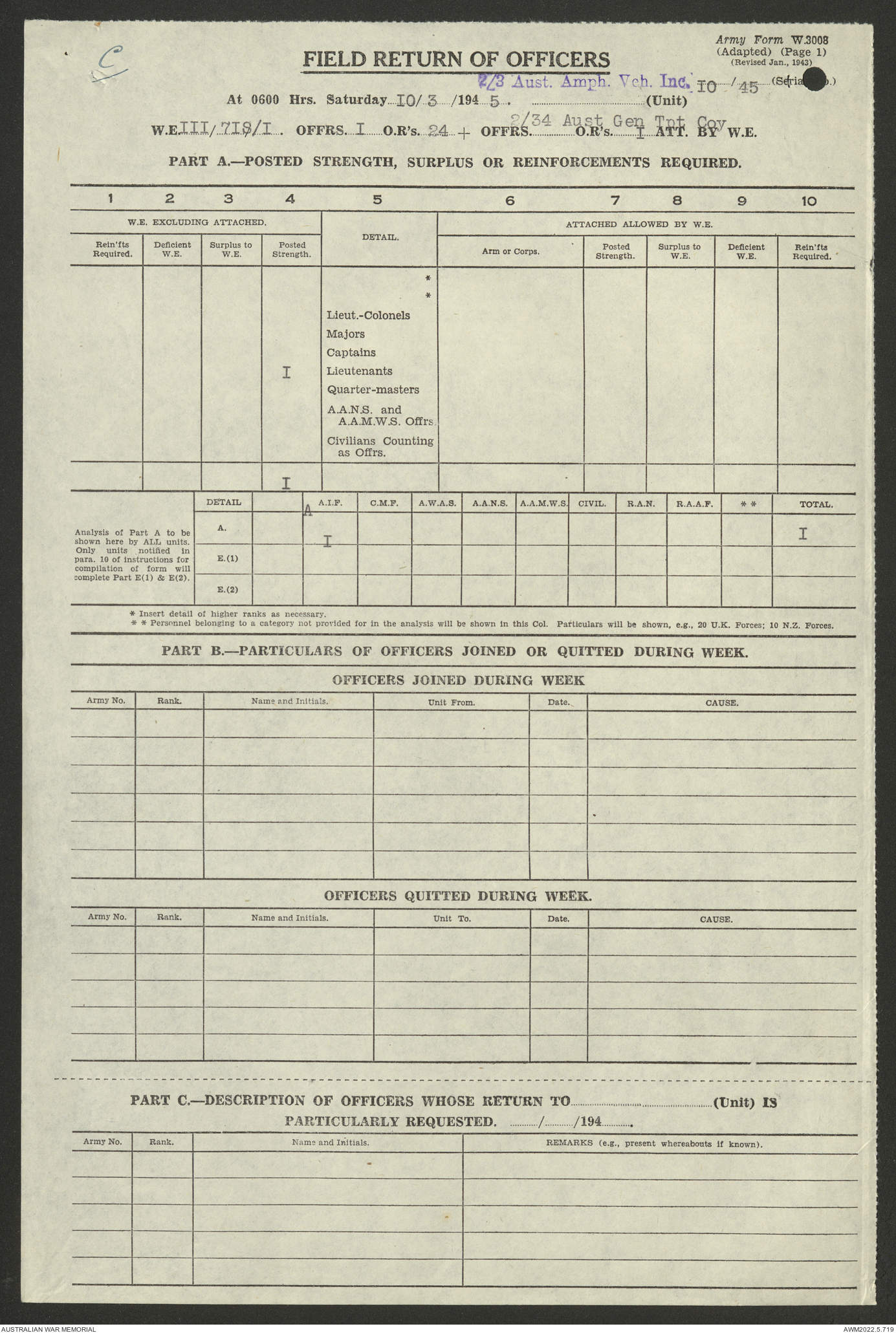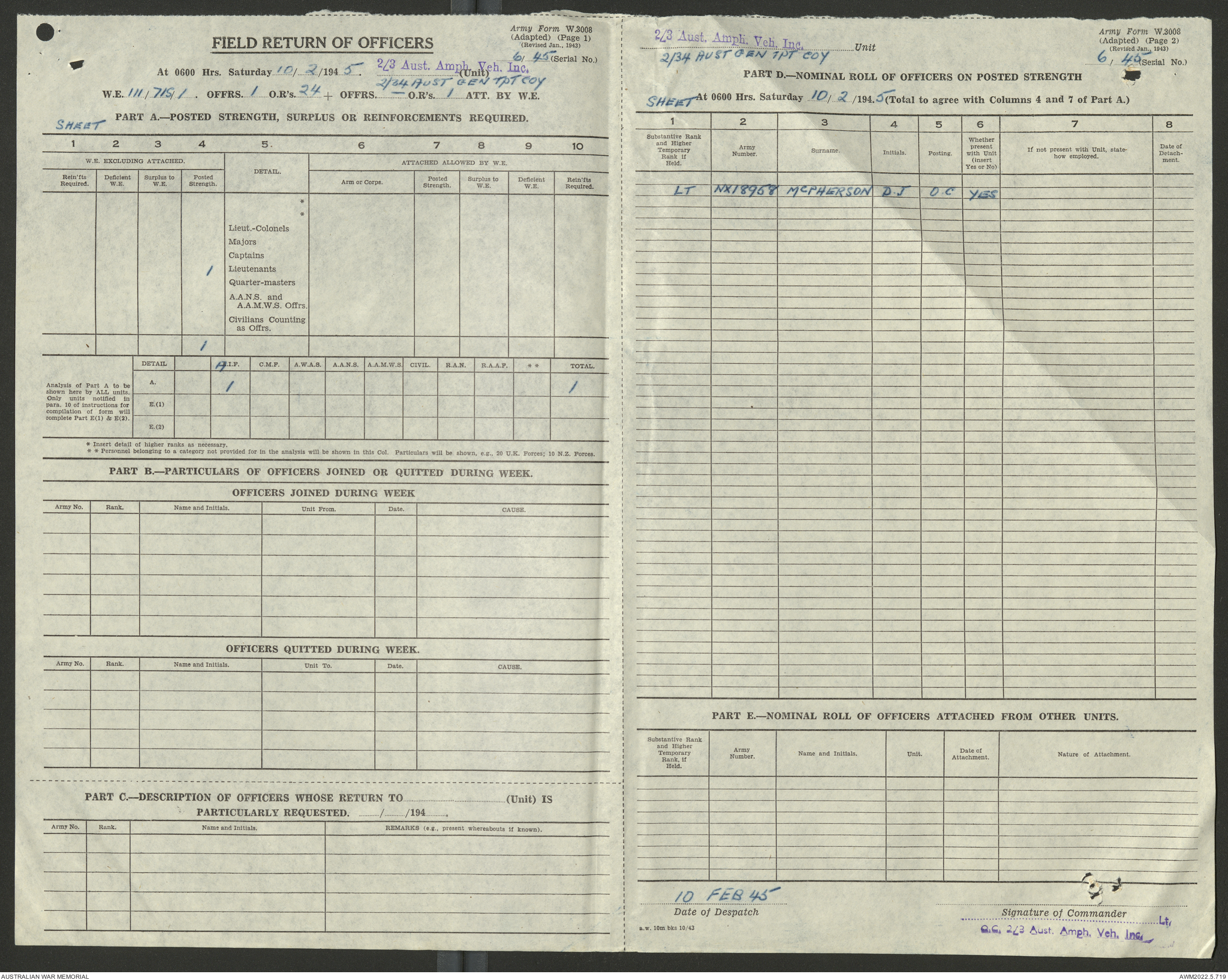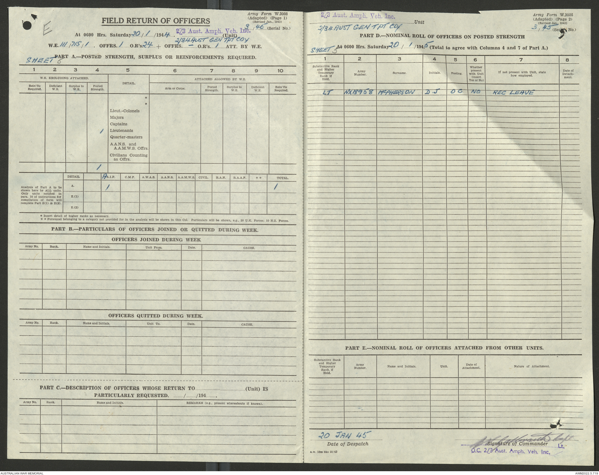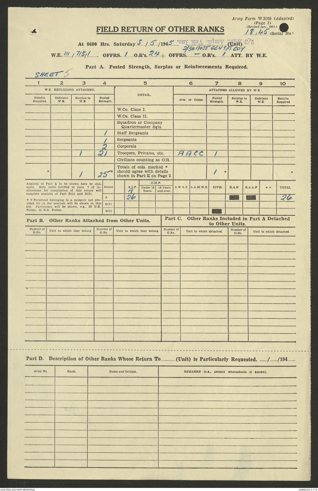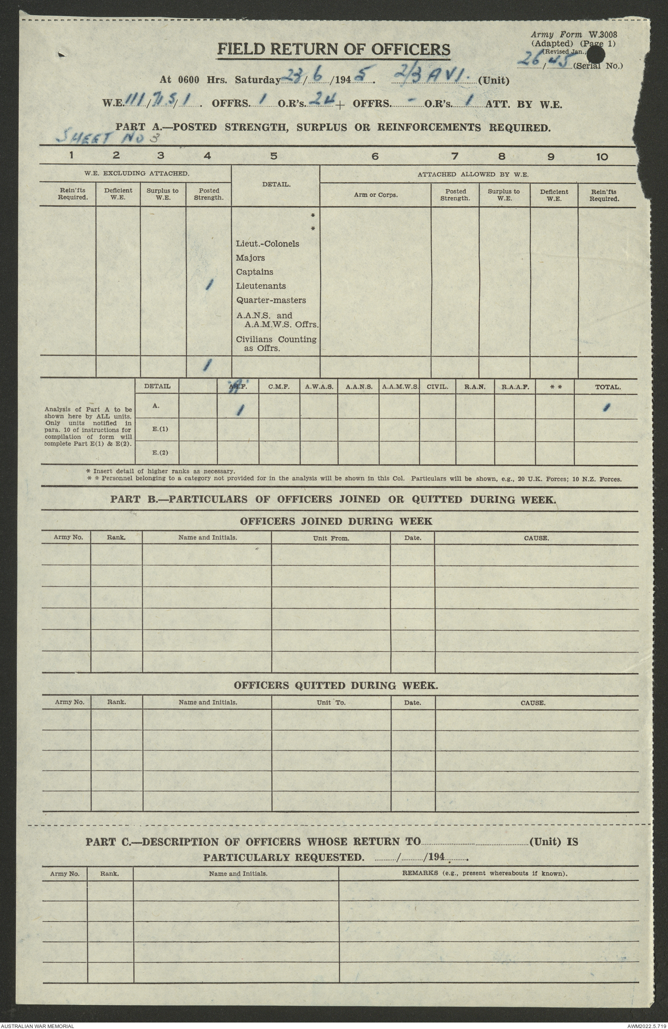 AWM52 10/6/3/2 - [Unit War Diaries, 1939-45 War] 2/3 Australian Amphibious Vehicle Increment, January - July 1945