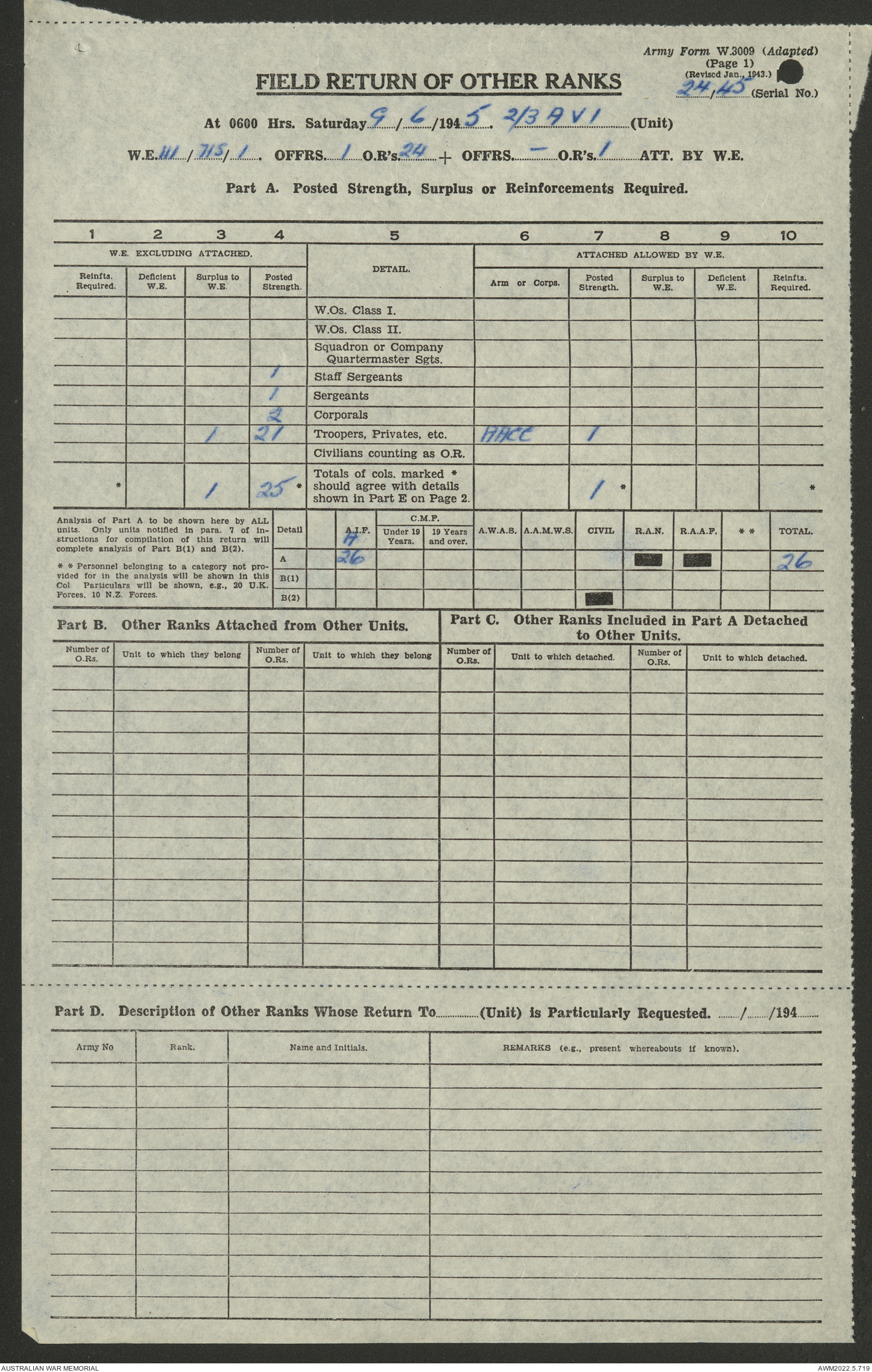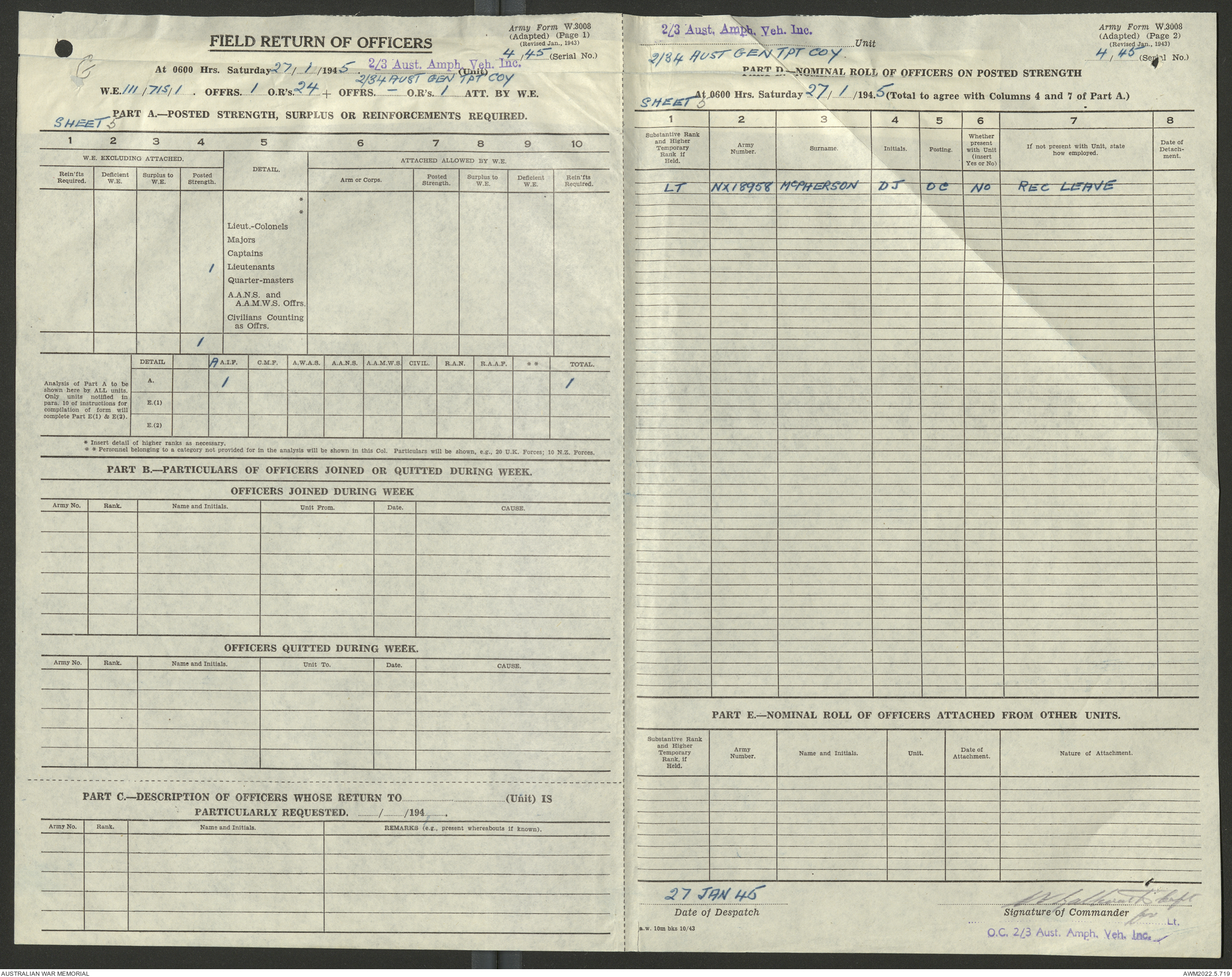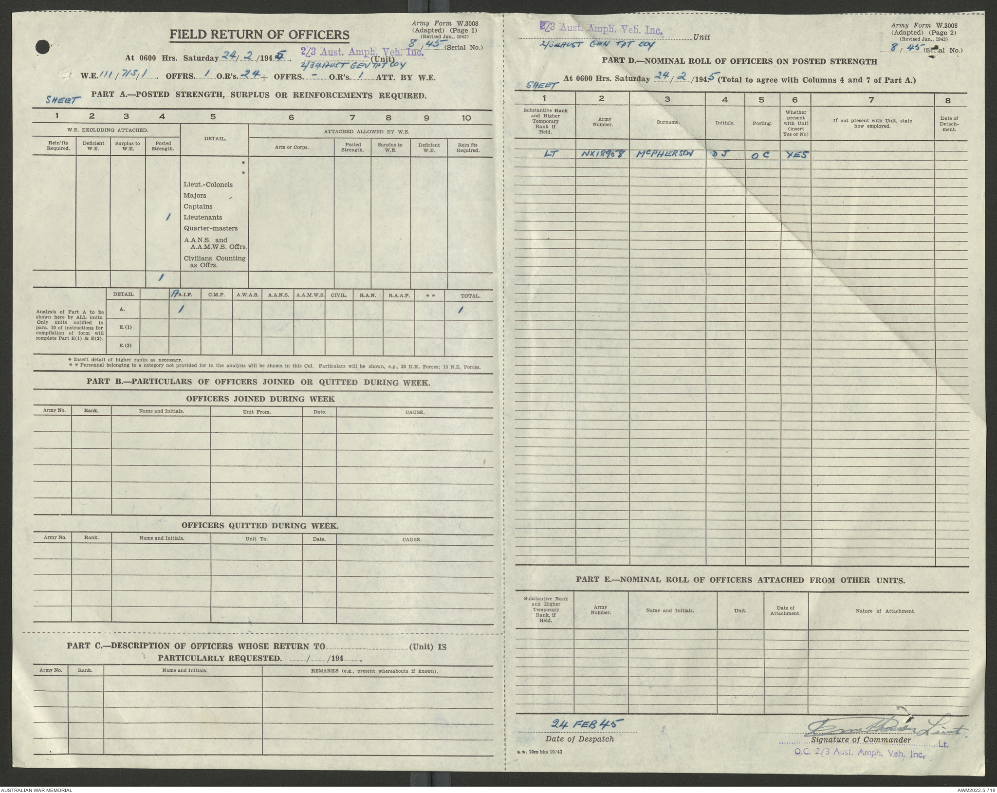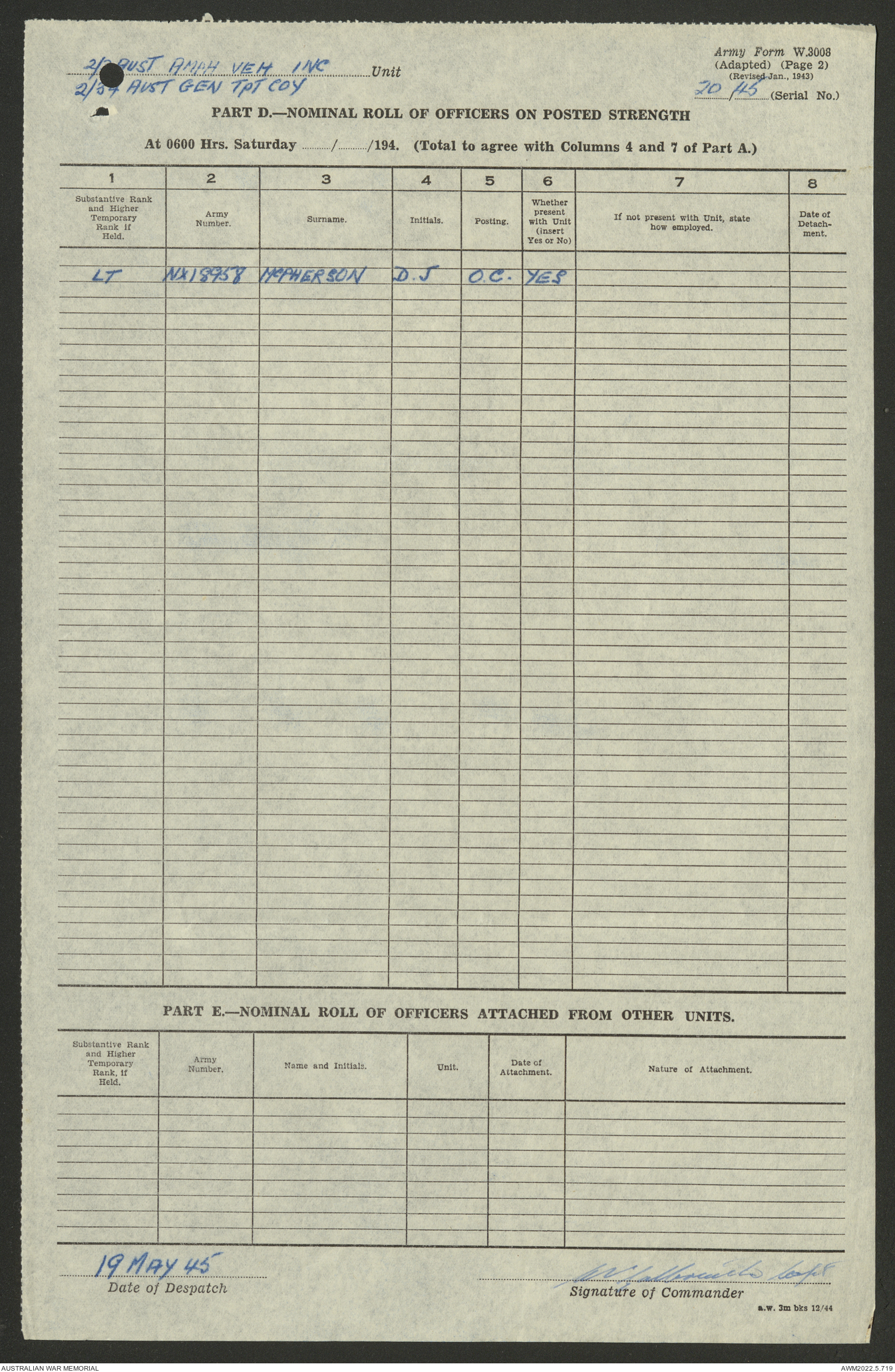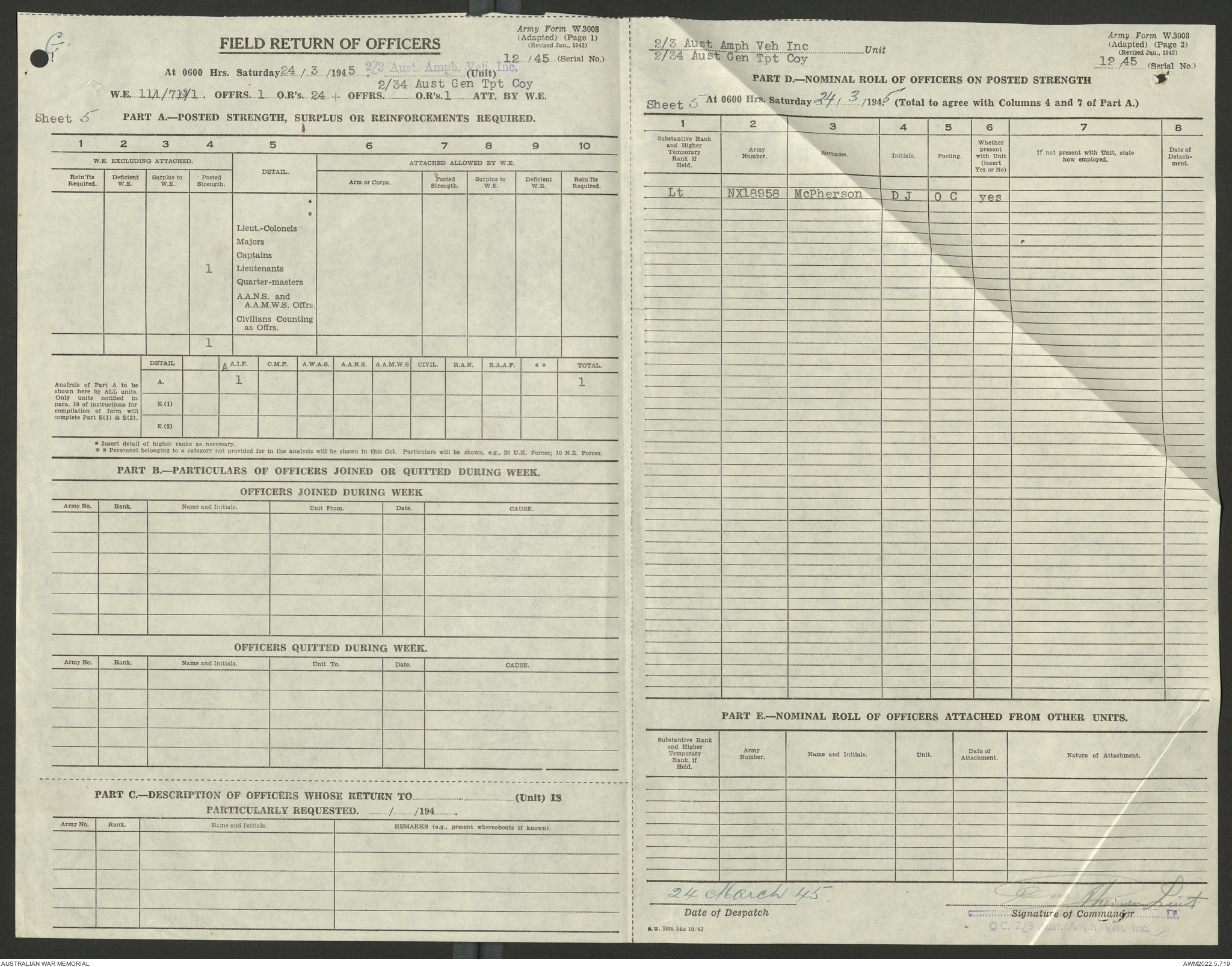 AWM52 10/6/3/2 - [Unit War Diaries, 1939-45 War] 2/3 Australian Amphibious Vehicle Increment, January - July 1945