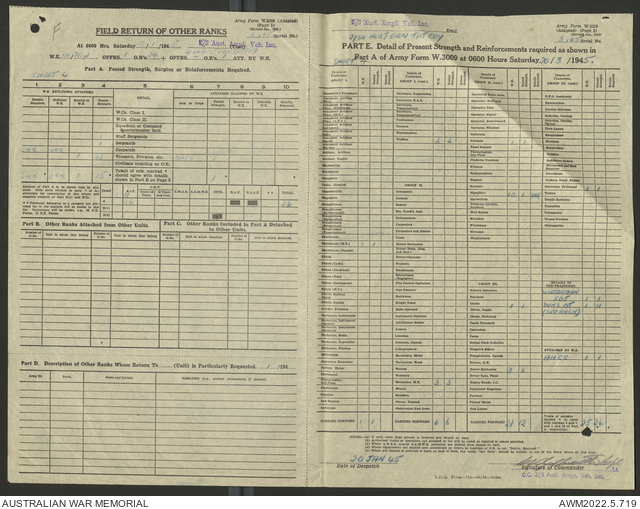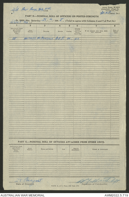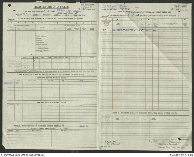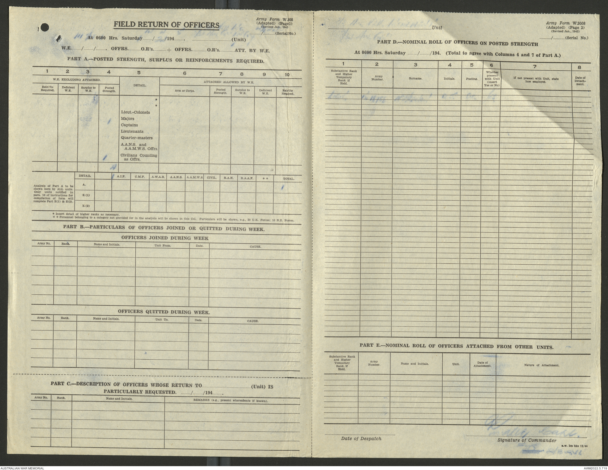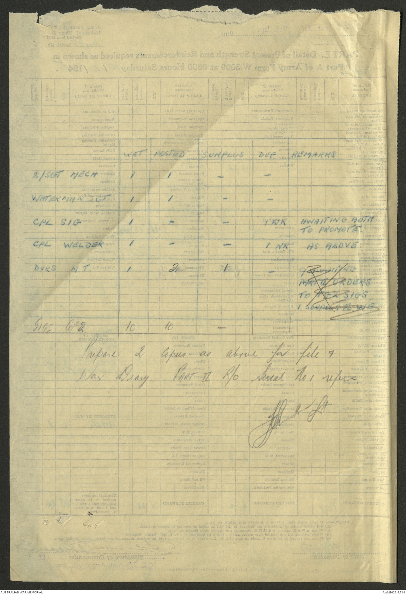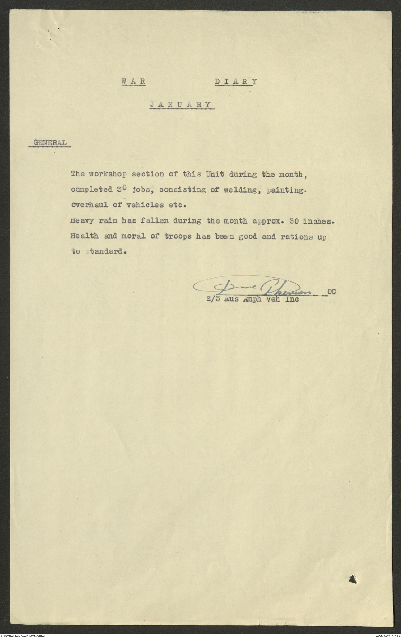 2nd AIF (Australian Imperial Force) and CMF (Citizen Military Forces) unit war diaries, 1939-45 War