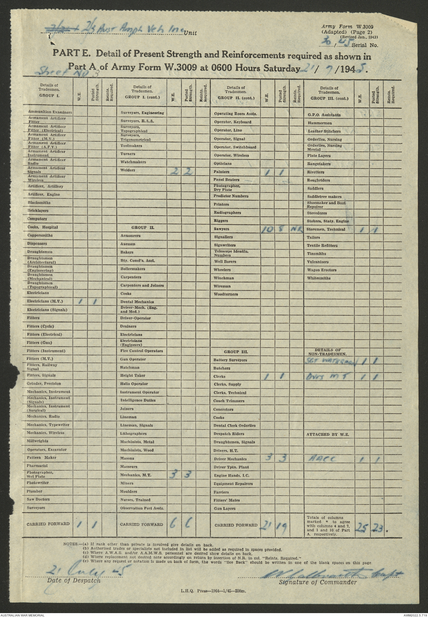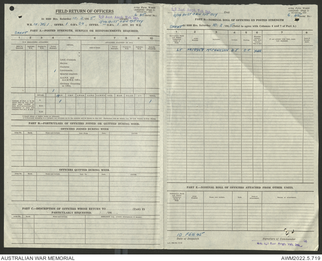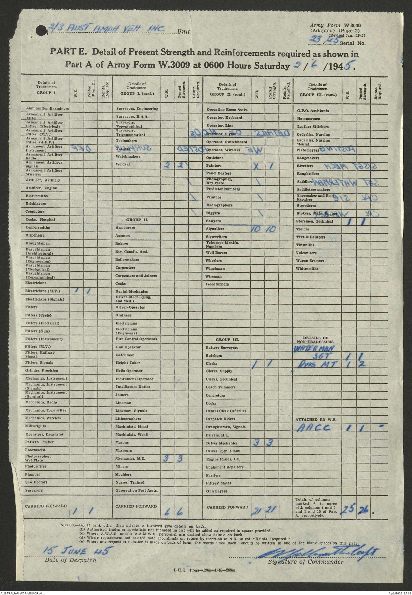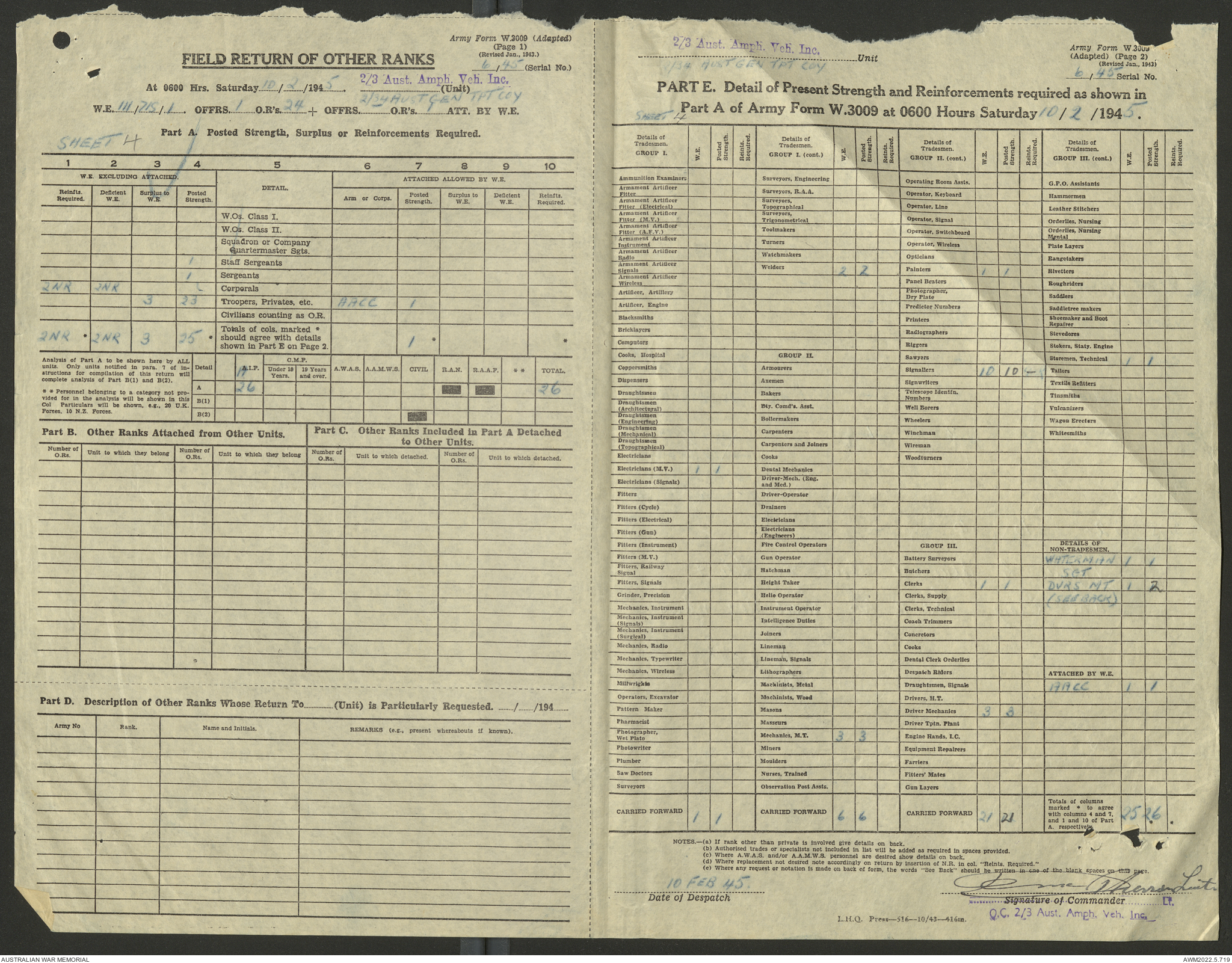2nd AIF (Australian Imperial Force) and CMF (Citizen Military Forces) unit war diaries, 1939-45 War