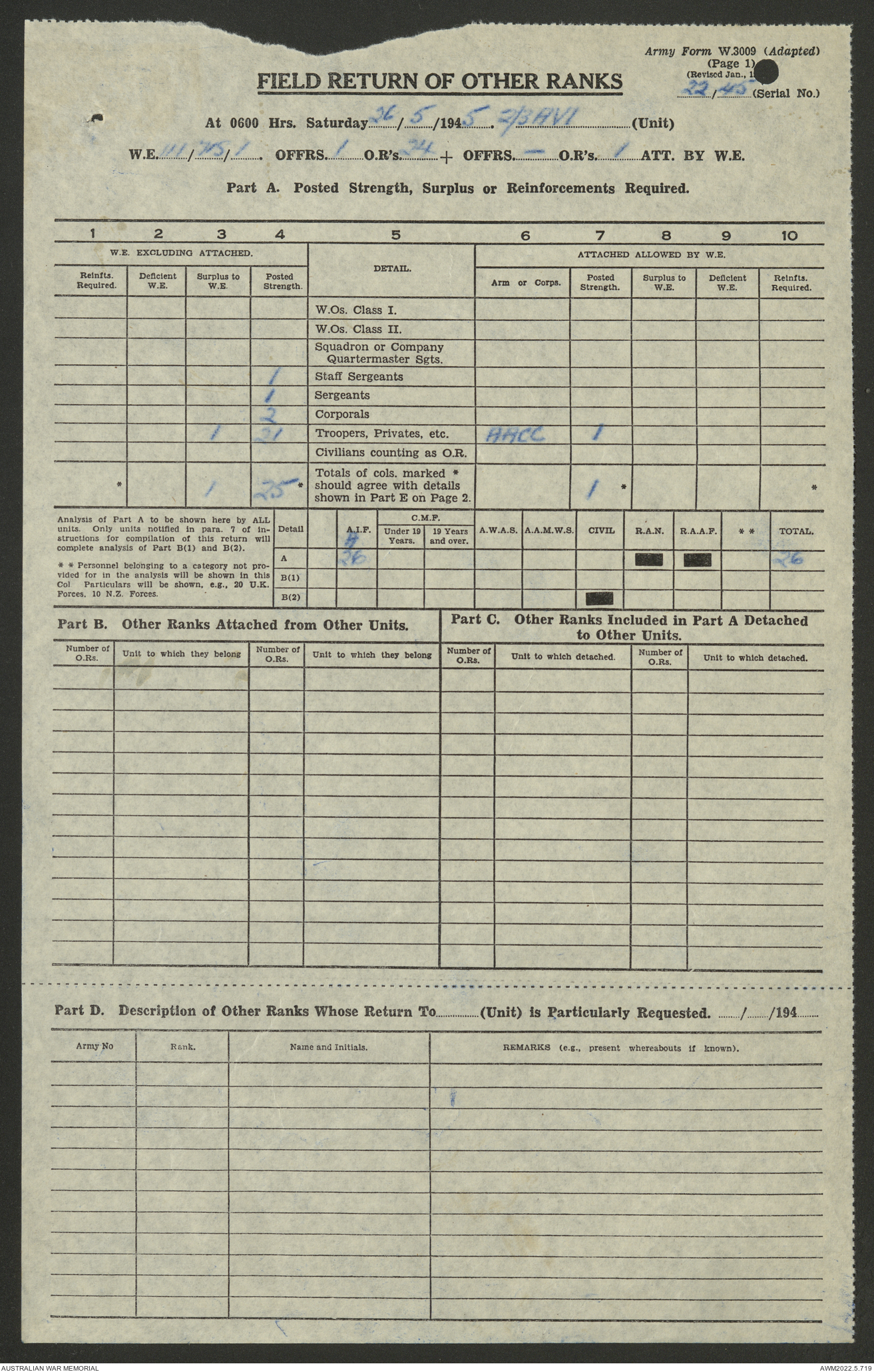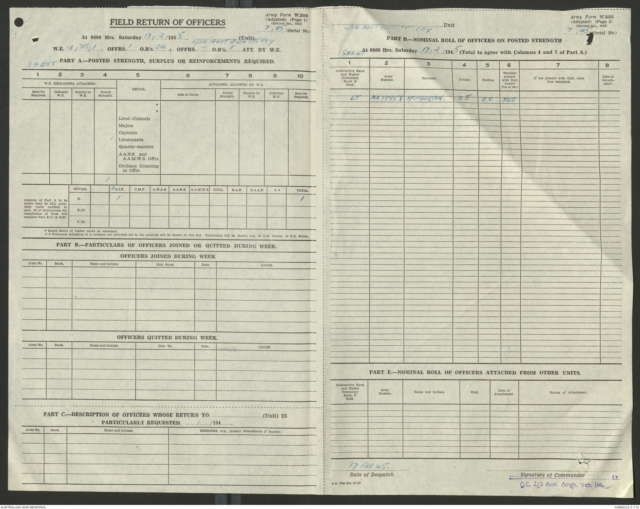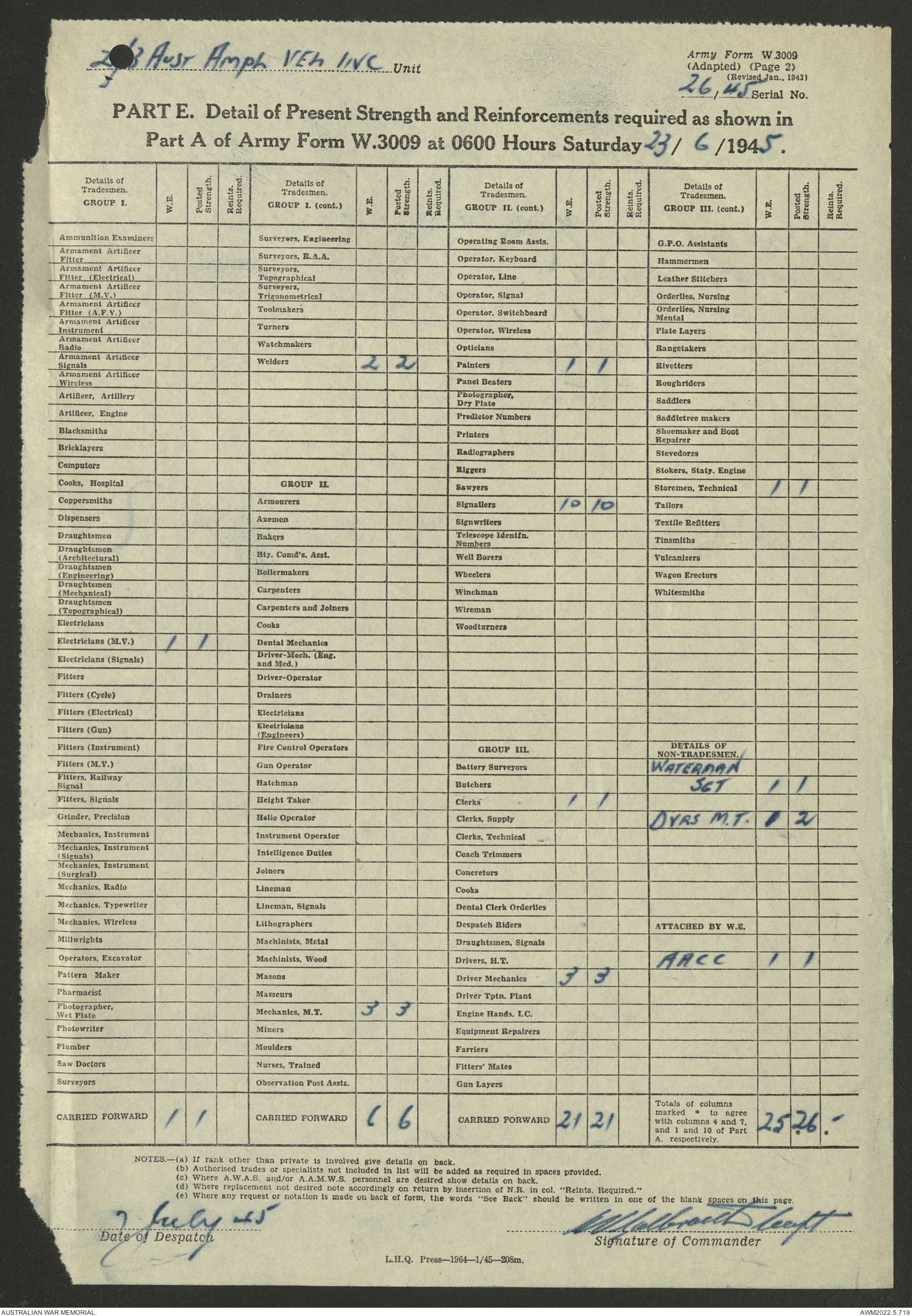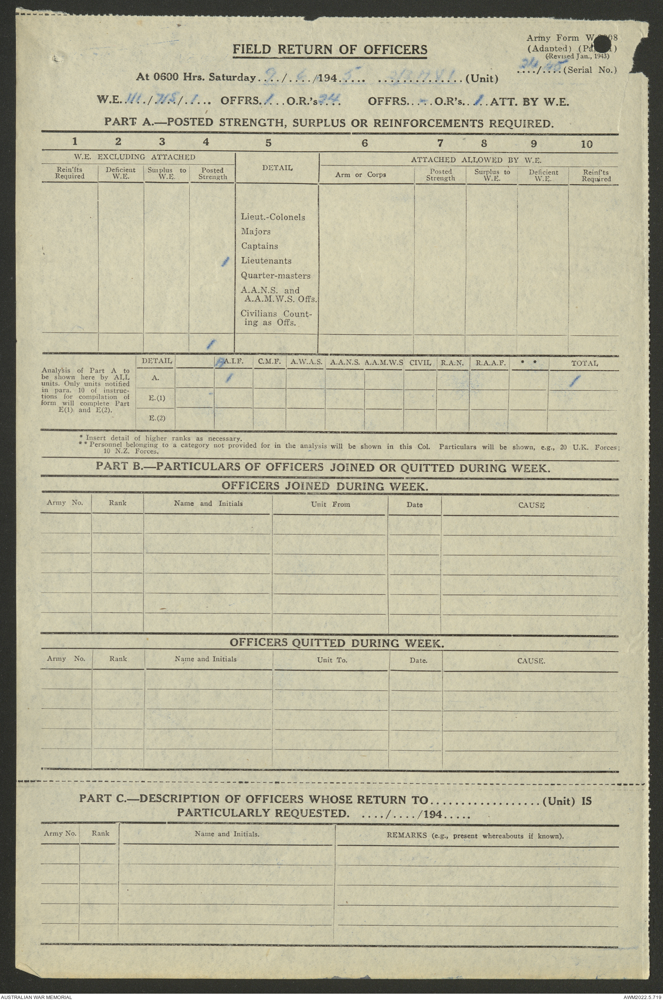 2nd AIF (Australian Imperial Force) and CMF (Citizen Military Forces) unit war diaries, 1939-45 War