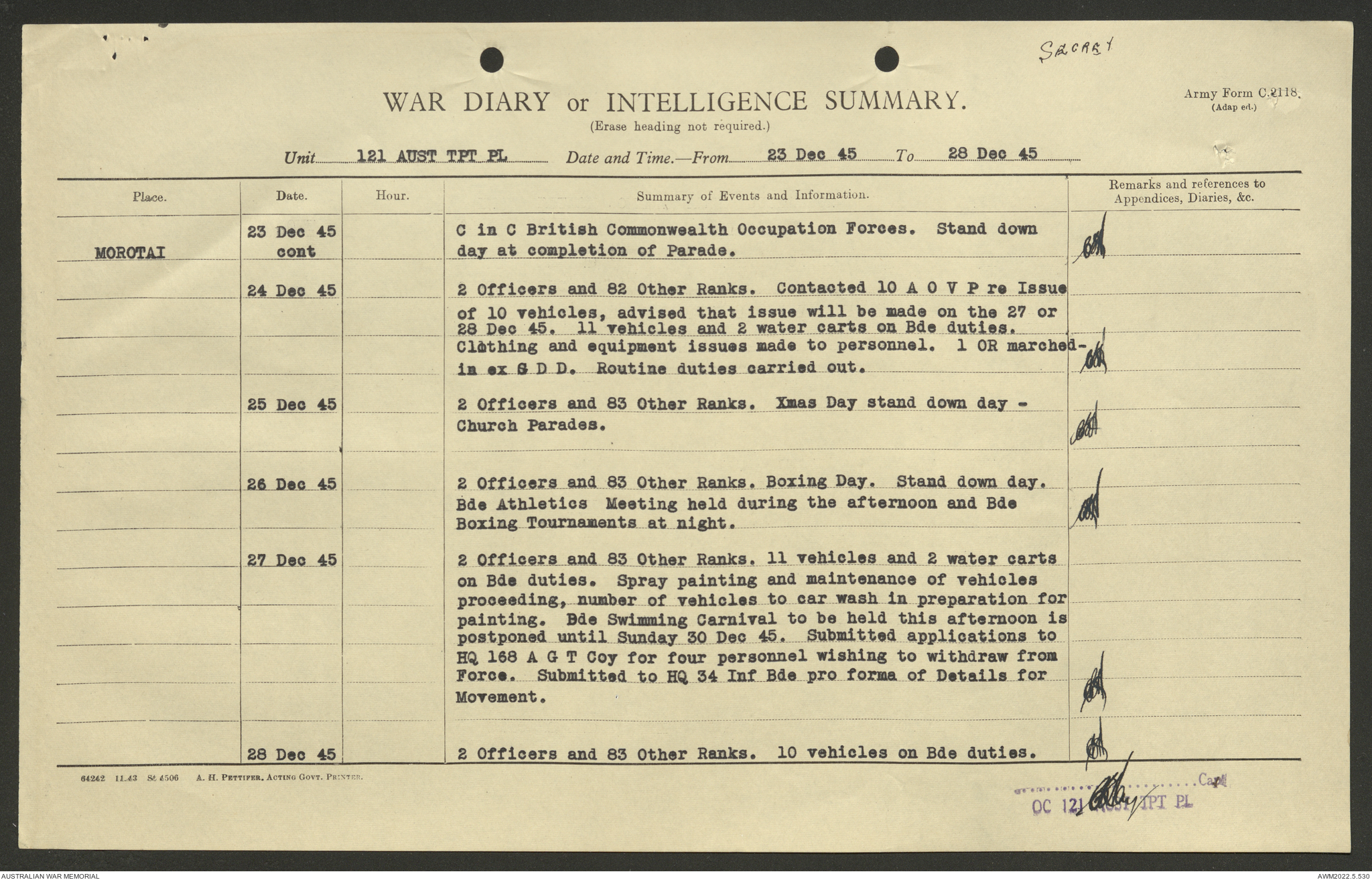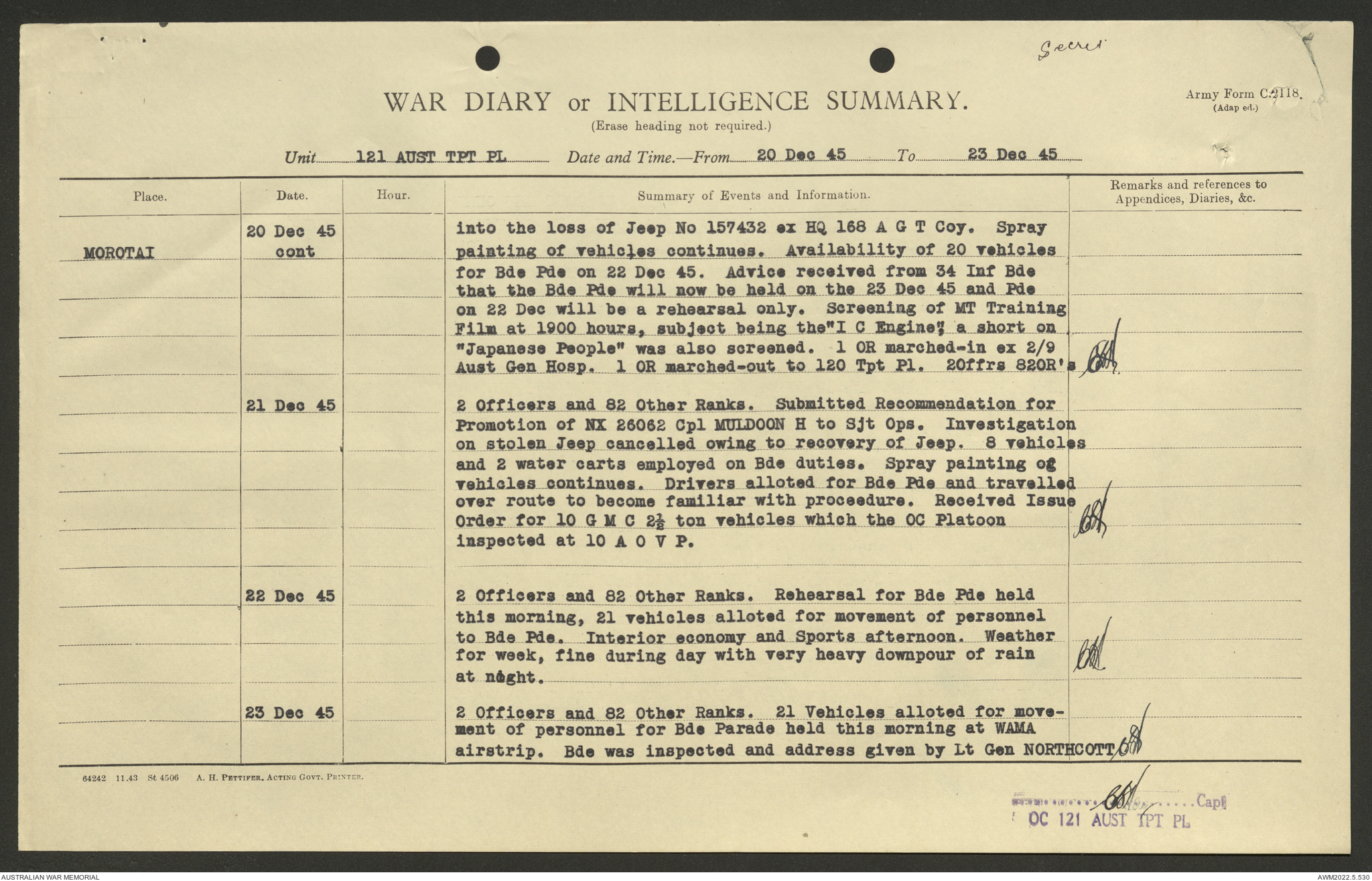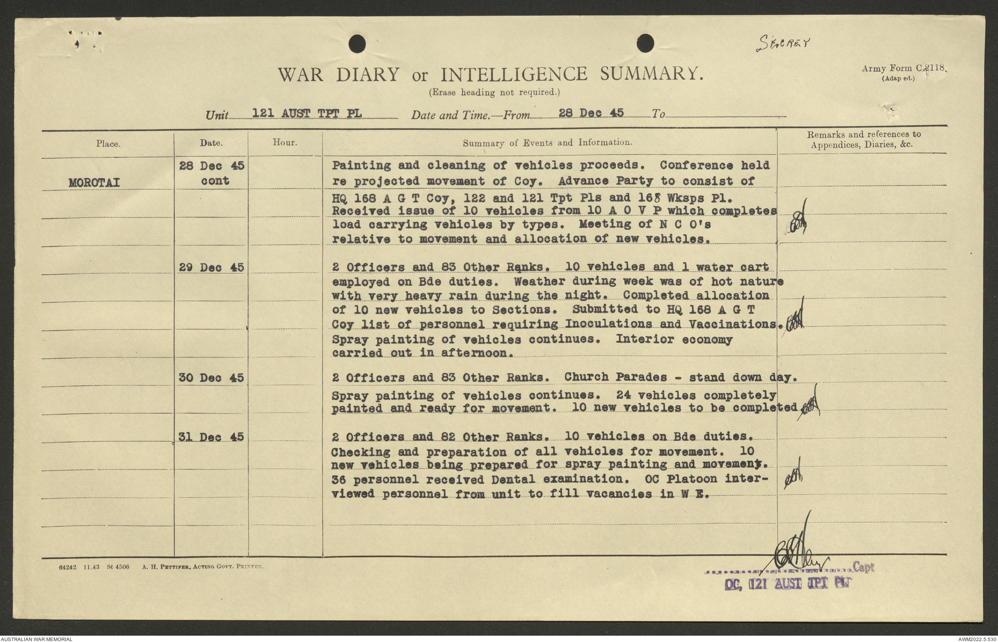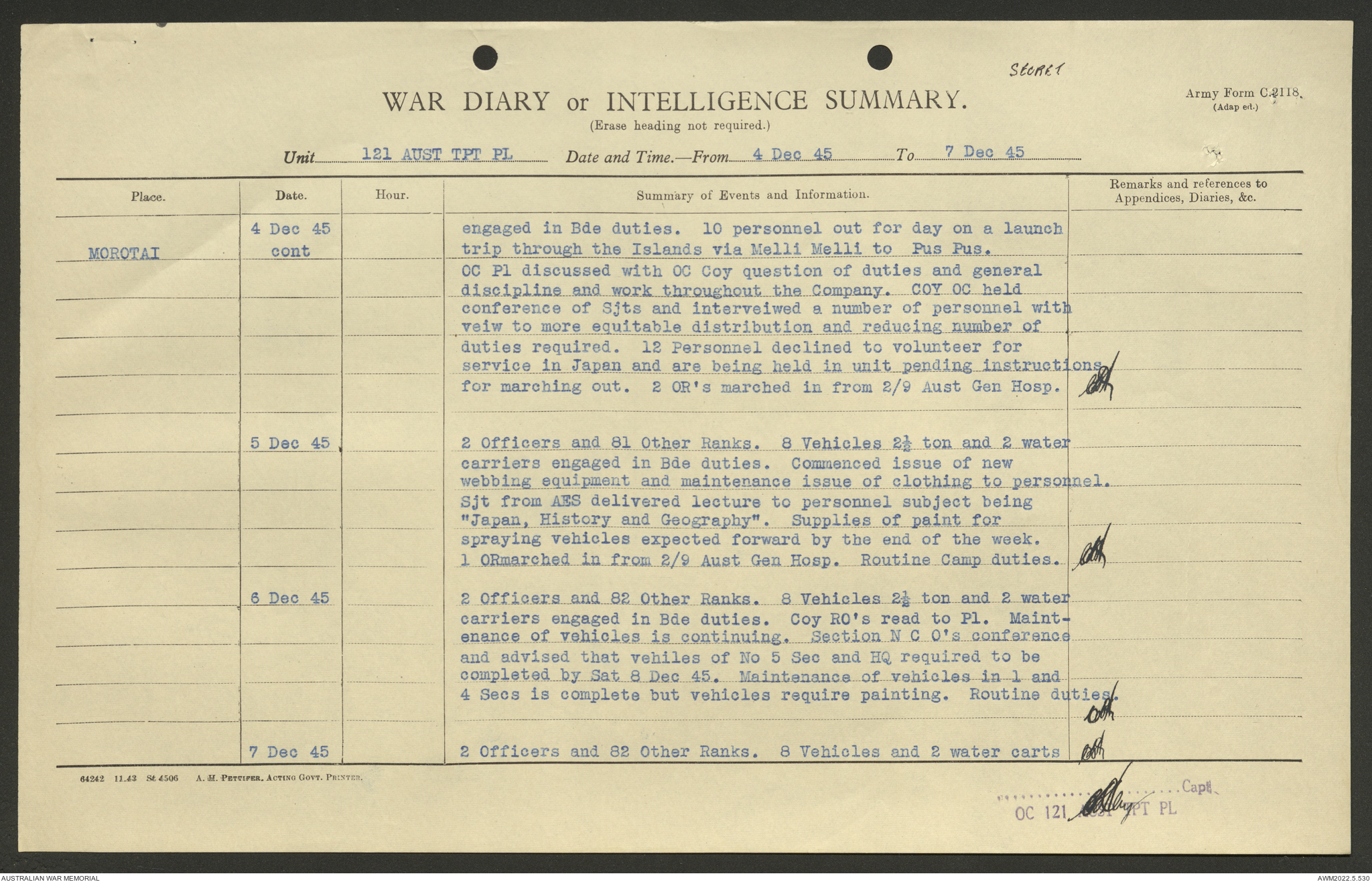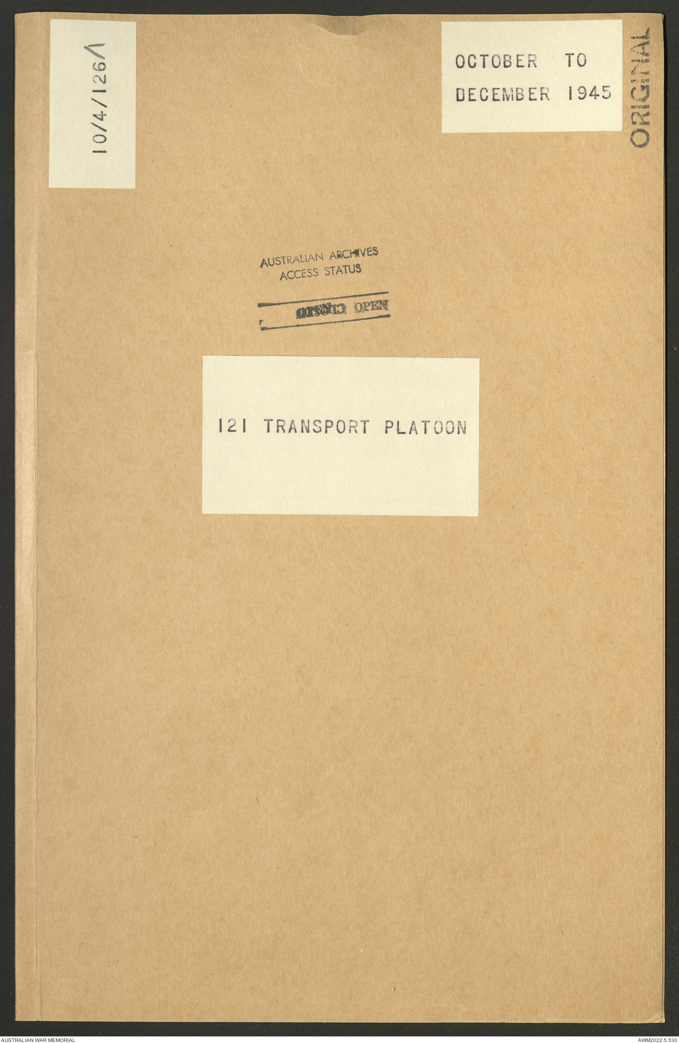 AWM52 10/4/126/1 - [Unit War Diaries, 1939-45 War] 121 Aust. [Australian] Transport Platoon, October - December 1945