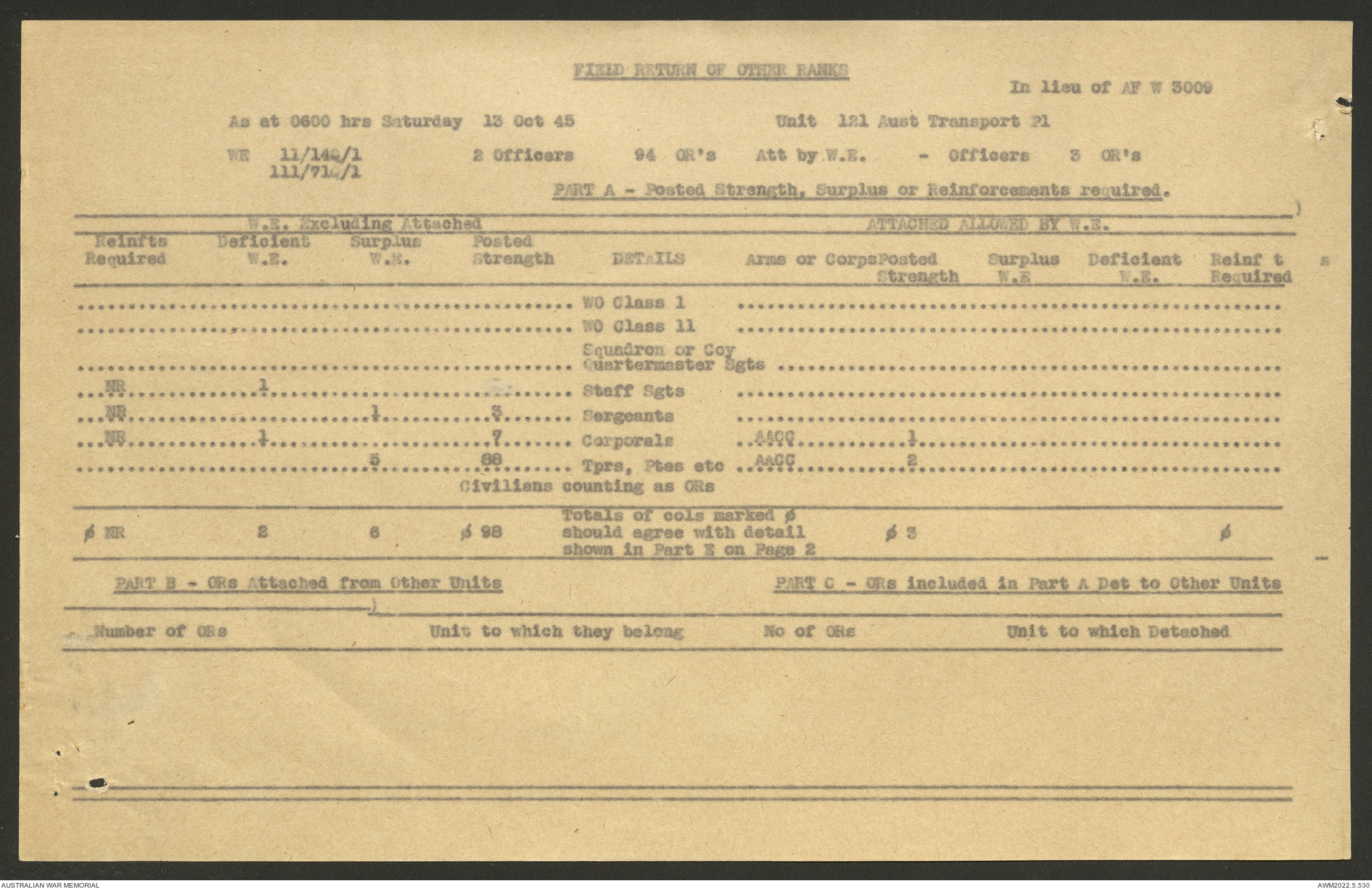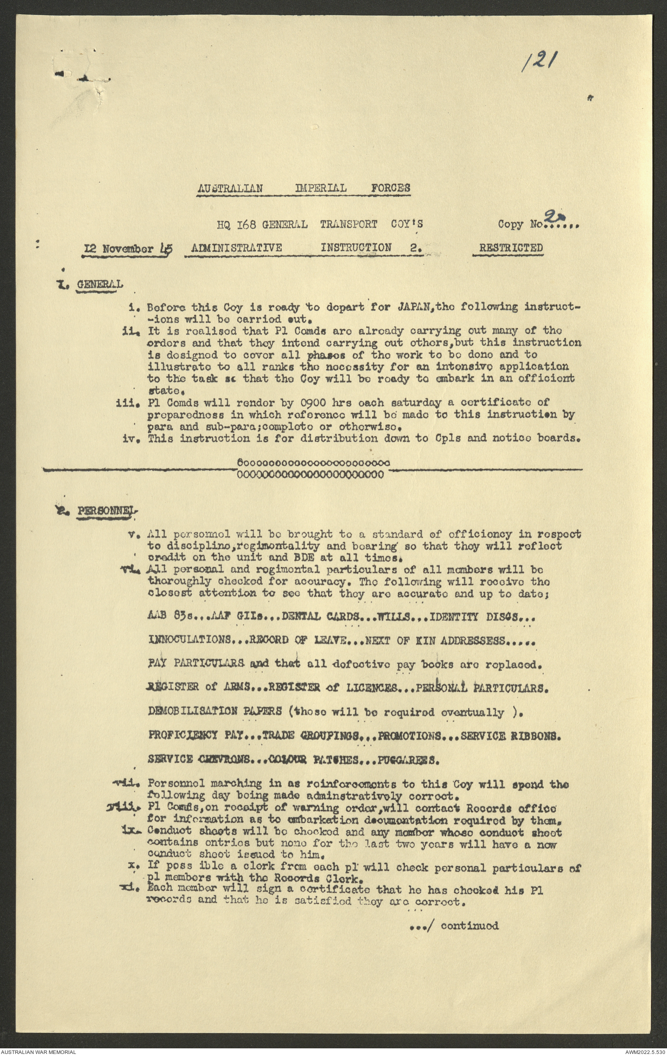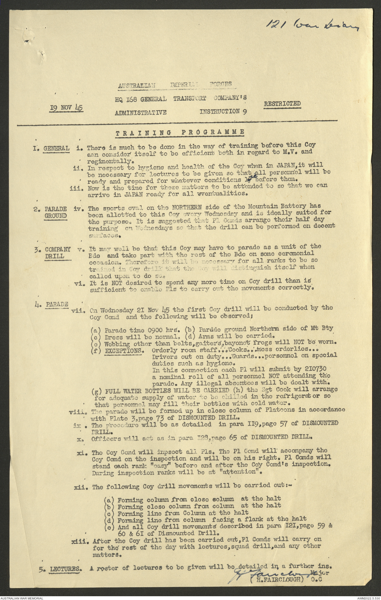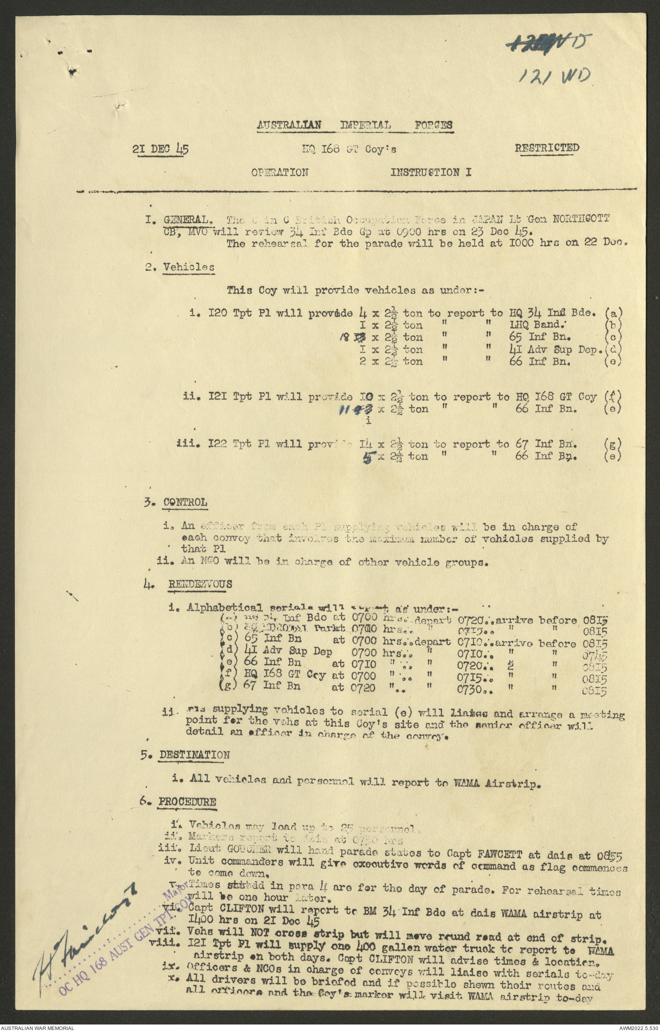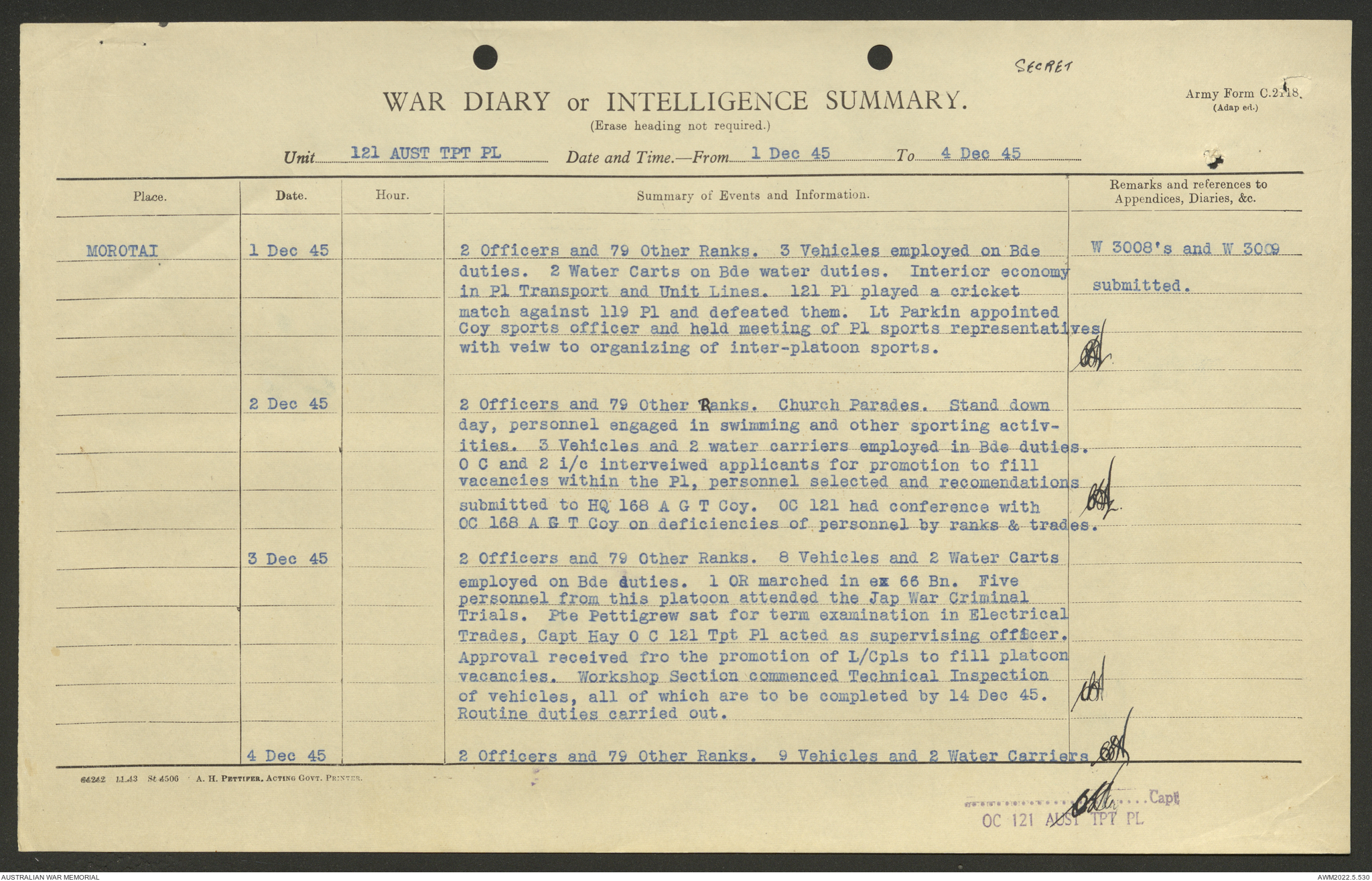 AWM52 10/4/126/1 - [Unit War Diaries, 1939-45 War] 121 Aust. [Australian] Transport Platoon, October - December 1945