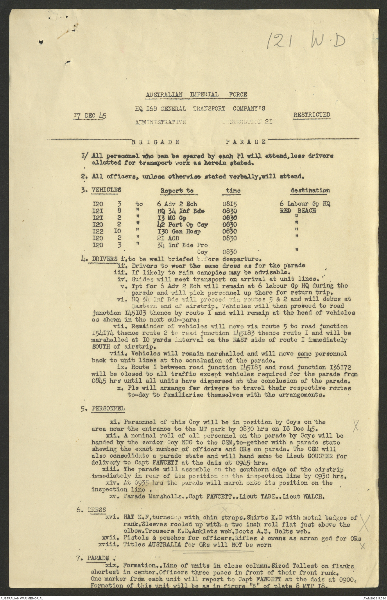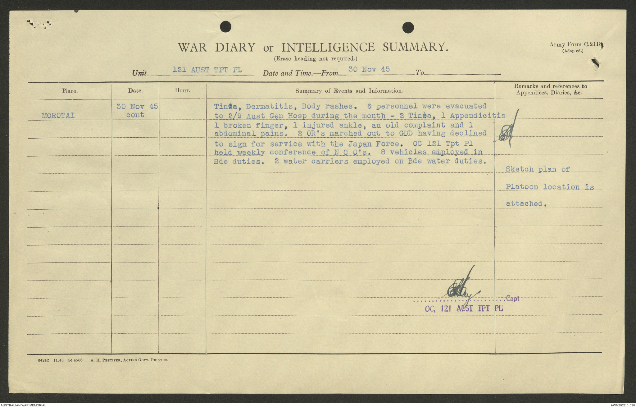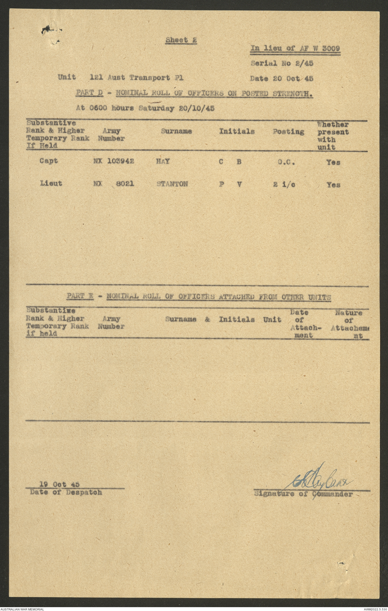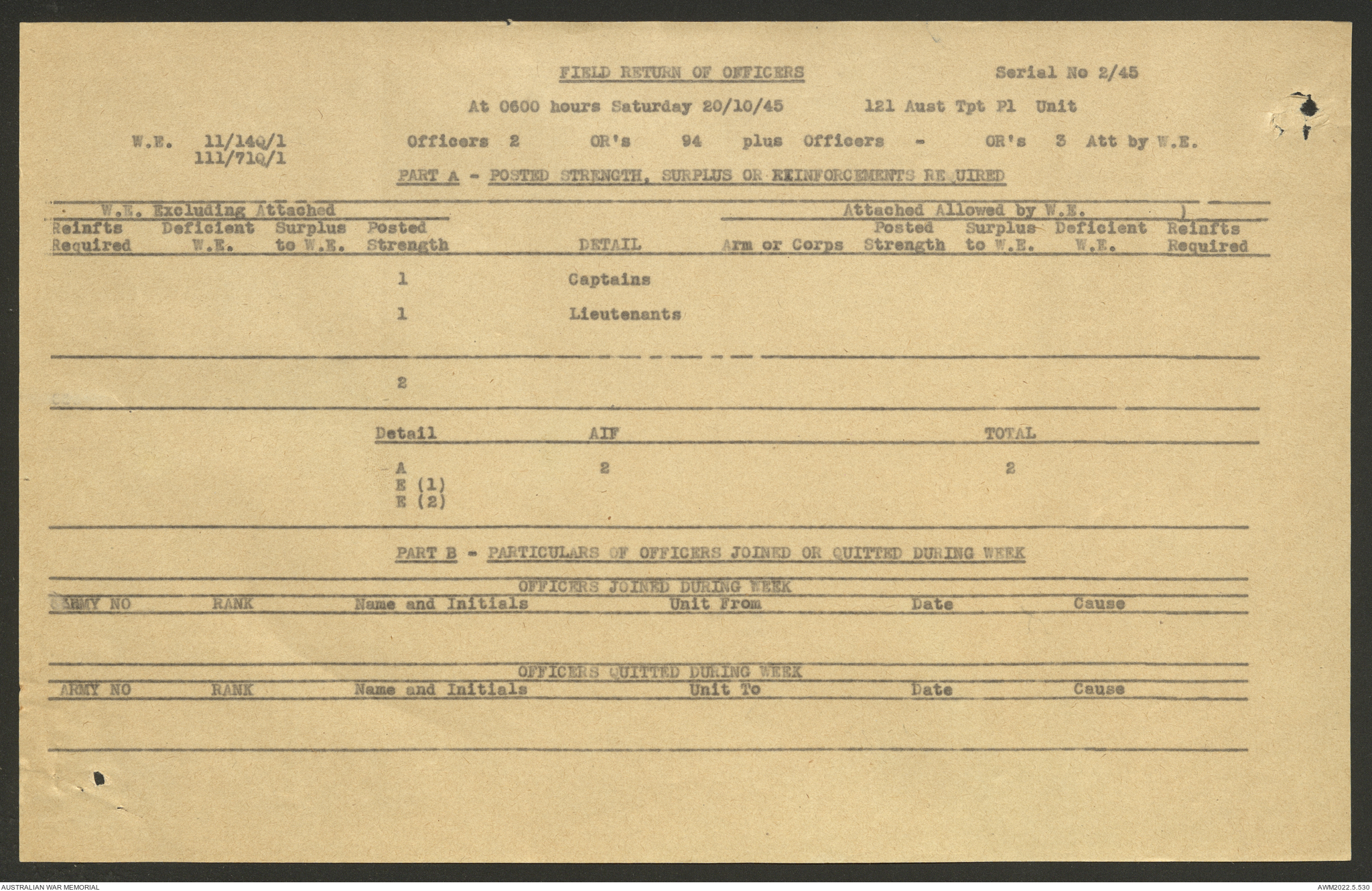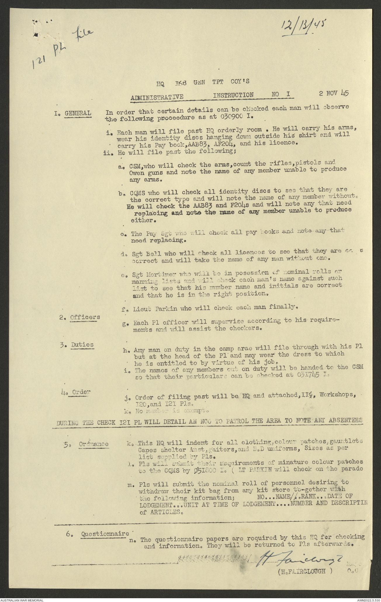 AWM52 10/4/126/1 - [Unit War Diaries, 1939-45 War] 121 Aust. [Australian] Transport Platoon, October - December 1945