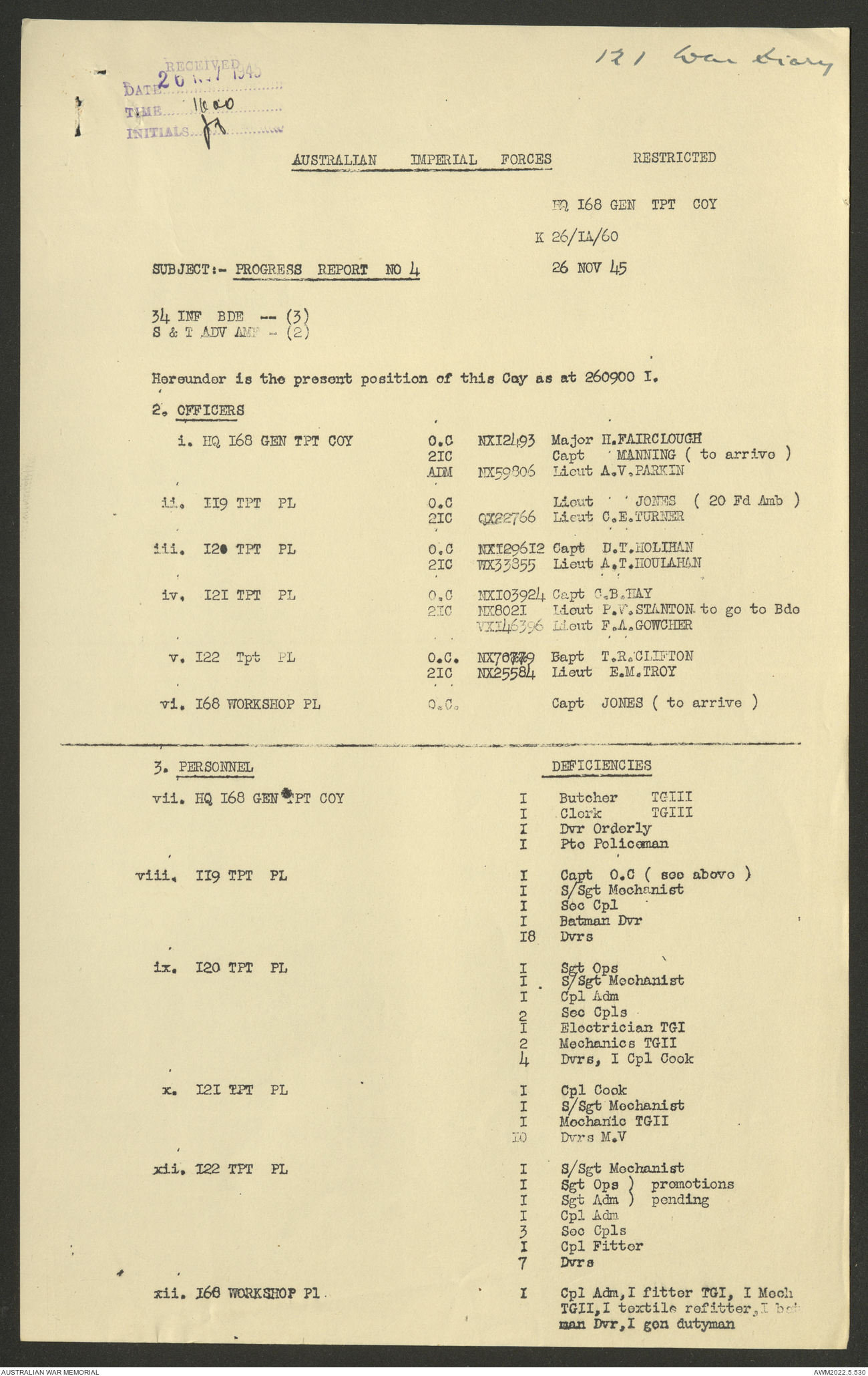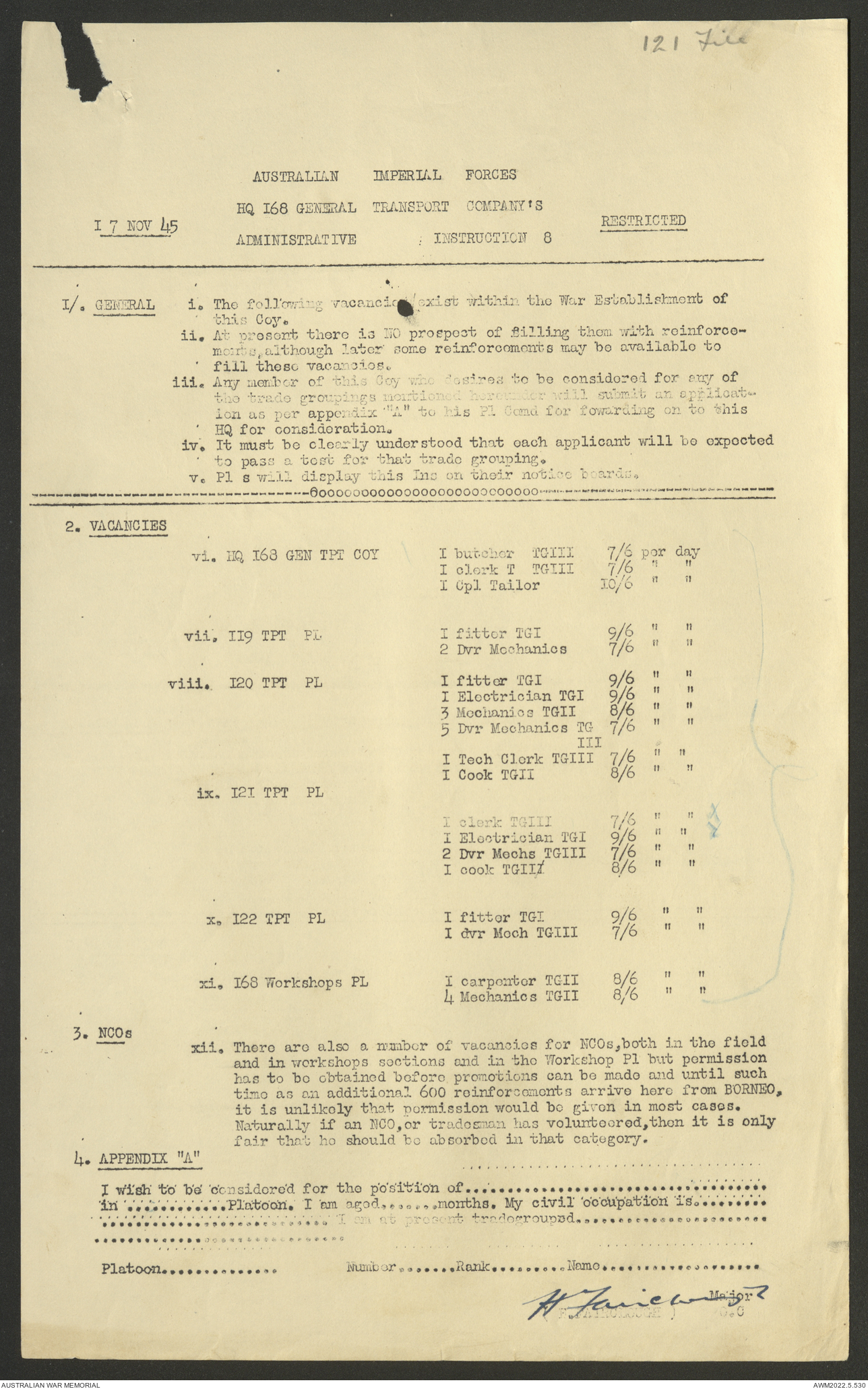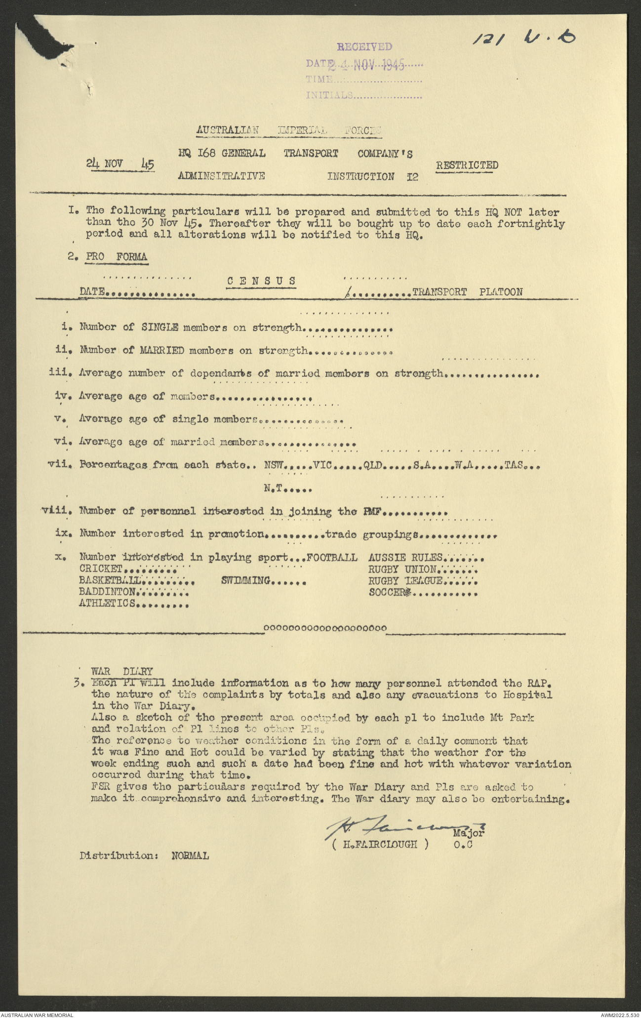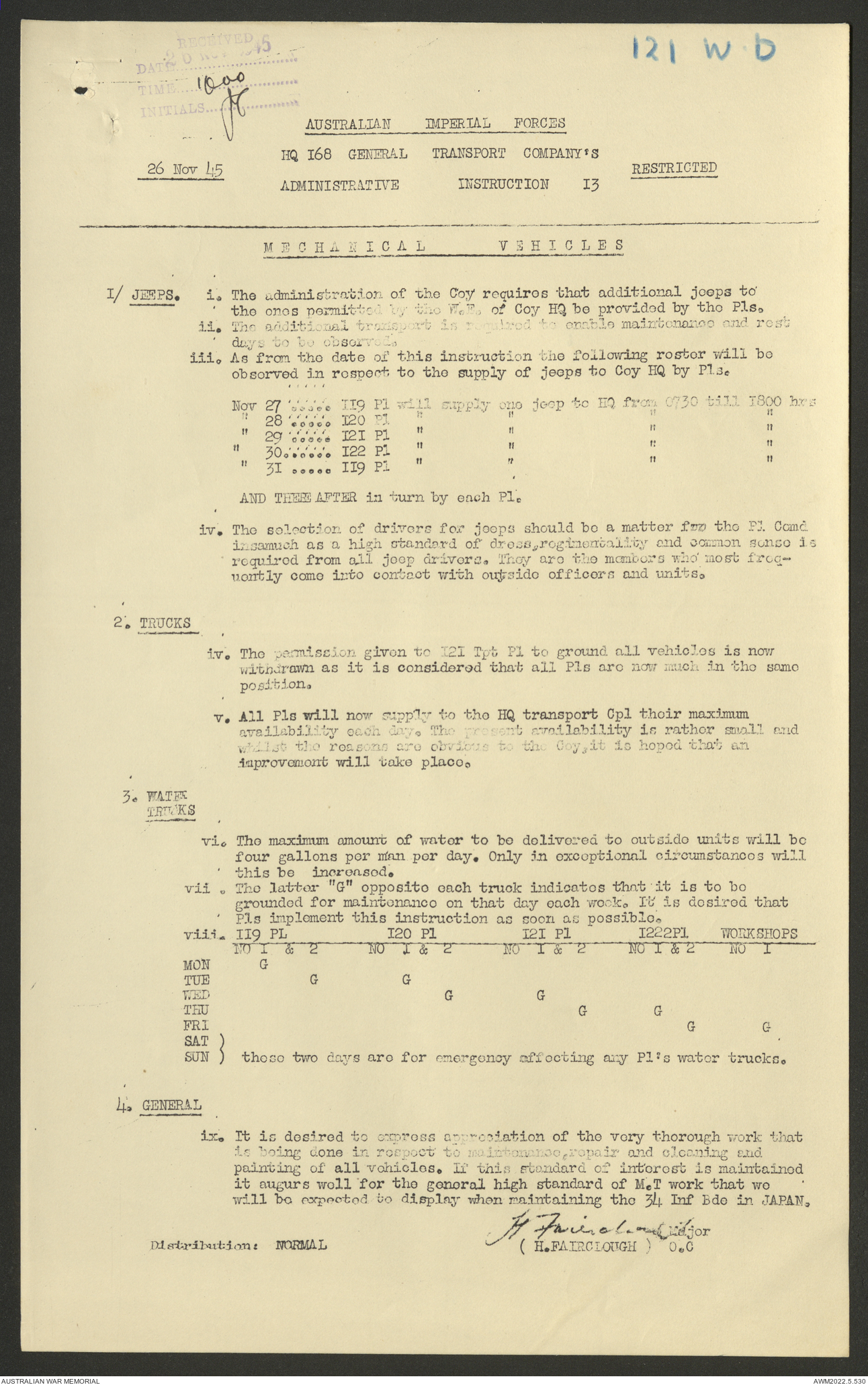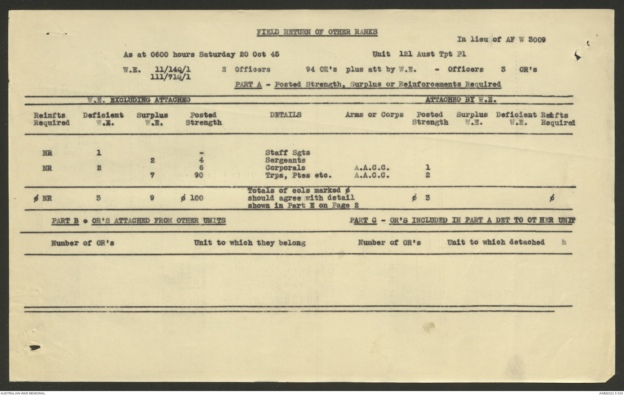 AWM52 10/4/126/1 - [Unit War Diaries, 1939-45 War] 121 Aust. [Australian] Transport Platoon, October - December 1945