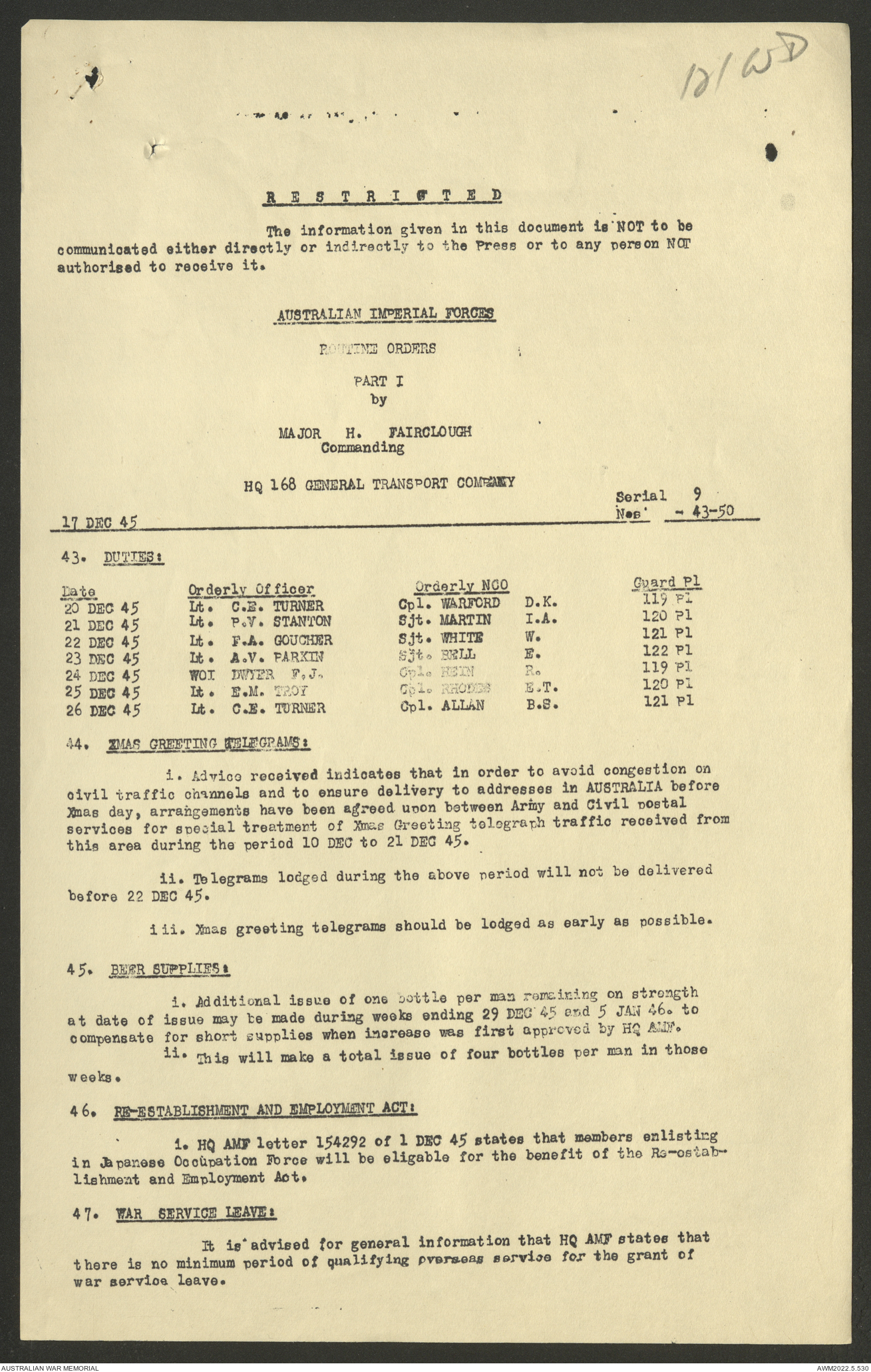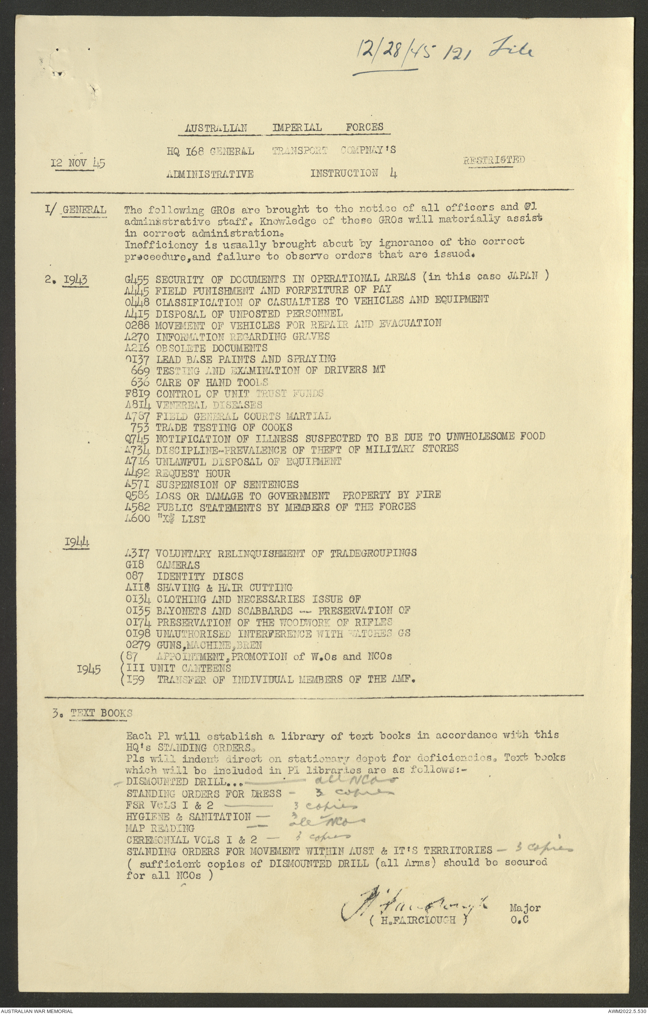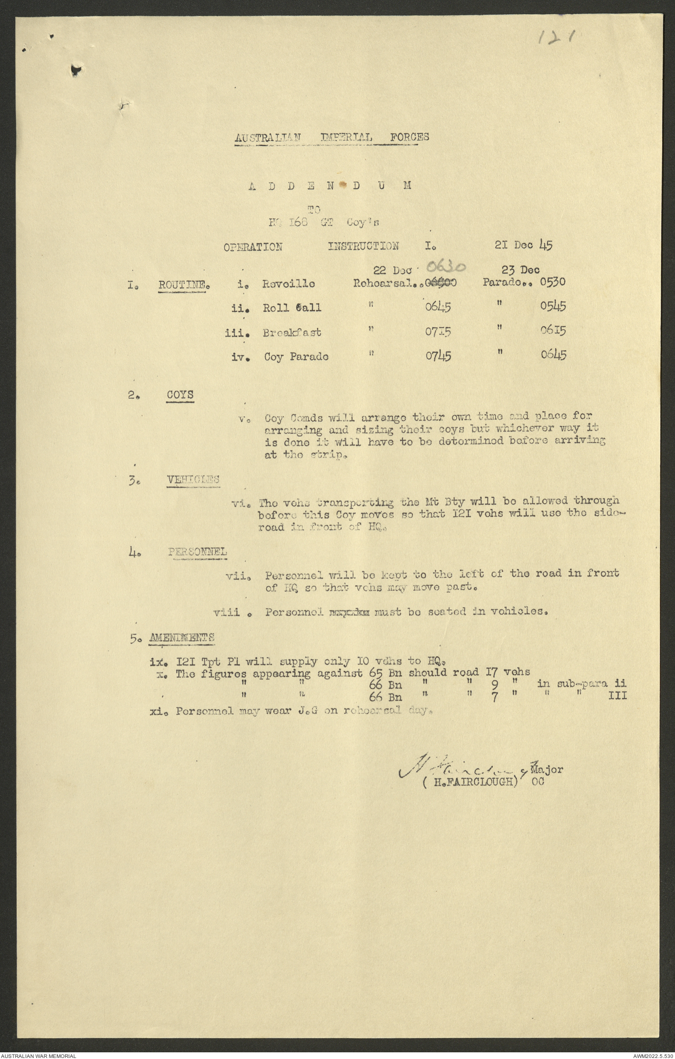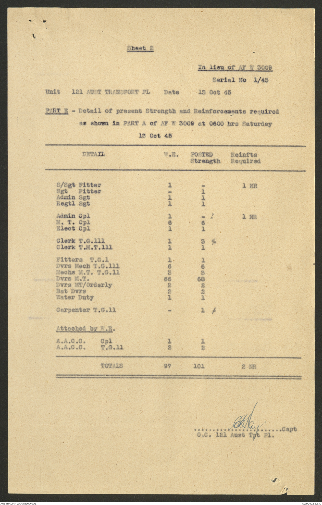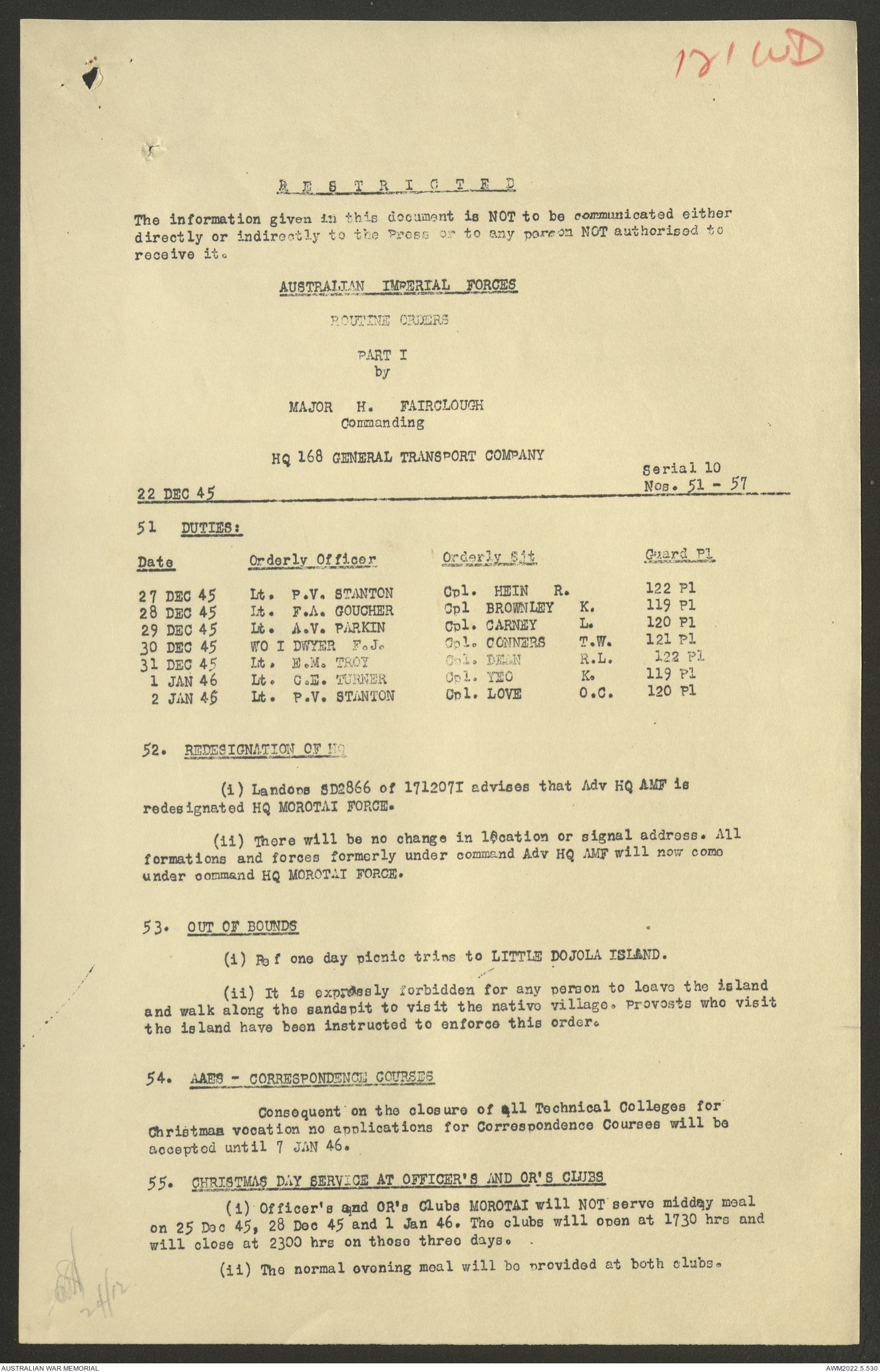 AWM52 10/4/126/1 - [Unit War Diaries, 1939-45 War] 121 Aust. [Australian] Transport Platoon, October - December 1945