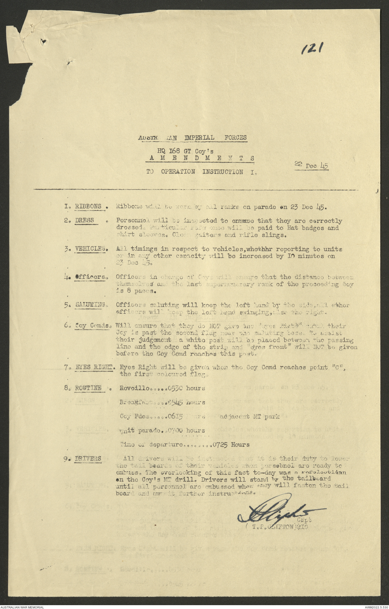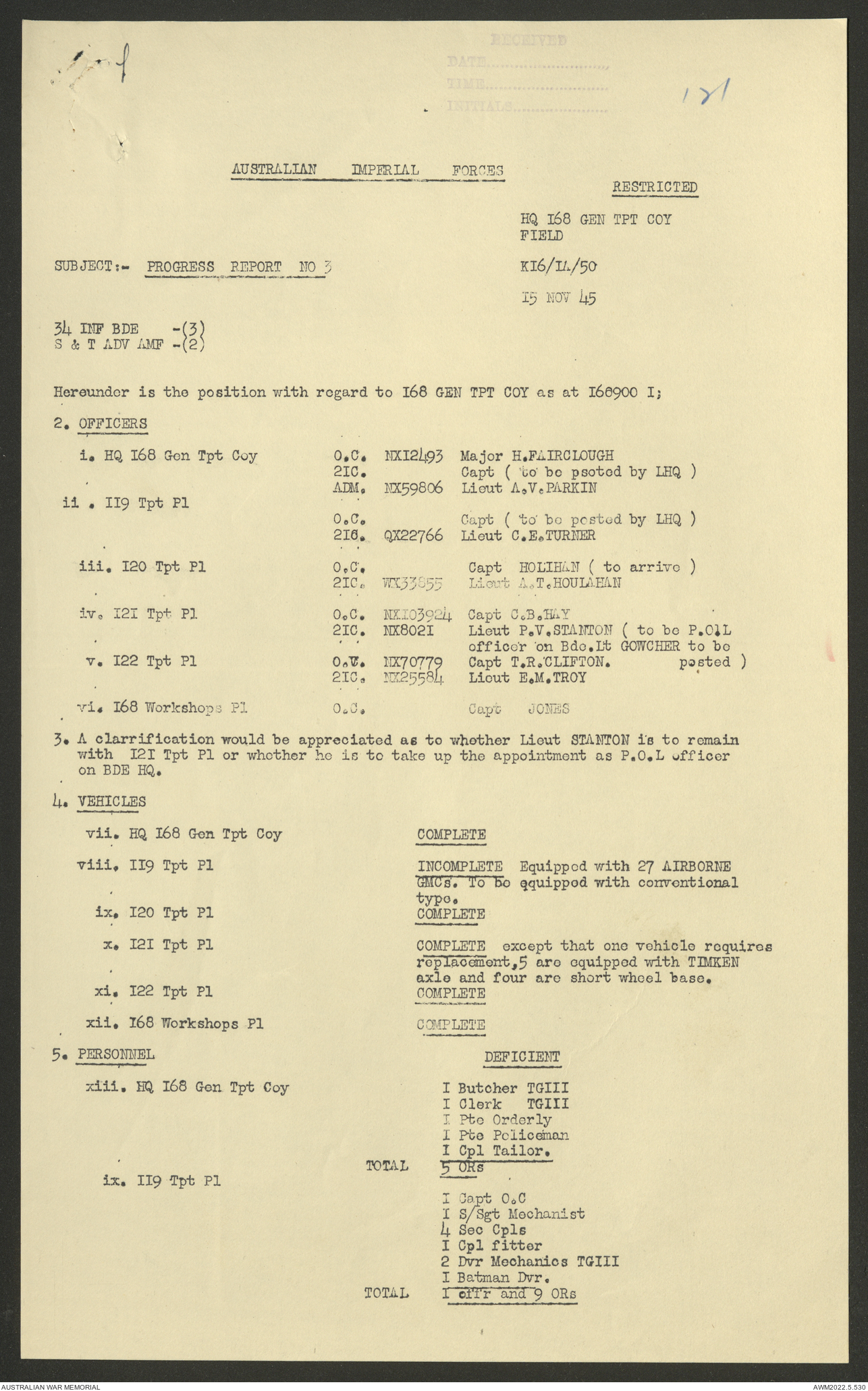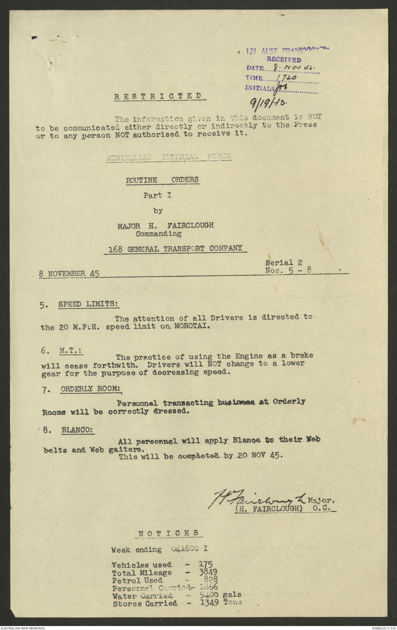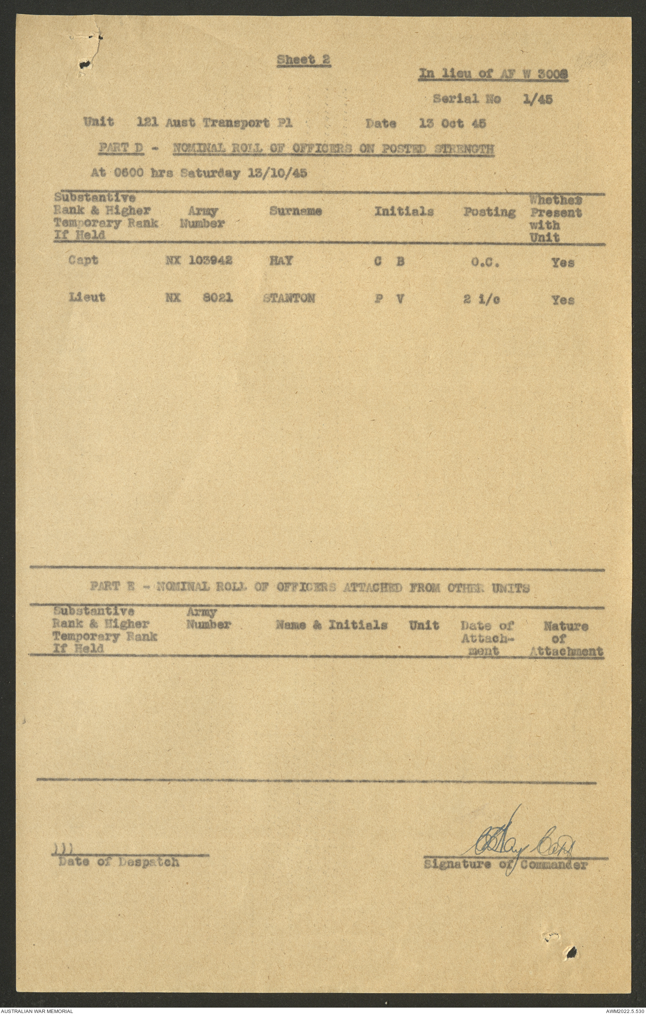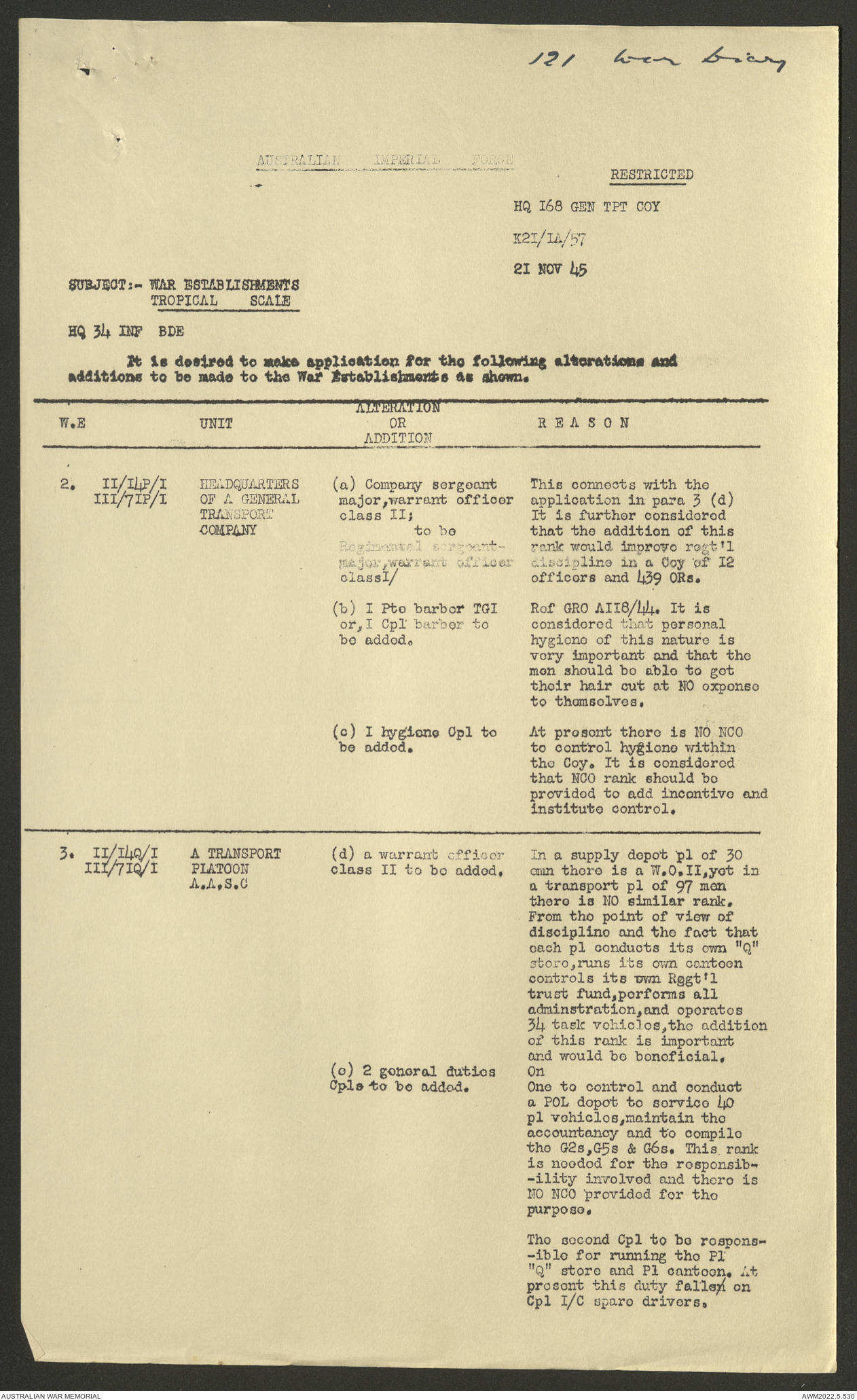 AWM52 10/4/126/1 - [Unit War Diaries, 1939-45 War] 121 Aust. [Australian] Transport Platoon, October - December 1945