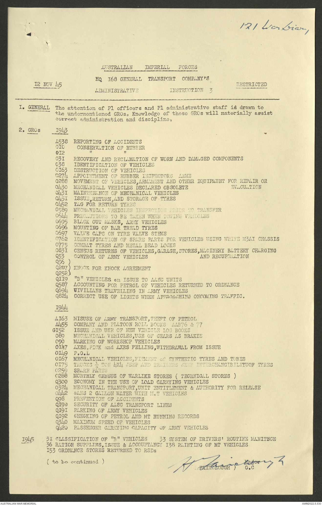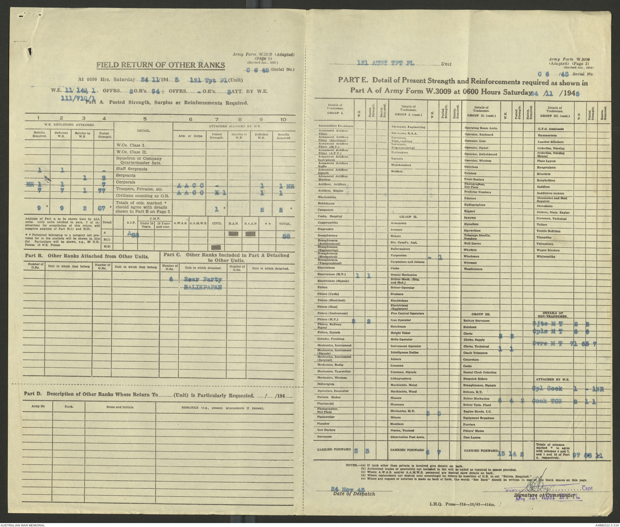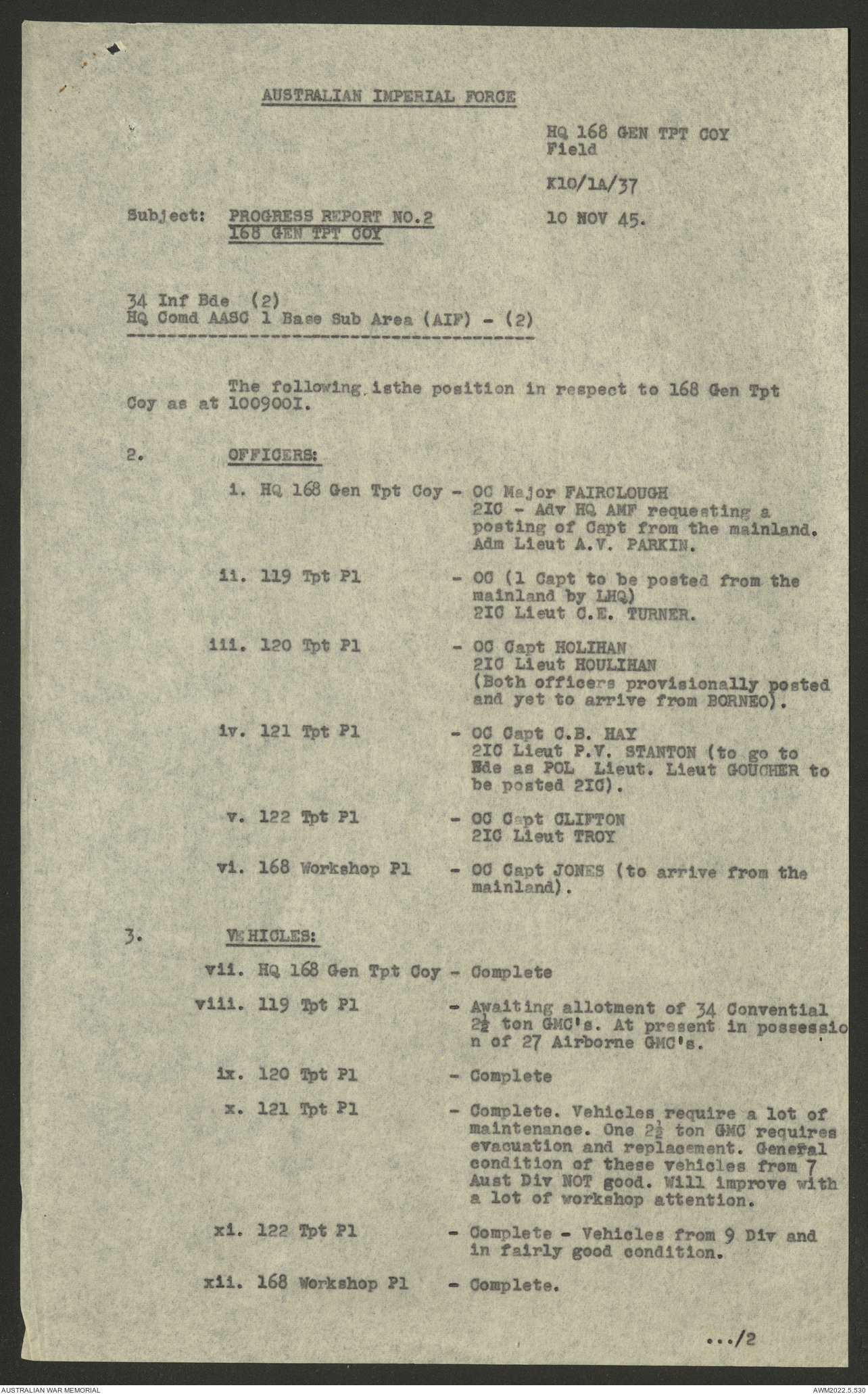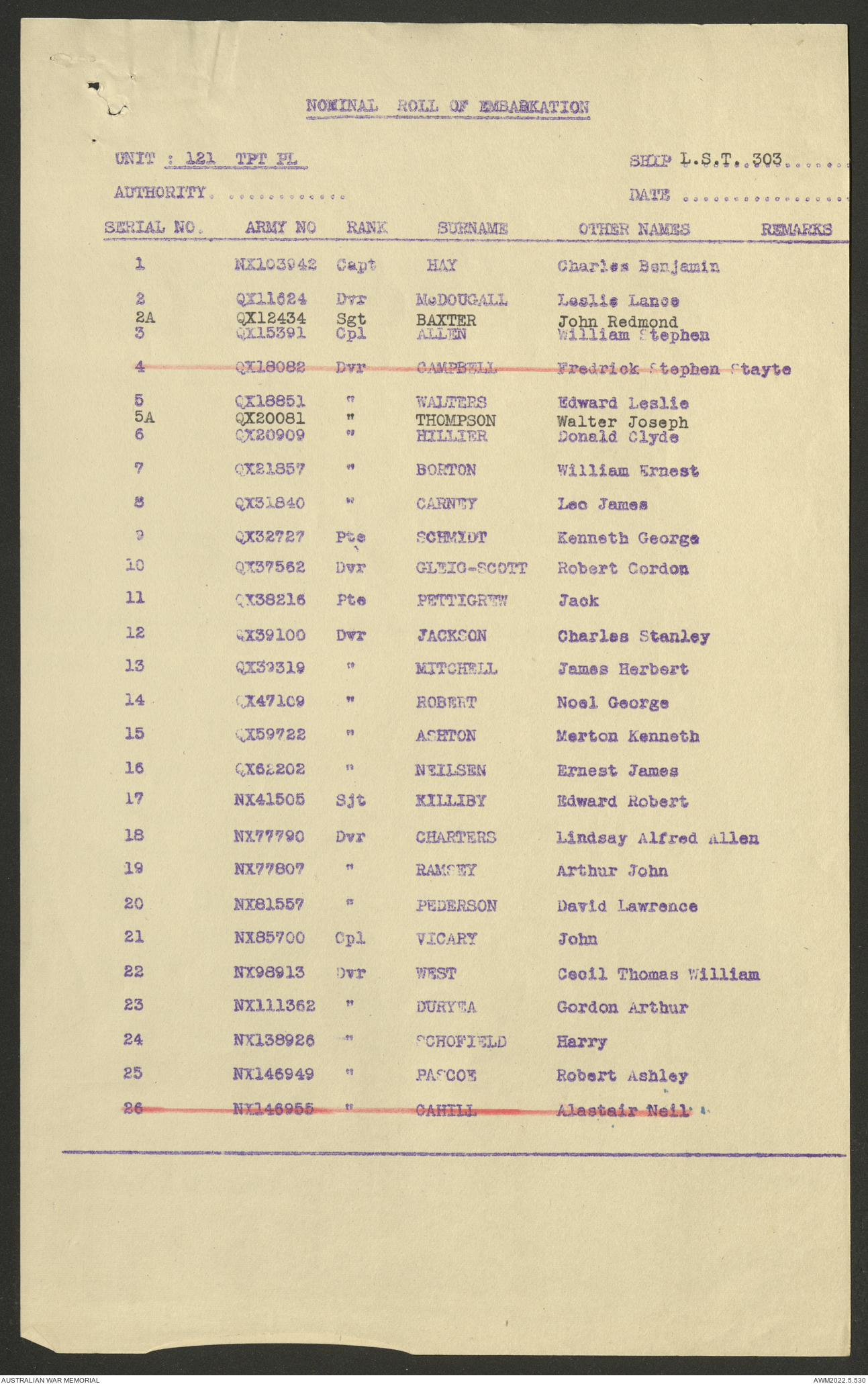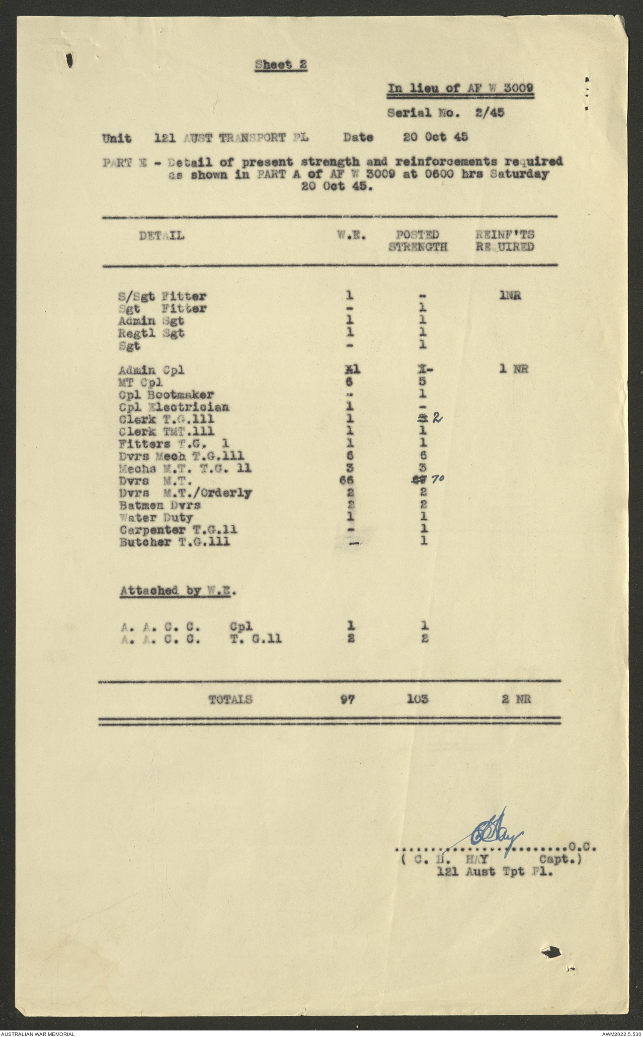 AWM52 10/4/126/1 - [Unit War Diaries, 1939-45 War] 121 Aust. [Australian] Transport Platoon, October - December 1945