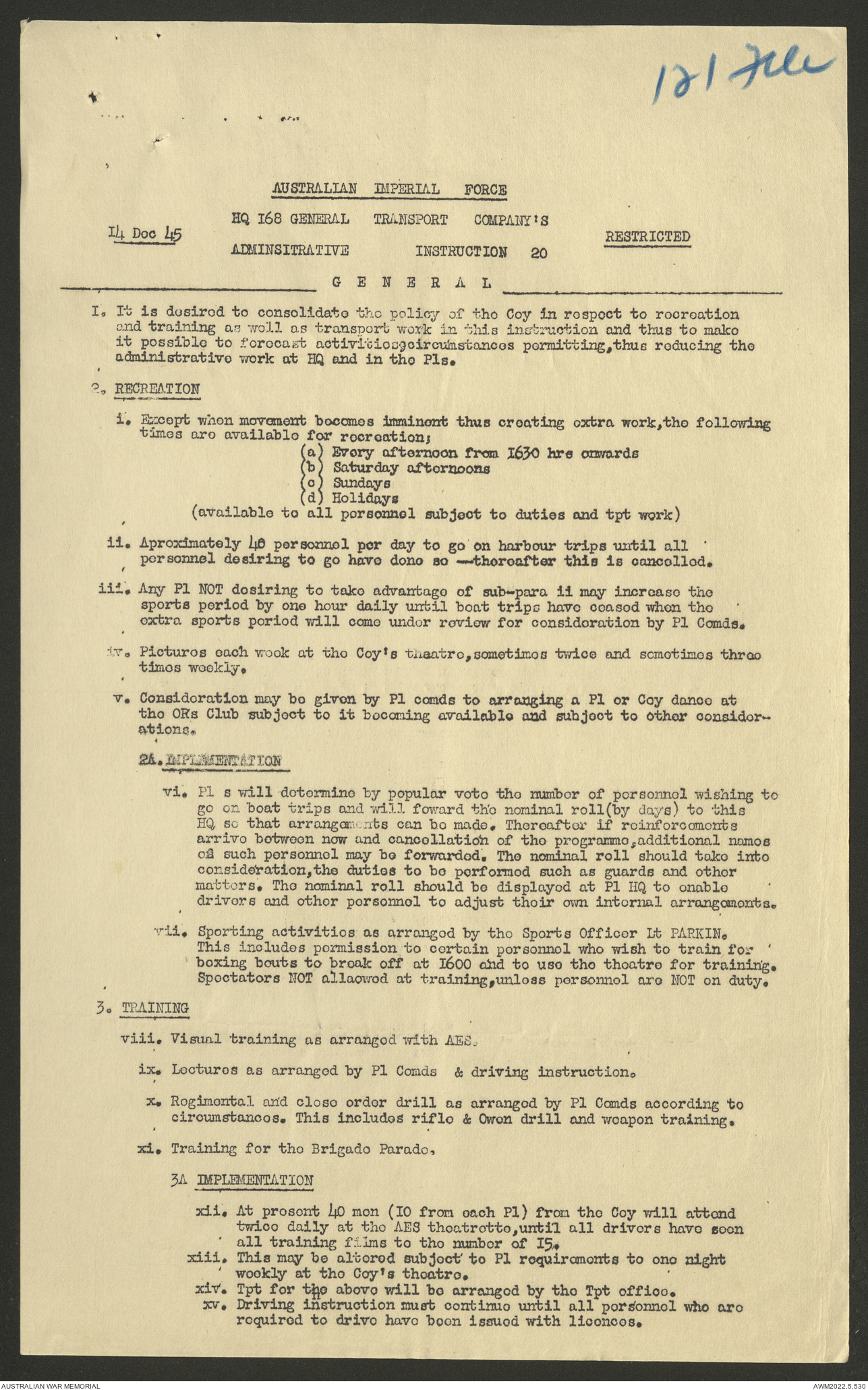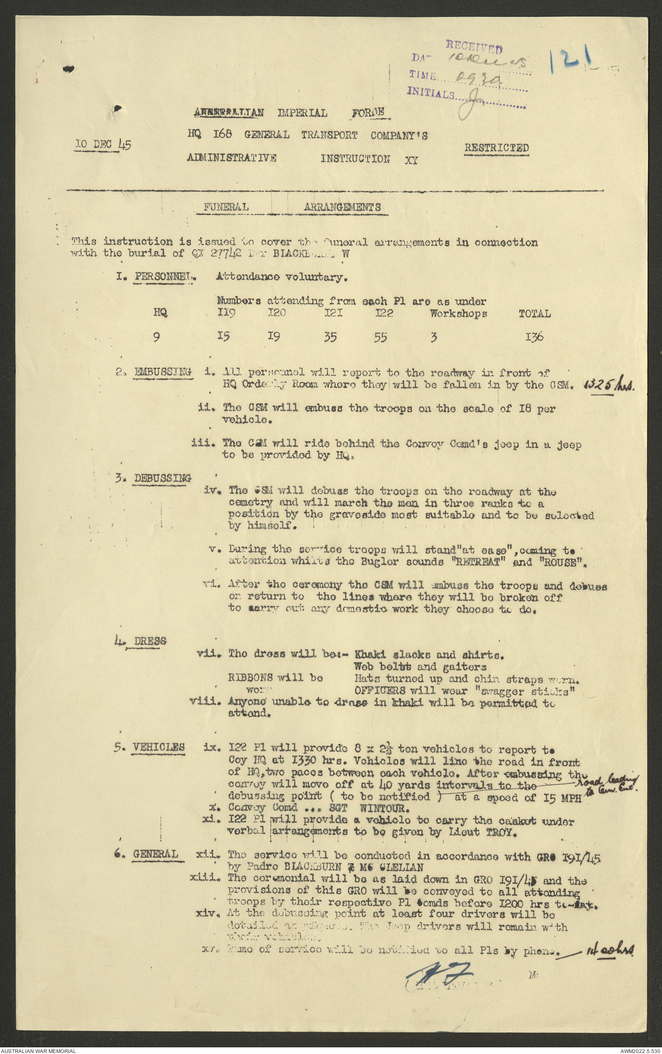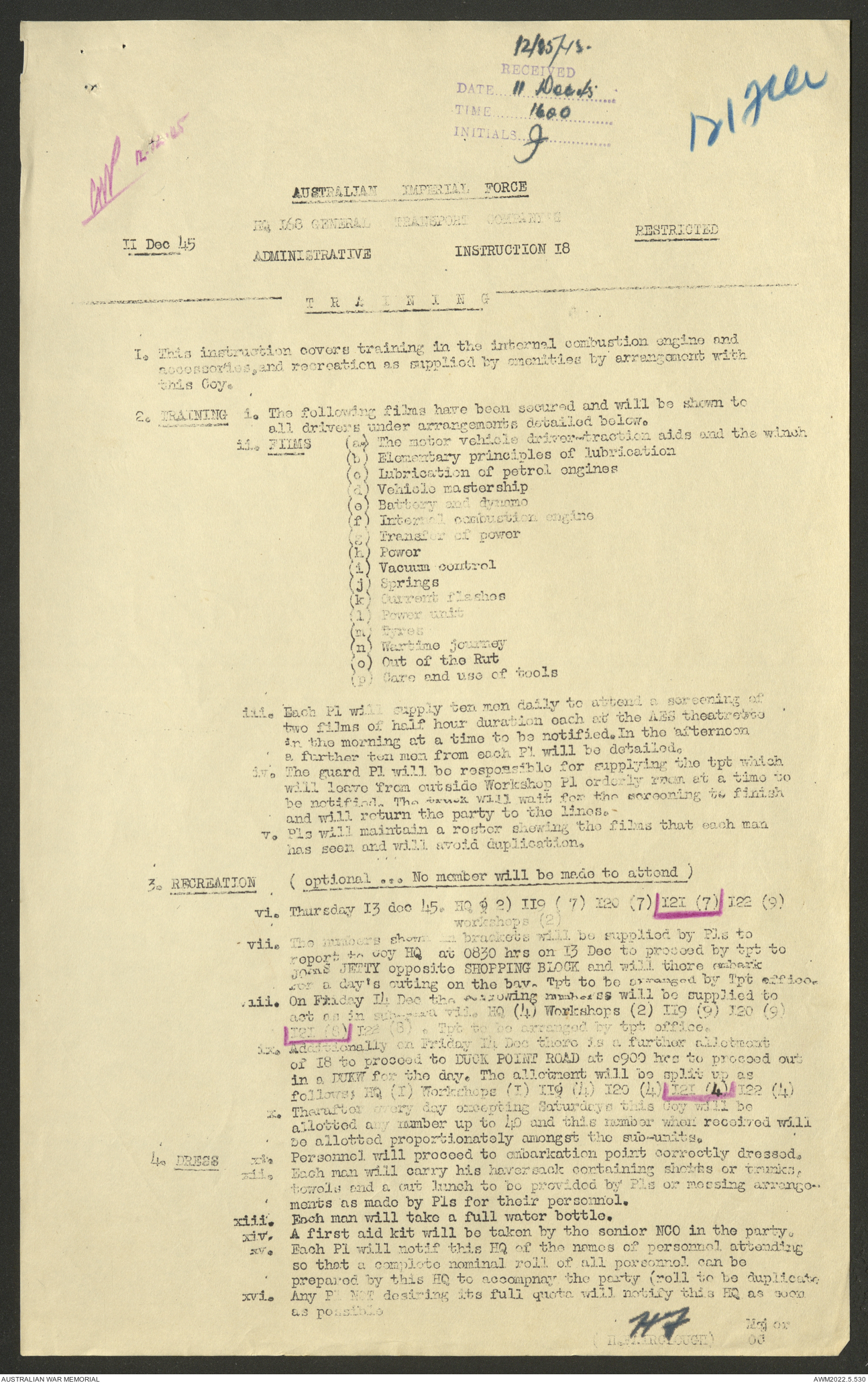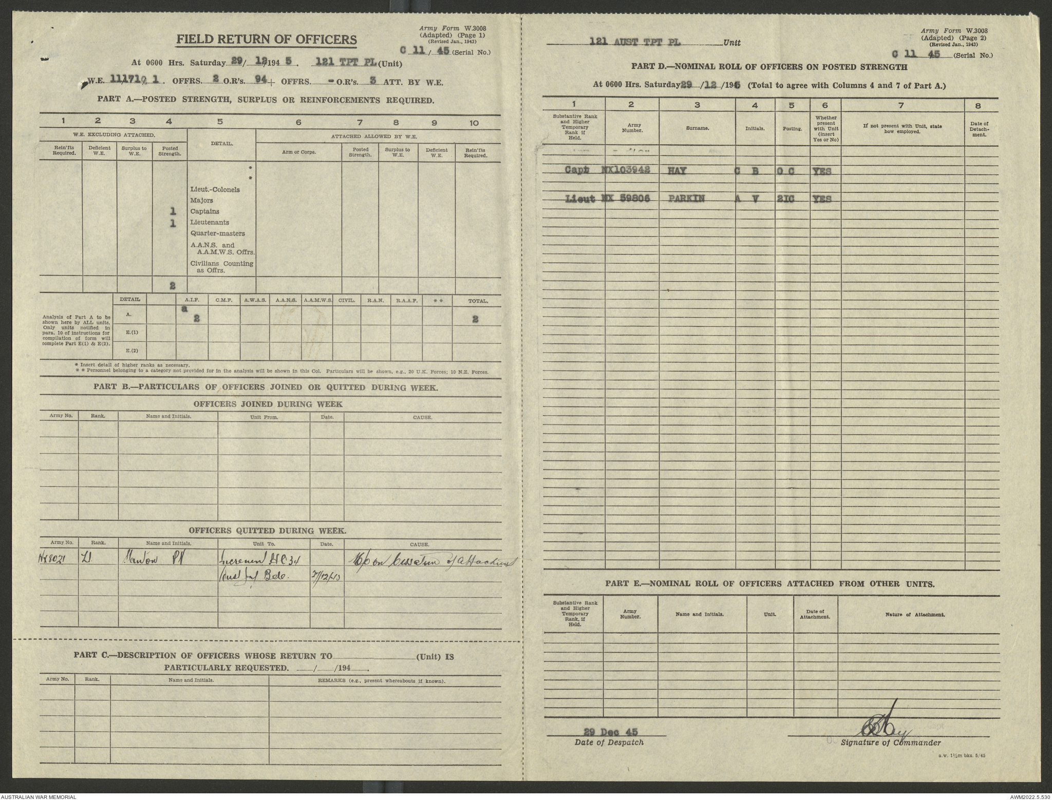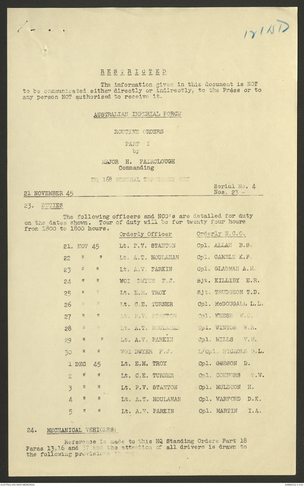 AWM52 10/4/126/1 - [Unit War Diaries, 1939-45 War] 121 Aust. [Australian] Transport Platoon, October - December 1945