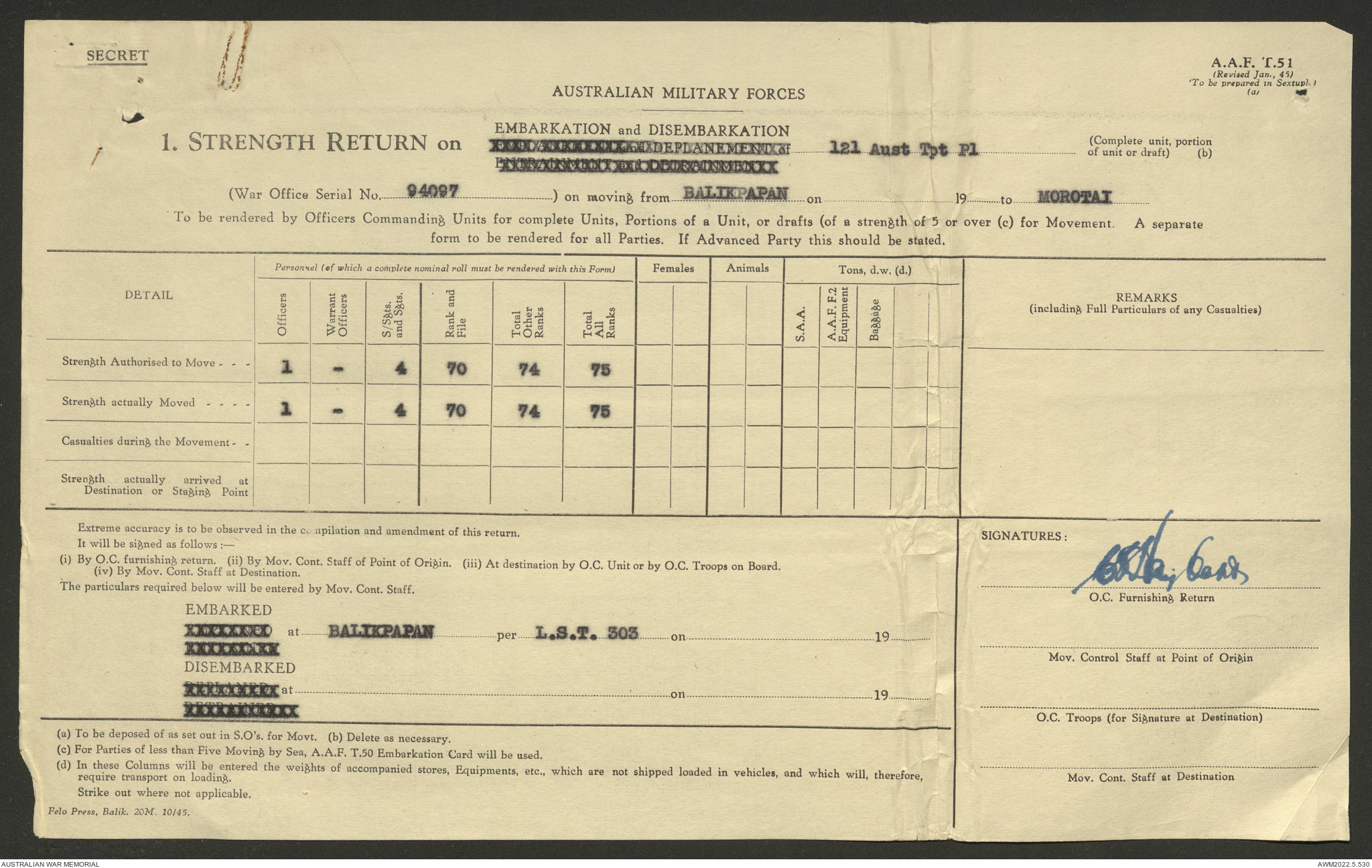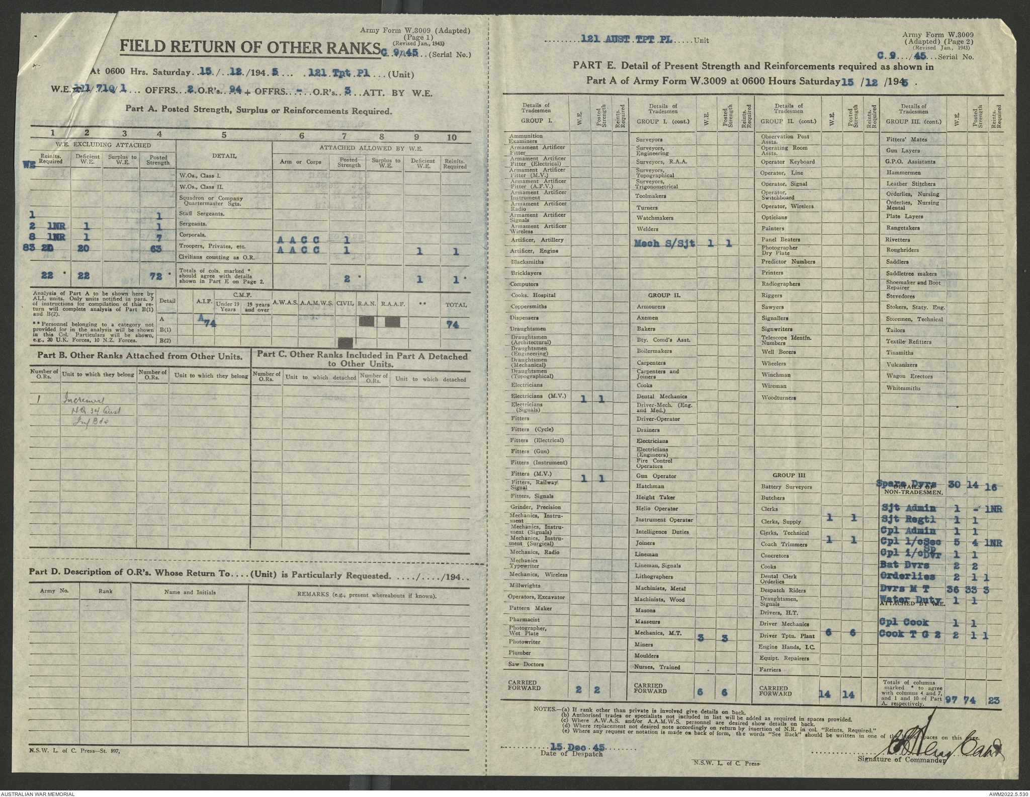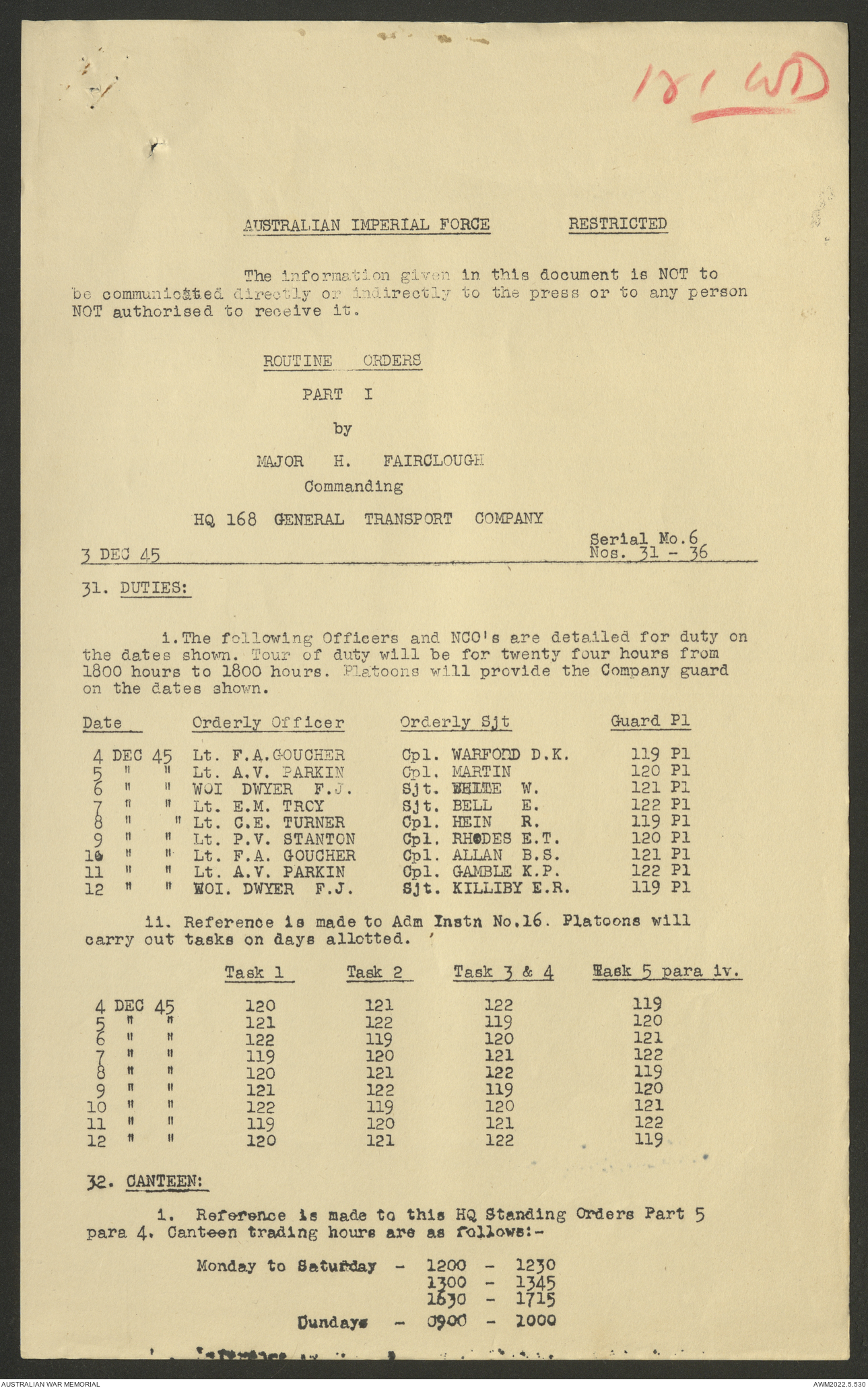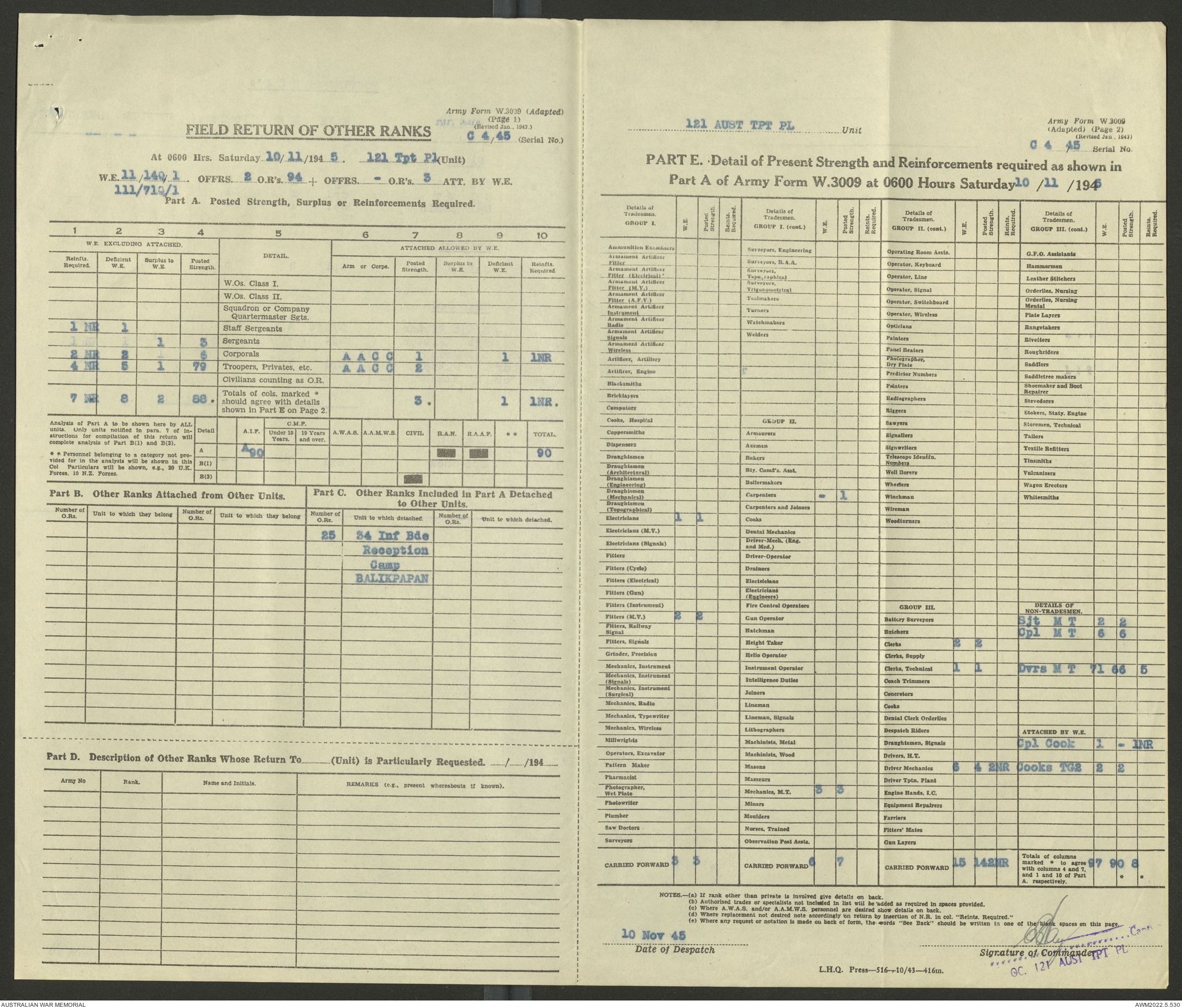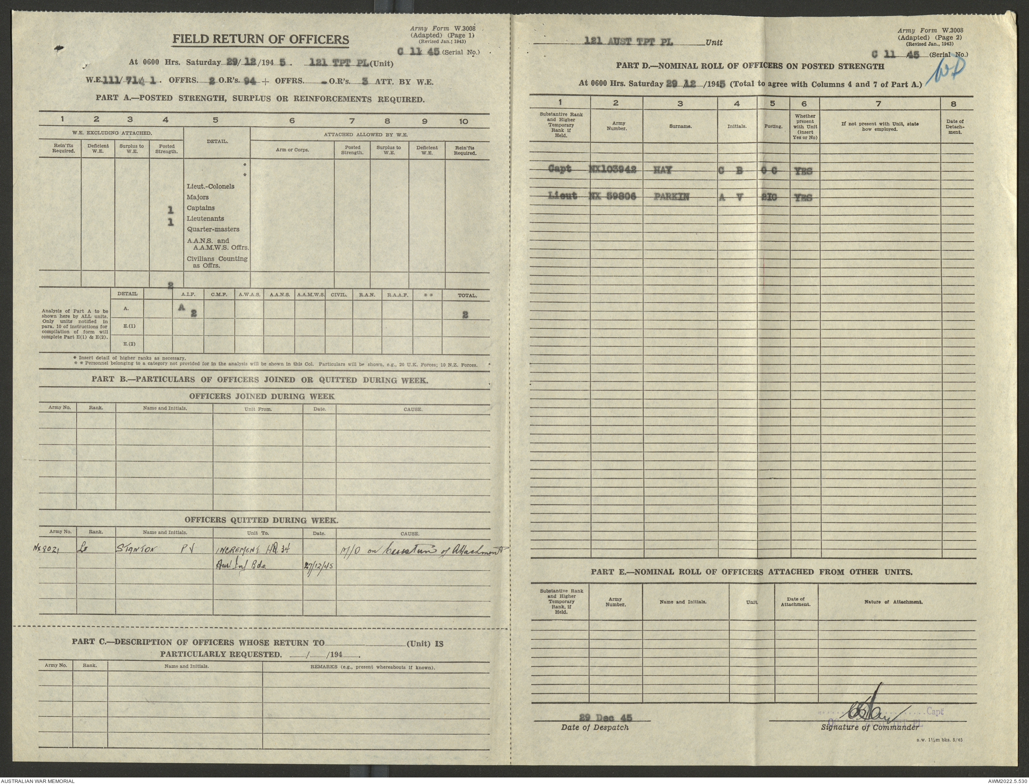 AWM52 10/4/126/1 - [Unit War Diaries, 1939-45 War] 121 Aust. [Australian] Transport Platoon, October - December 1945