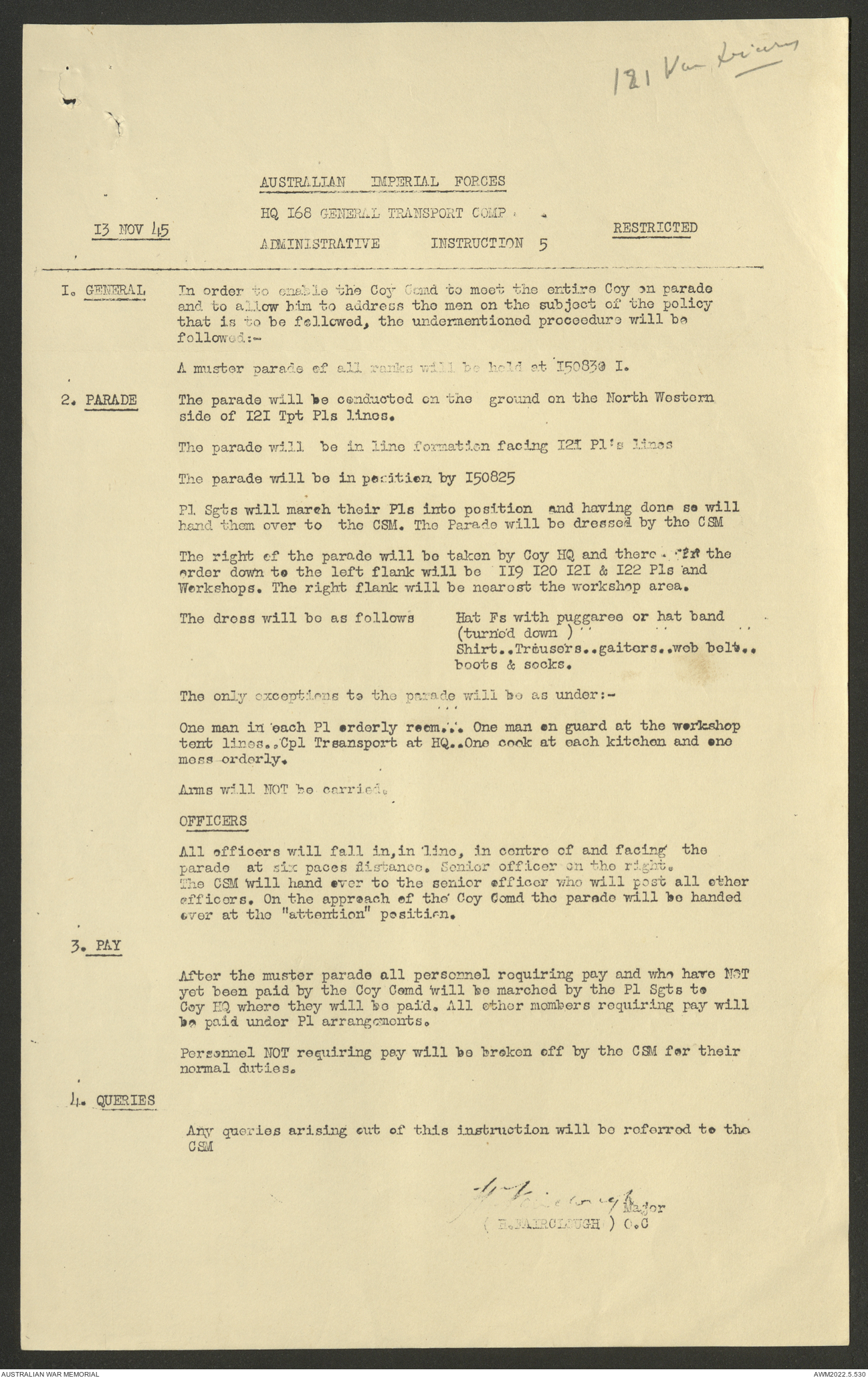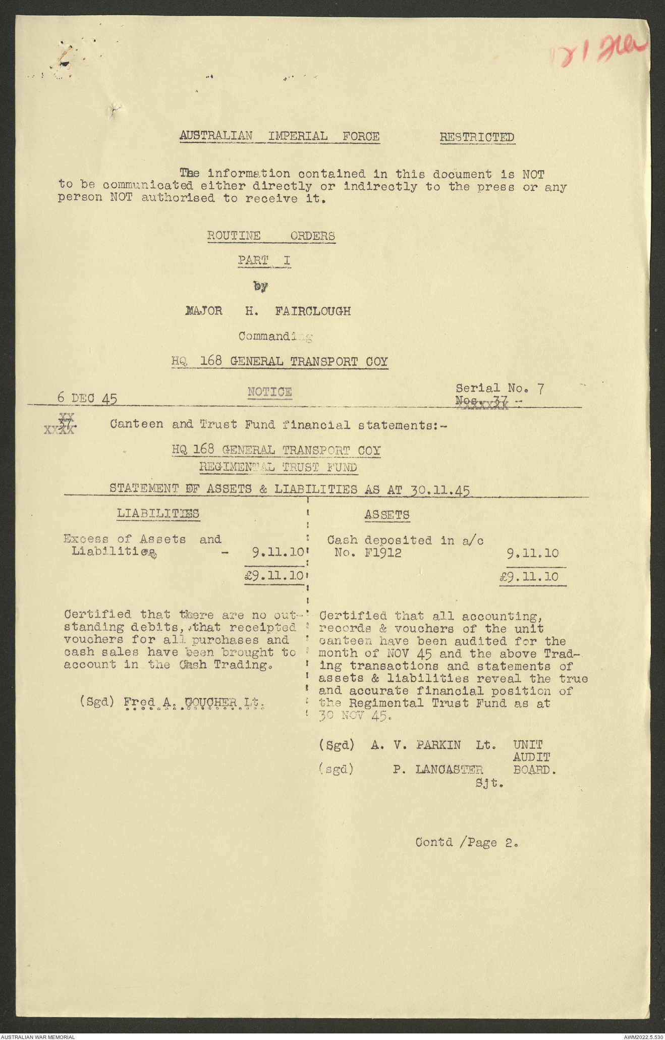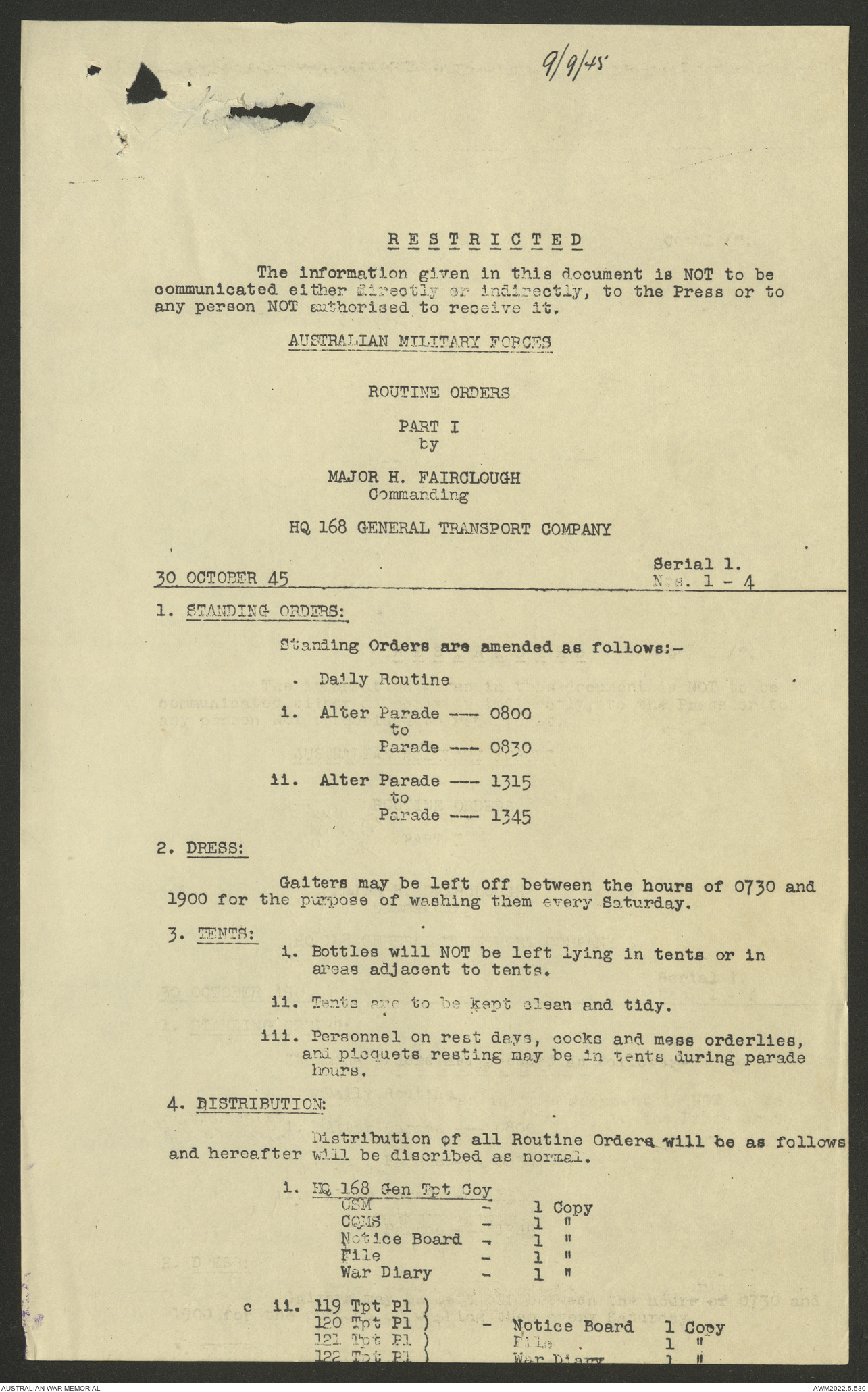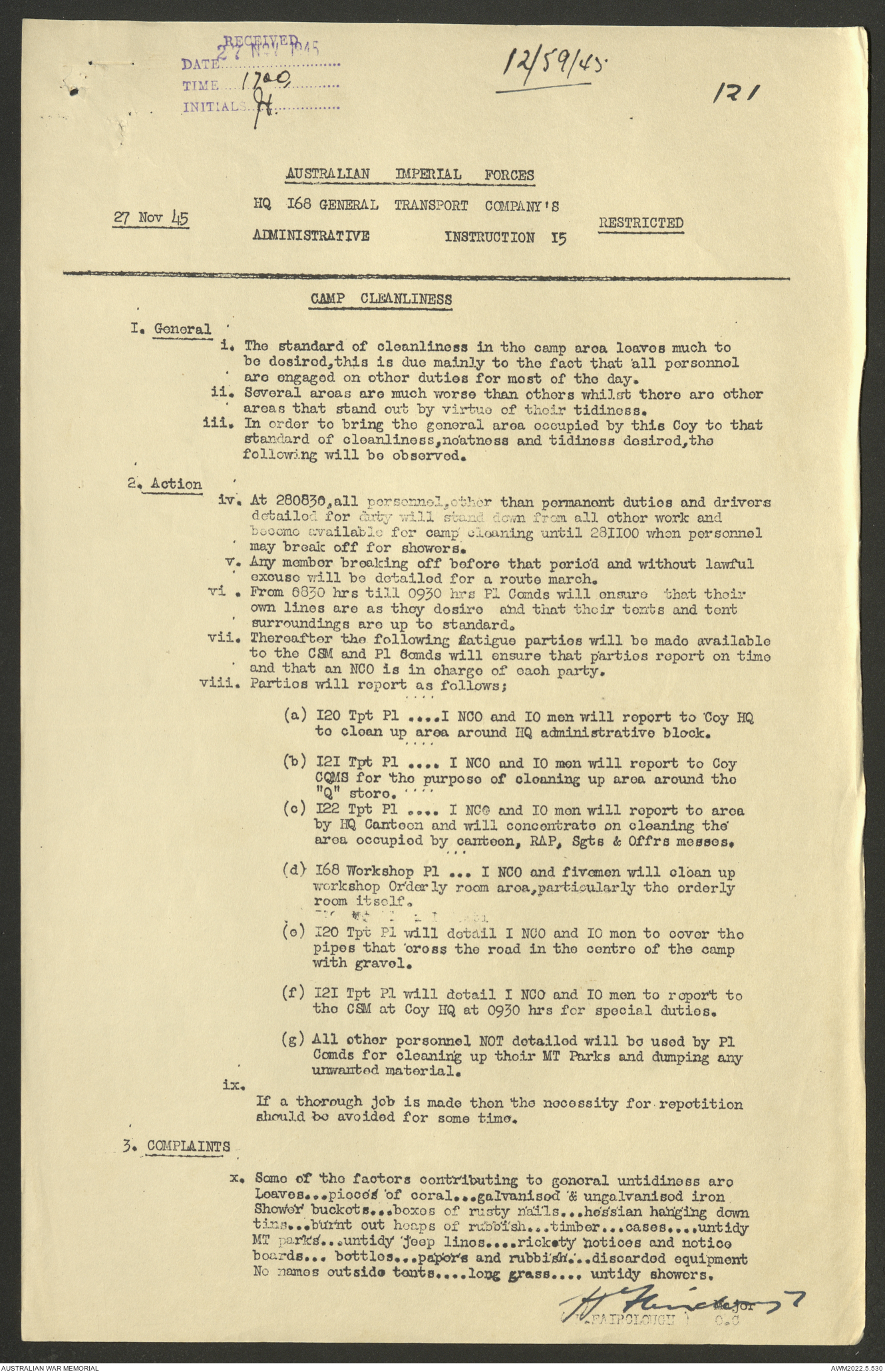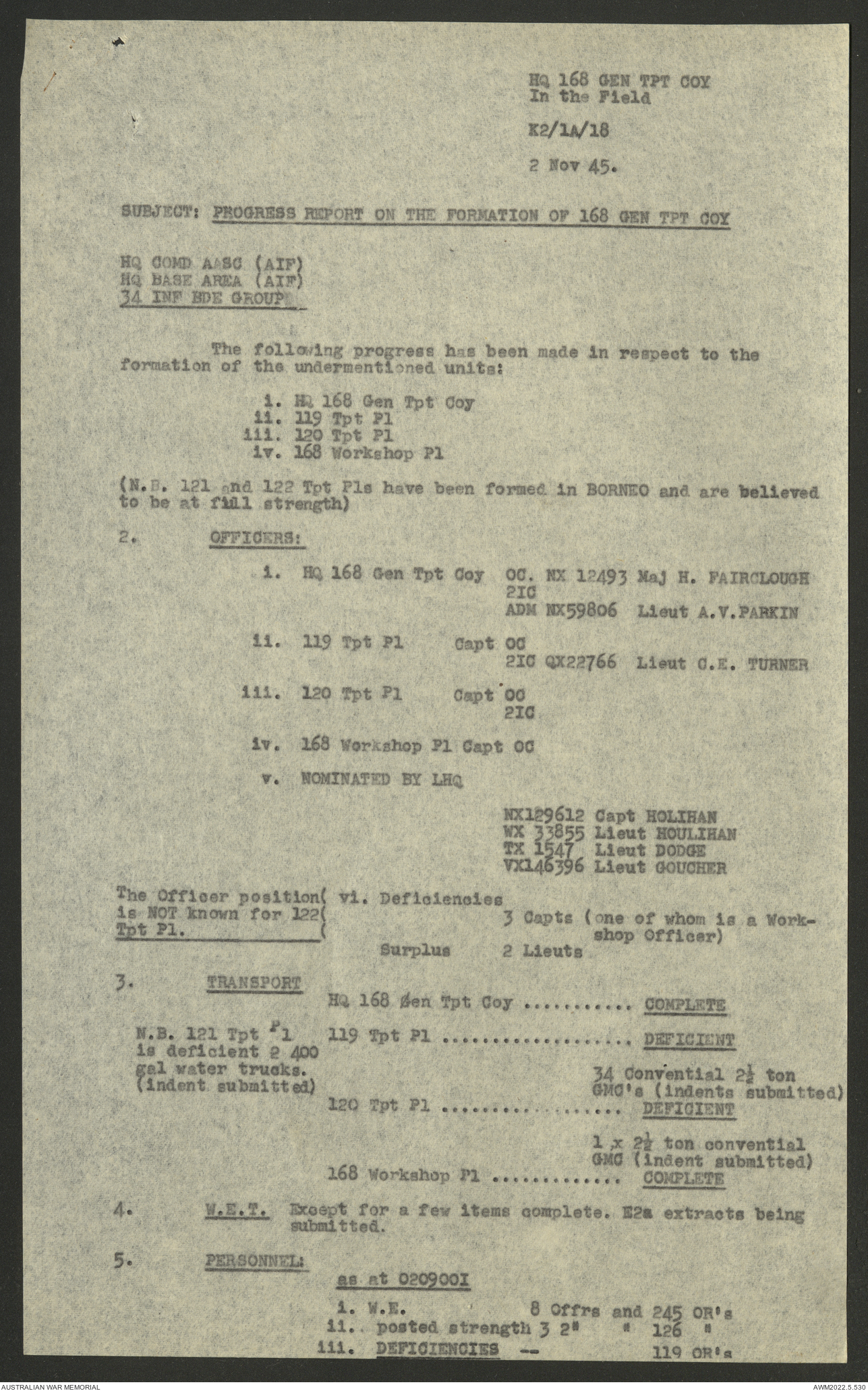 AWM52 10/4/126/1 - [Unit War Diaries, 1939-45 War] 121 Aust. [Australian] Transport Platoon, October - December 1945