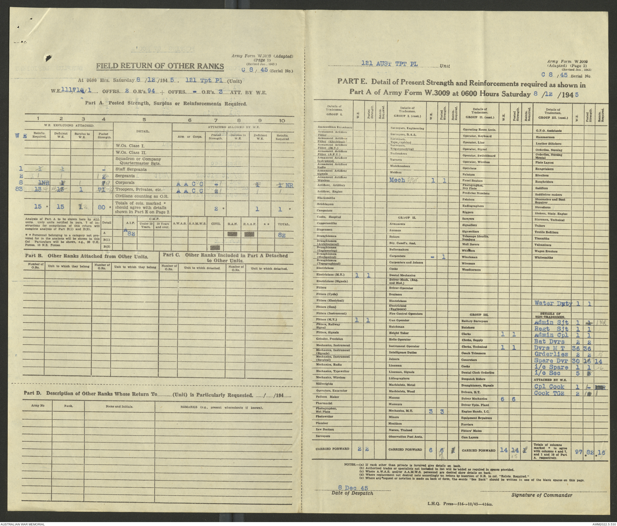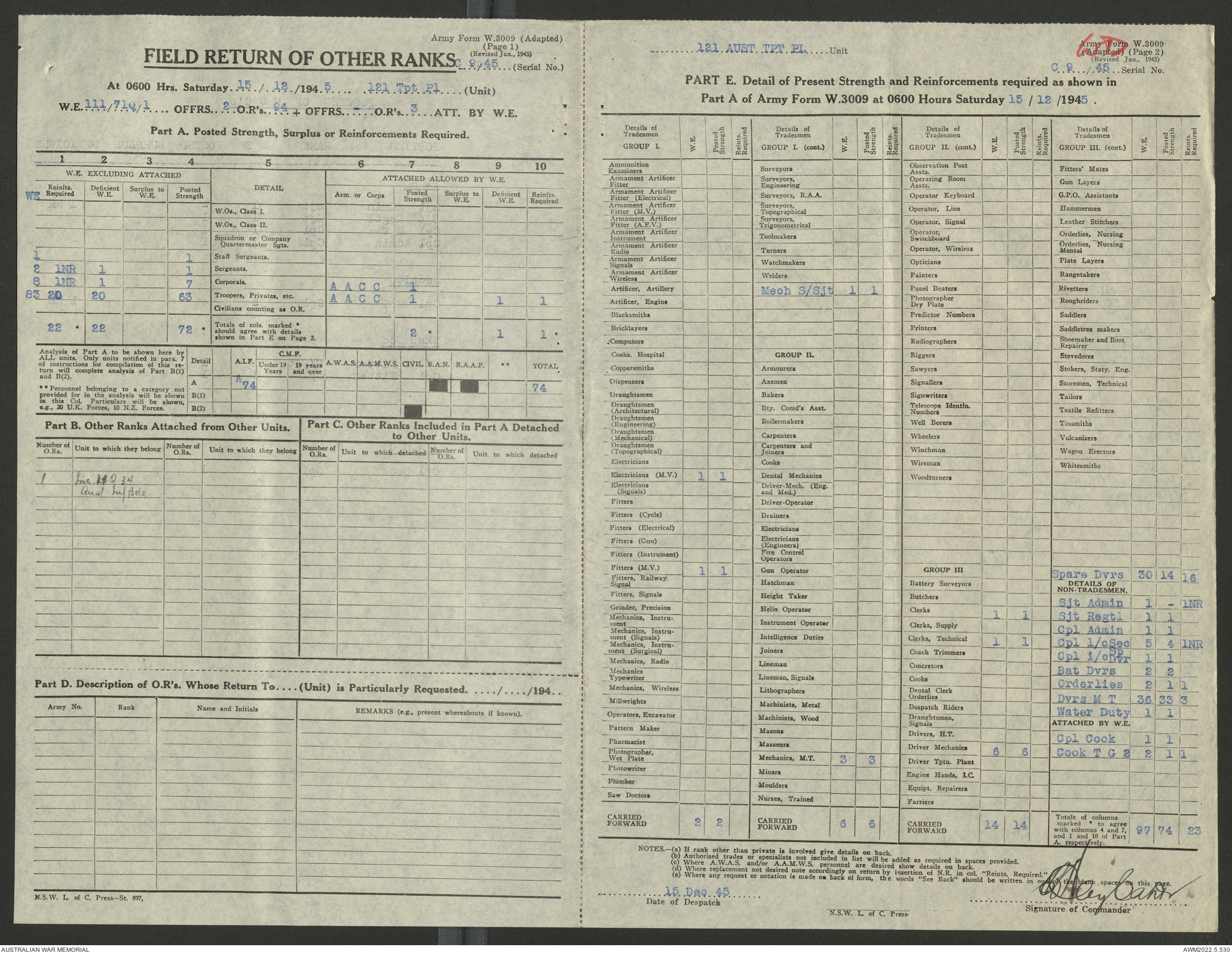 2nd AIF (Australian Imperial Force) and CMF (Citizen Military Forces) unit war diaries, 1939-45 War