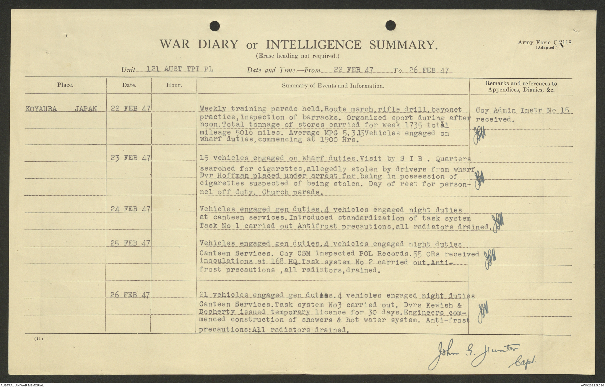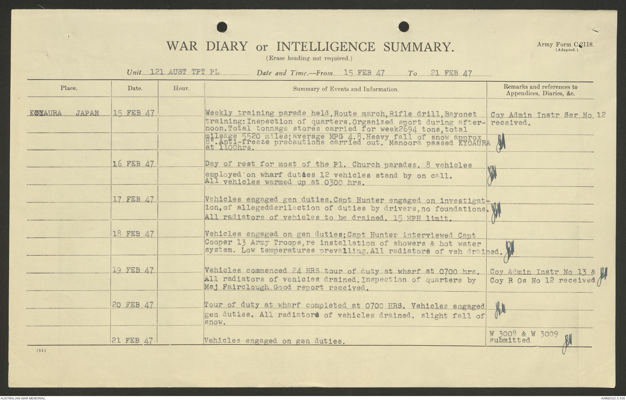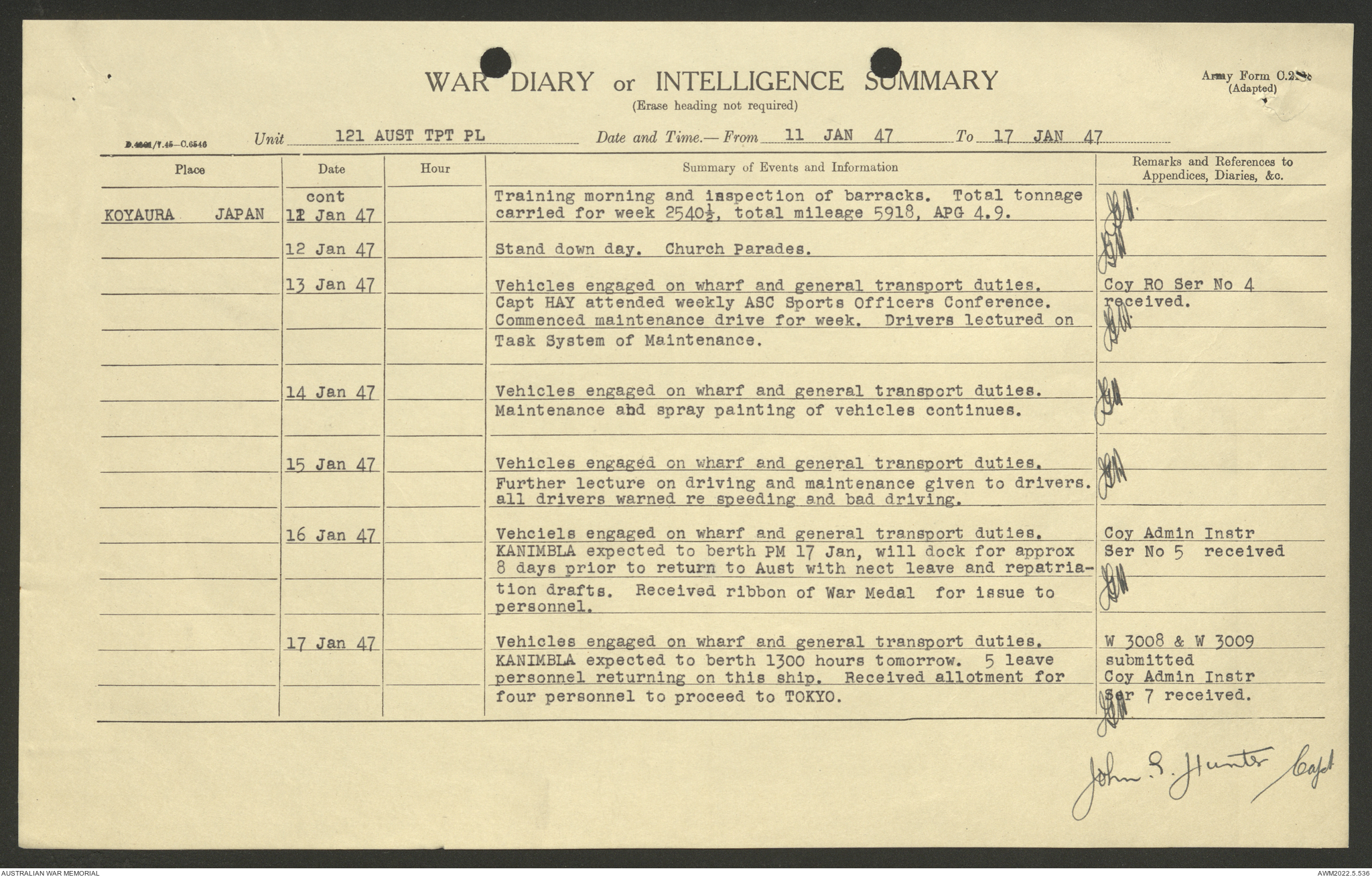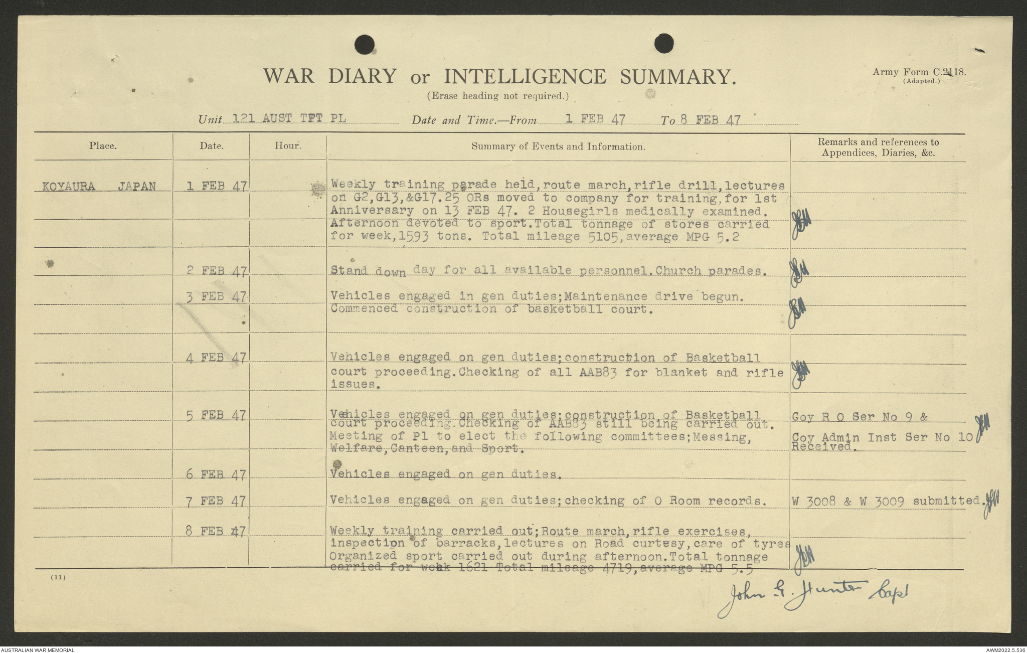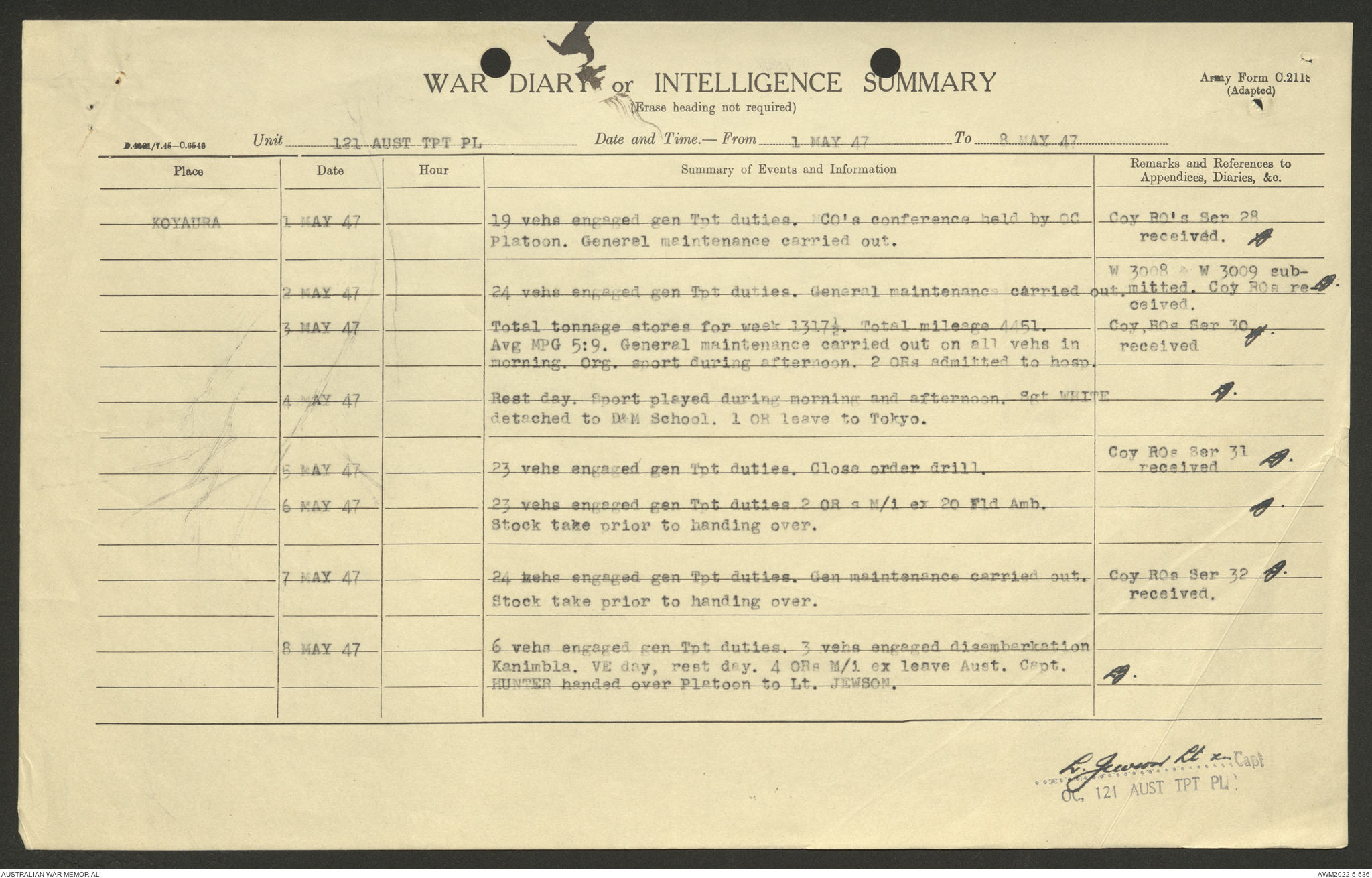 AWM52 10/4/126/7 - [Unit War Diaries, 1939-45 War] 121 Aust. [Australian] Transport Platoon, January - May 1947