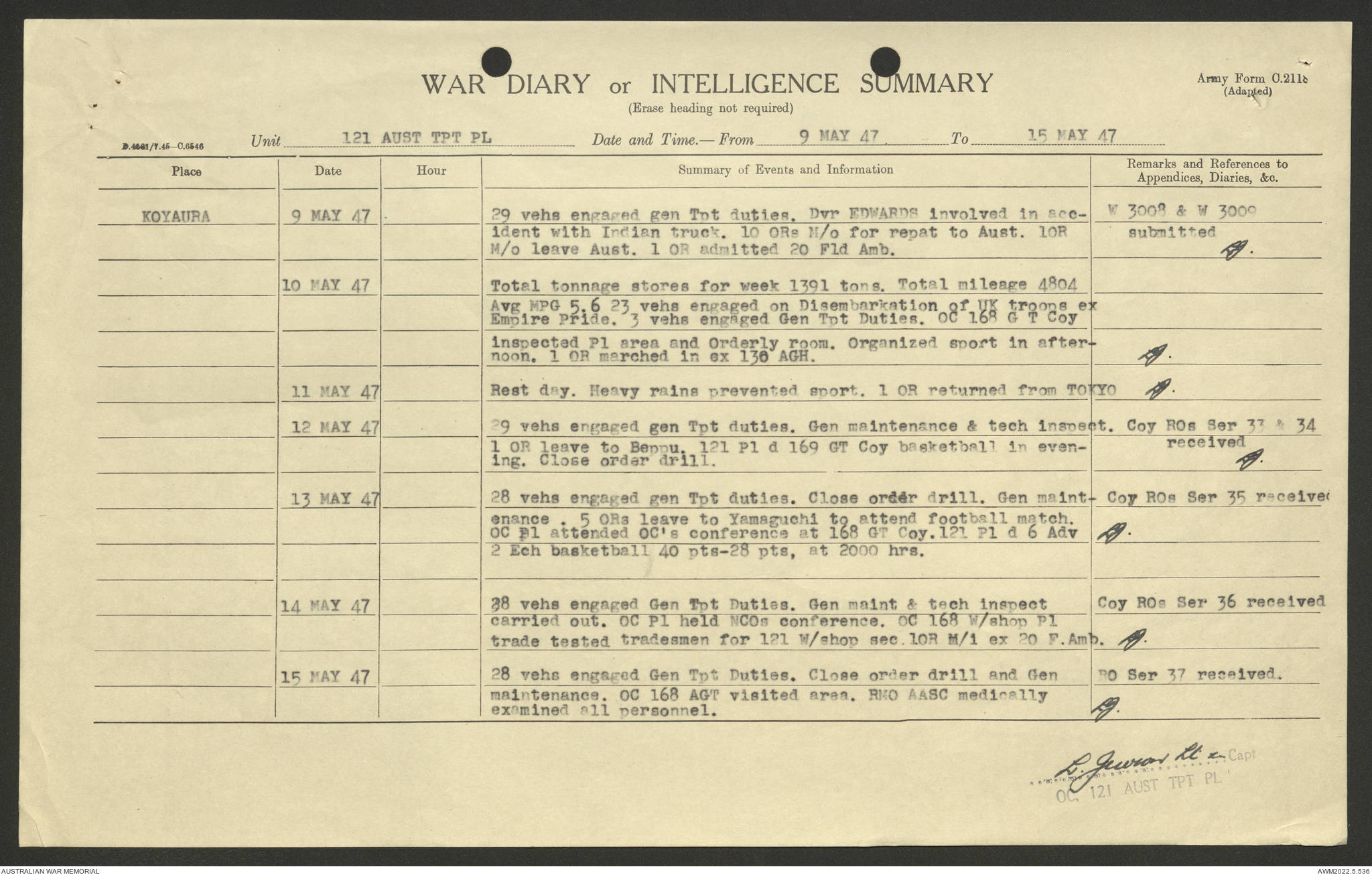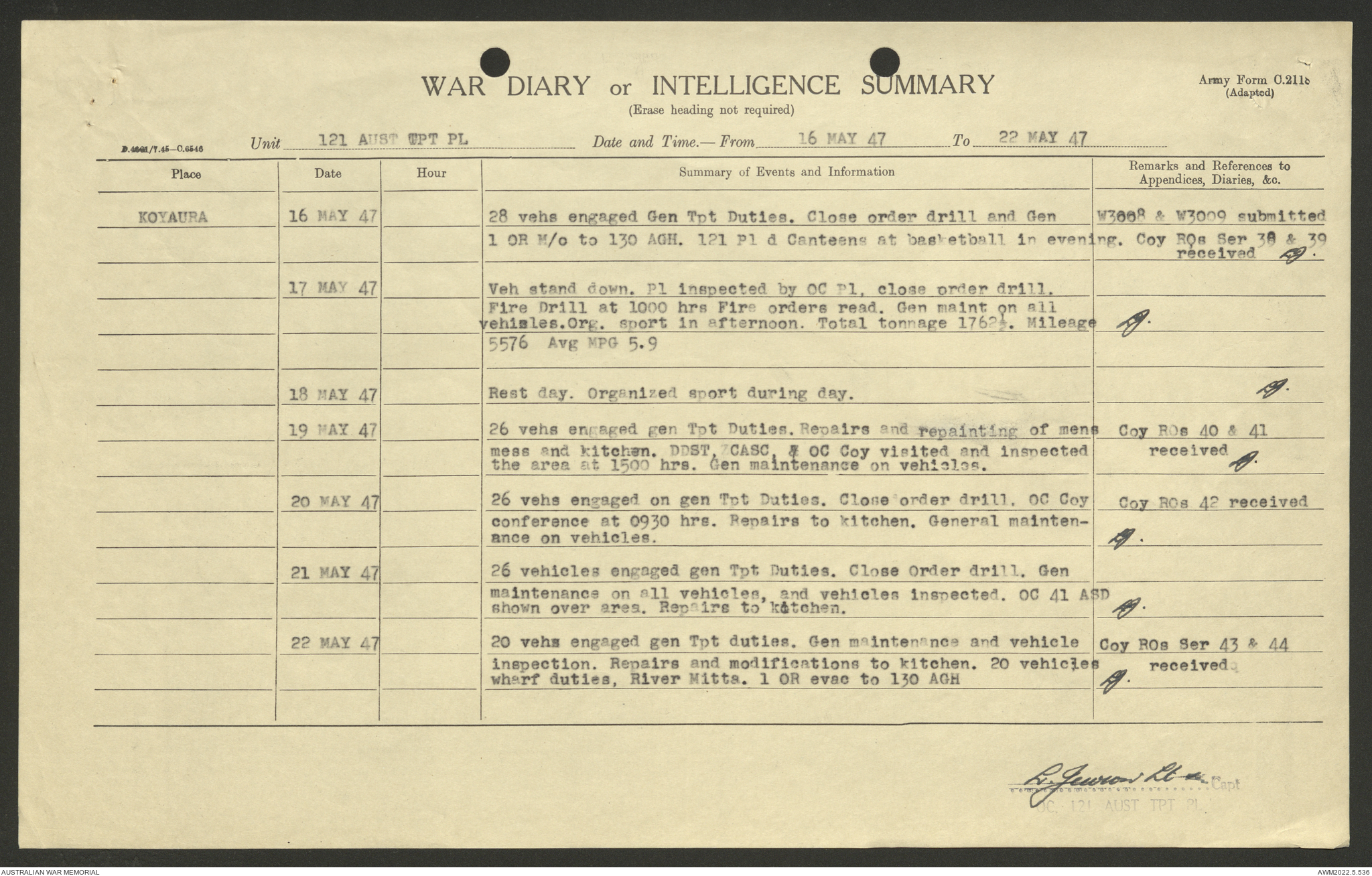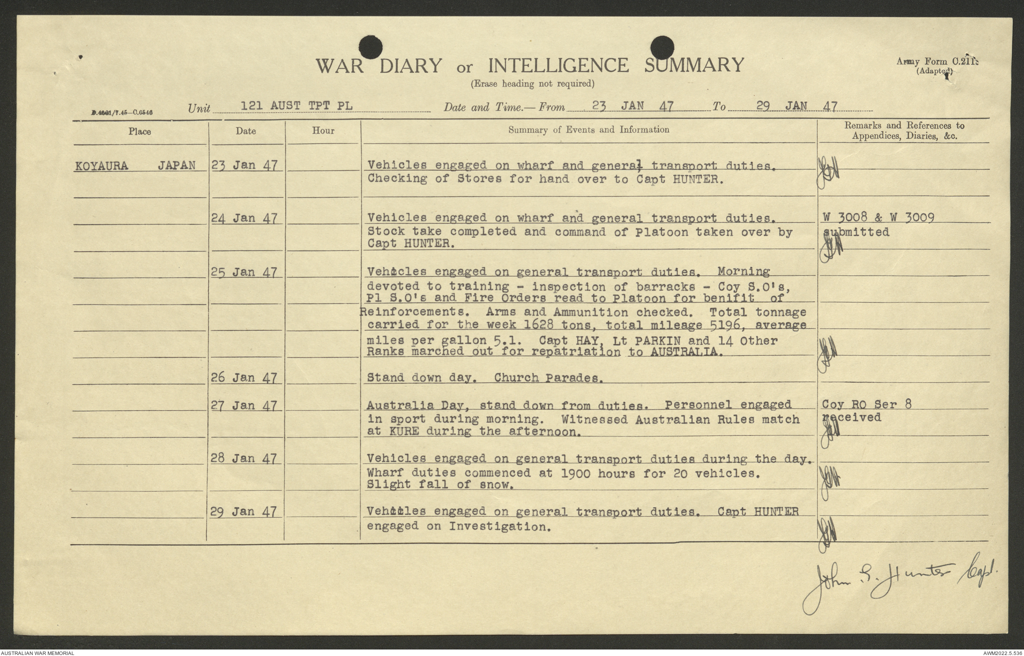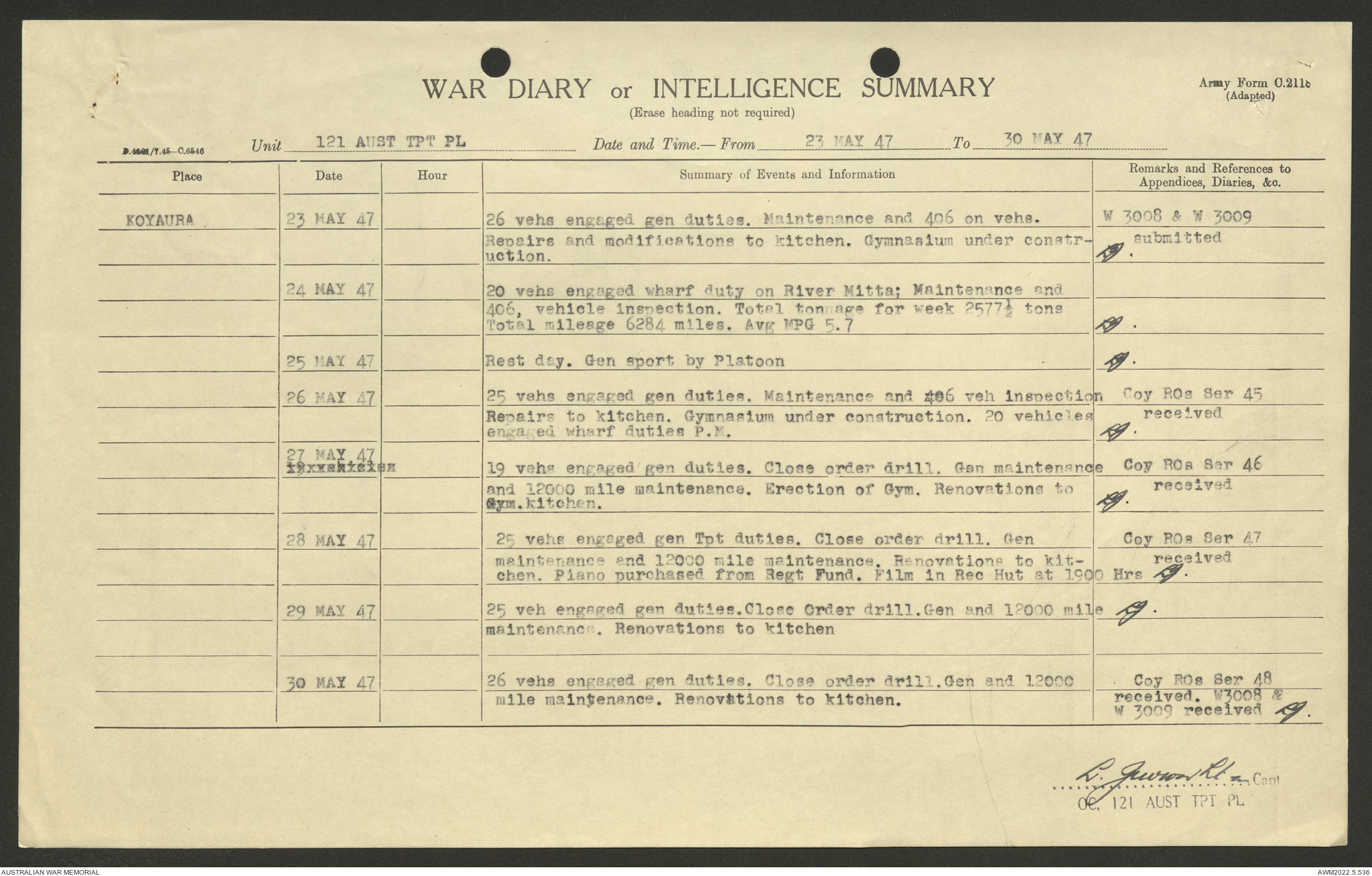 AWM52 10/4/126/7 - [Unit War Diaries, 1939-45 War] 121 Aust. [Australian] Transport Platoon, January - May 1947