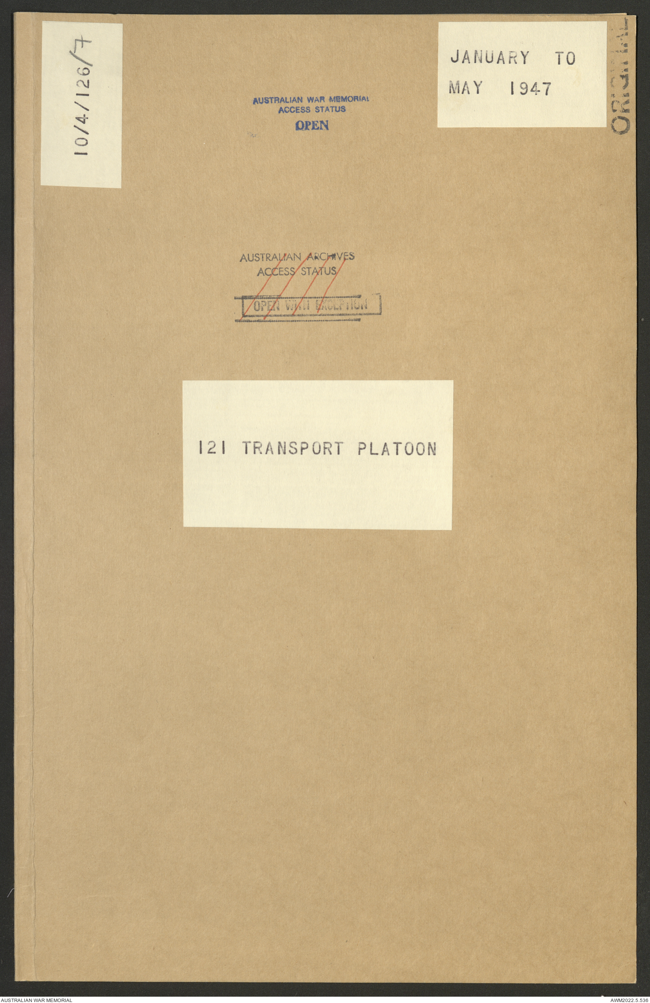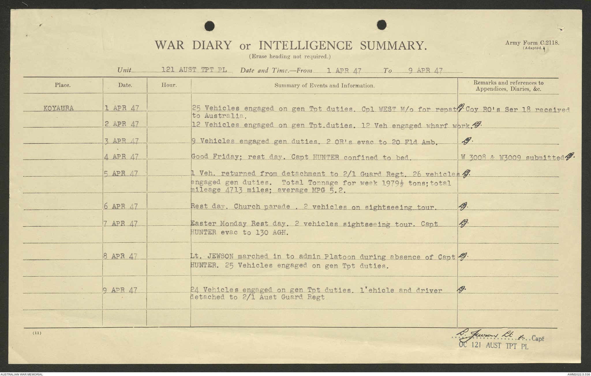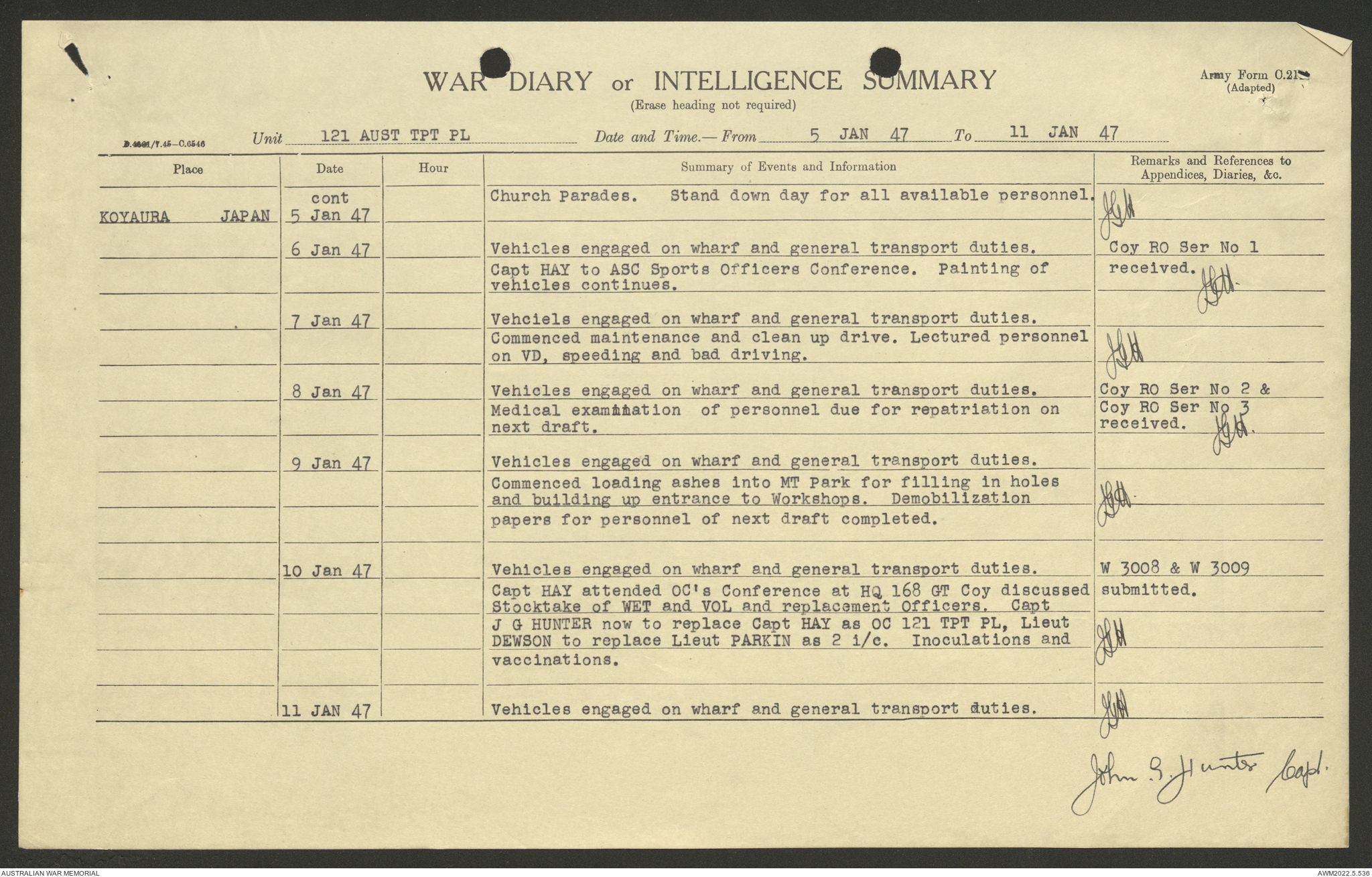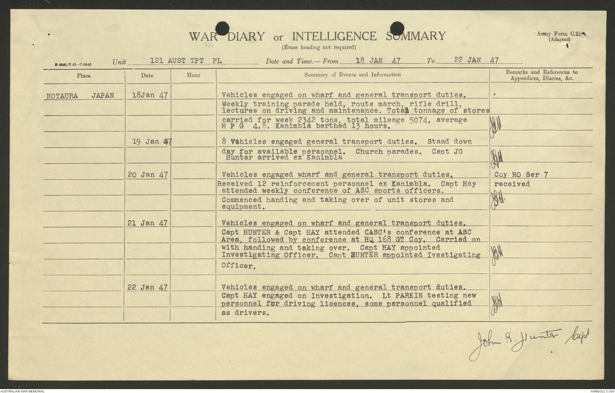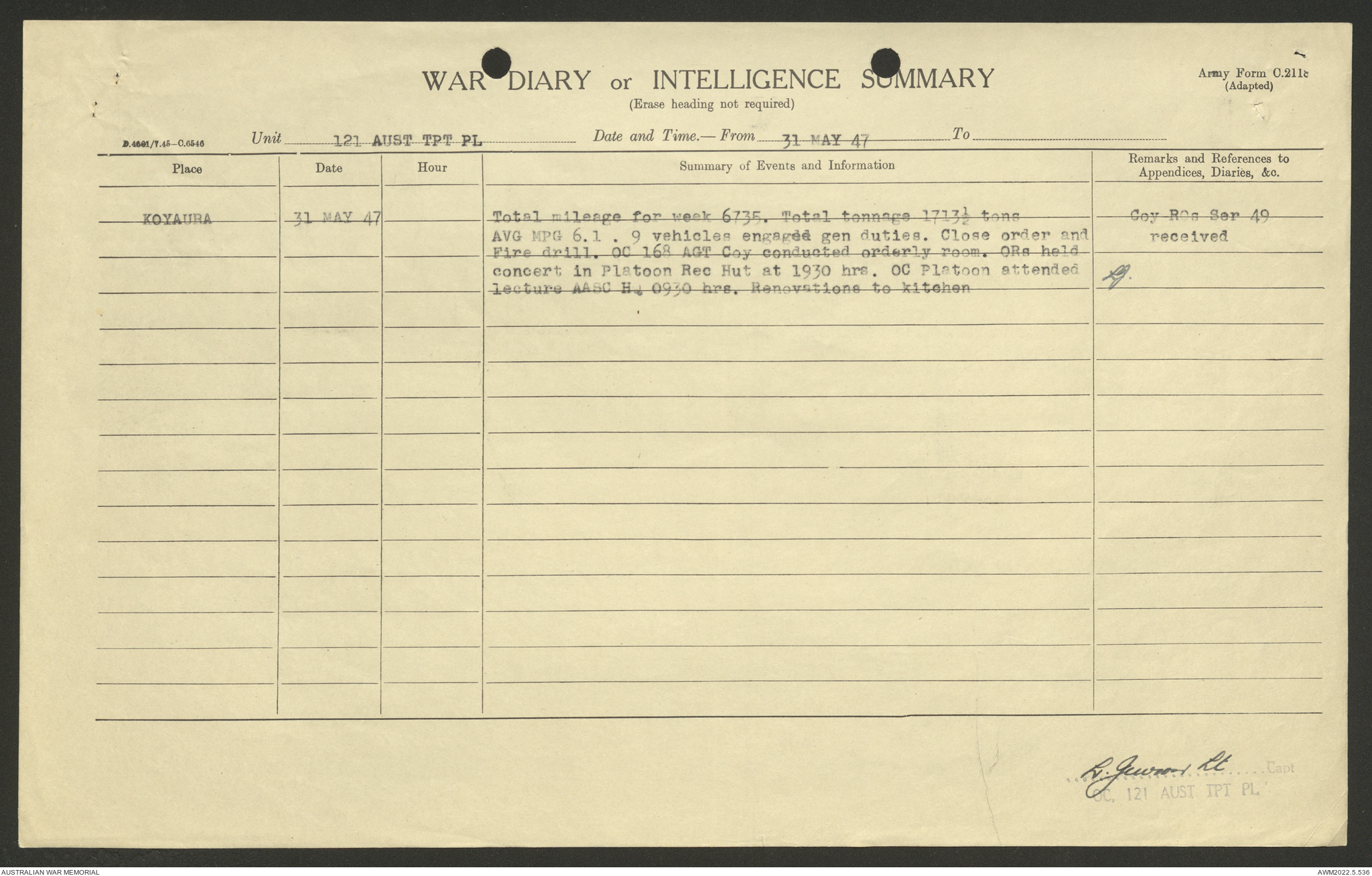AWM52 10/4/126/7 - [Unit War Diaries, 1939-45 War] 121 Aust. [Australian] Transport Platoon, January - May 1947