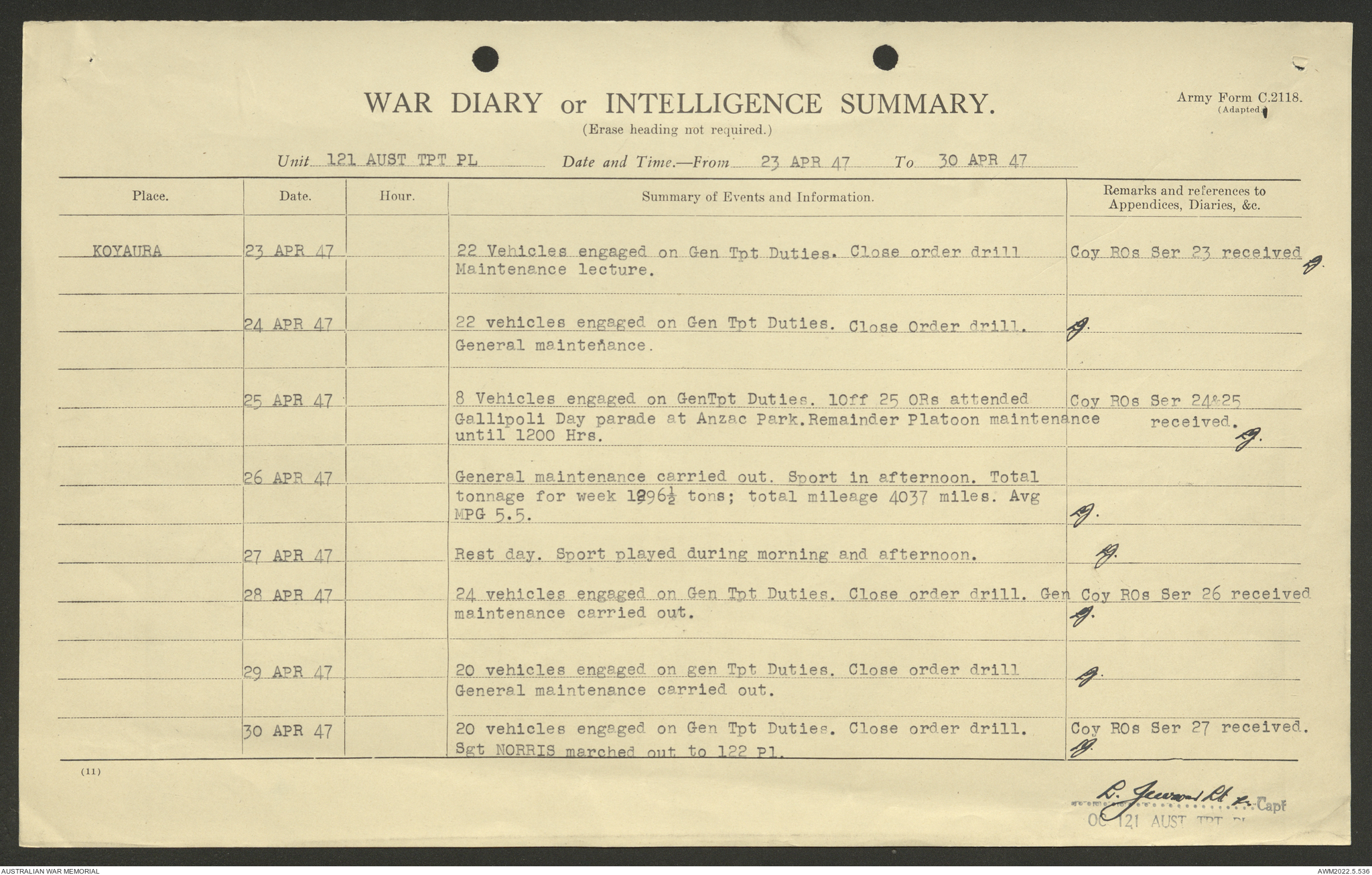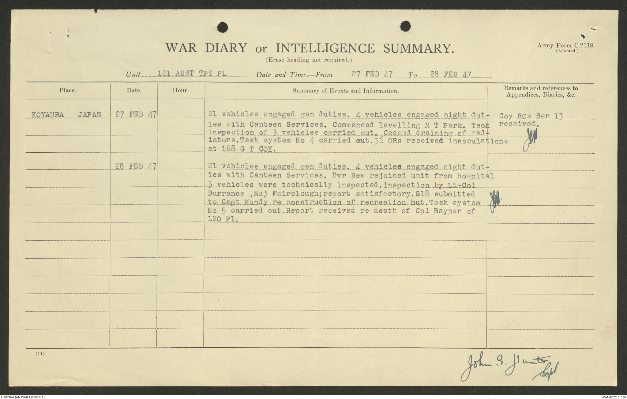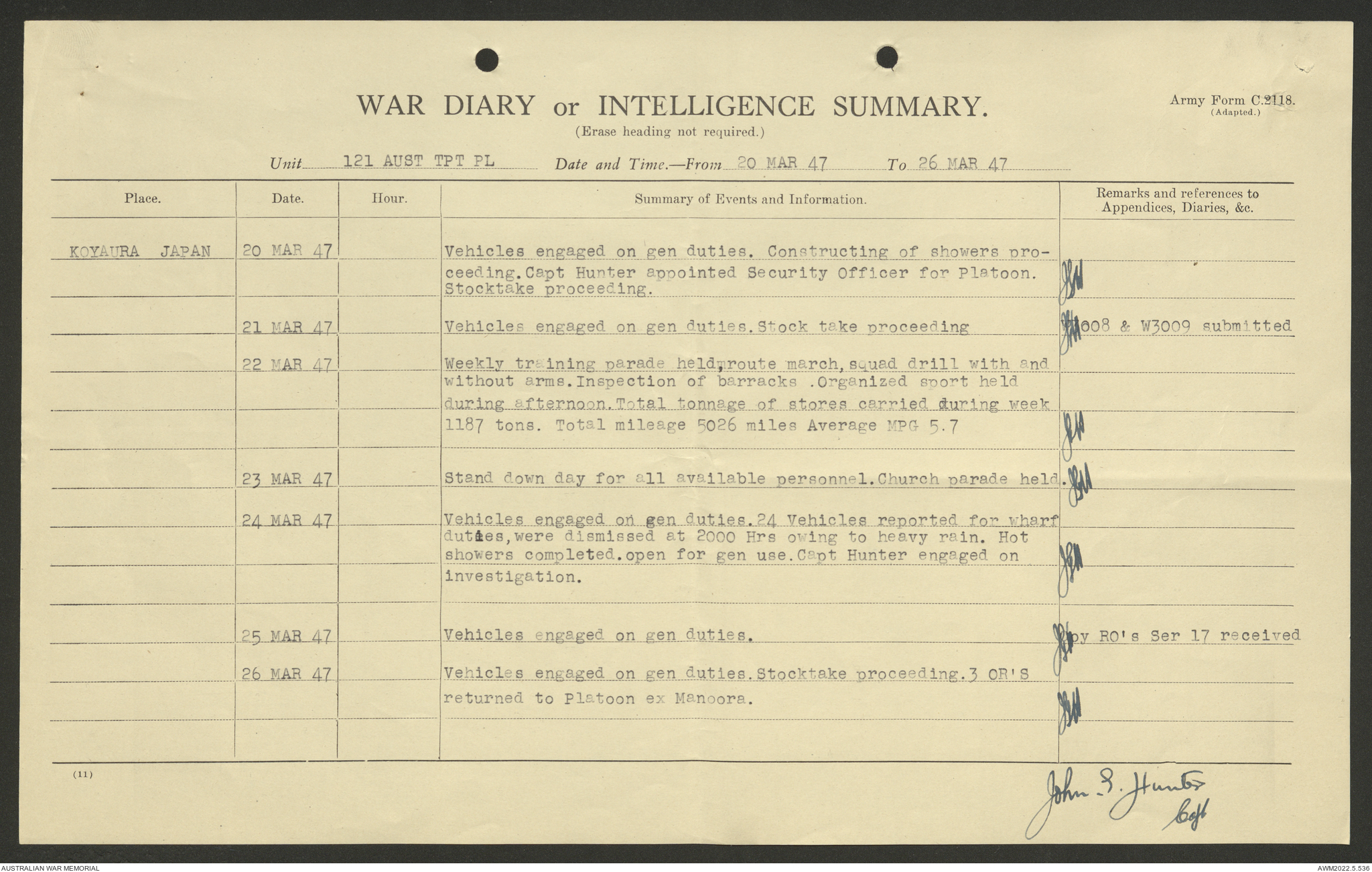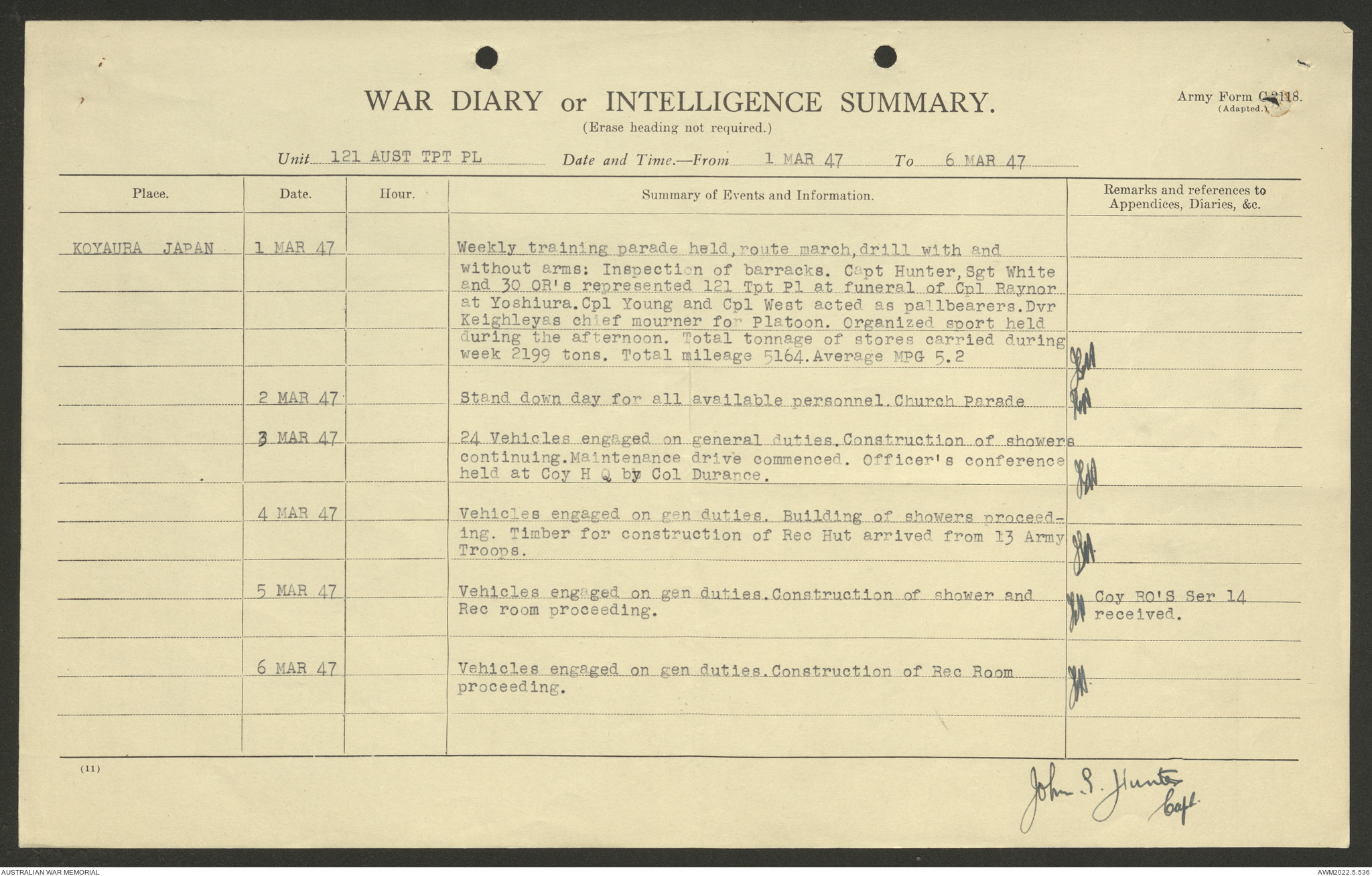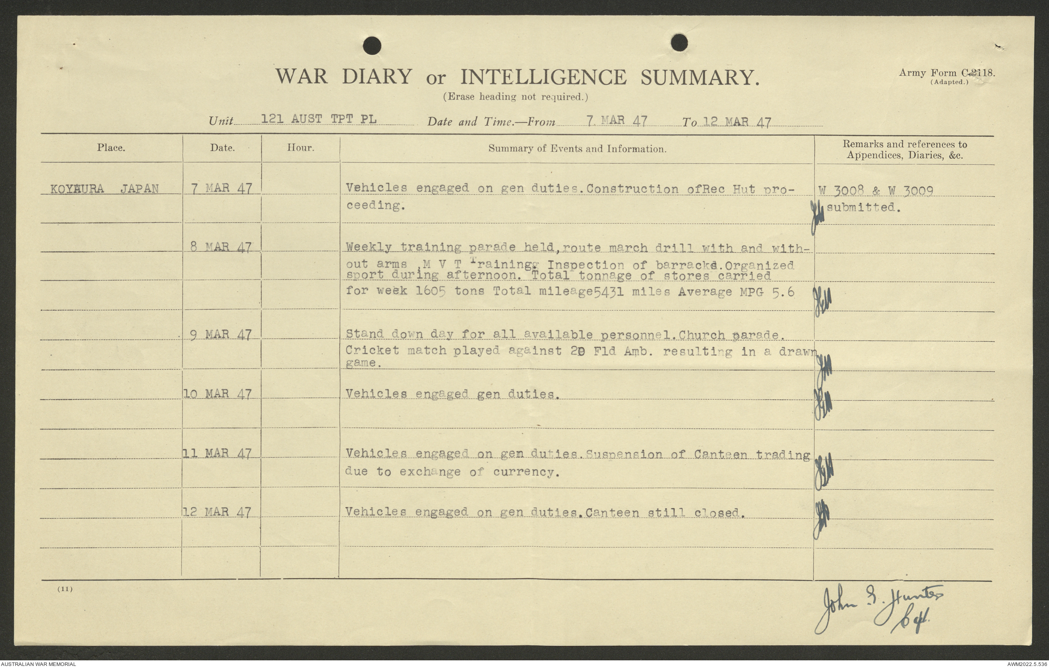 AWM52 10/4/126/7 - [Unit War Diaries, 1939-45 War] 121 Aust. [Australian] Transport Platoon, January - May 1947