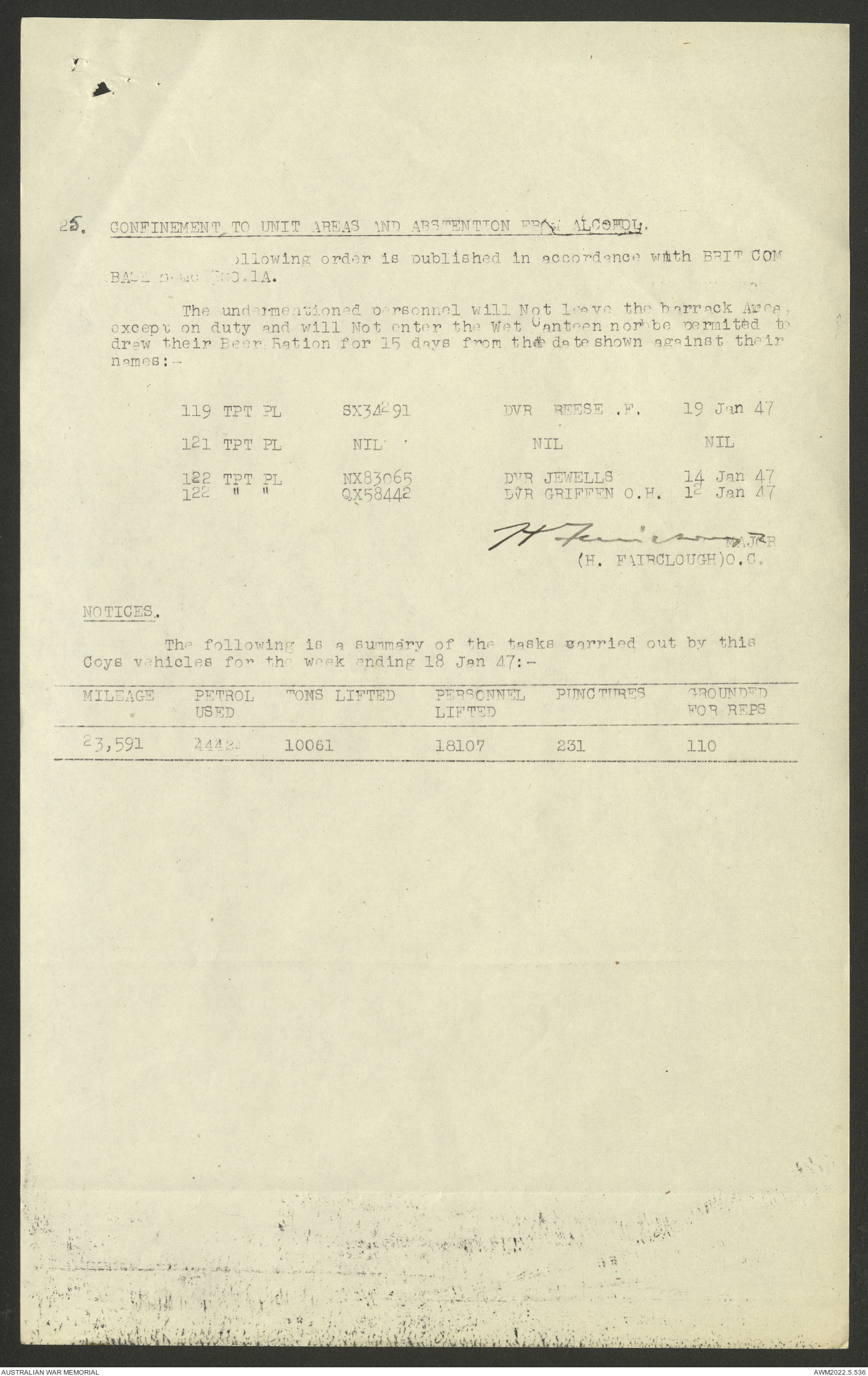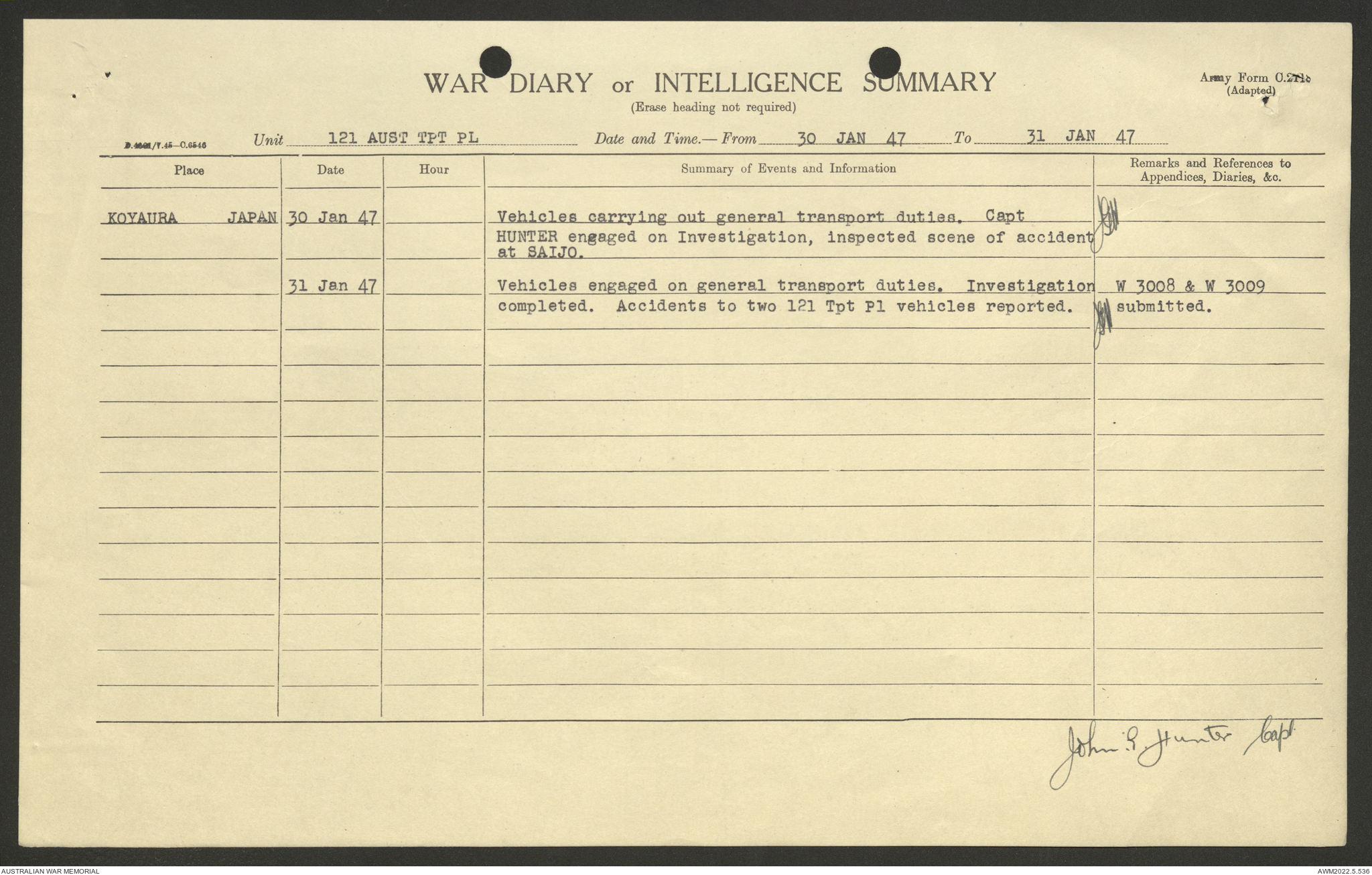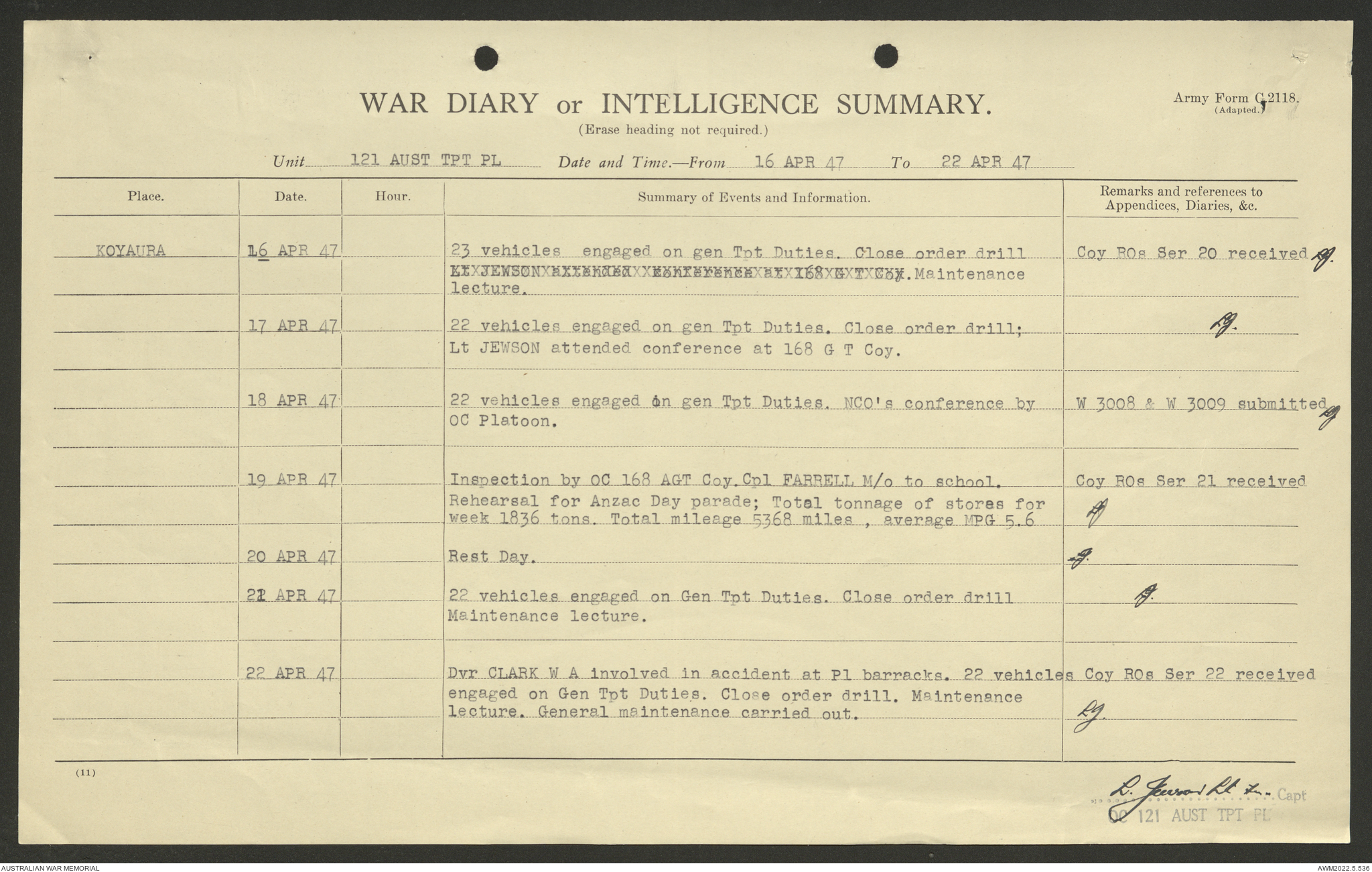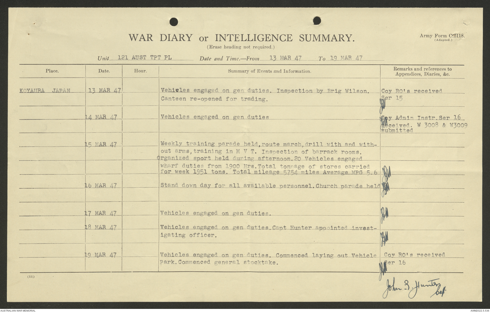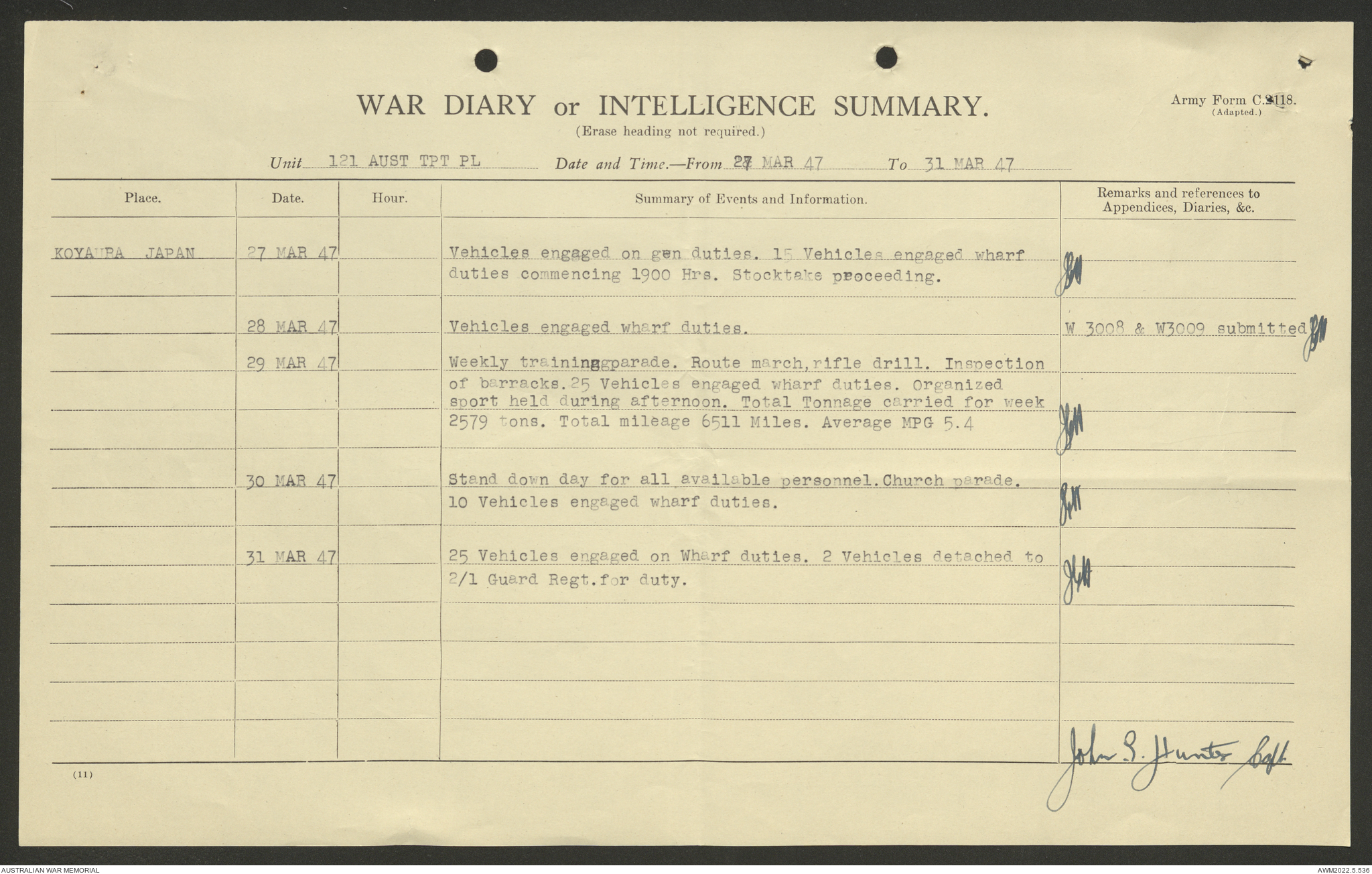 AWM52 10/4/126/7 - [Unit War Diaries, 1939-45 War] 121 Aust. [Australian] Transport Platoon, January - May 1947