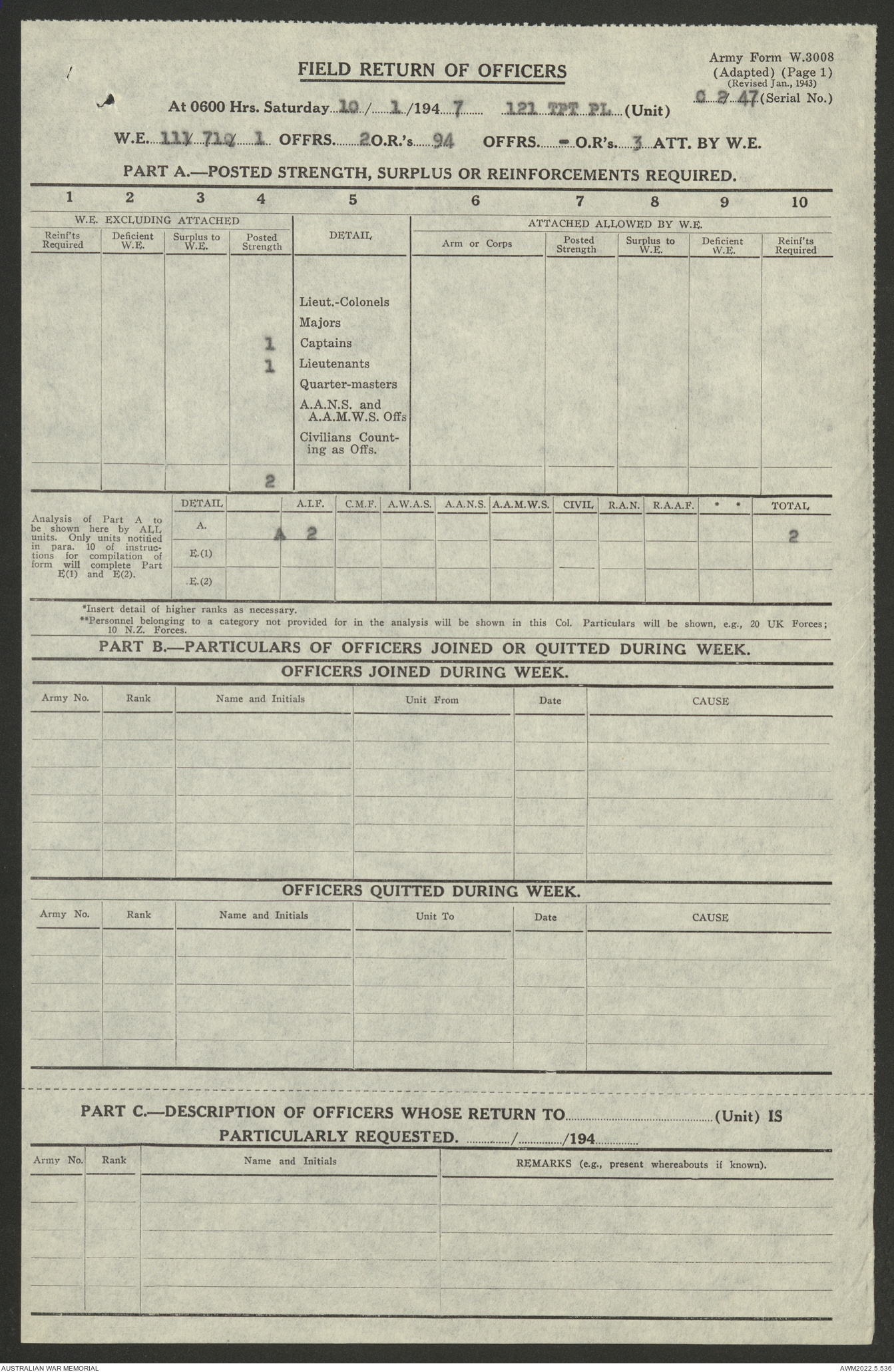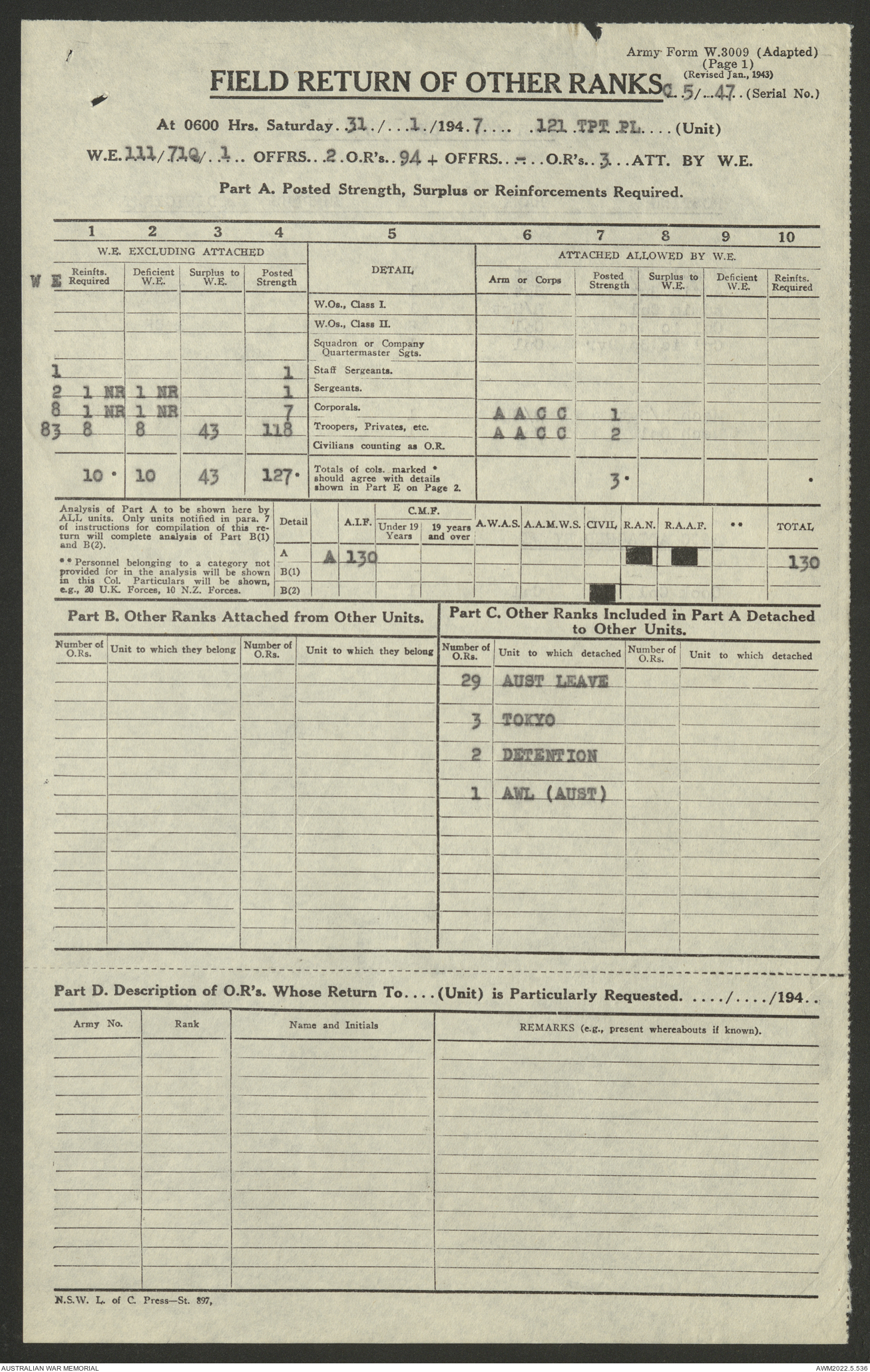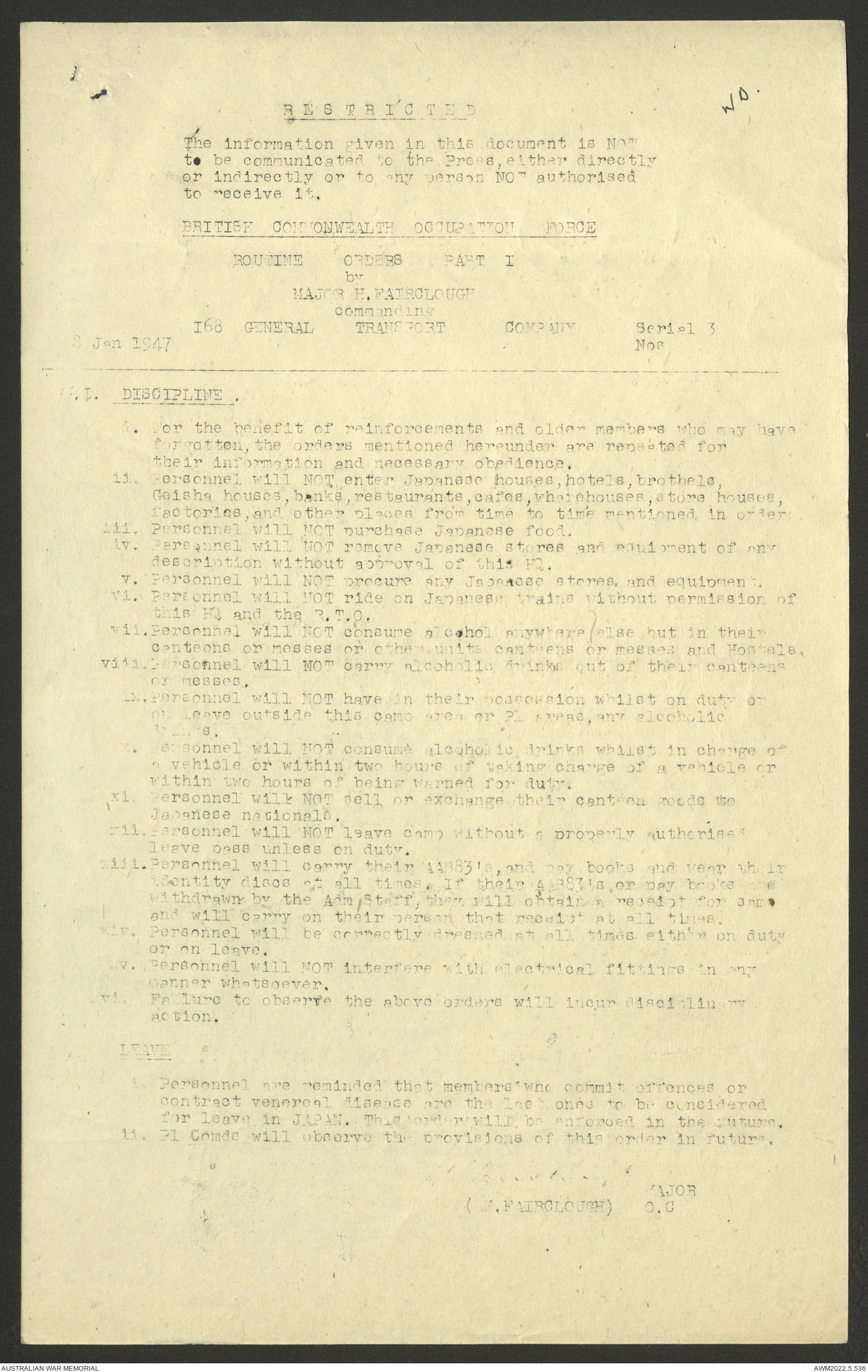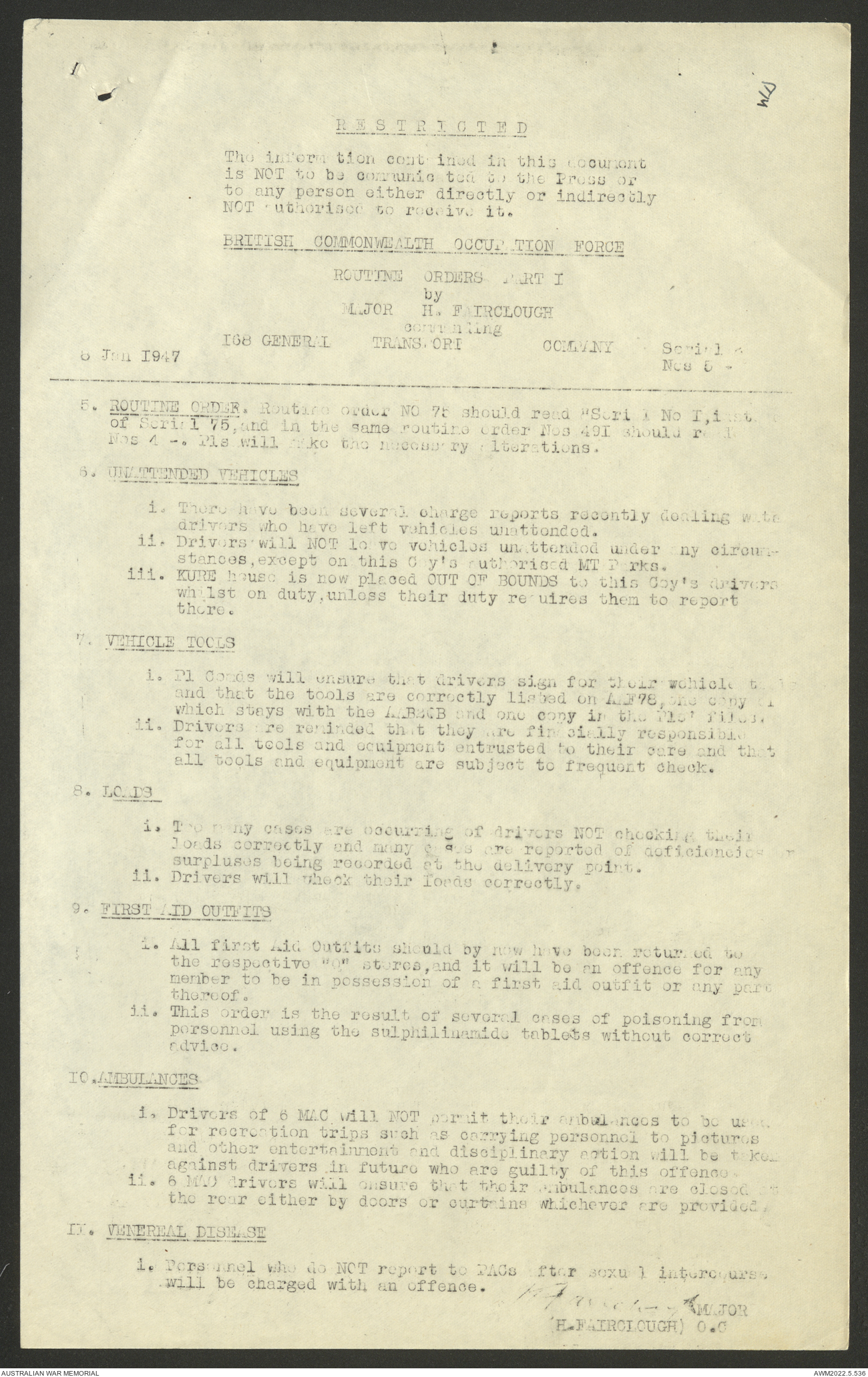 AWM52 10/4/126/7 - [Unit War Diaries, 1939-45 War] 121 Aust. [Australian] Transport Platoon, January - May 1947