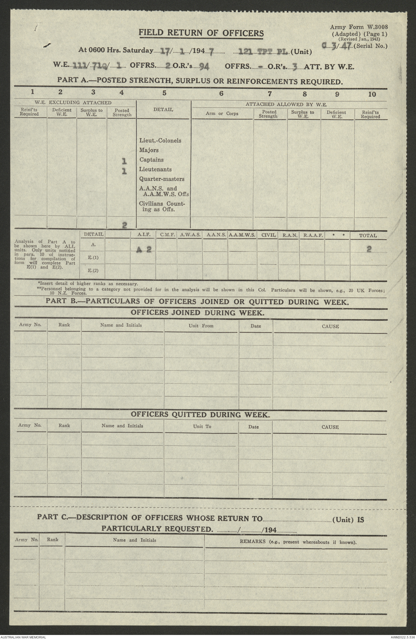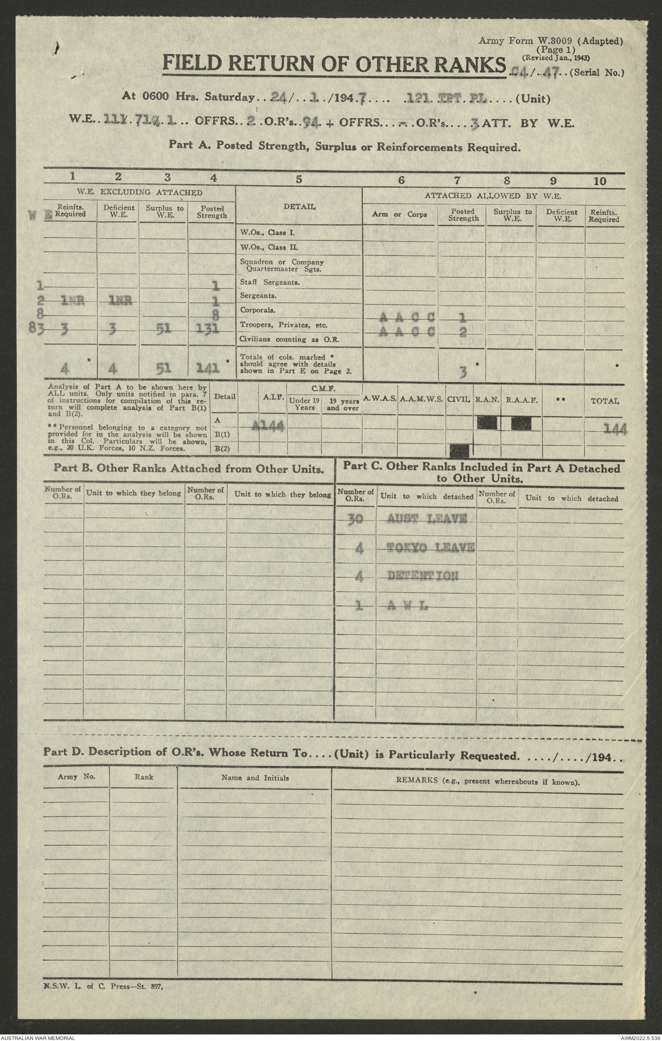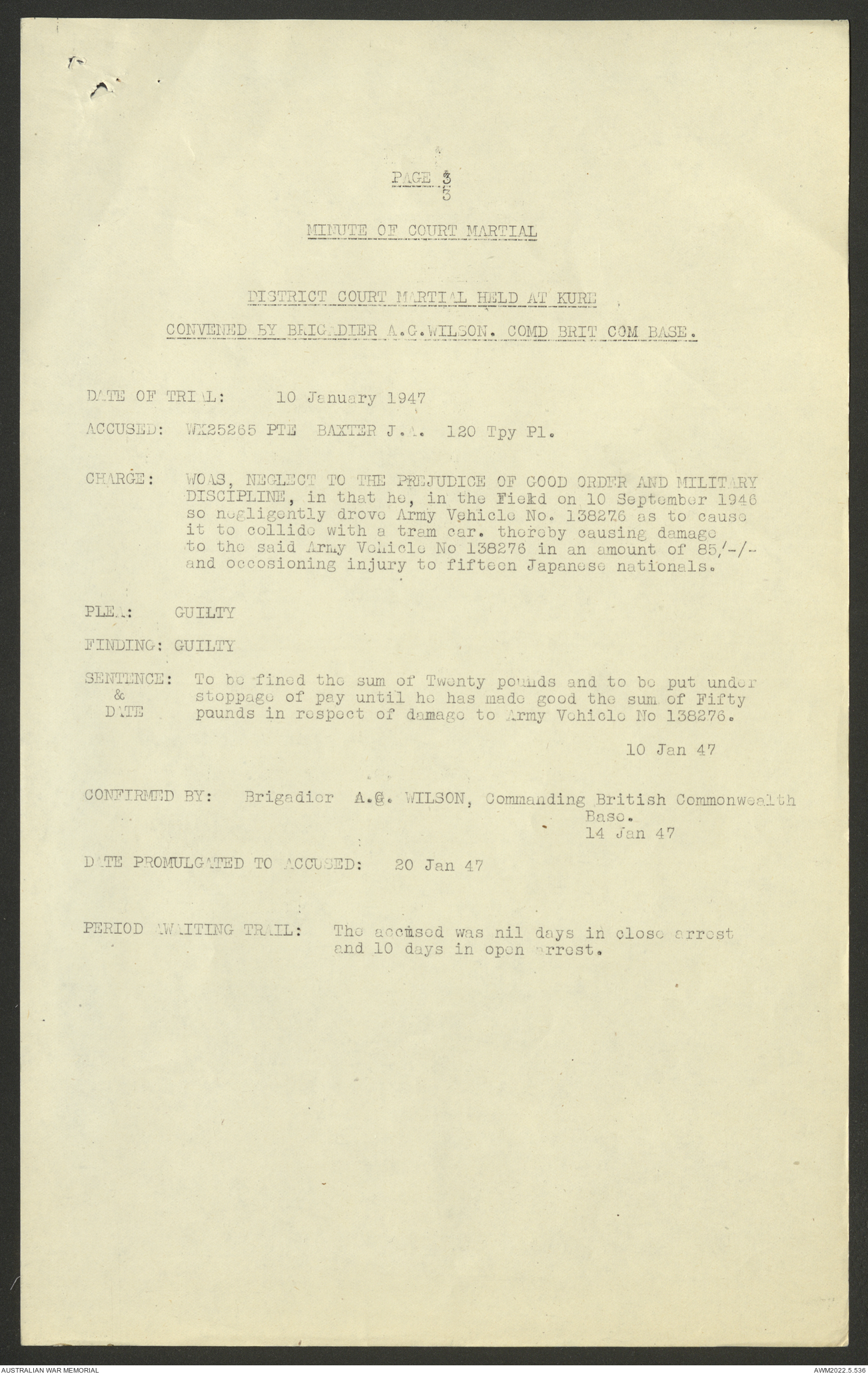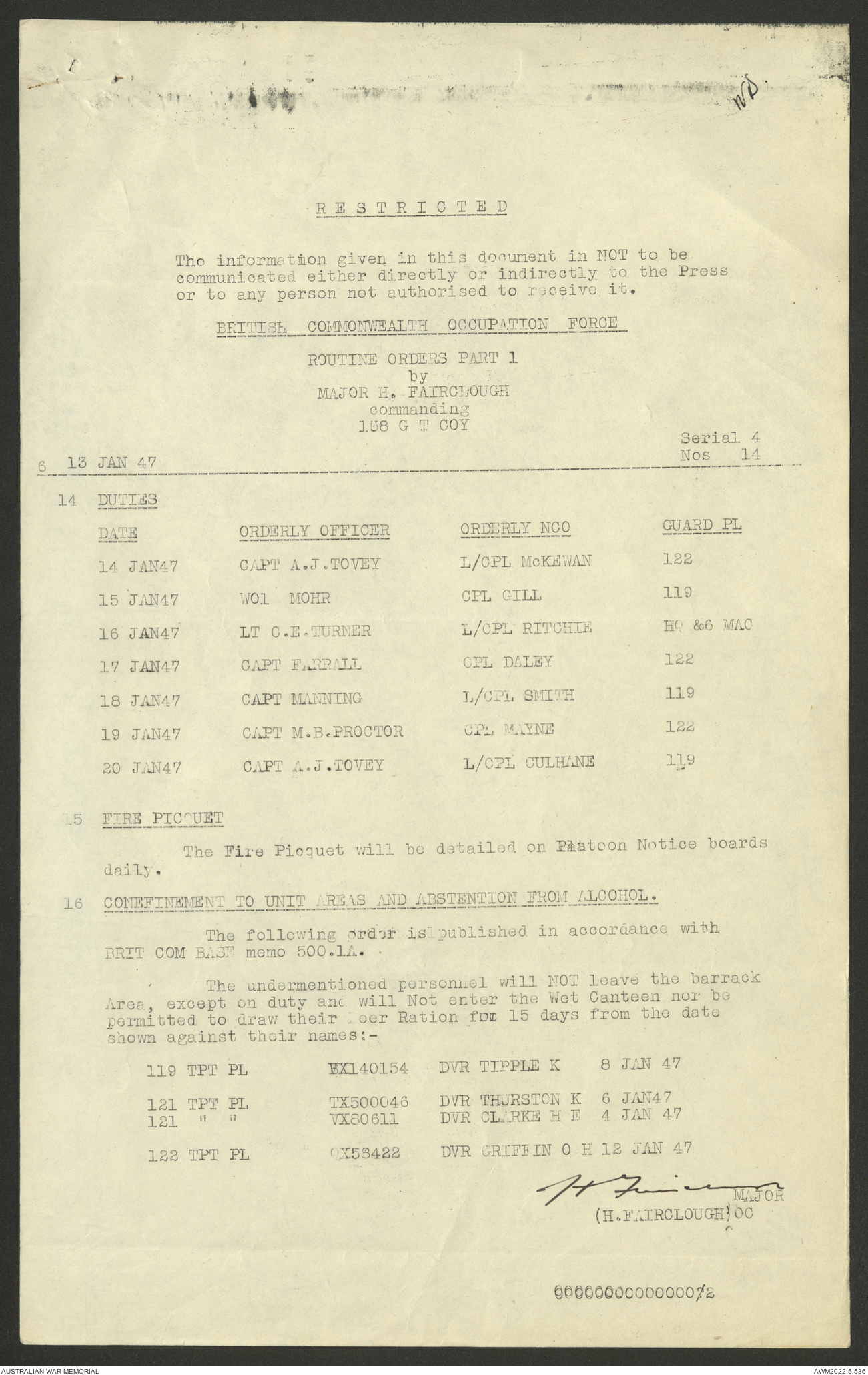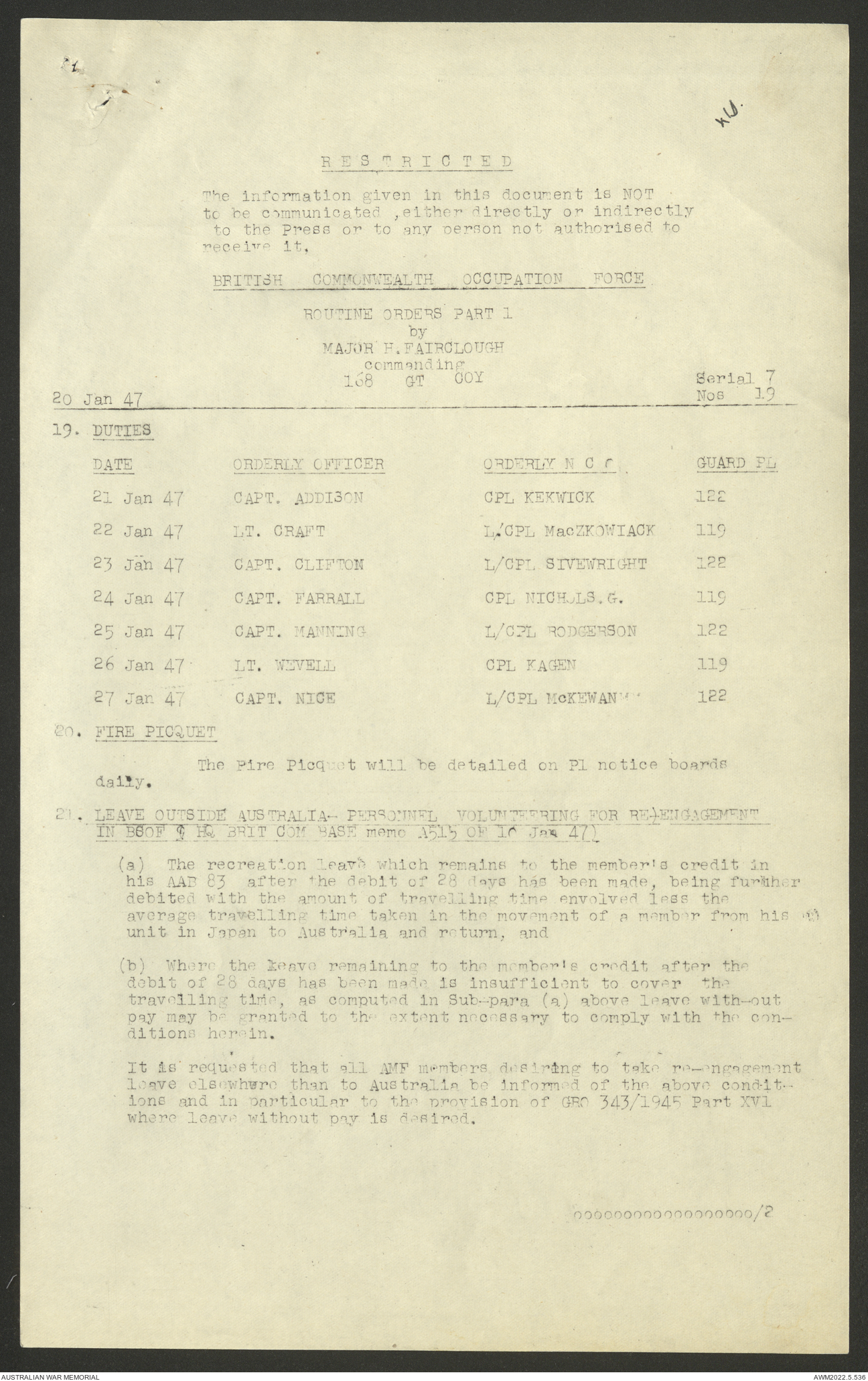 AWM52 10/4/126/7 - [Unit War Diaries, 1939-45 War] 121 Aust. [Australian] Transport Platoon, January - May 1947
