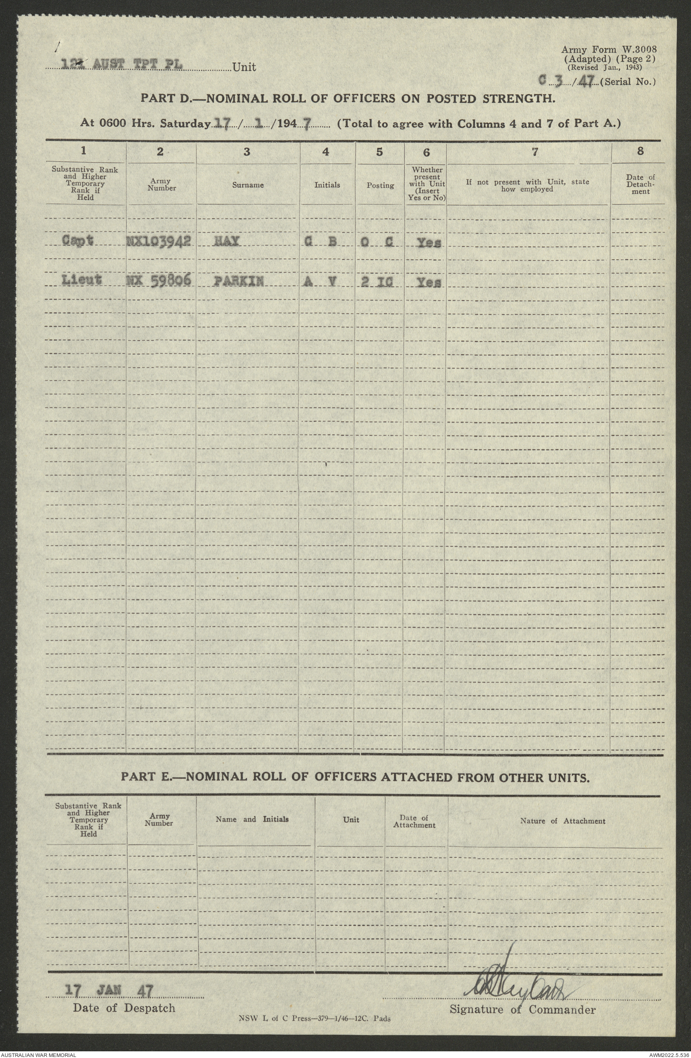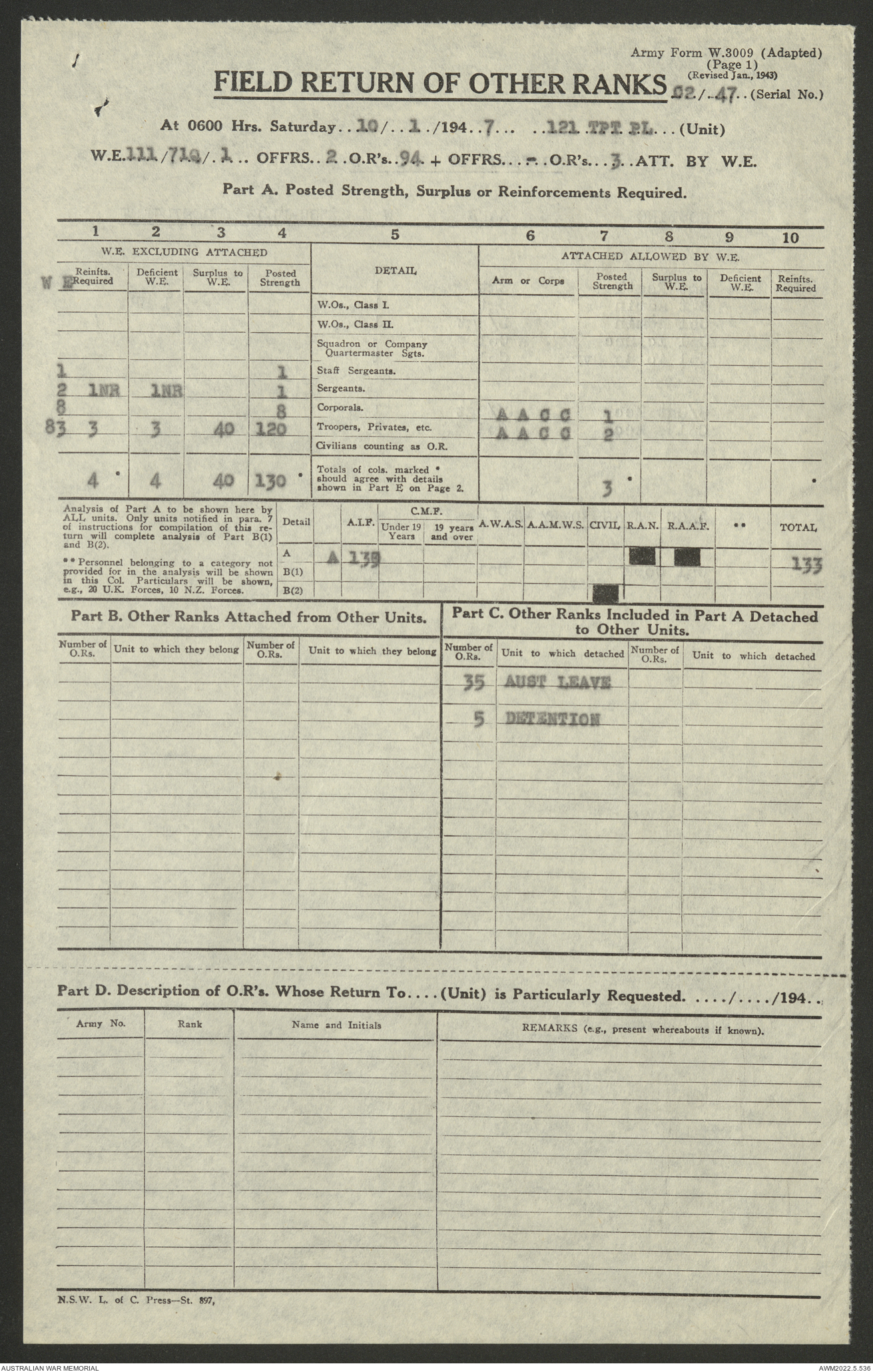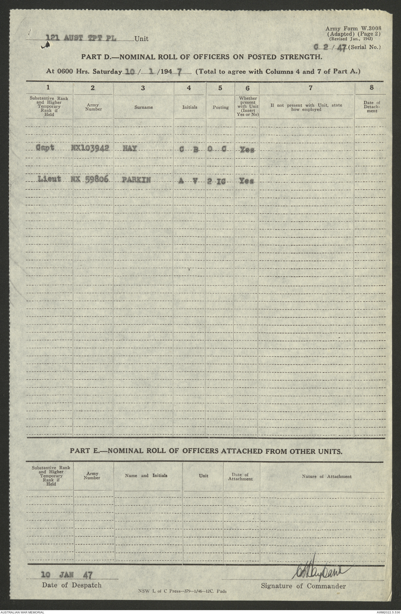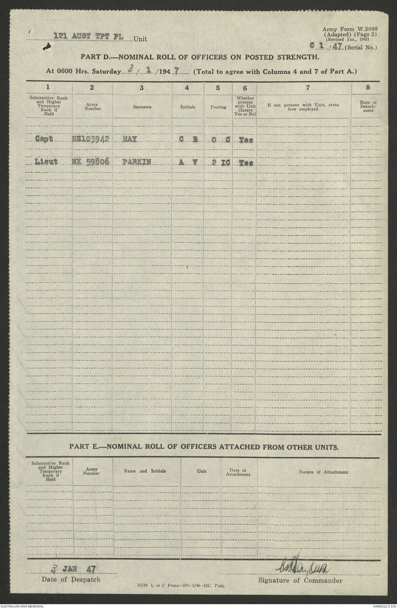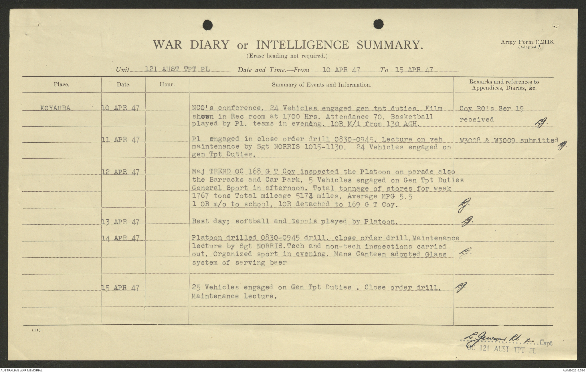 - AWM52 10/4/126 - 121 Transport Platoon