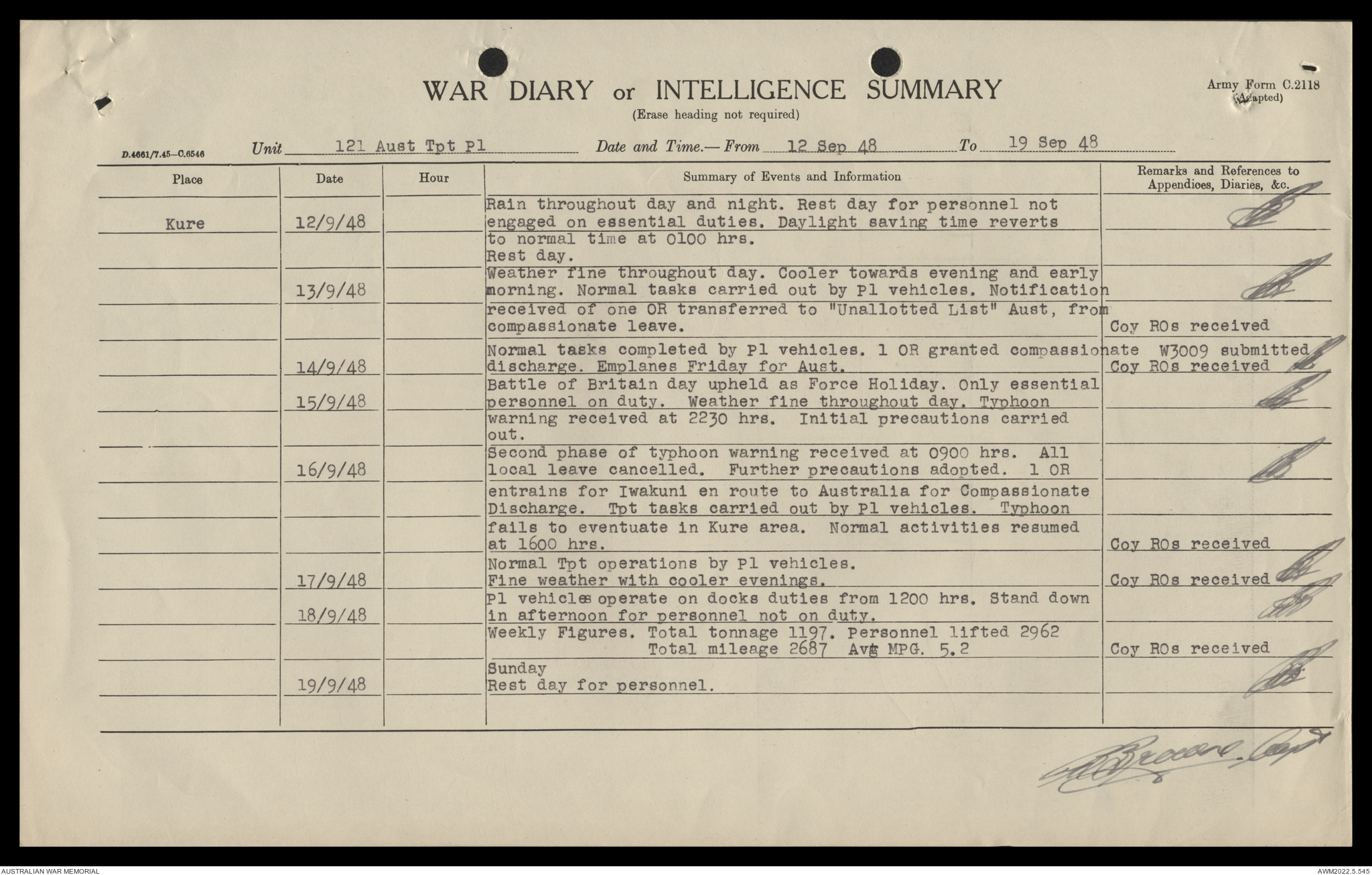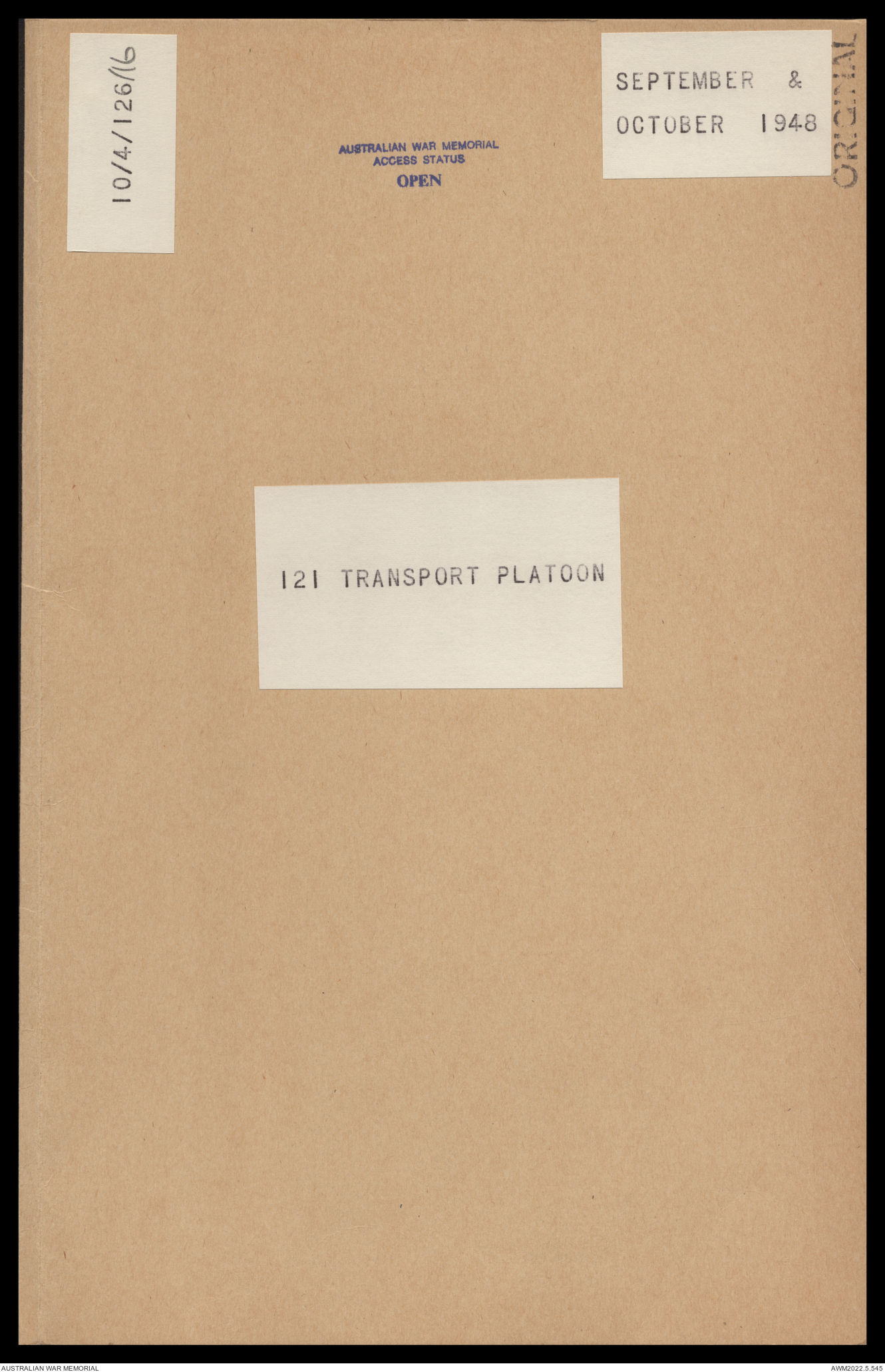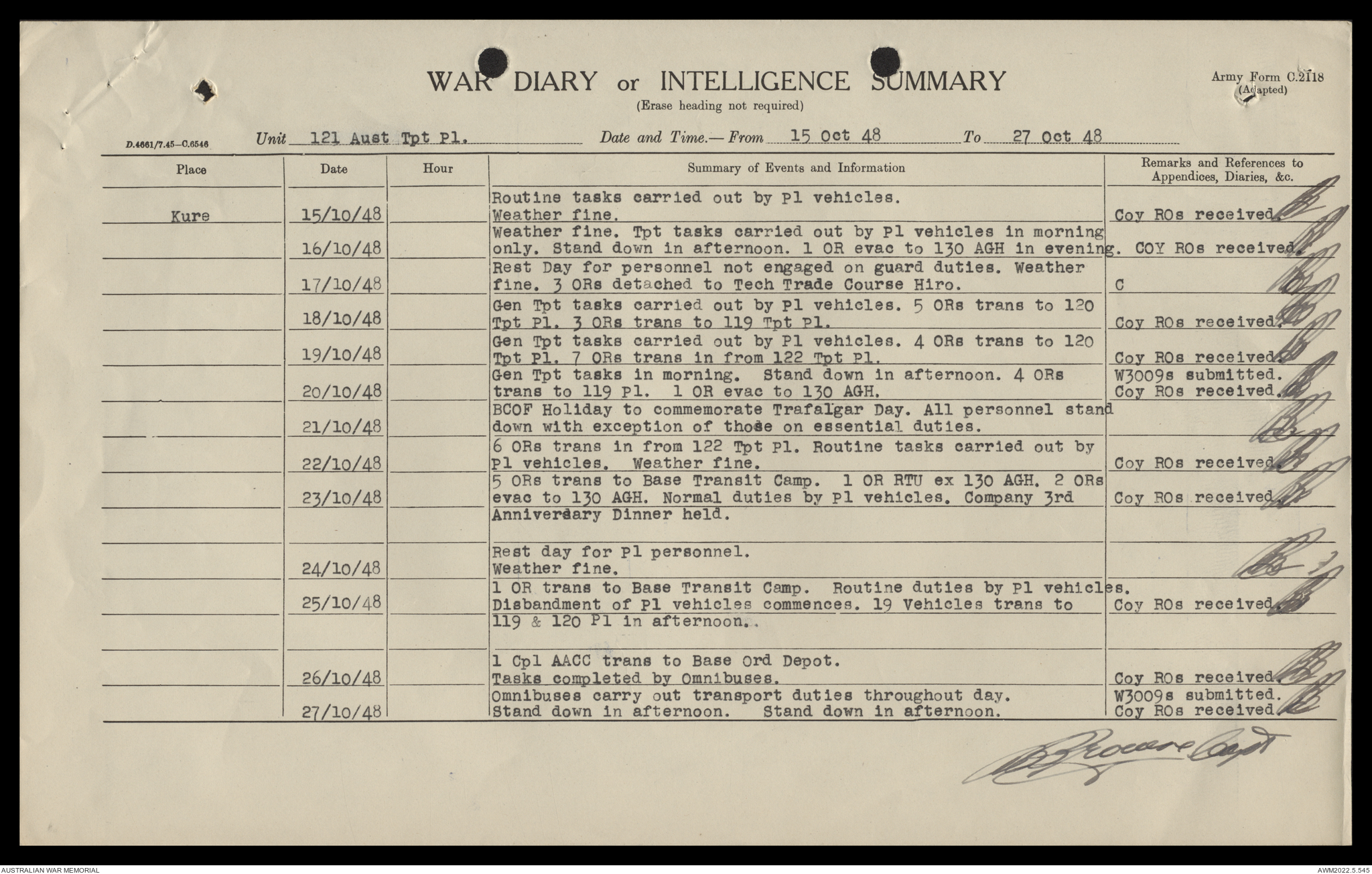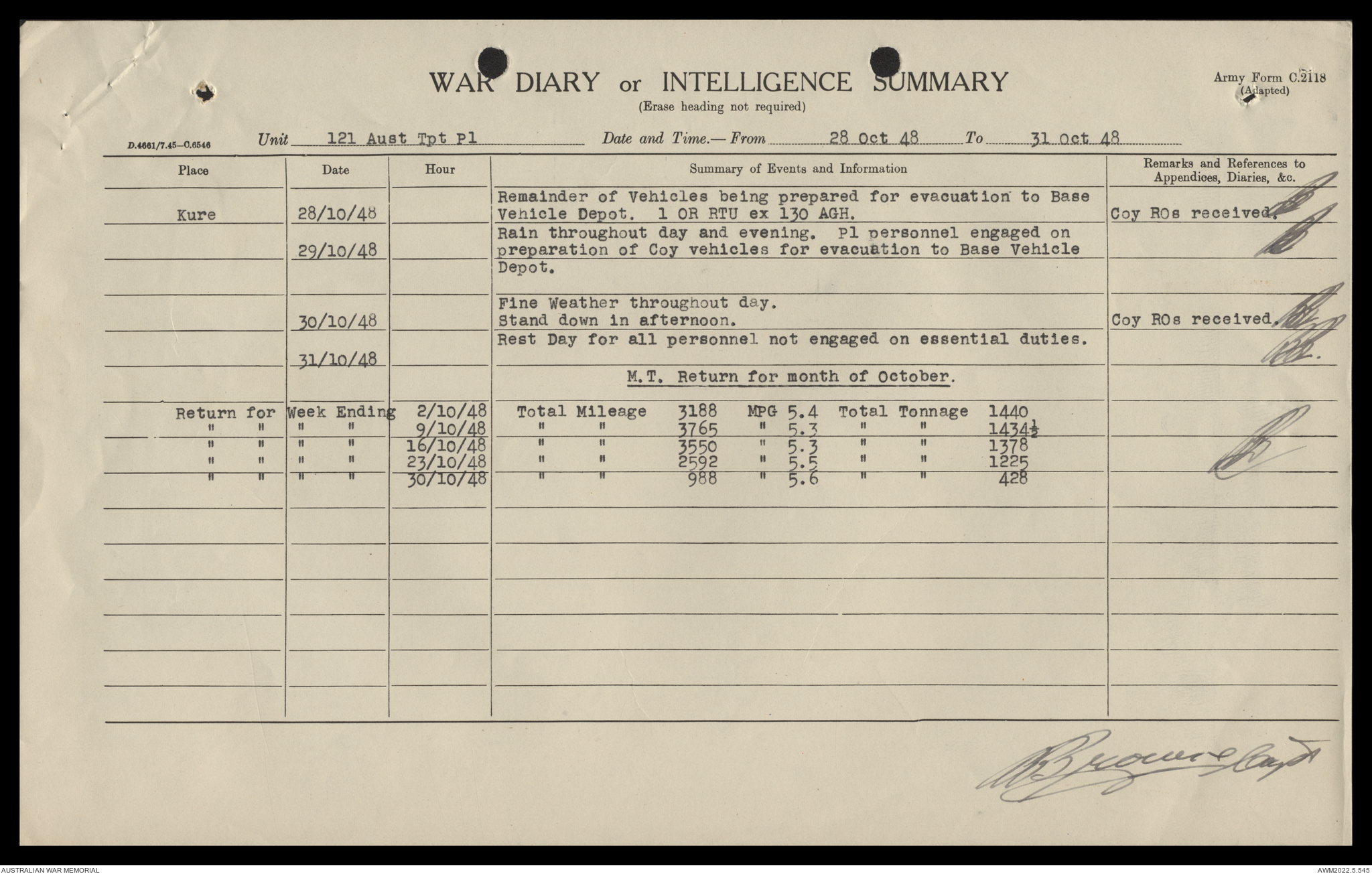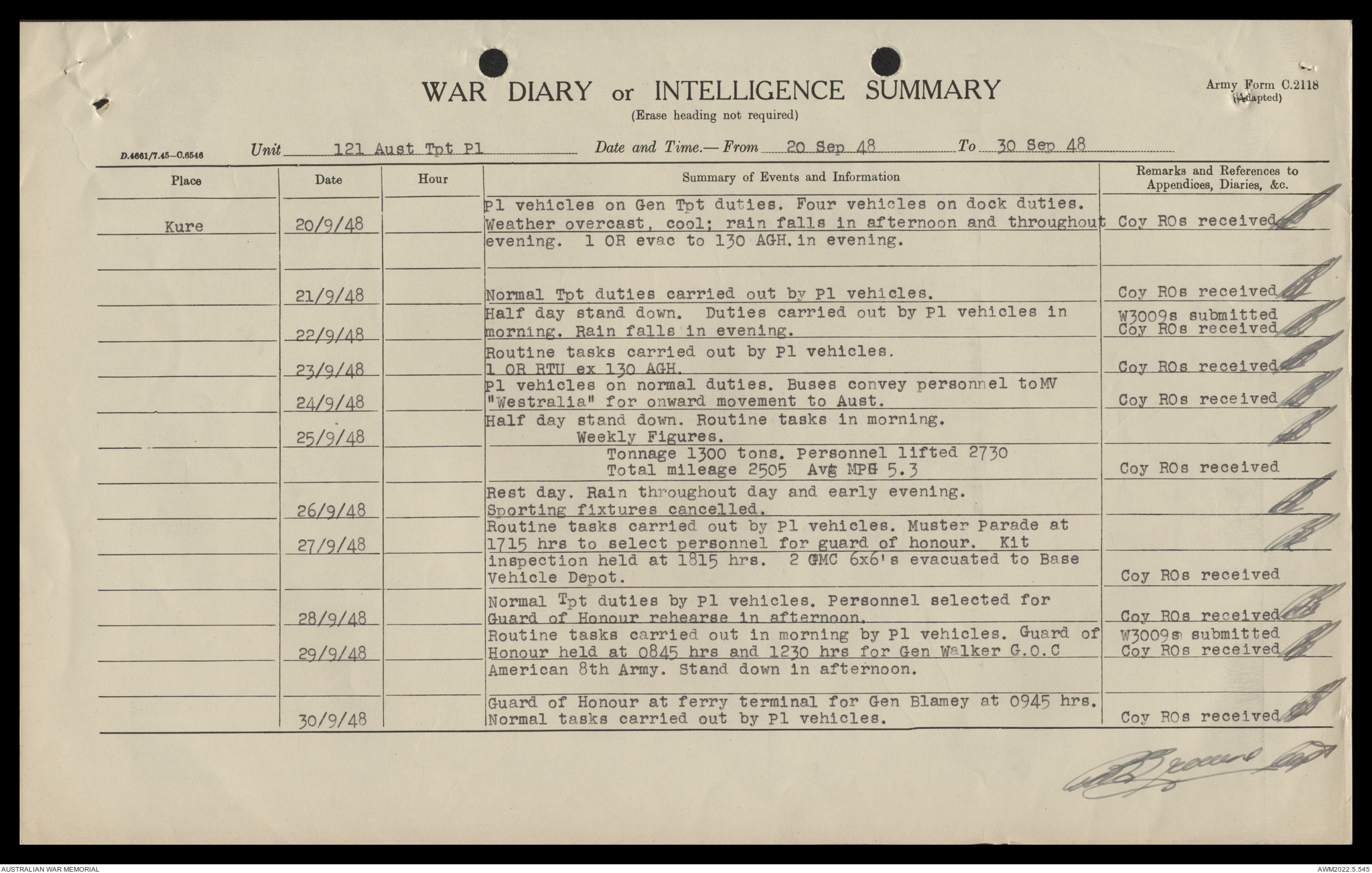 AWM52 10/4/126/16 - [Unit War Diaries, 1939-45 War] 121 Aust. [Australian] Transport Platoon, September - October 1948