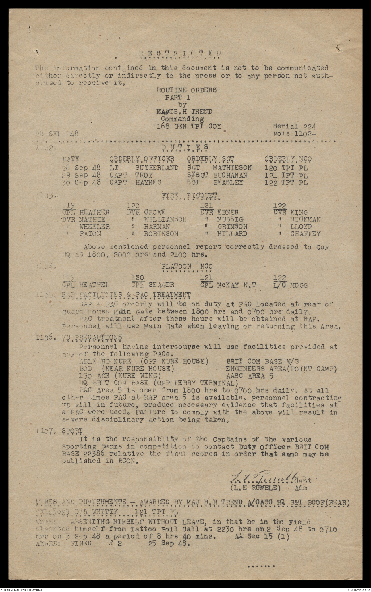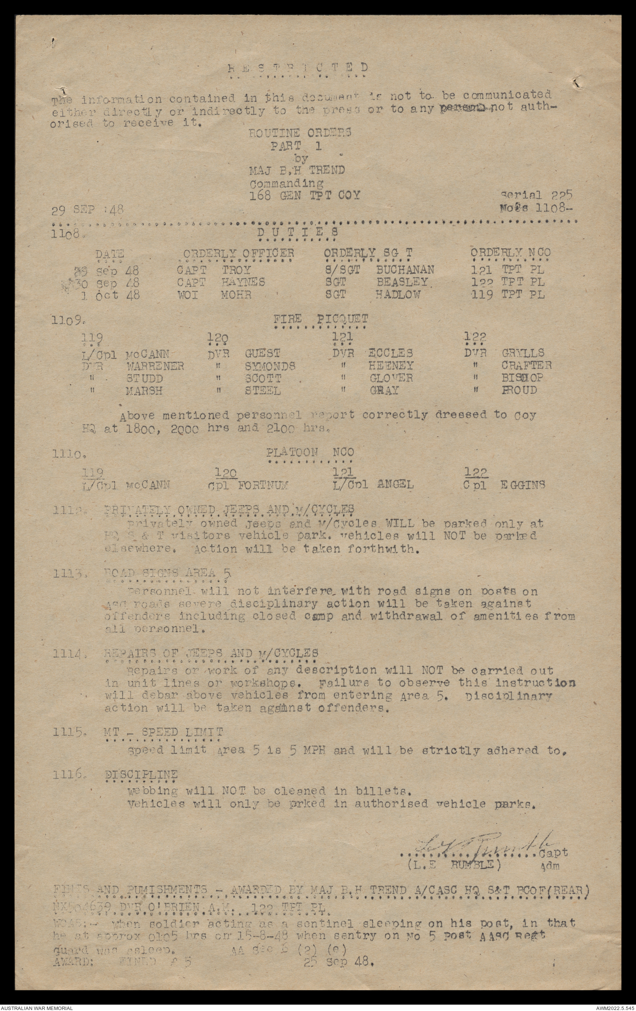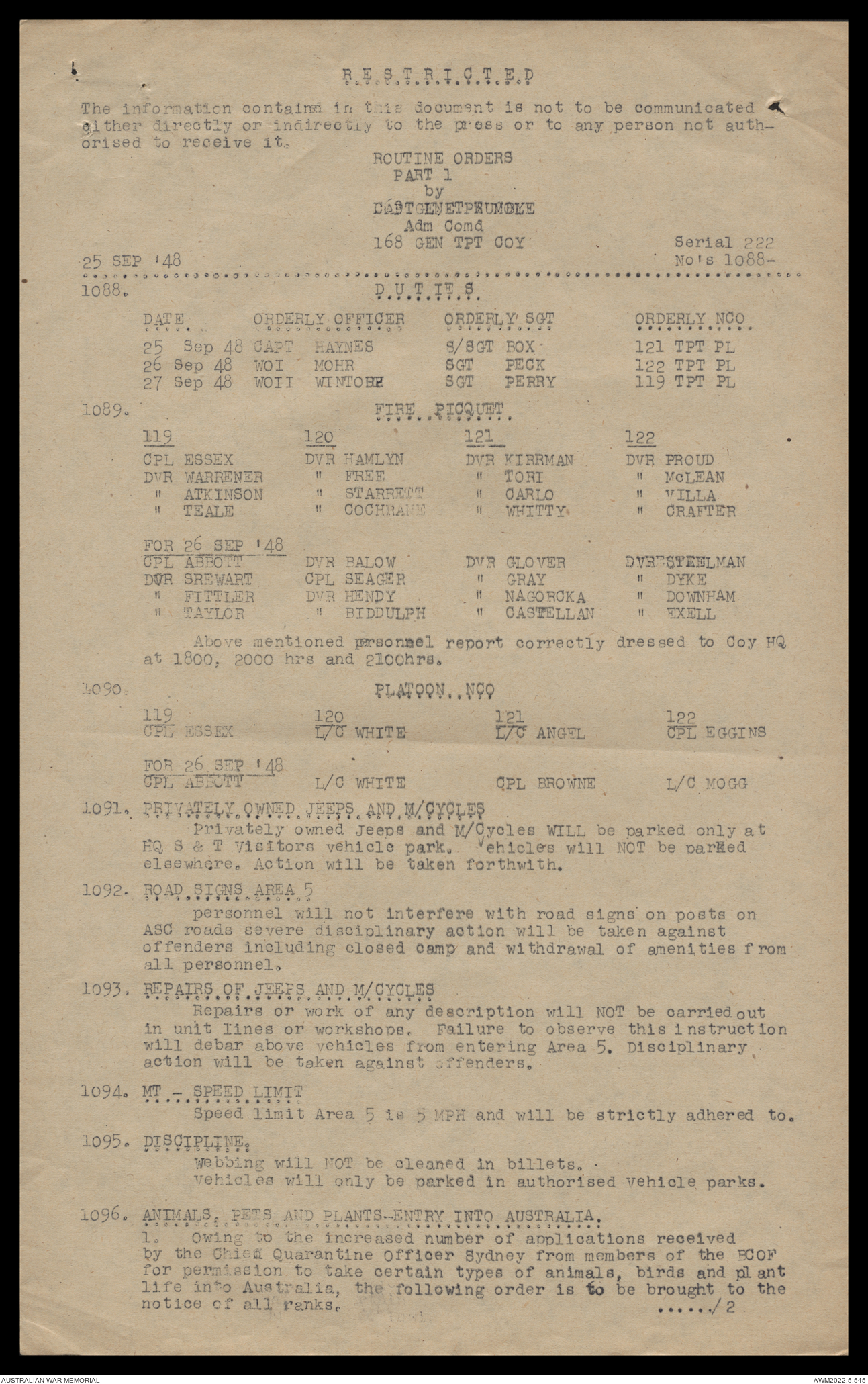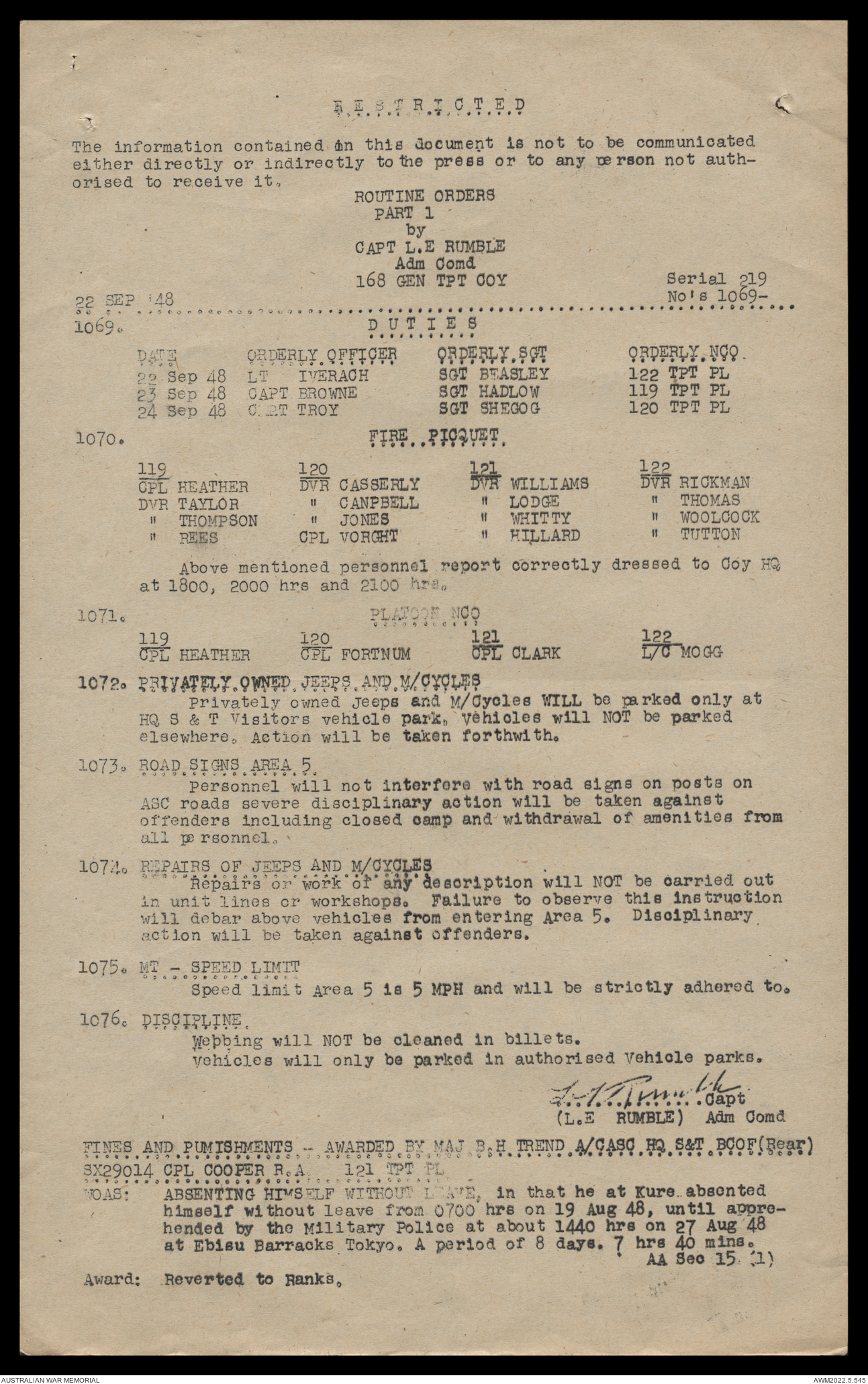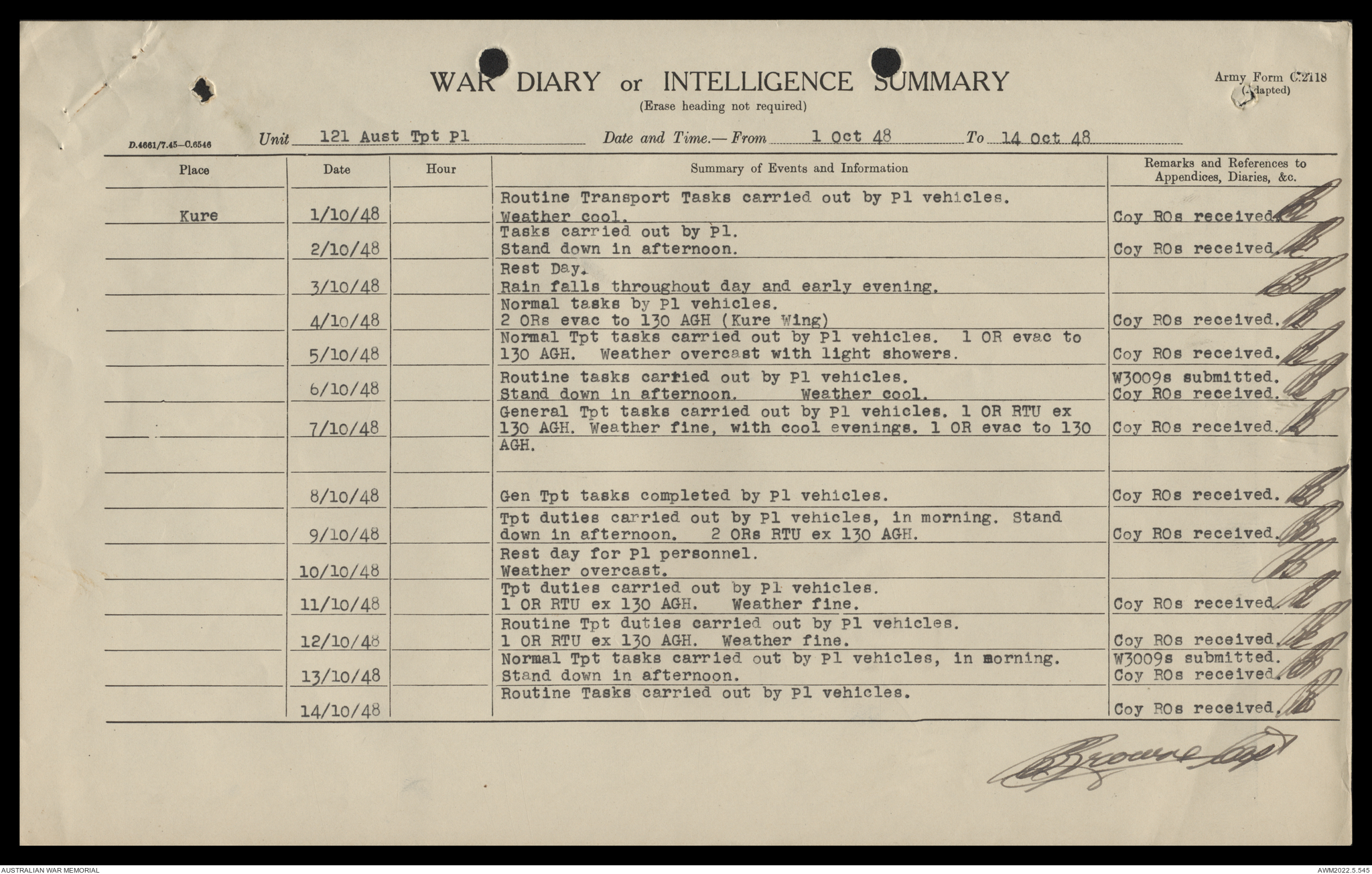 AWM52 10/4/126/16 - [Unit War Diaries, 1939-45 War] 121 Aust. [Australian] Transport Platoon, September - October 1948