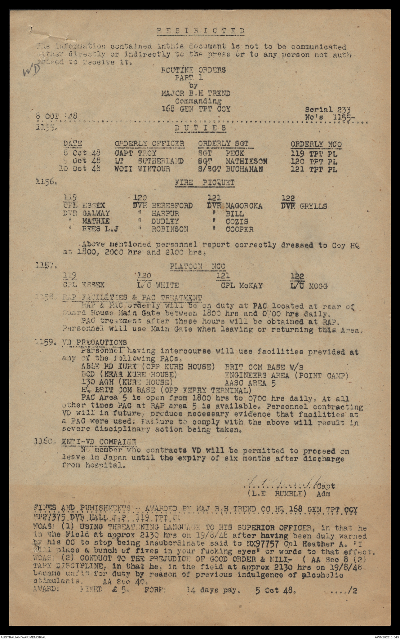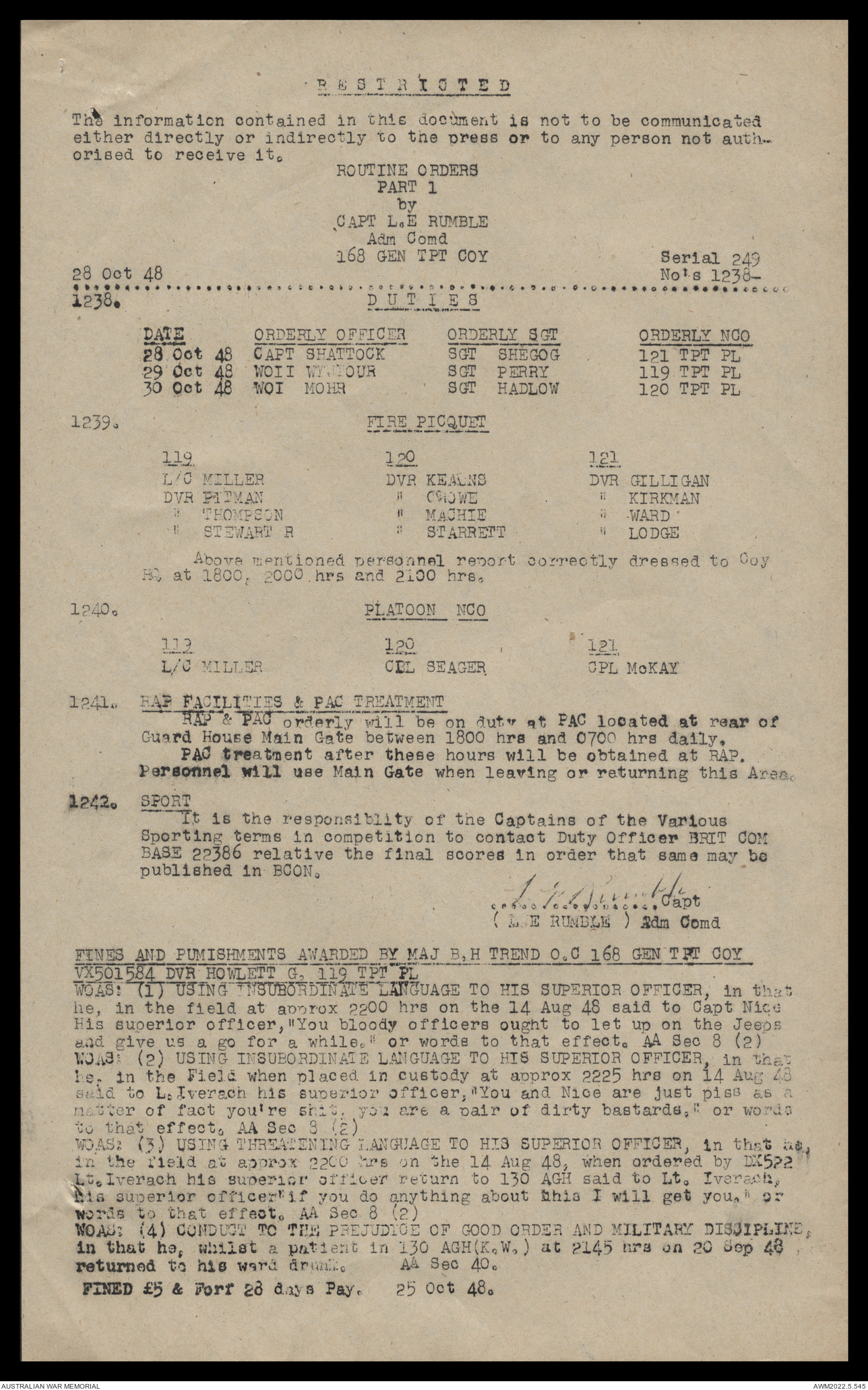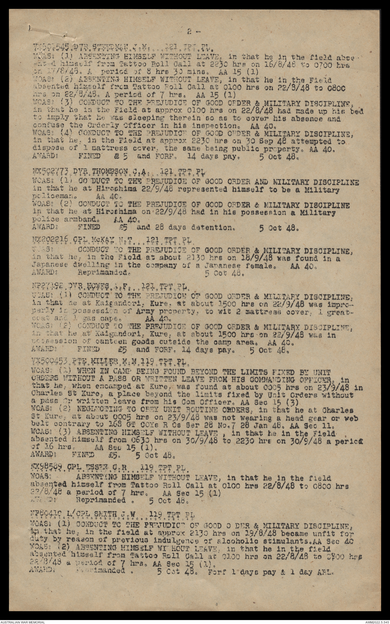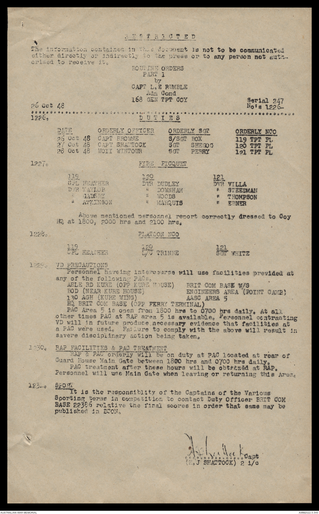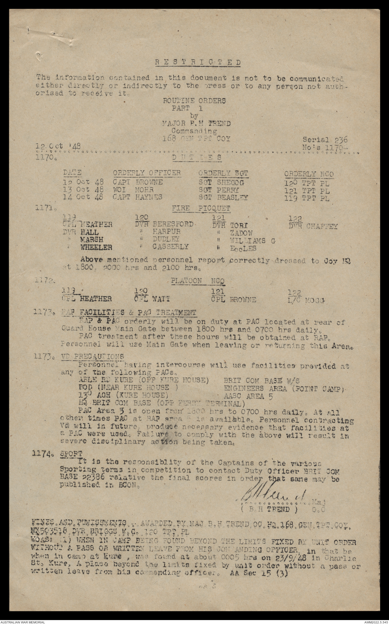 AWM52 10/4/126/16 - [Unit War Diaries, 1939-45 War] 121 Aust. [Australian] Transport Platoon, September - October 1948