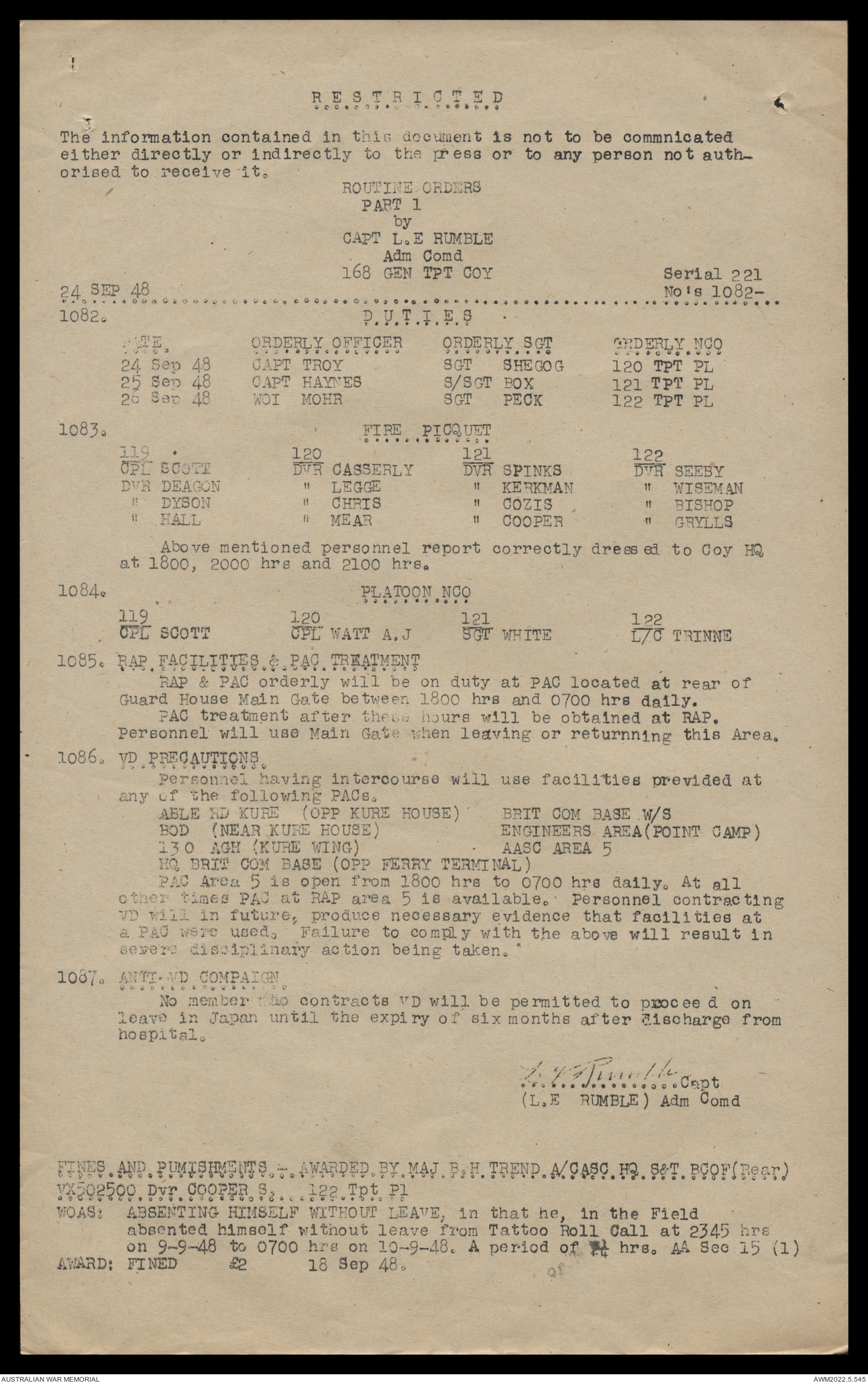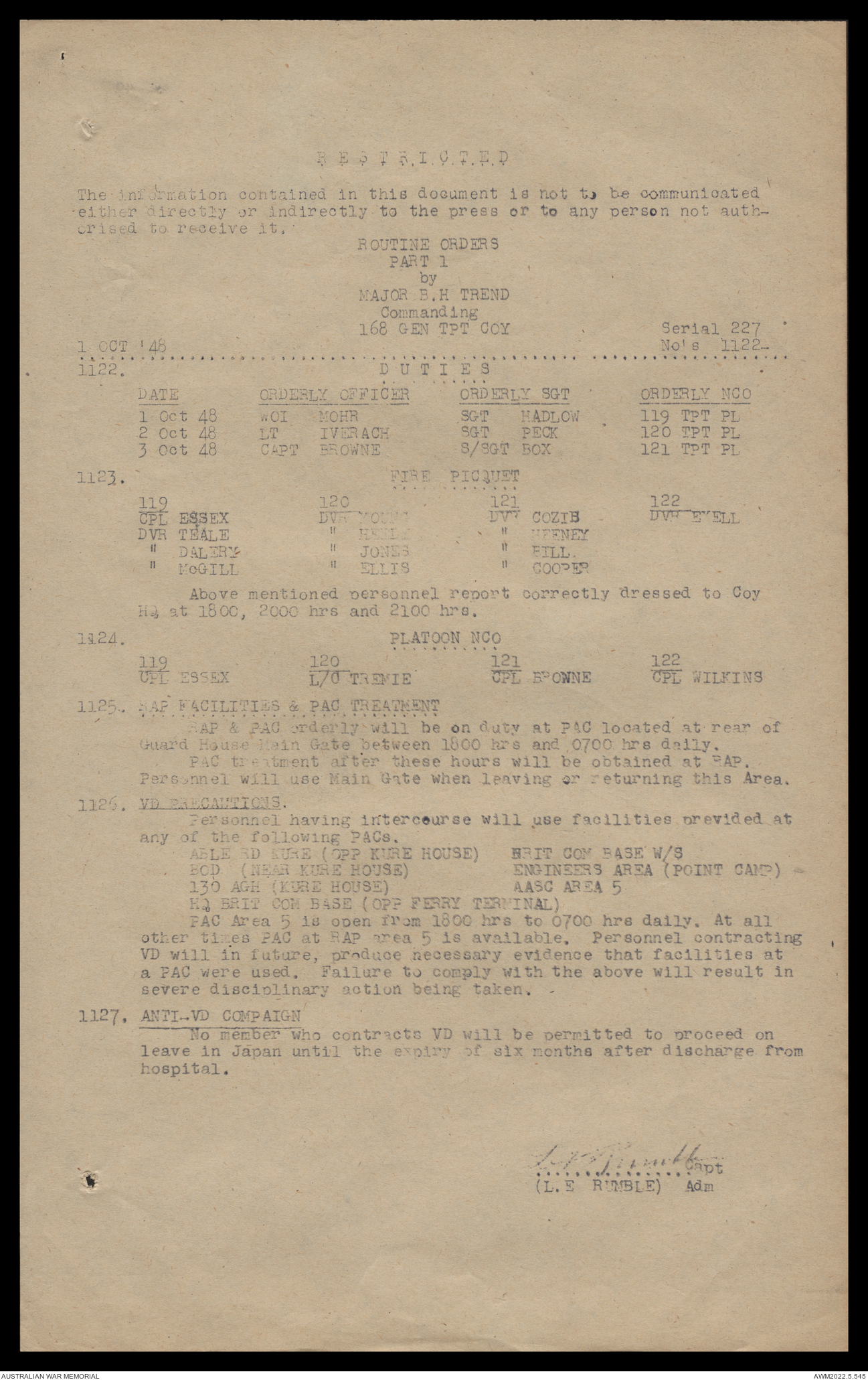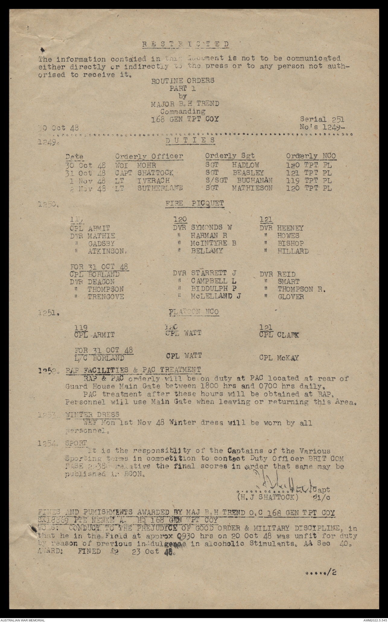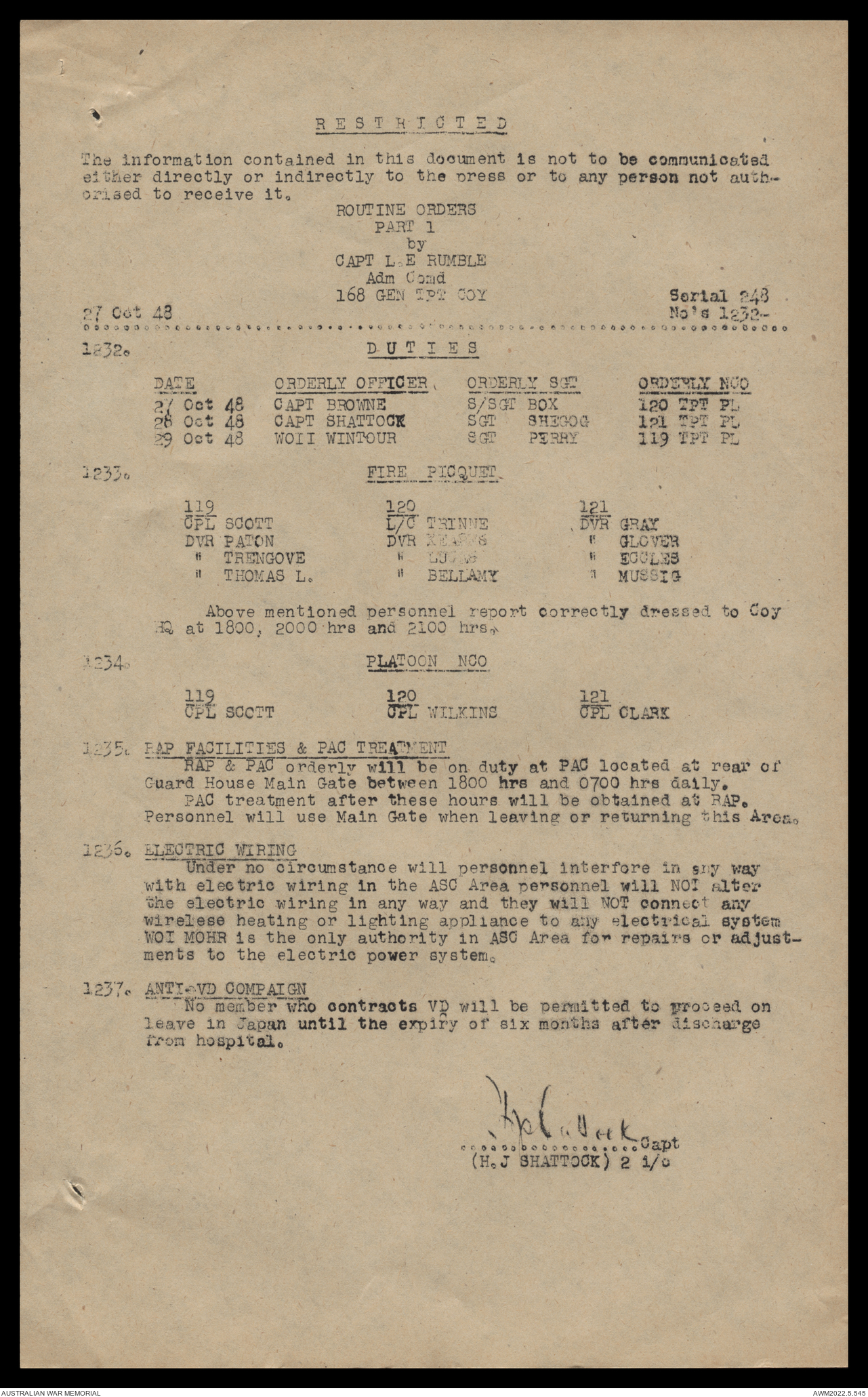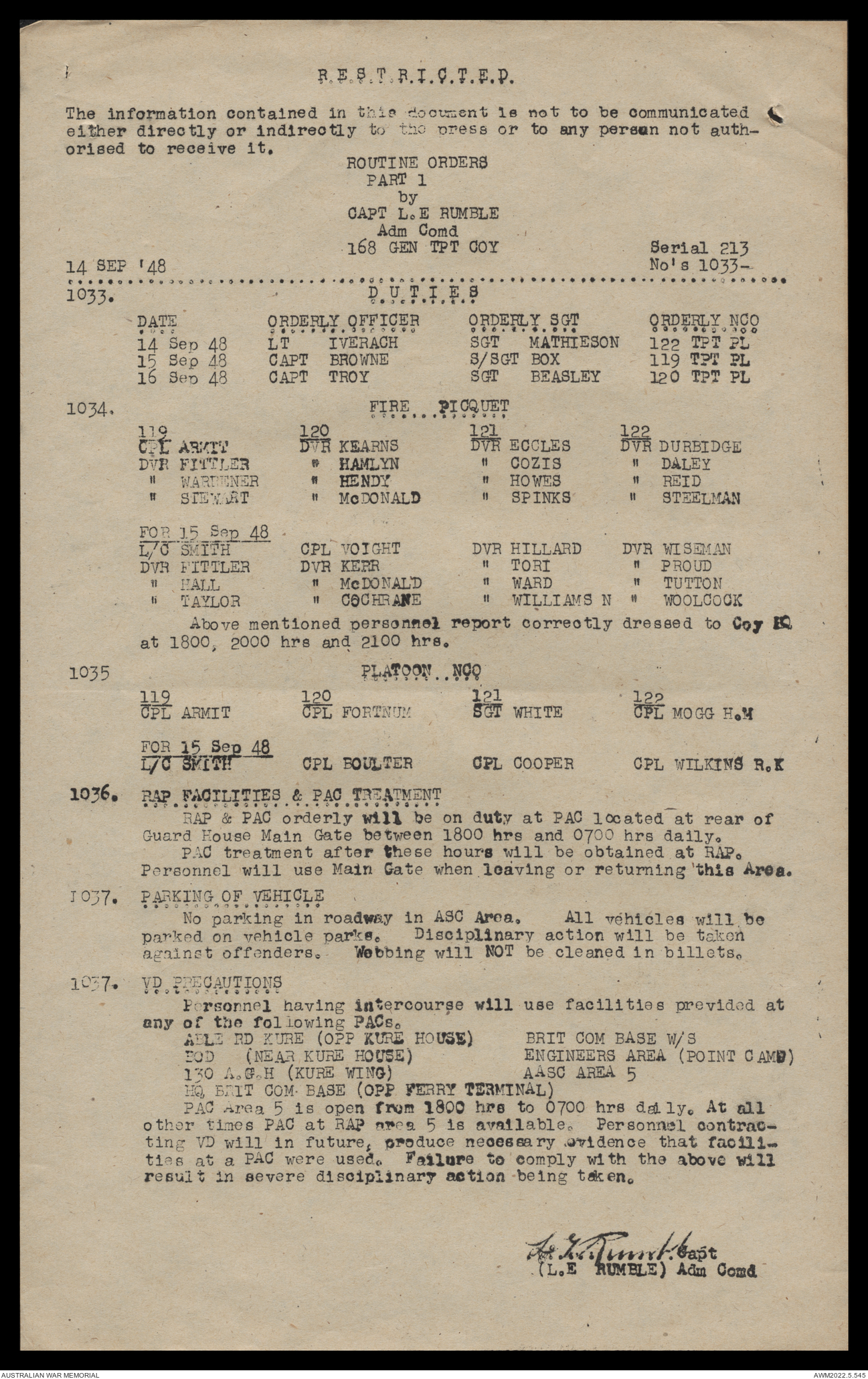 AWM52 10/4/126/16 - [Unit War Diaries, 1939-45 War] 121 Aust. [Australian] Transport Platoon, September - October 1948