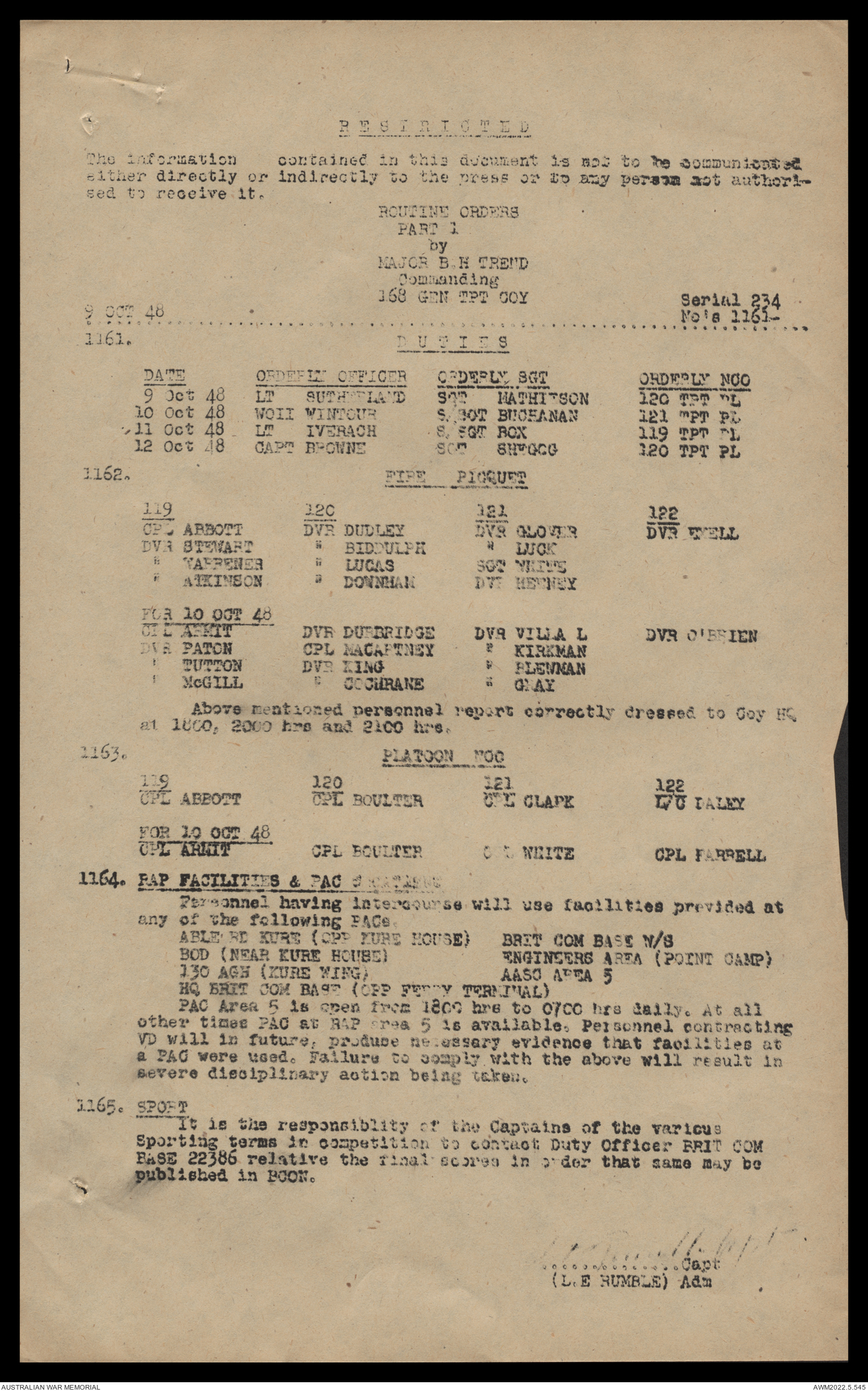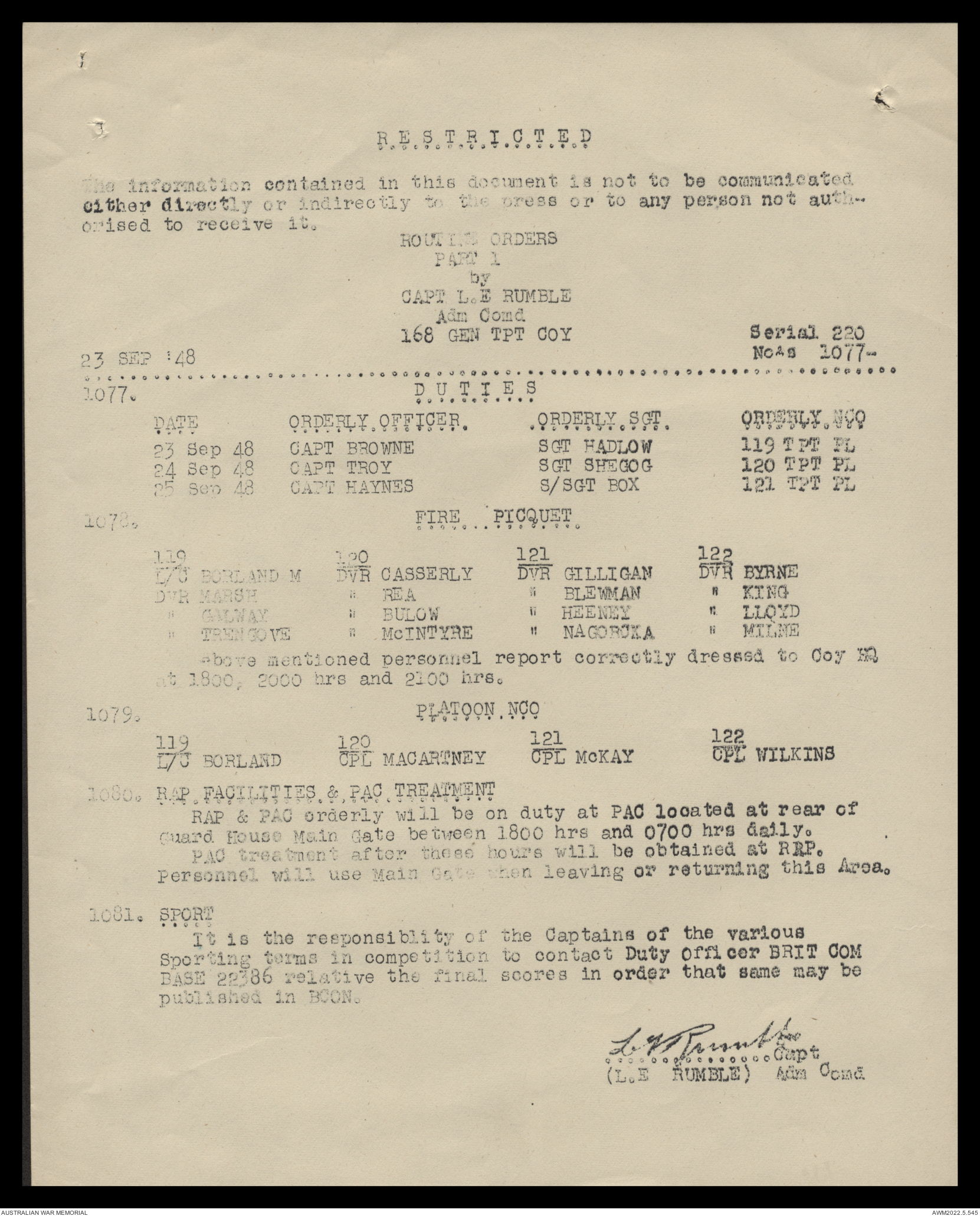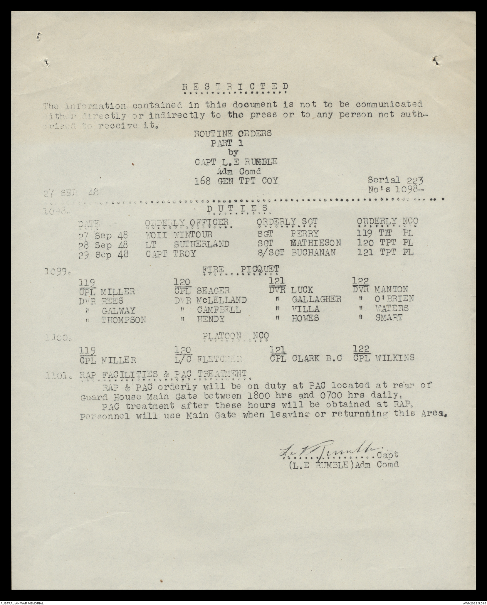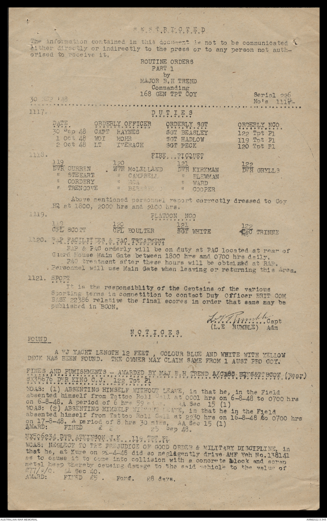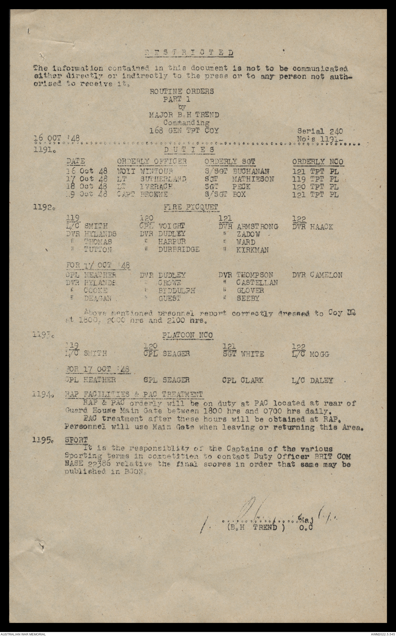AWM52 10/4/126/16 - [Unit War Diaries, 1939-45 War] 121 Aust. [Australian] Transport Platoon, September - October 1948