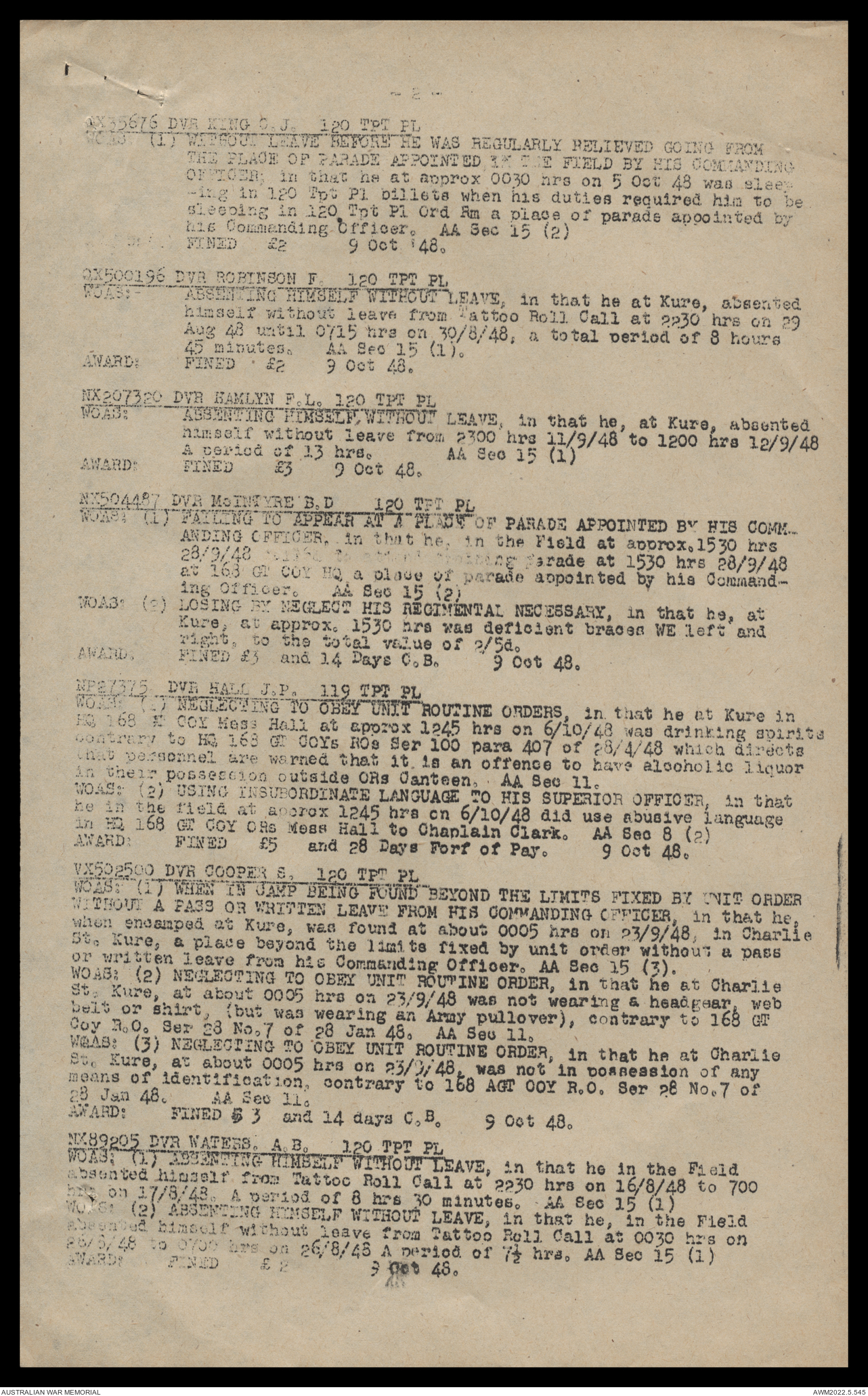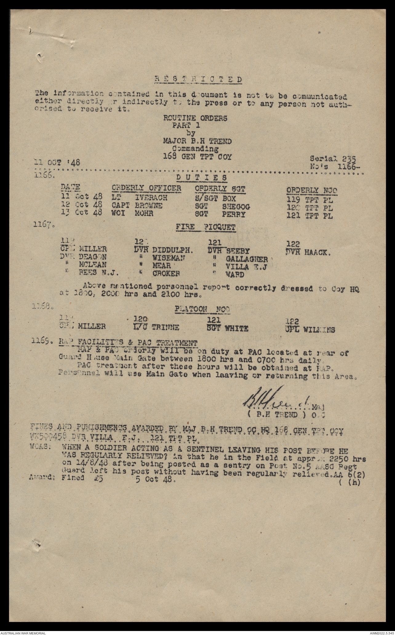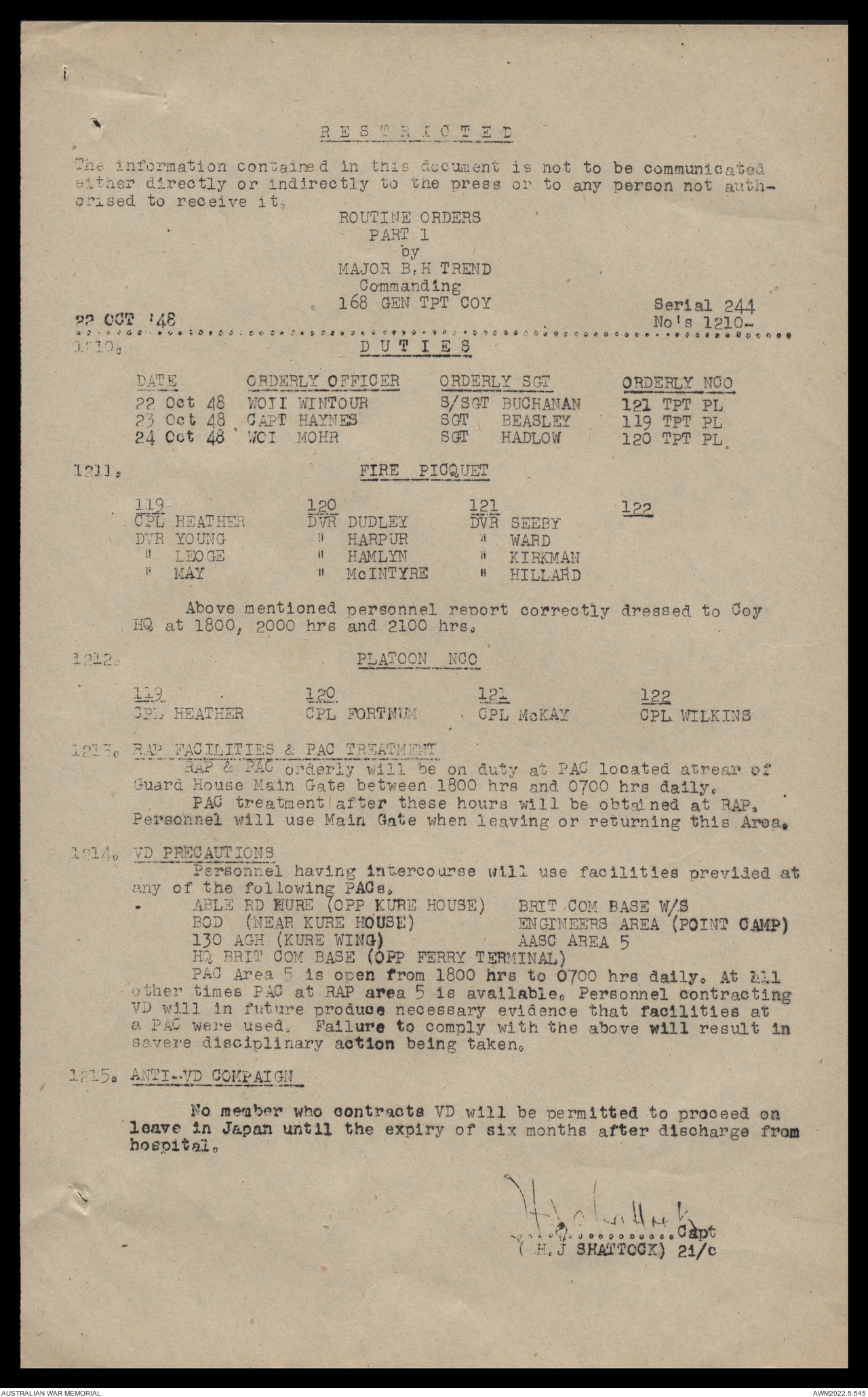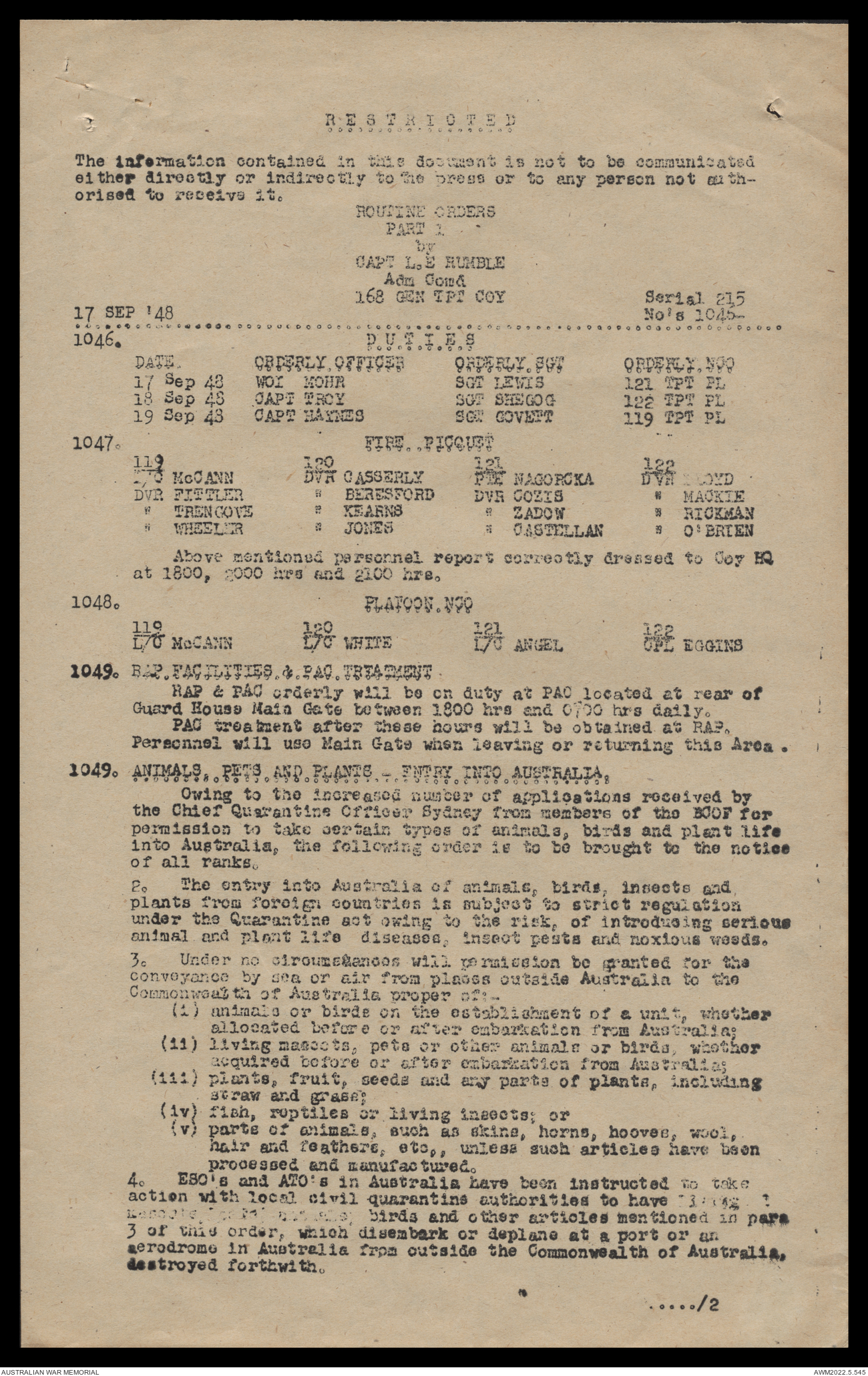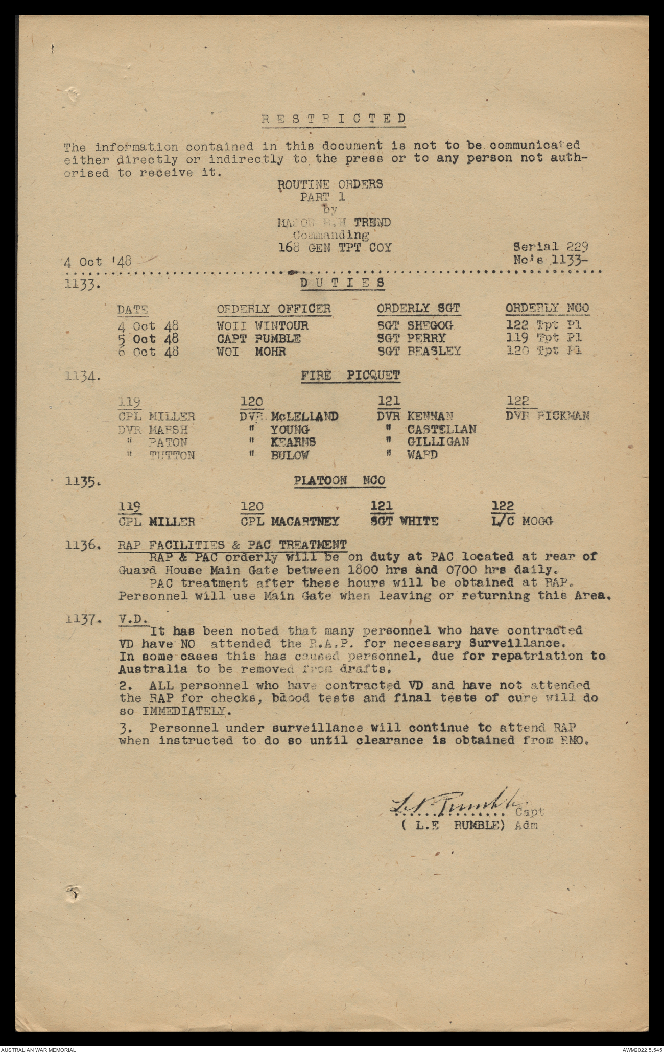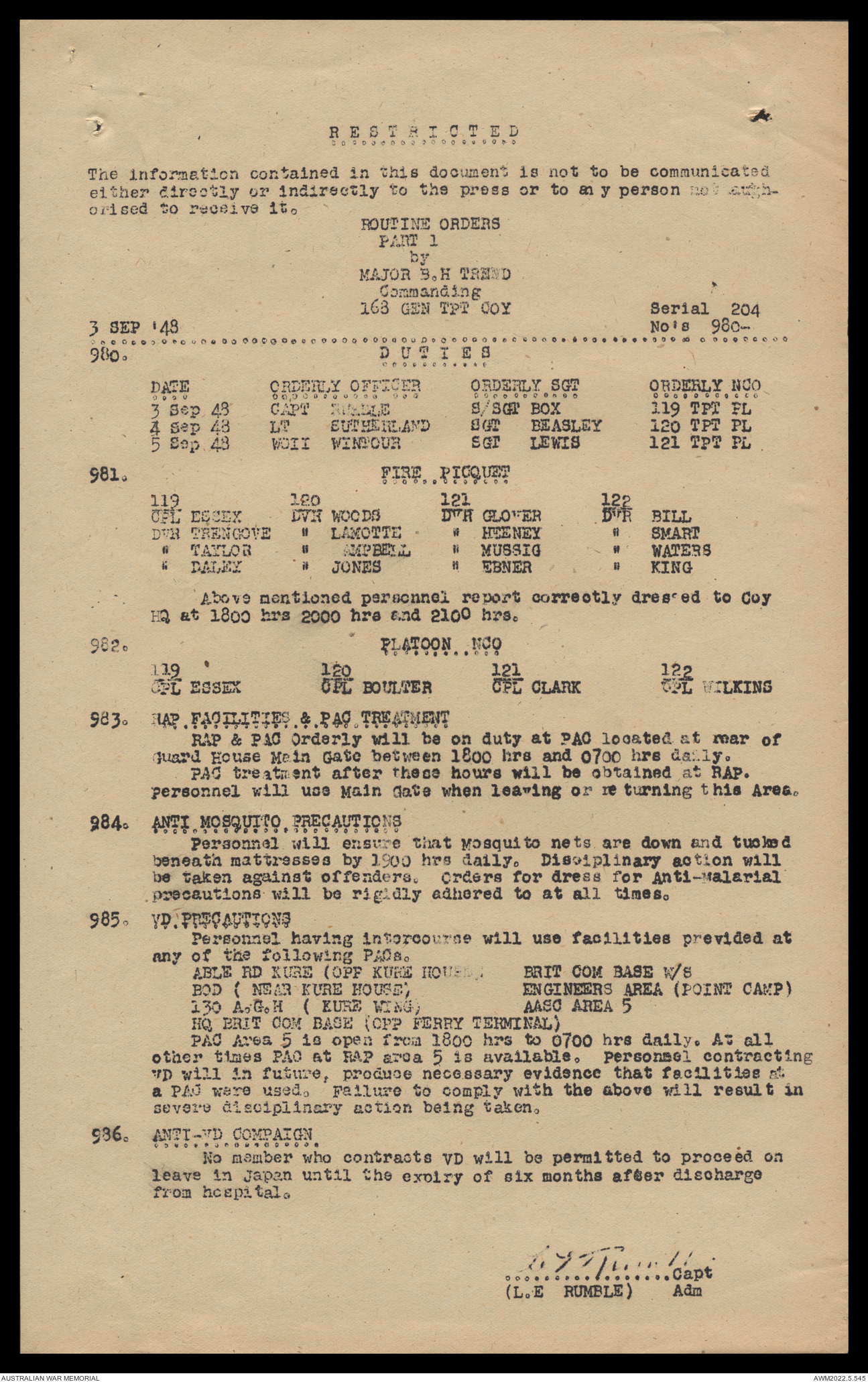 AWM52 10/4/126/16 - [Unit War Diaries, 1939-45 War] 121 Aust. [Australian] Transport Platoon, September - October 1948