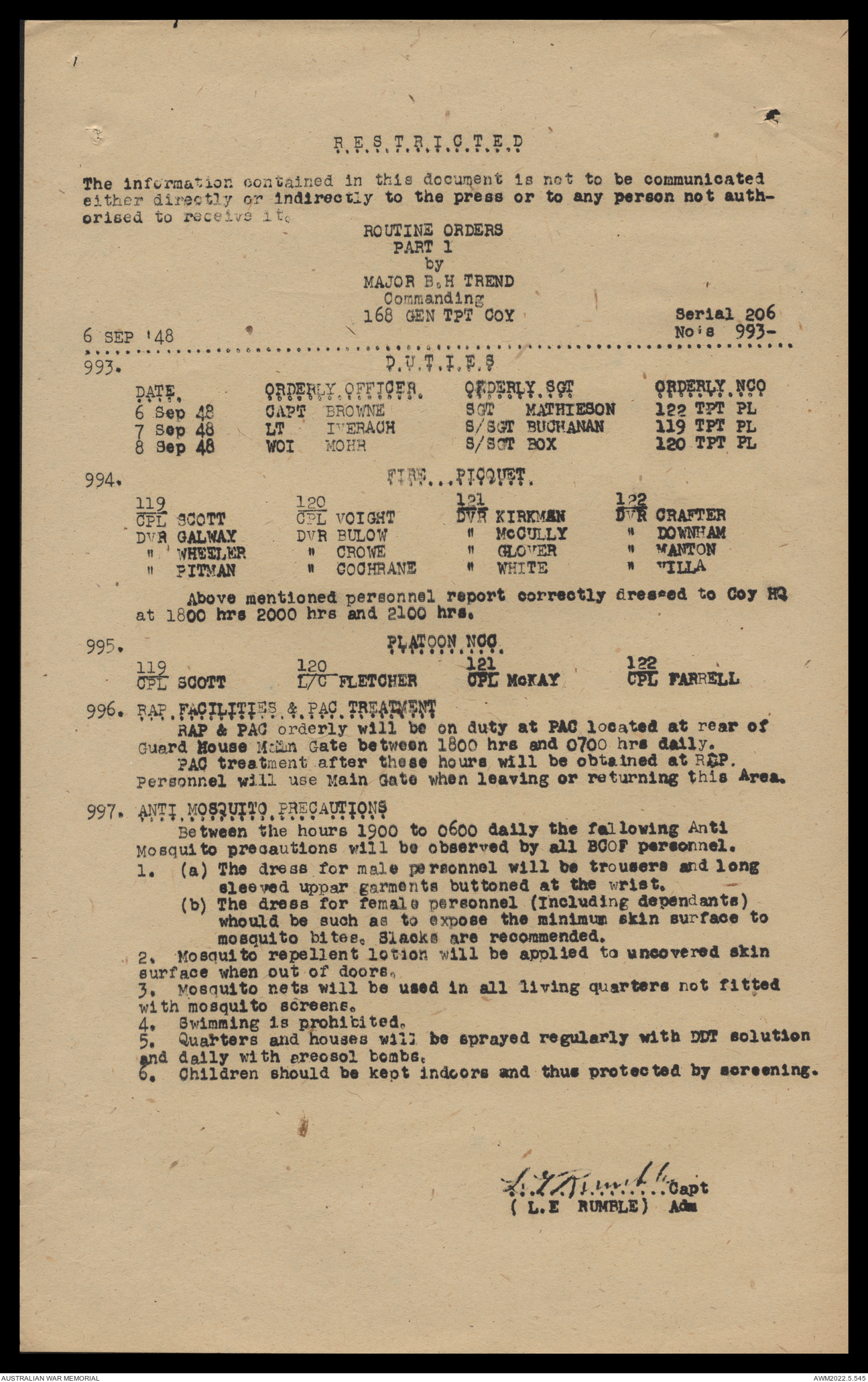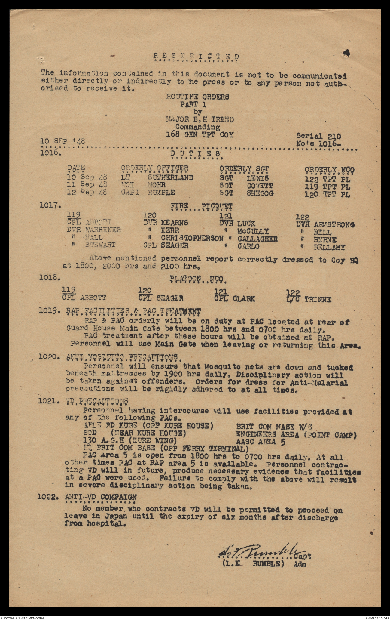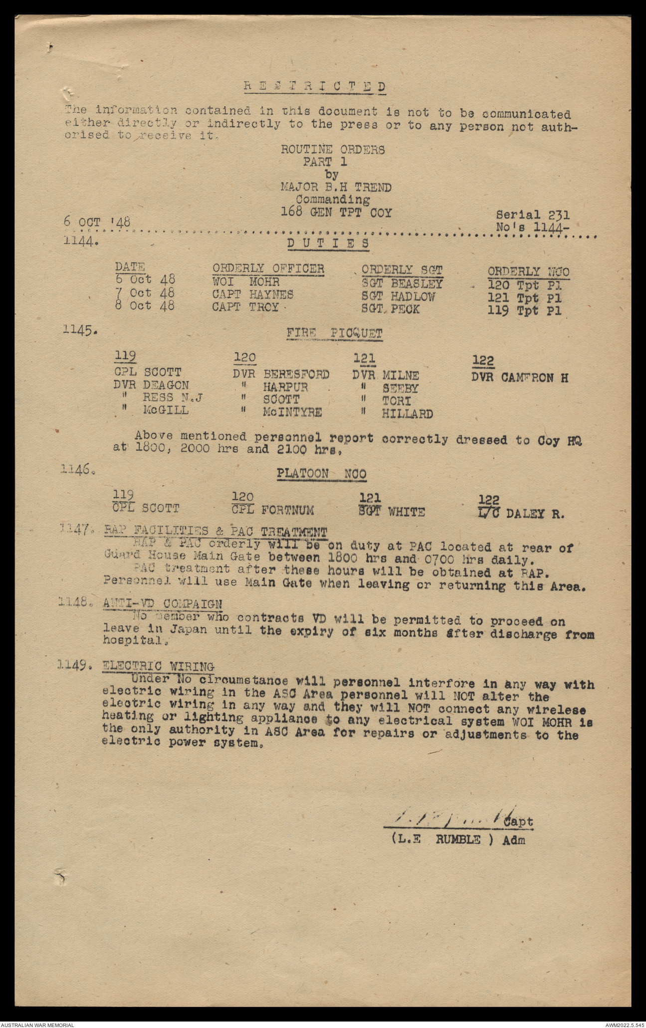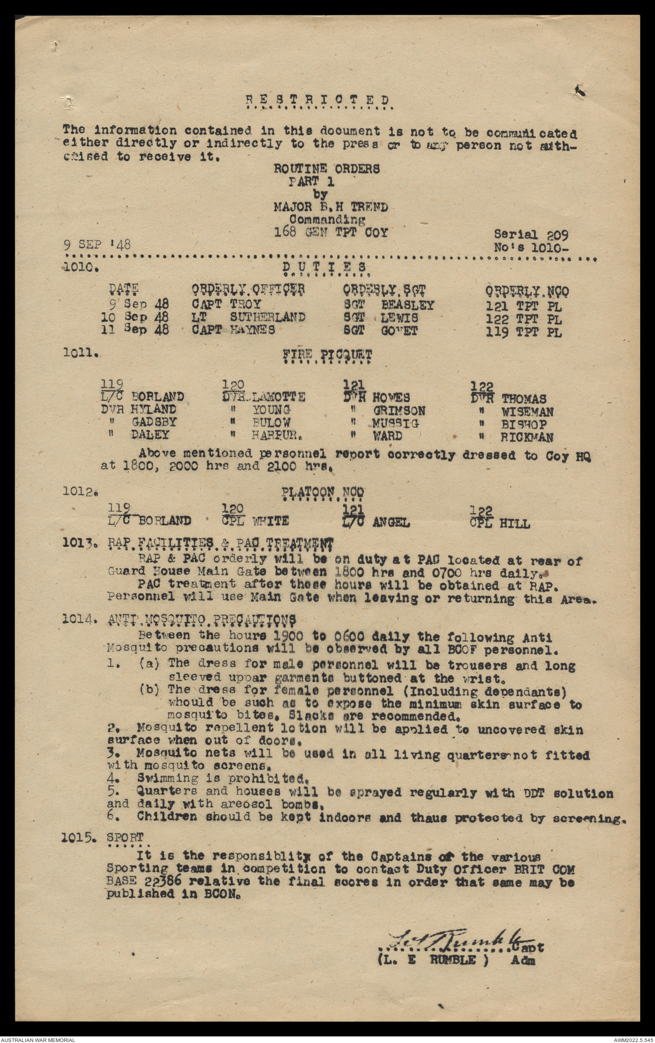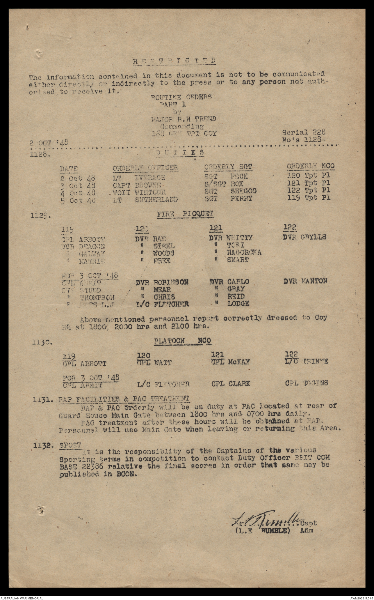 AWM52 10/4/126/16 - [Unit War Diaries, 1939-45 War] 121 Aust. [Australian] Transport Platoon, September - October 1948