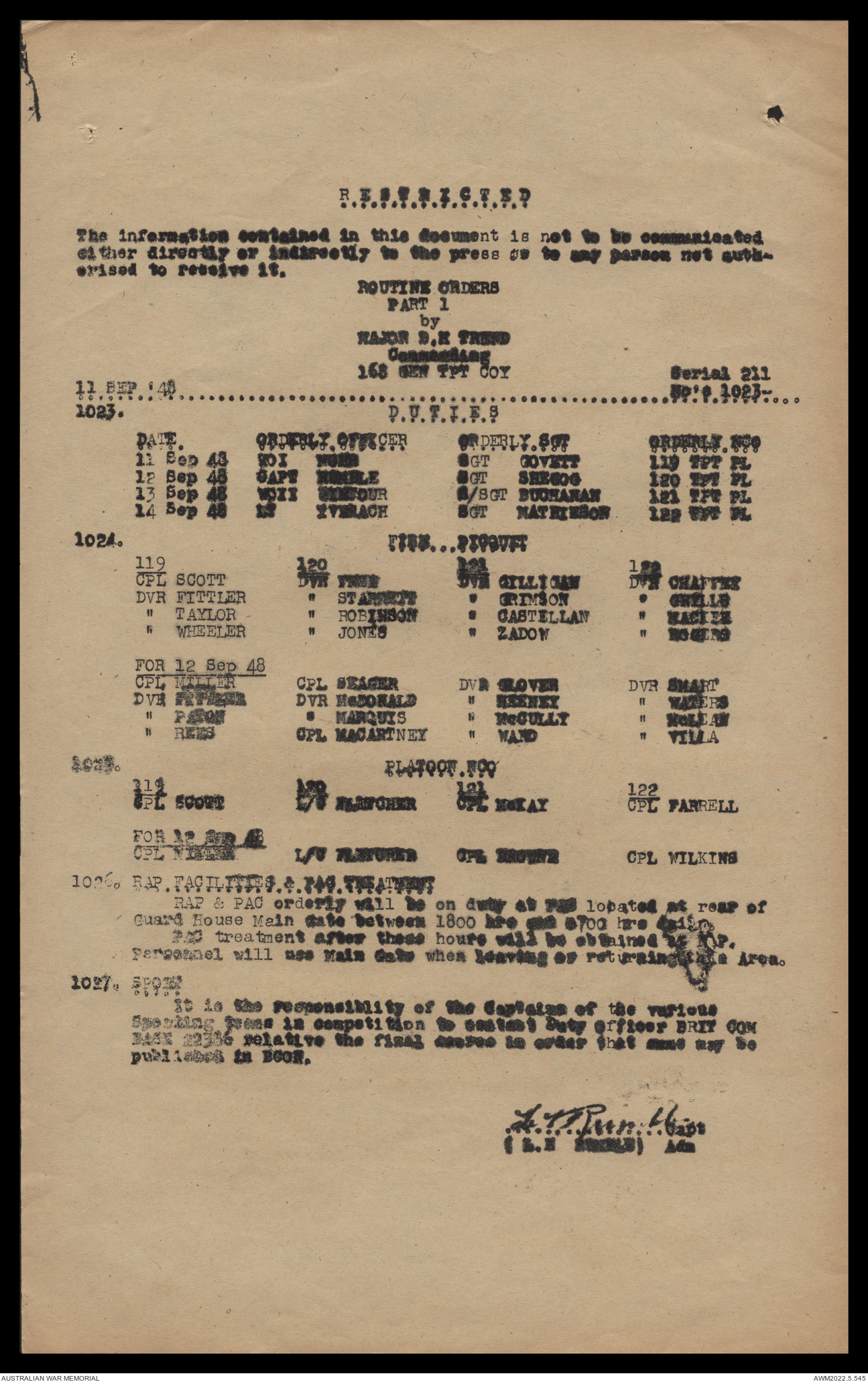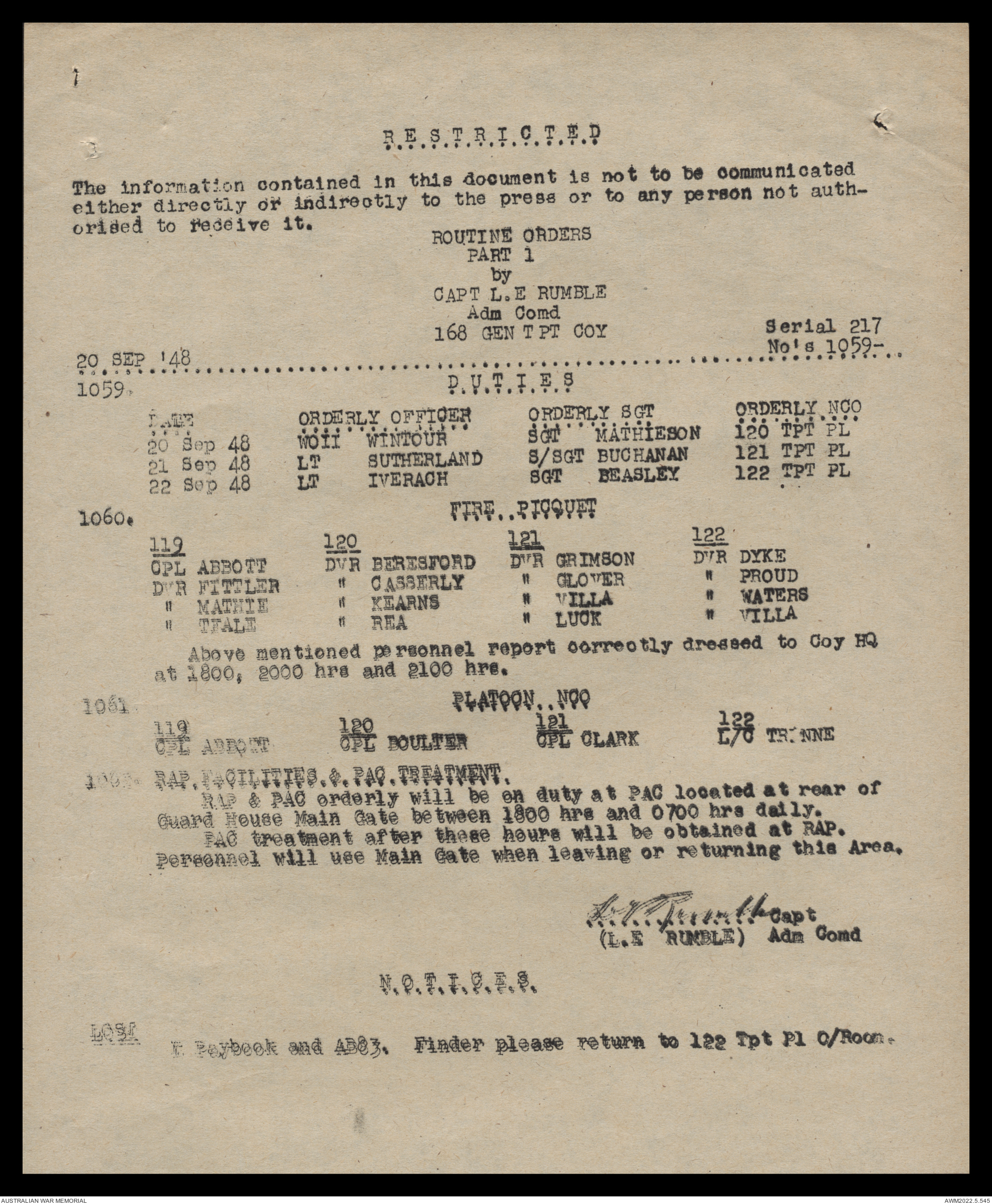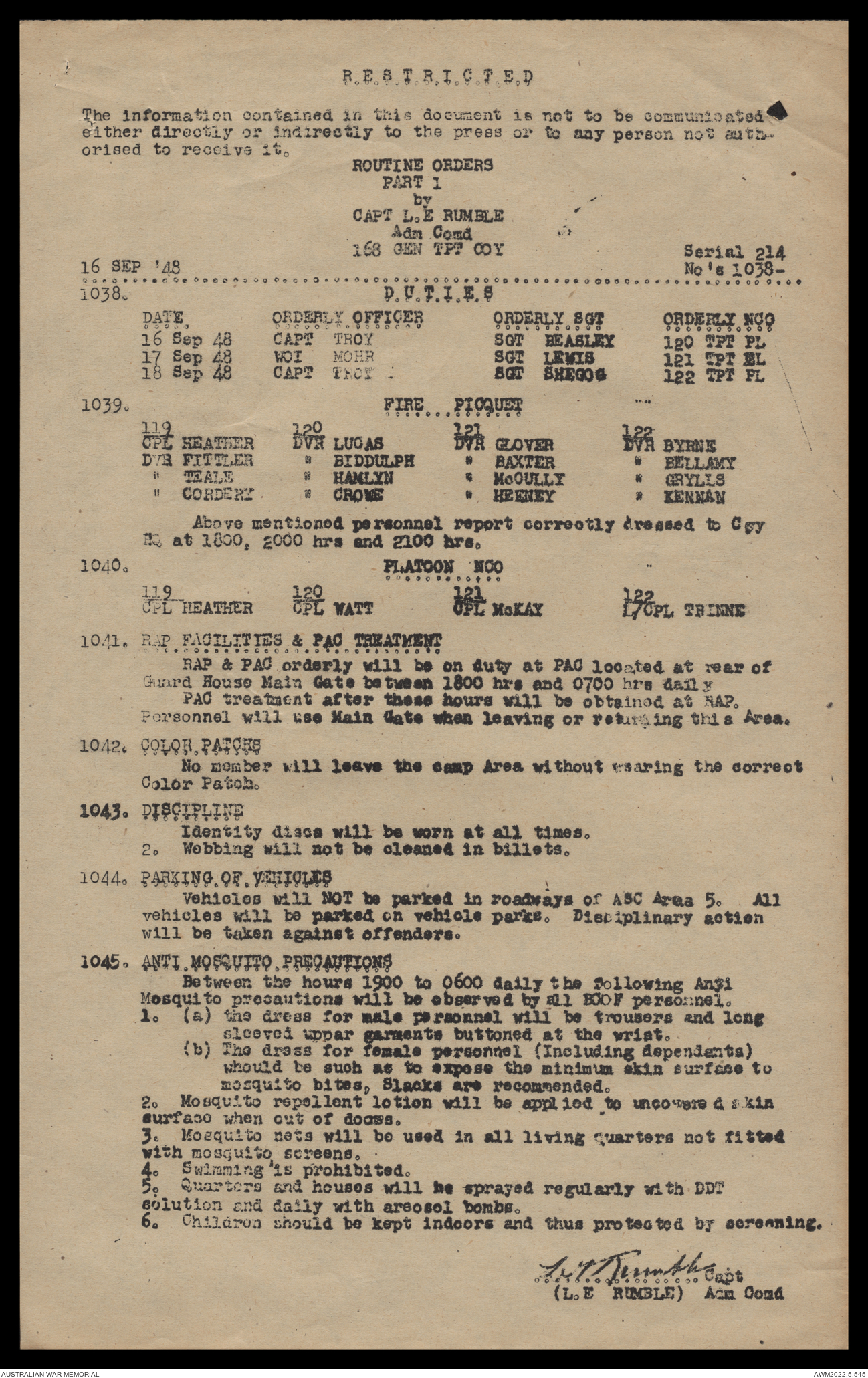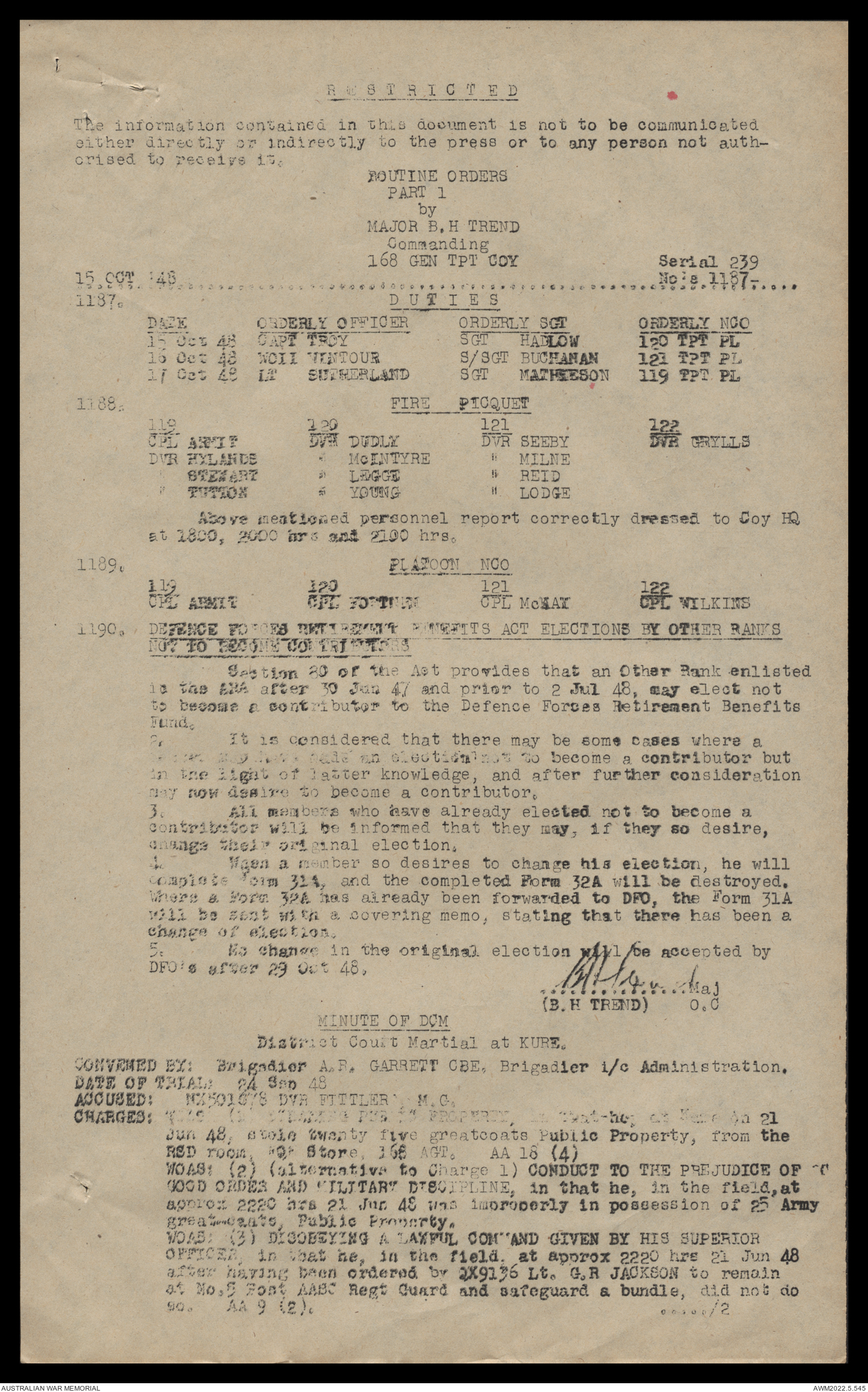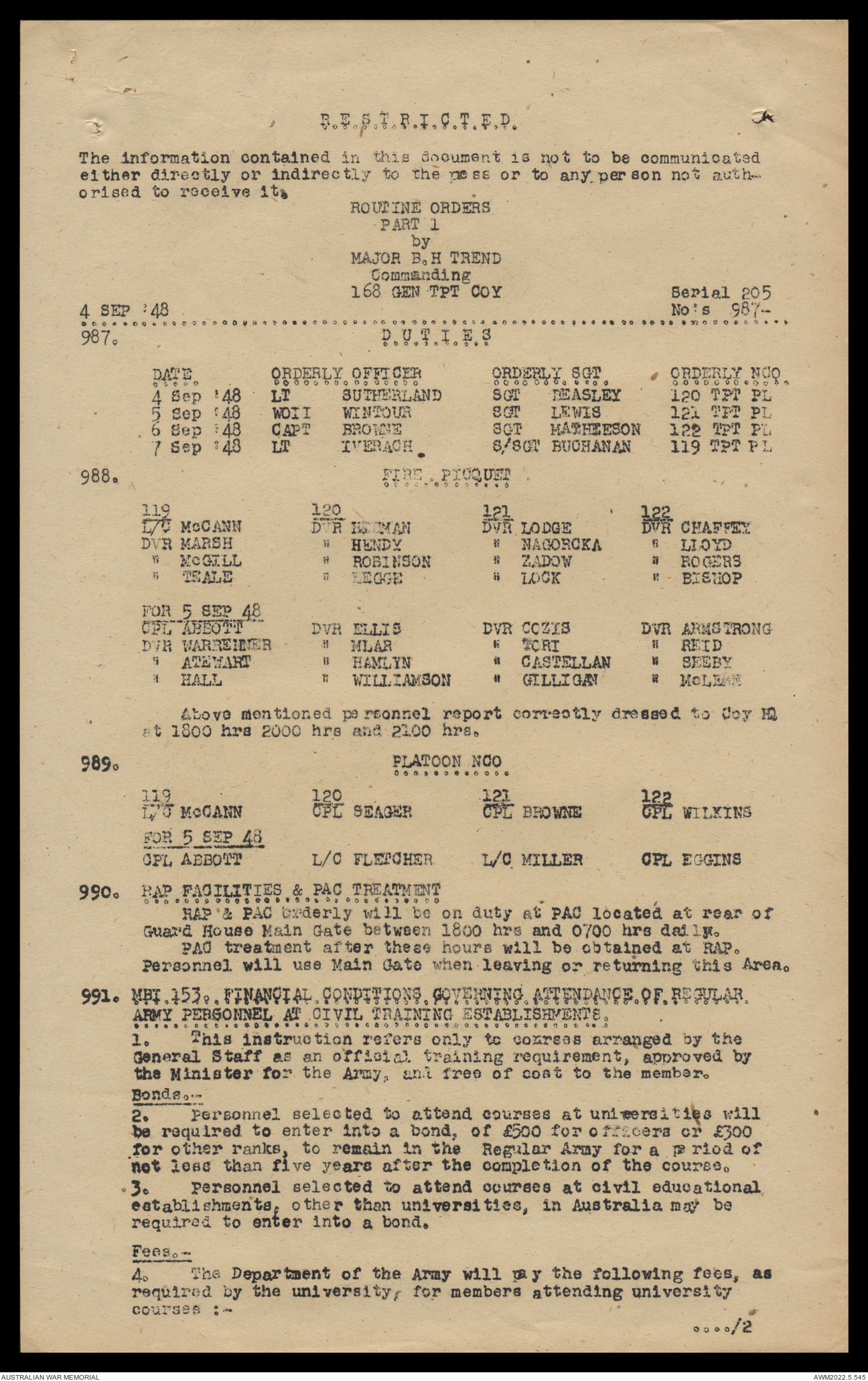 AWM52 10/4/126/16 - [Unit War Diaries, 1939-45 War] 121 Aust. [Australian] Transport Platoon, September - October 1948