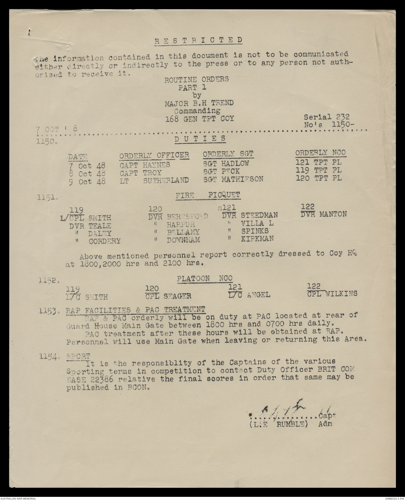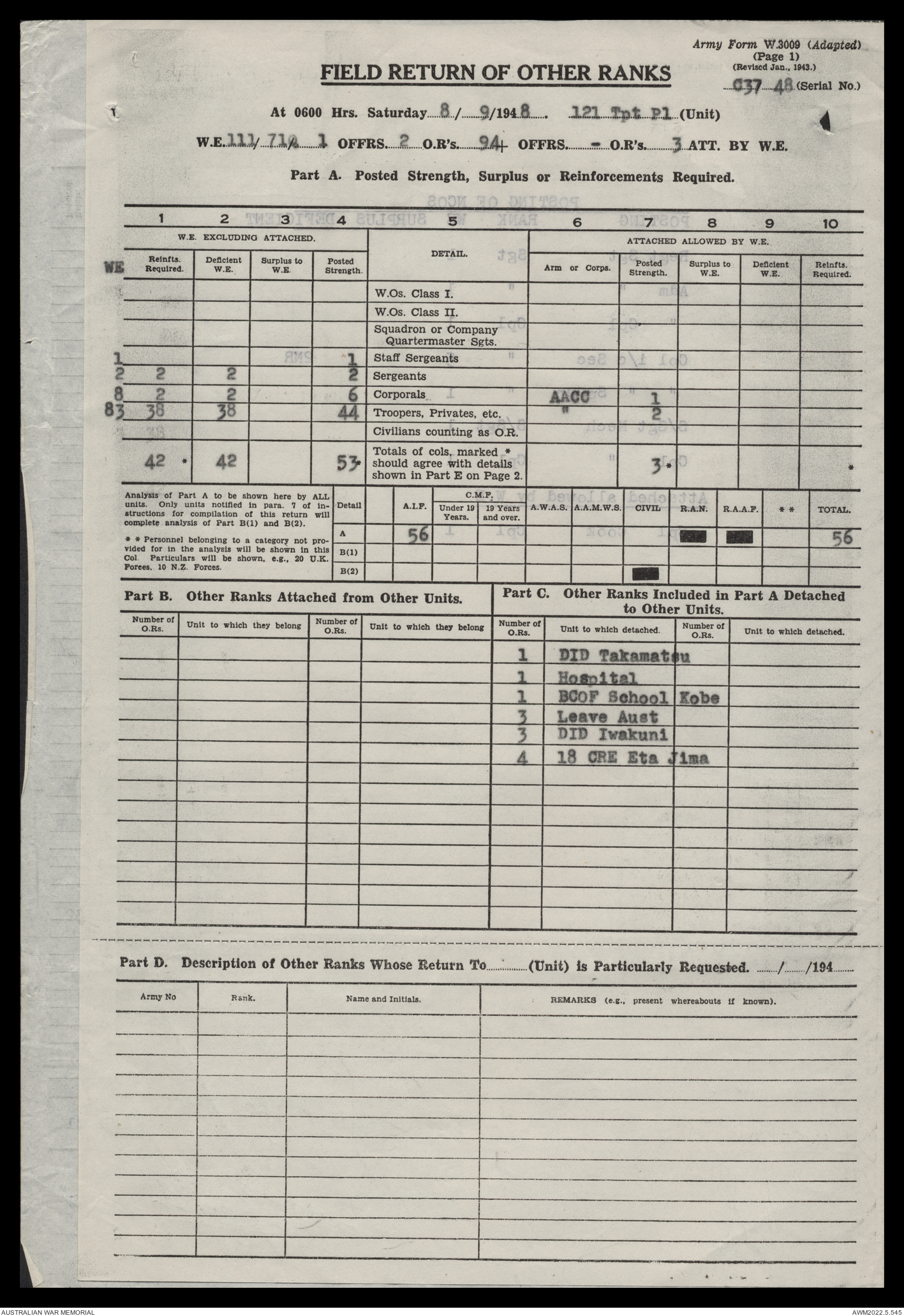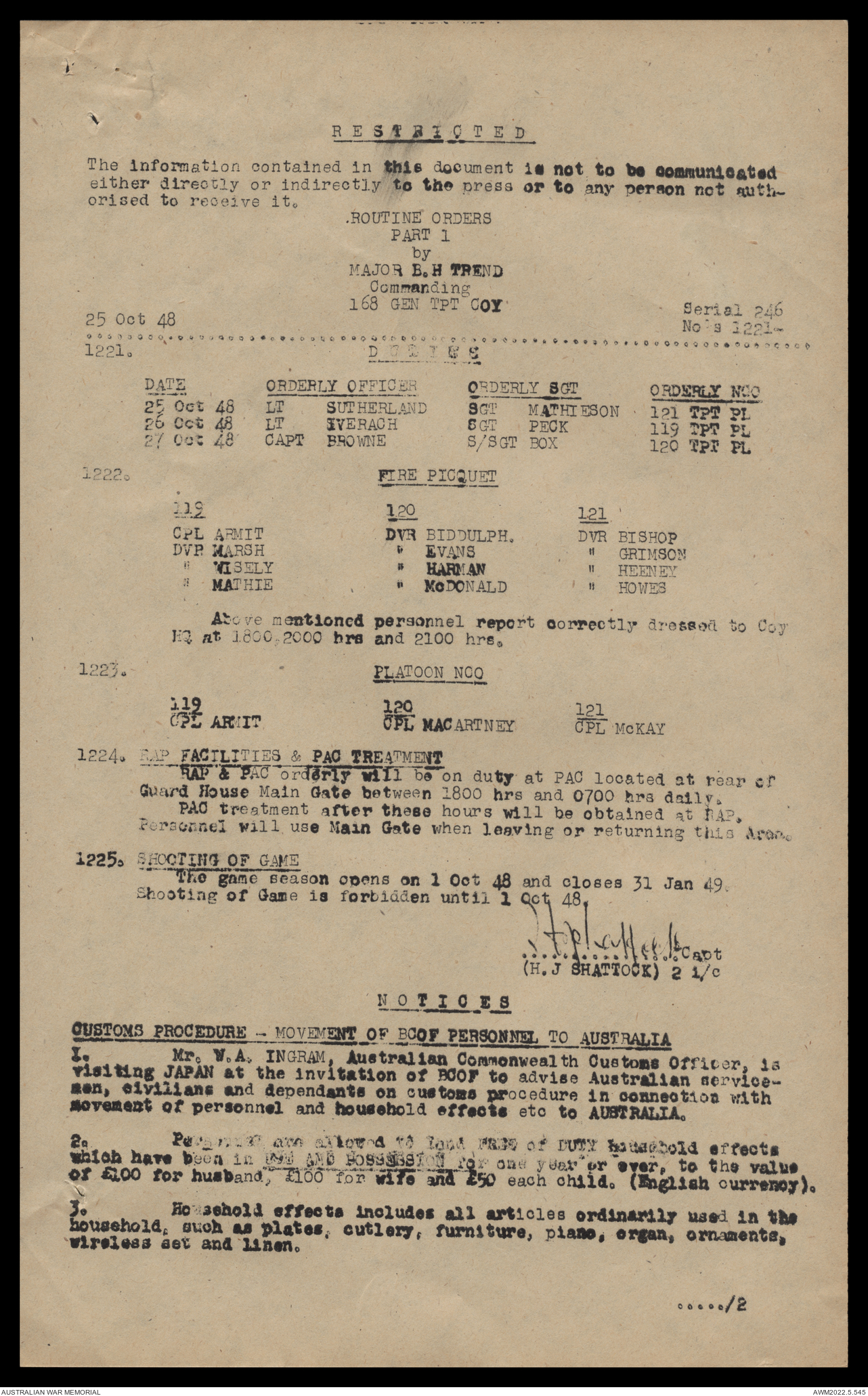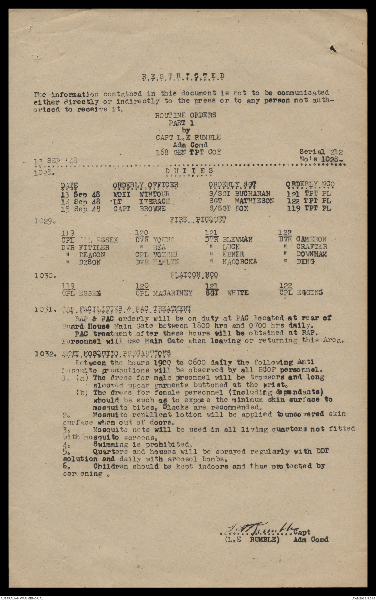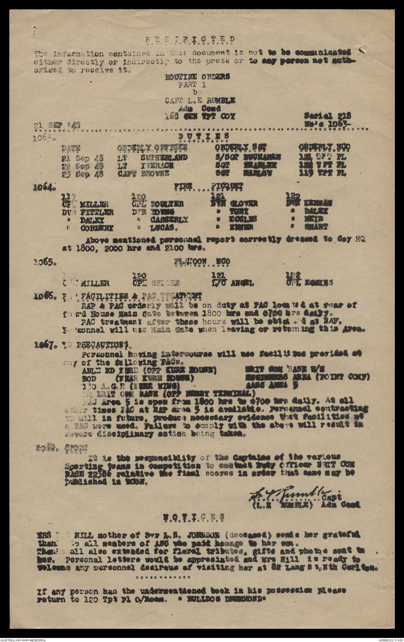 AWM52 10/4/126/16 - [Unit War Diaries, 1939-45 War] 121 Aust. [Australian] Transport Platoon, September - October 1948