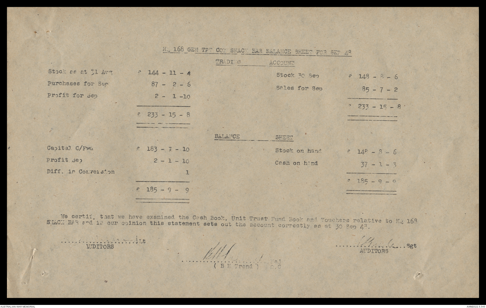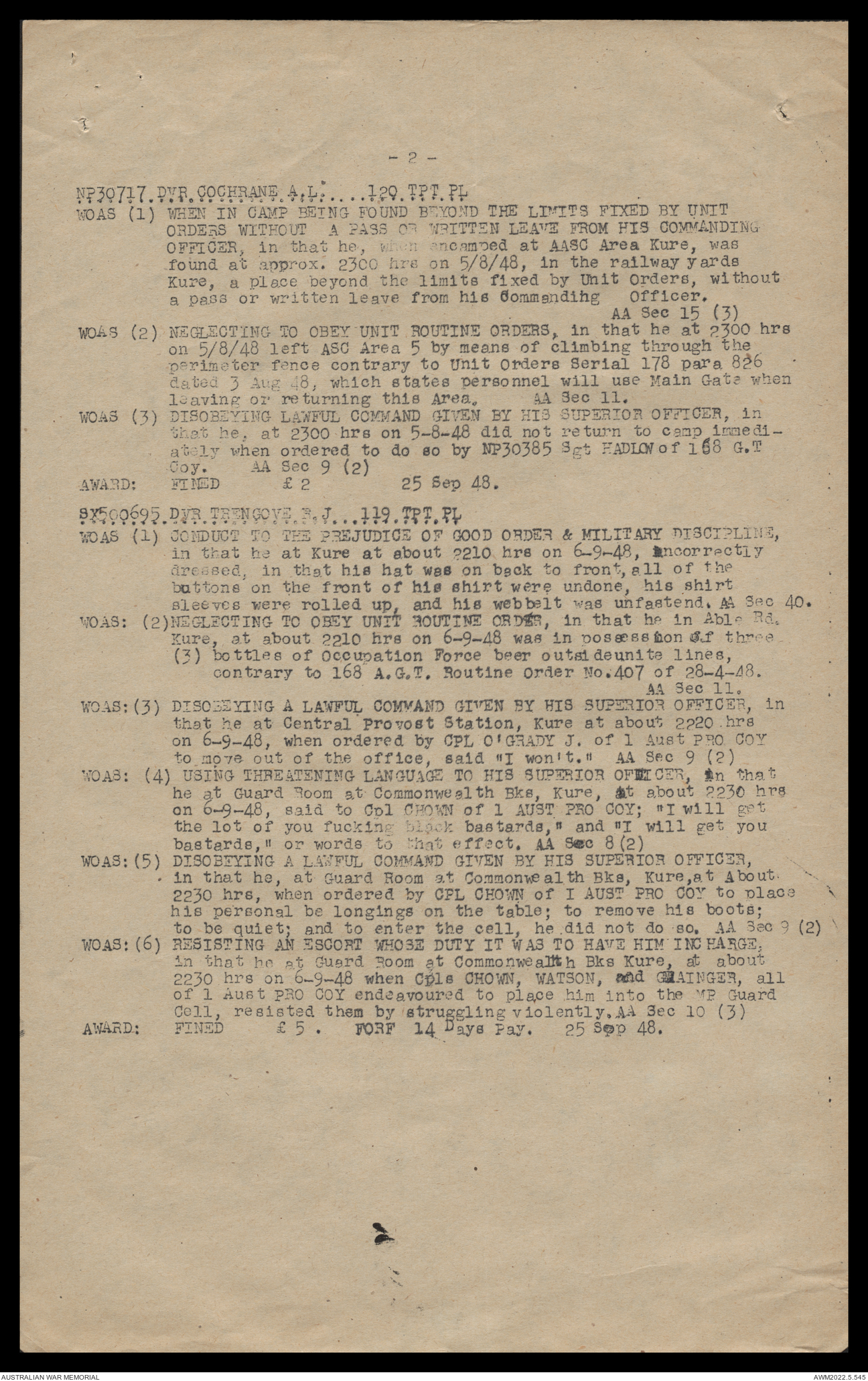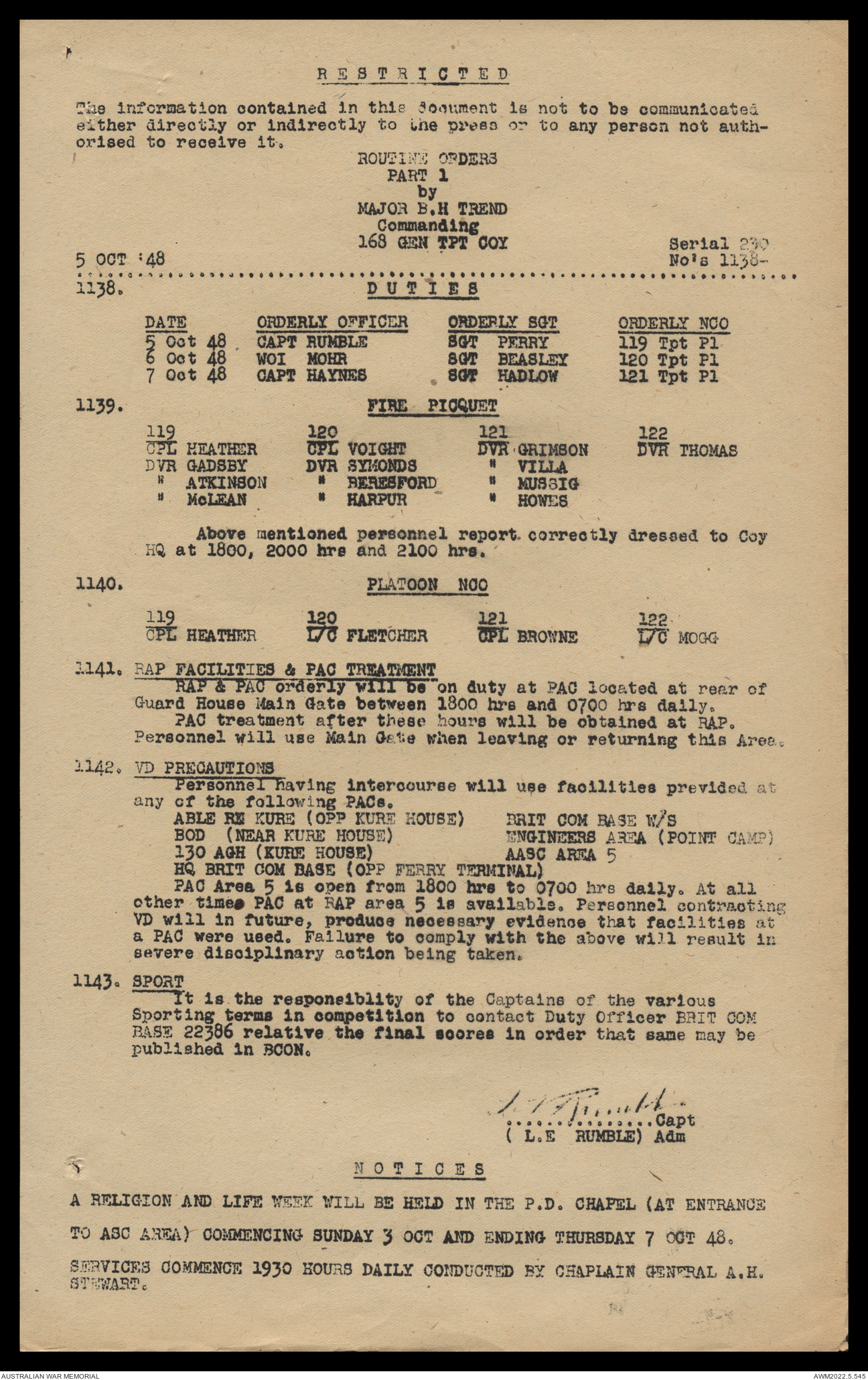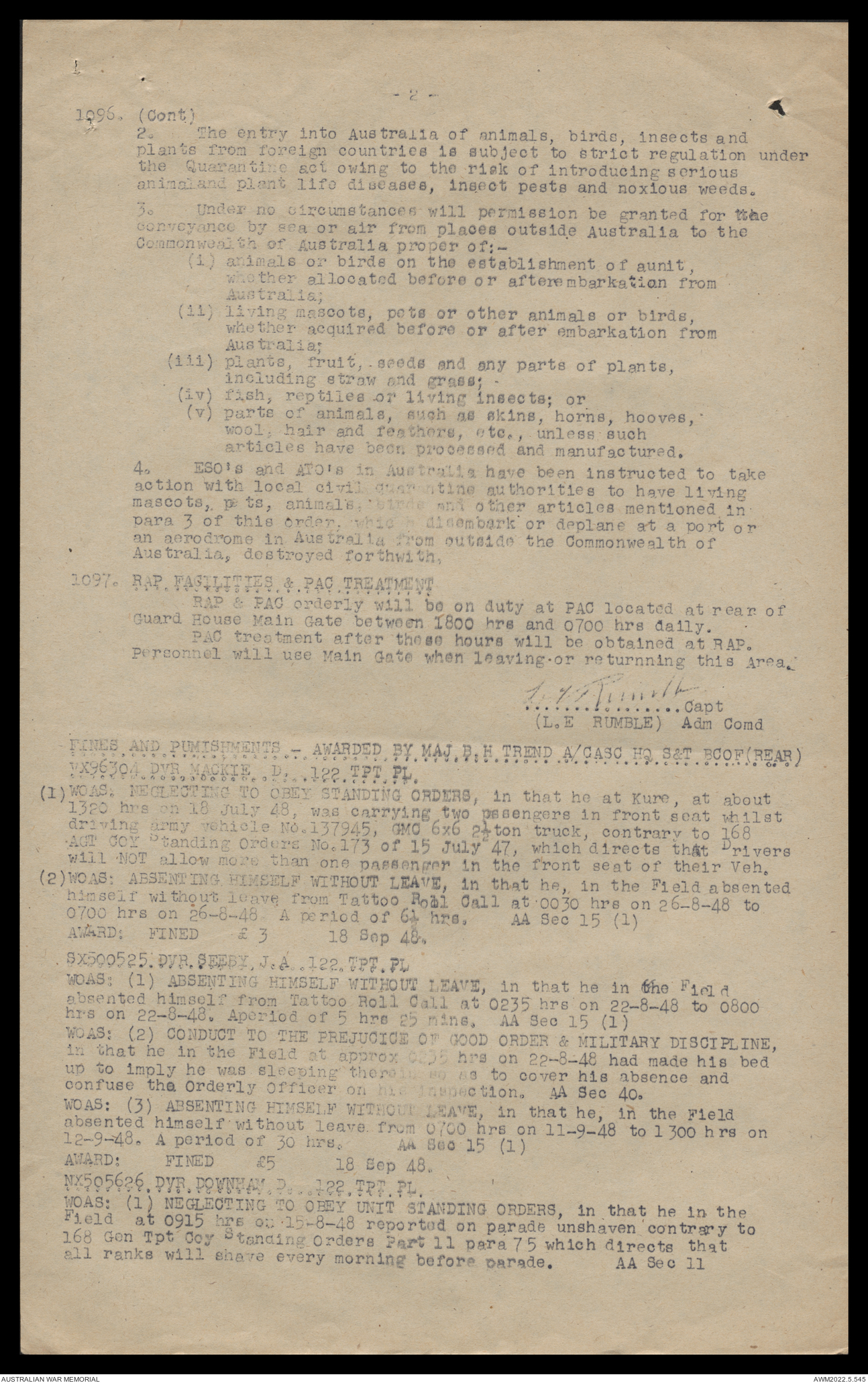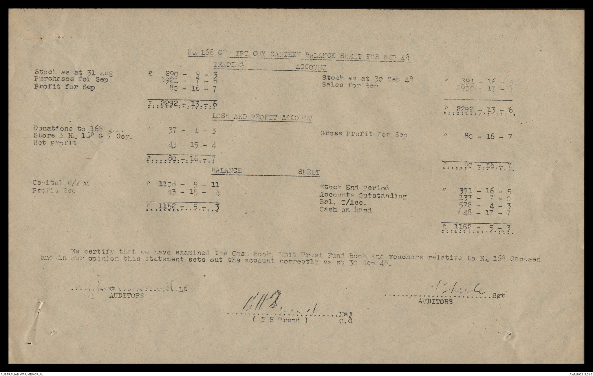 AWM52 10/4/126/16 - [Unit War Diaries, 1939-45 War] 121 Aust. [Australian] Transport Platoon, September - October 1948