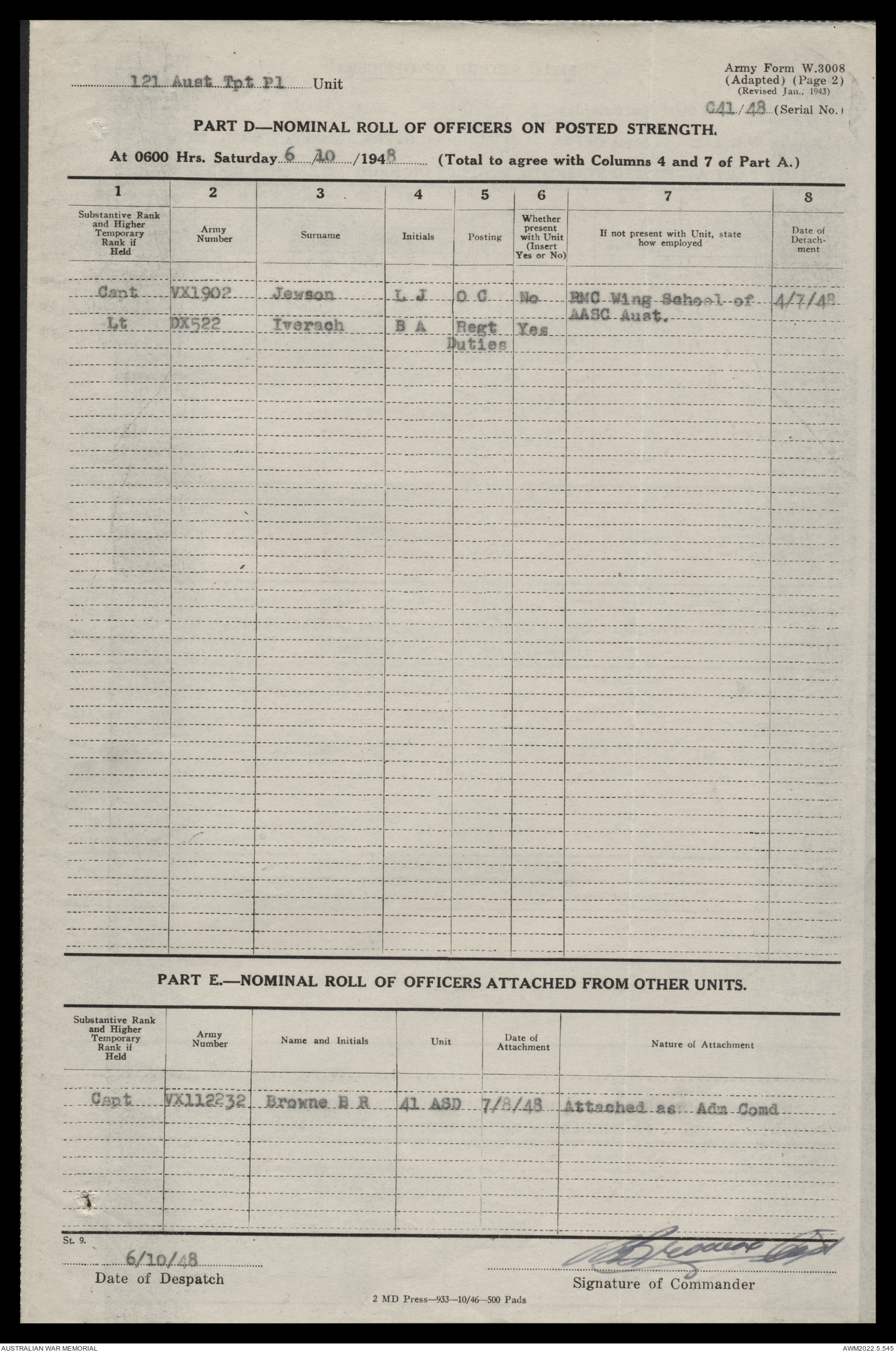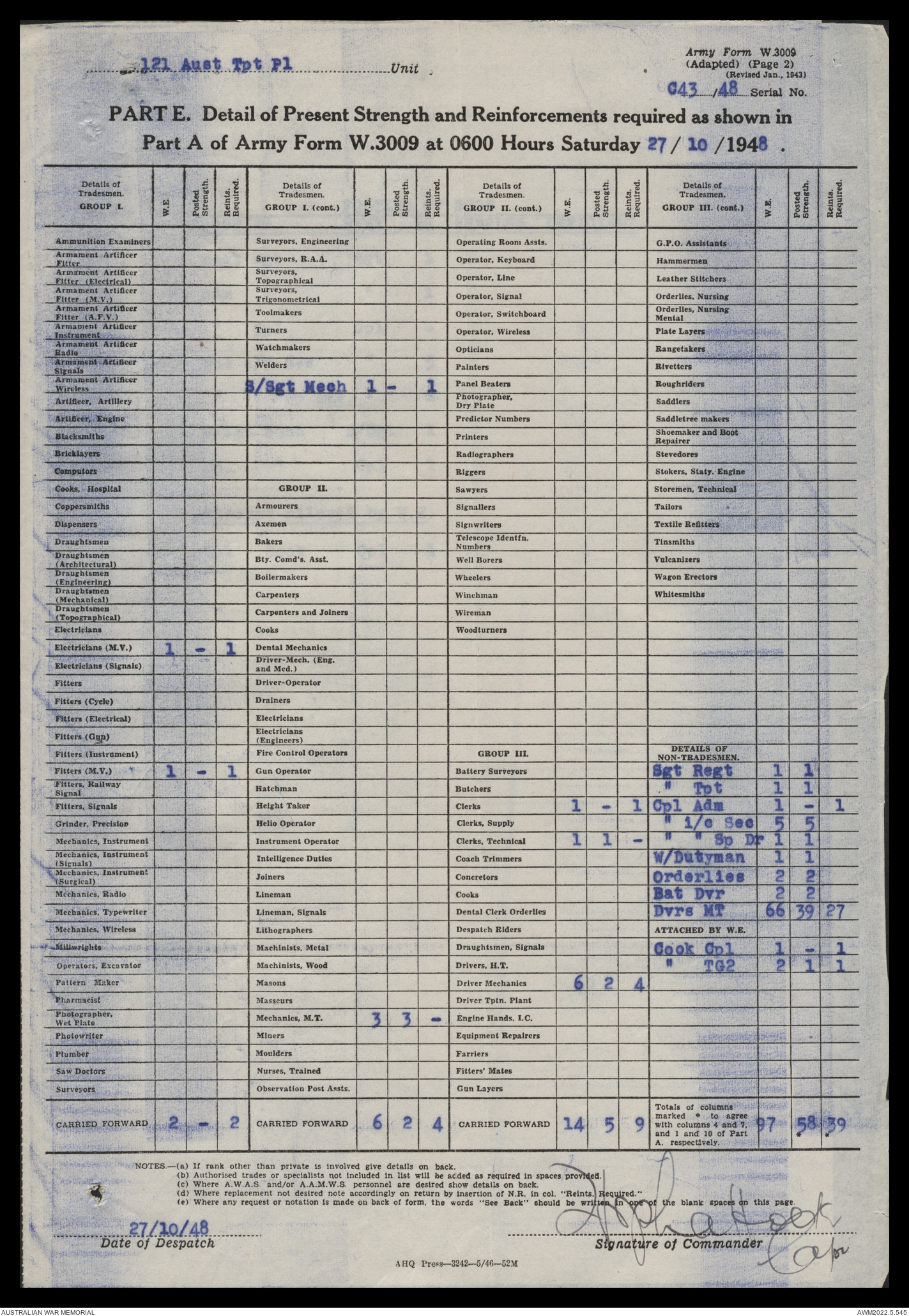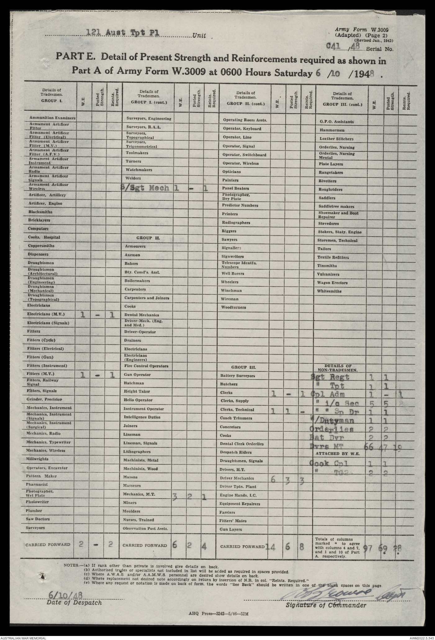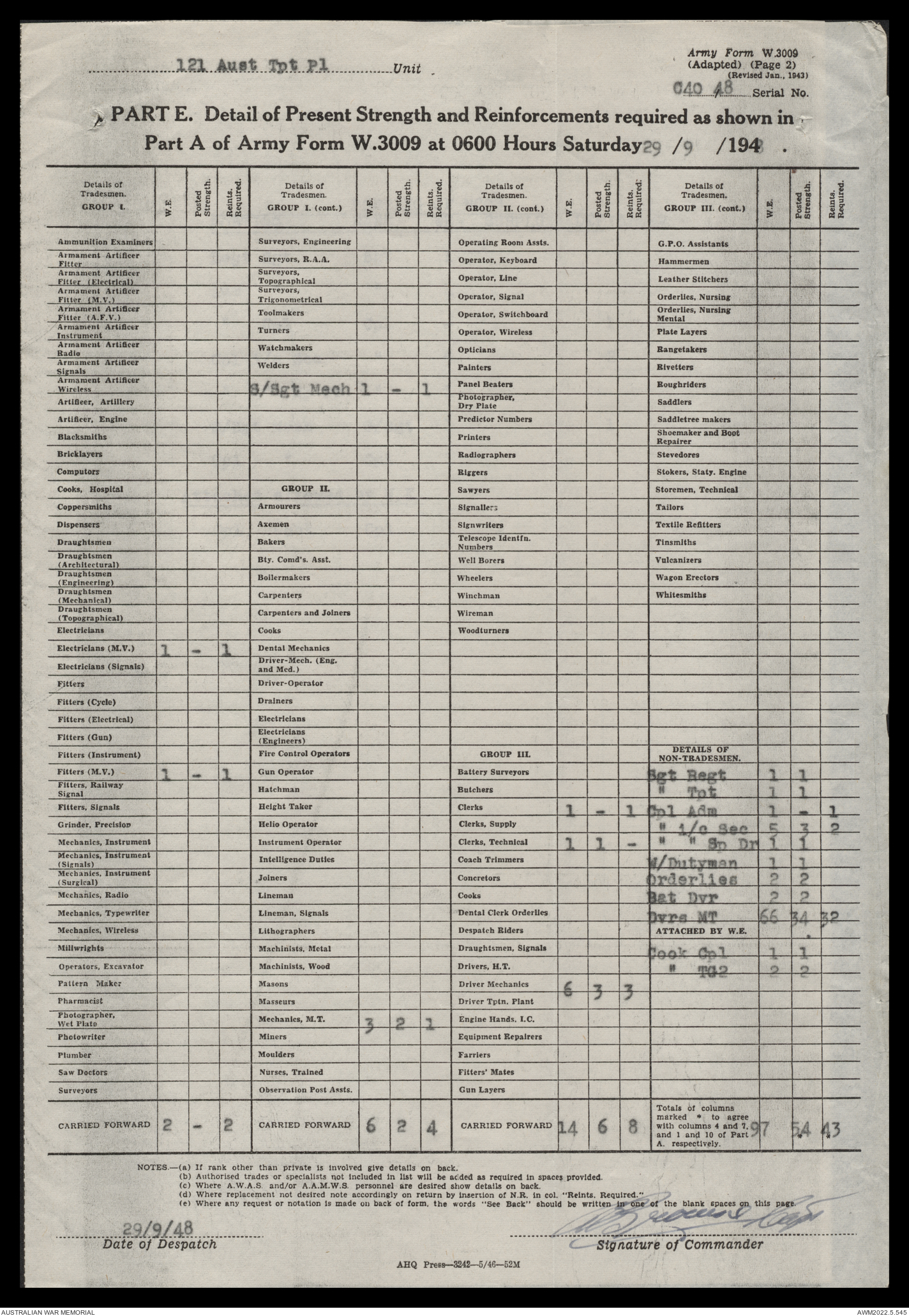 - AWM52 10/4/126 - 121 Transport Platoon