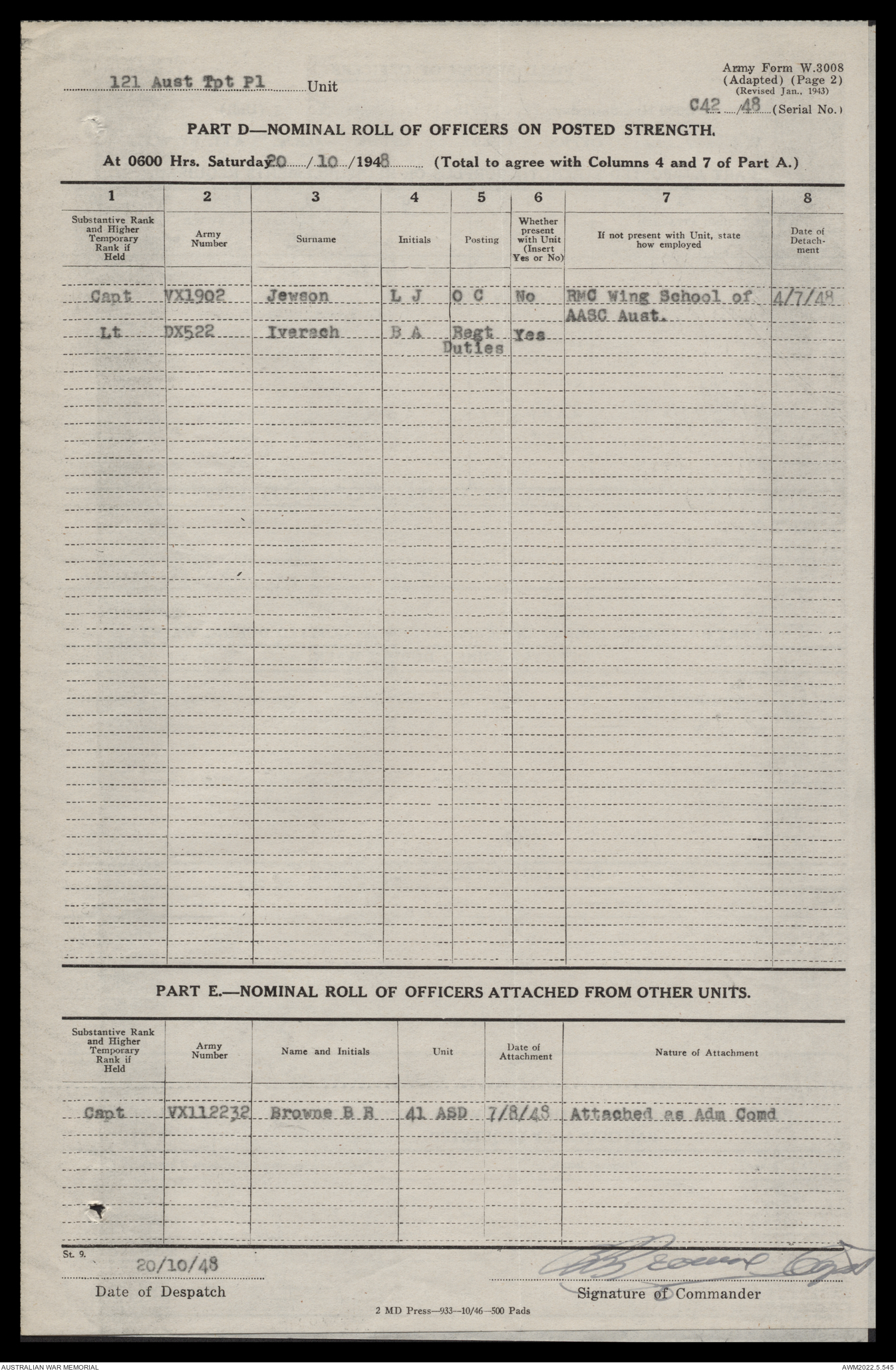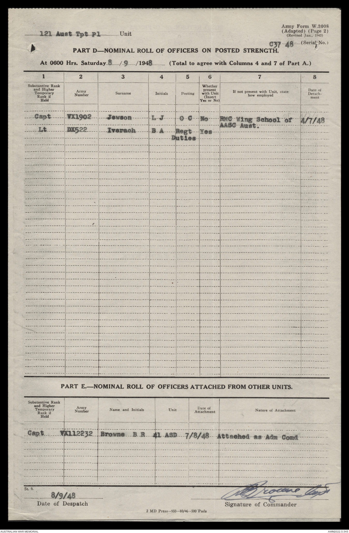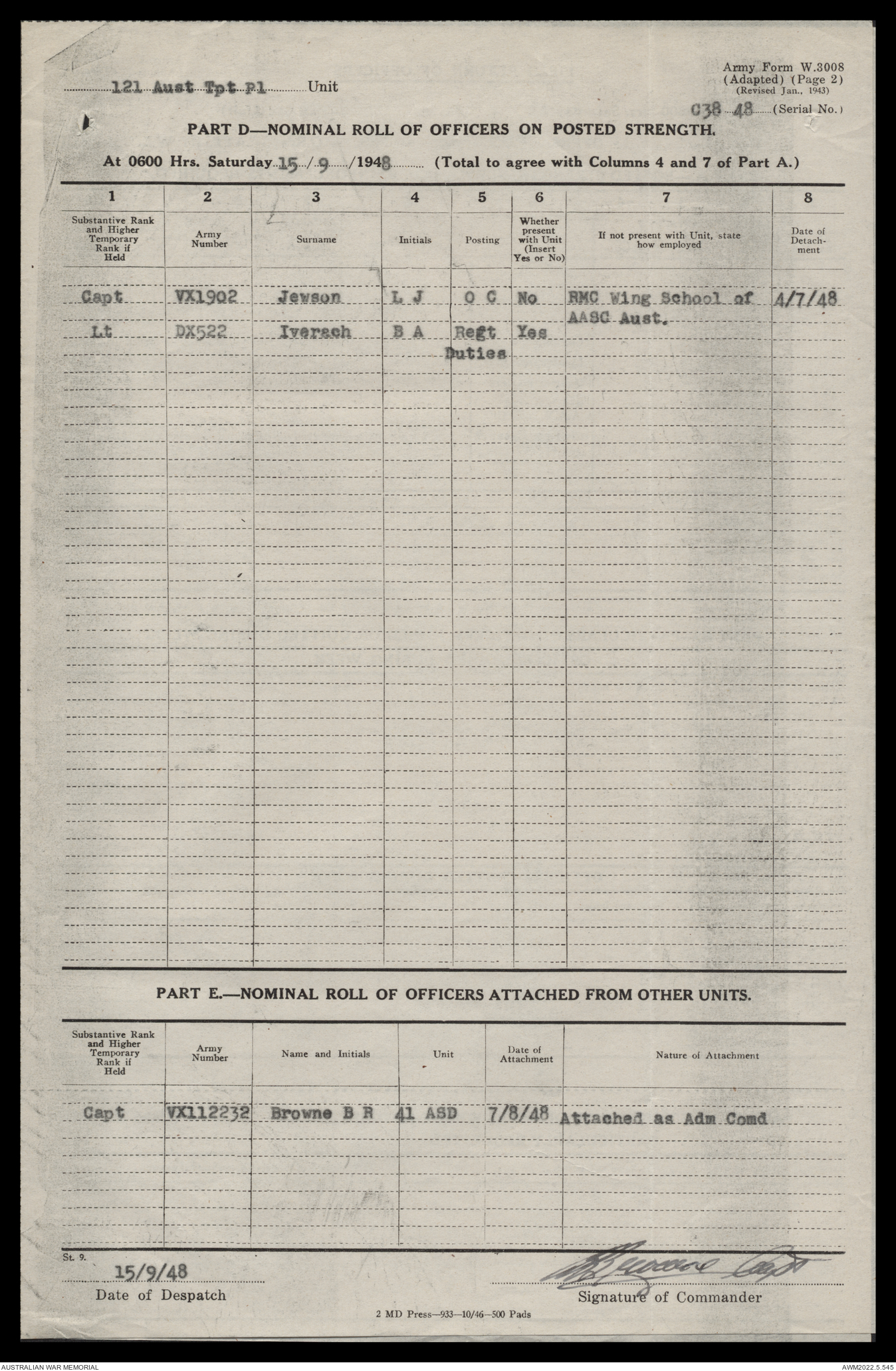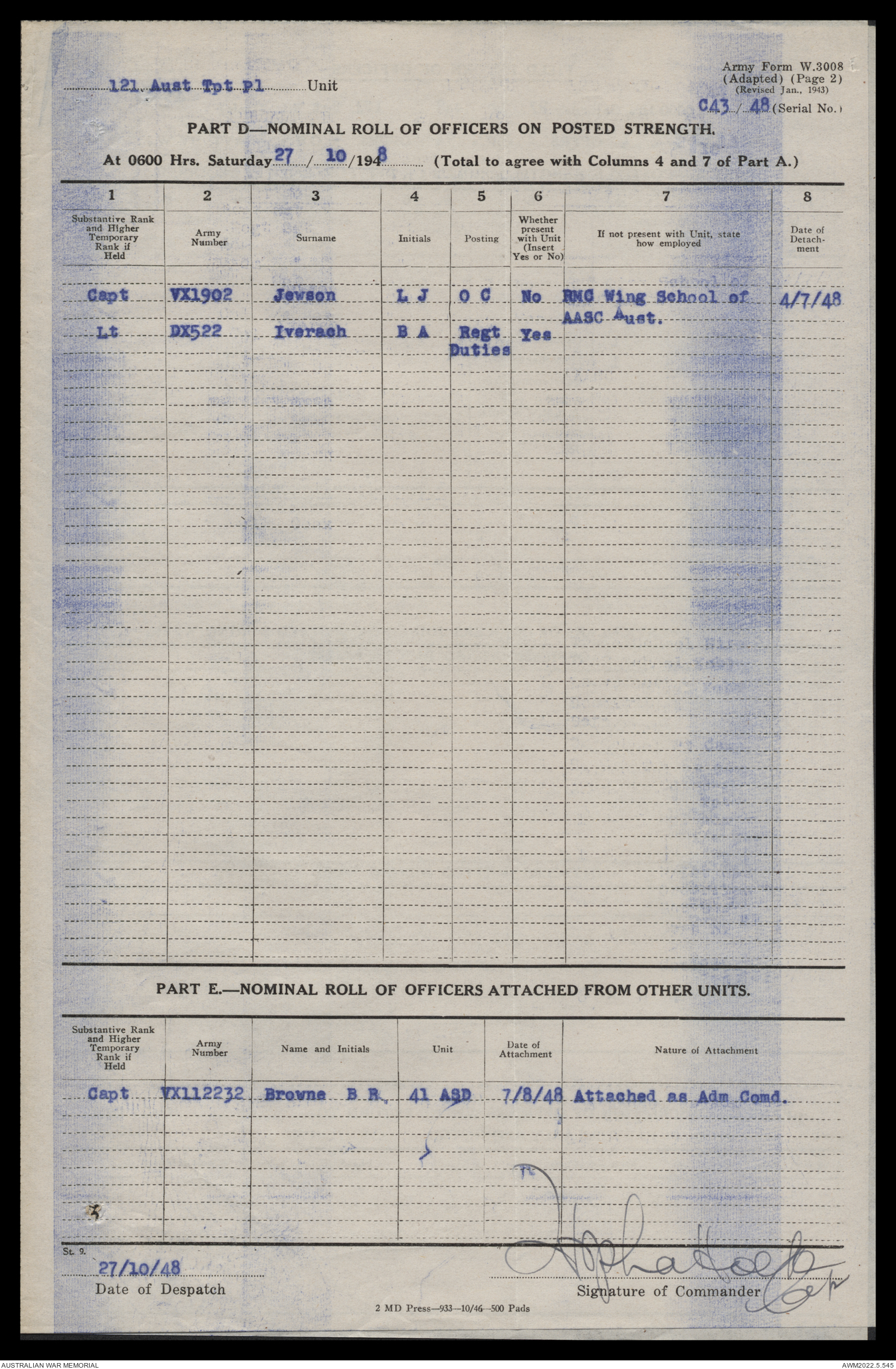 - AWM52 10/4/126 - 121 Transport Platoon