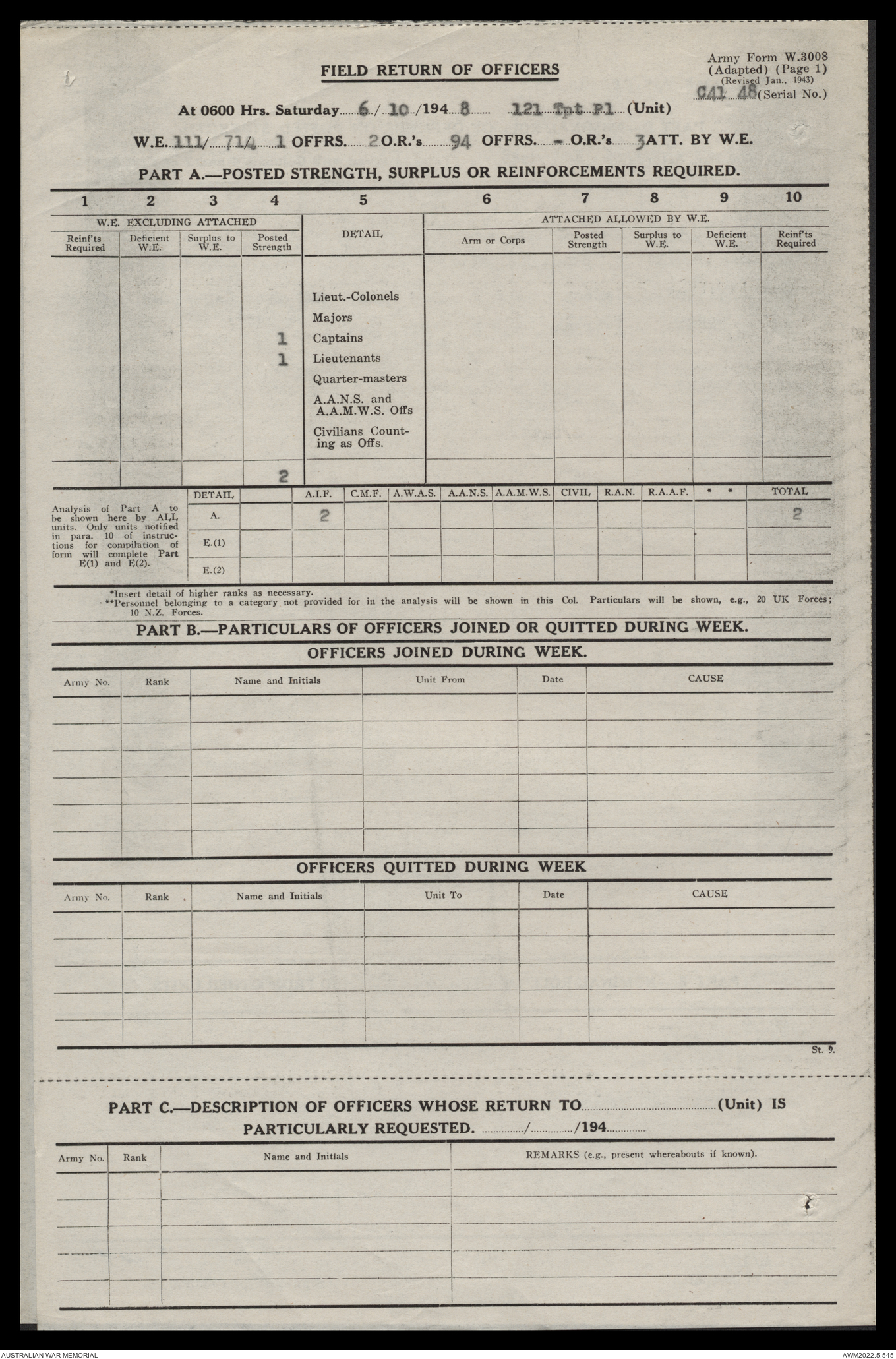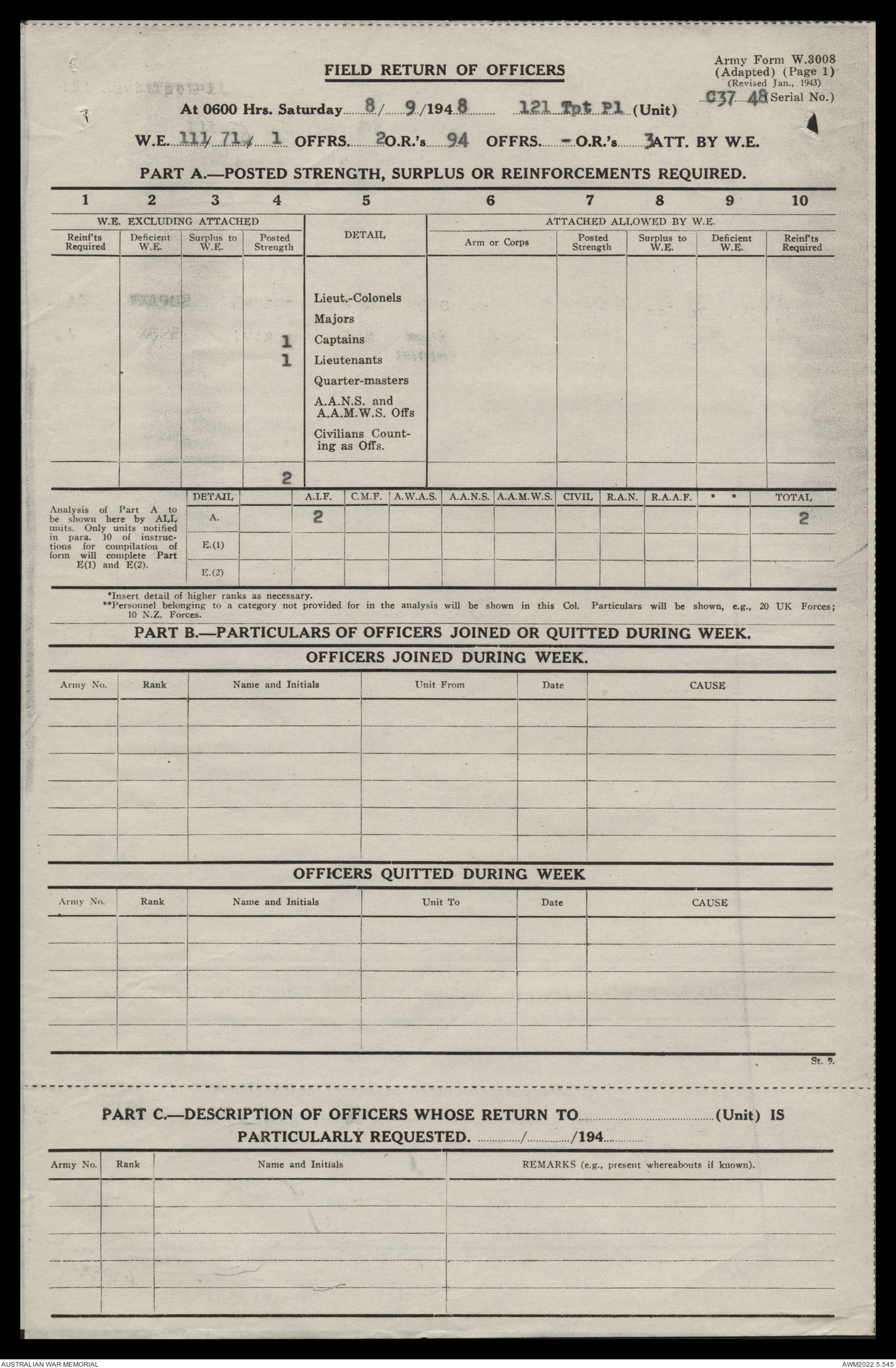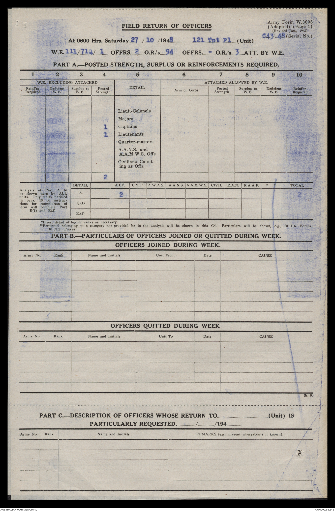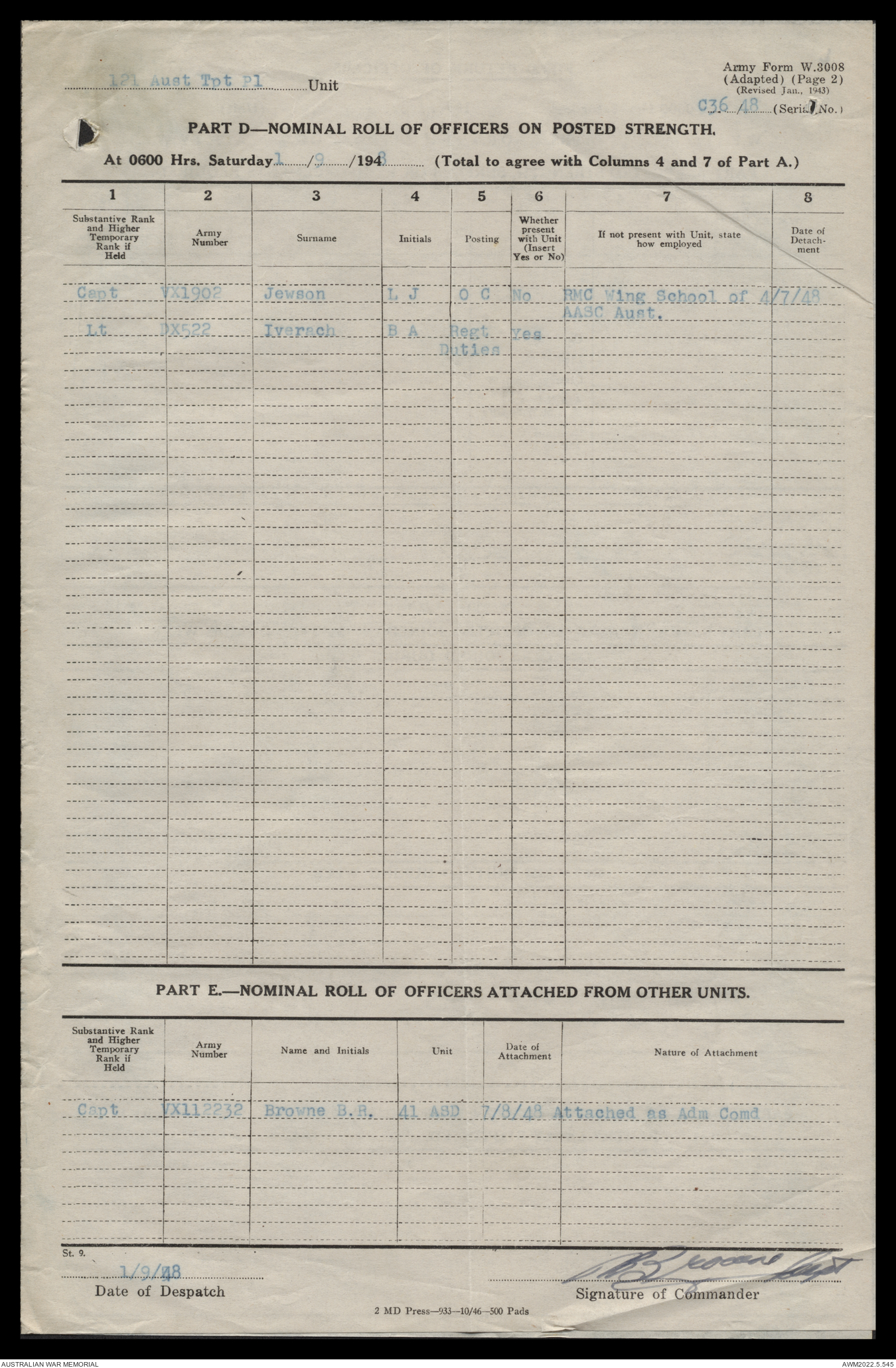 - AWM52 10/4/126 - 121 Transport Platoon